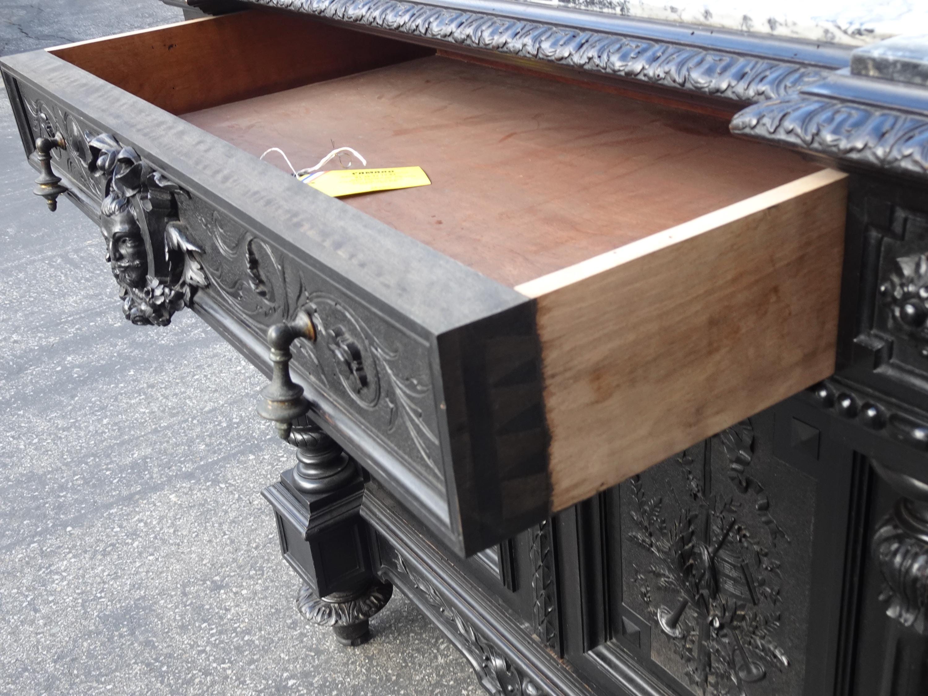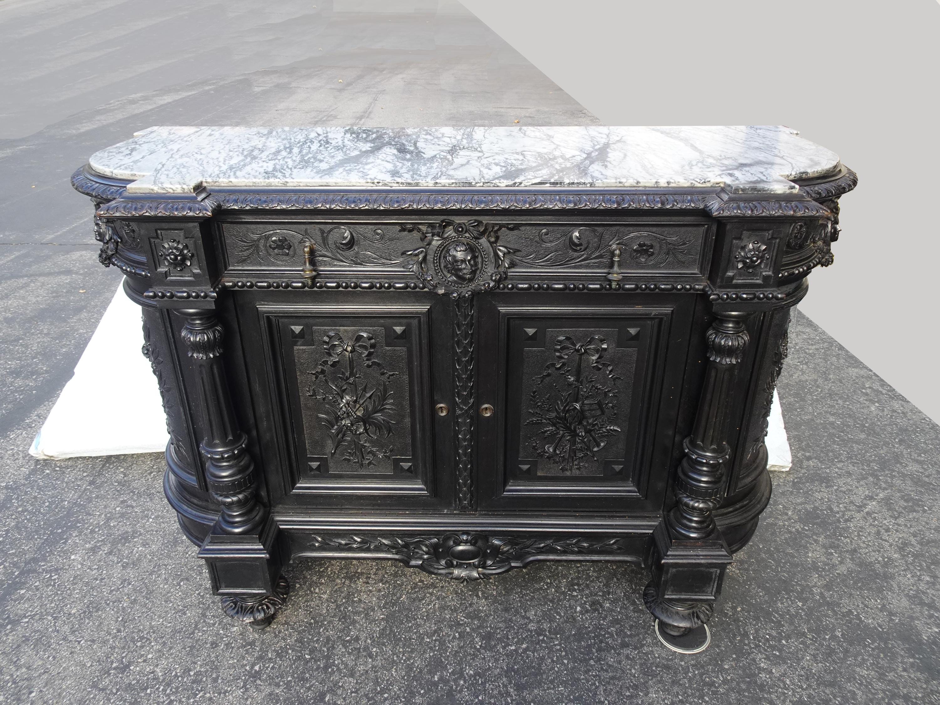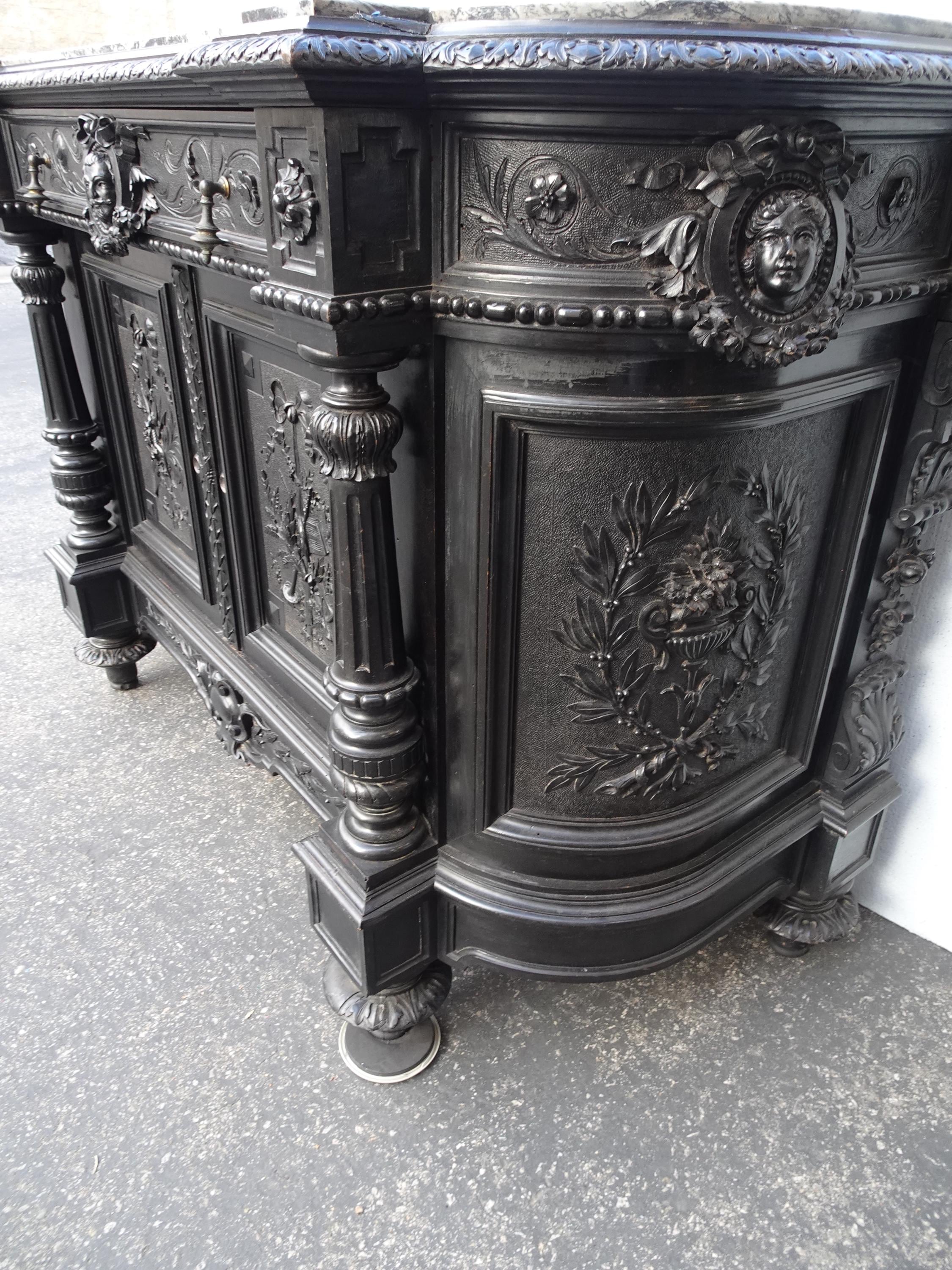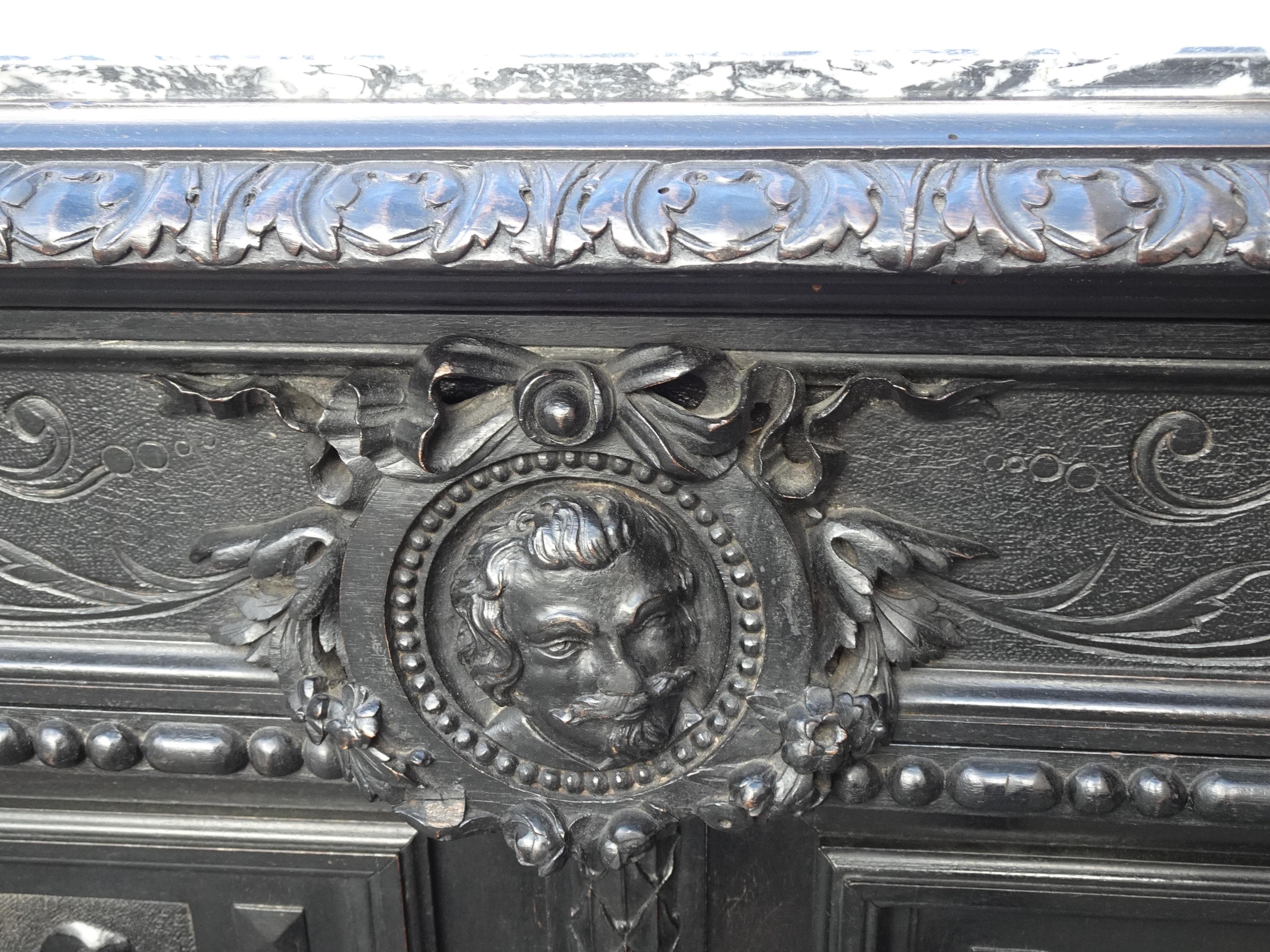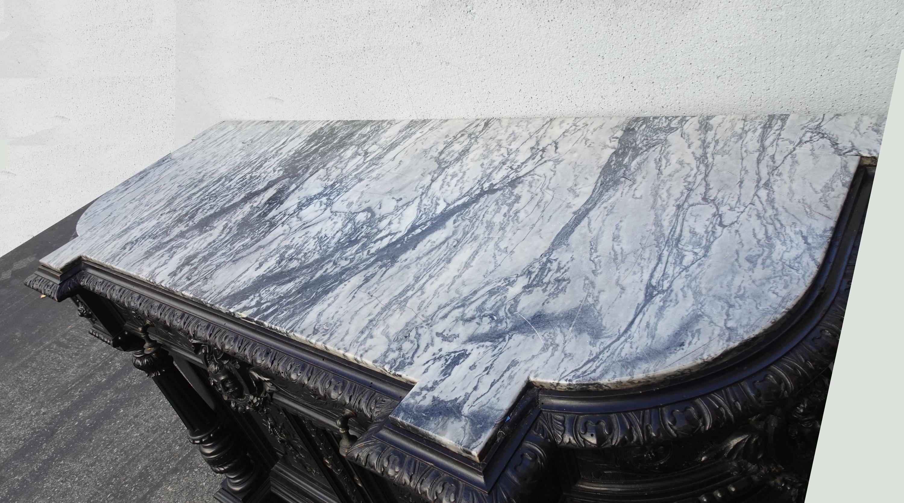Antique French Renaissance Ebonized Baroque Marble Sideboard Buffet France 2of2