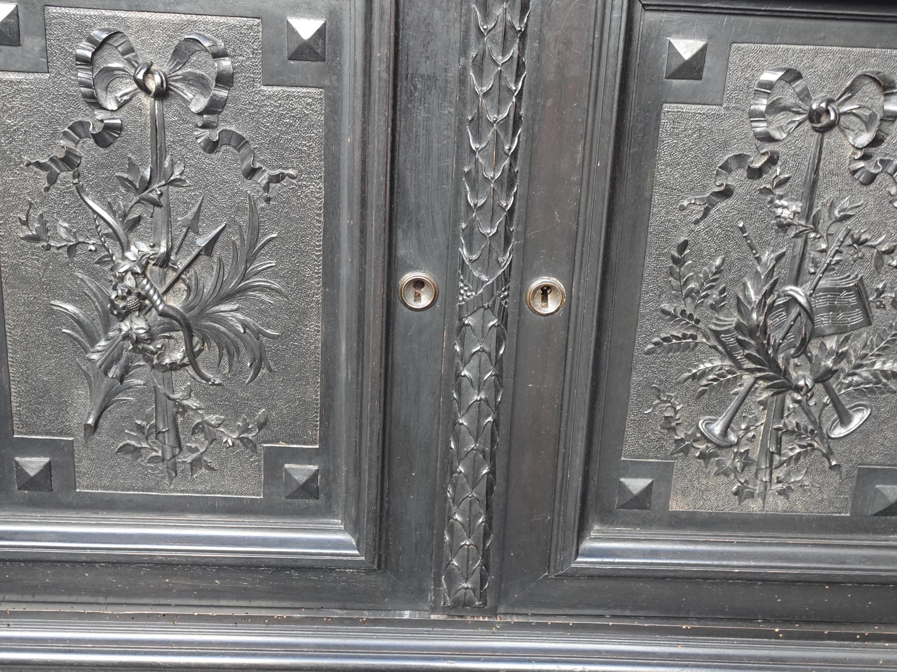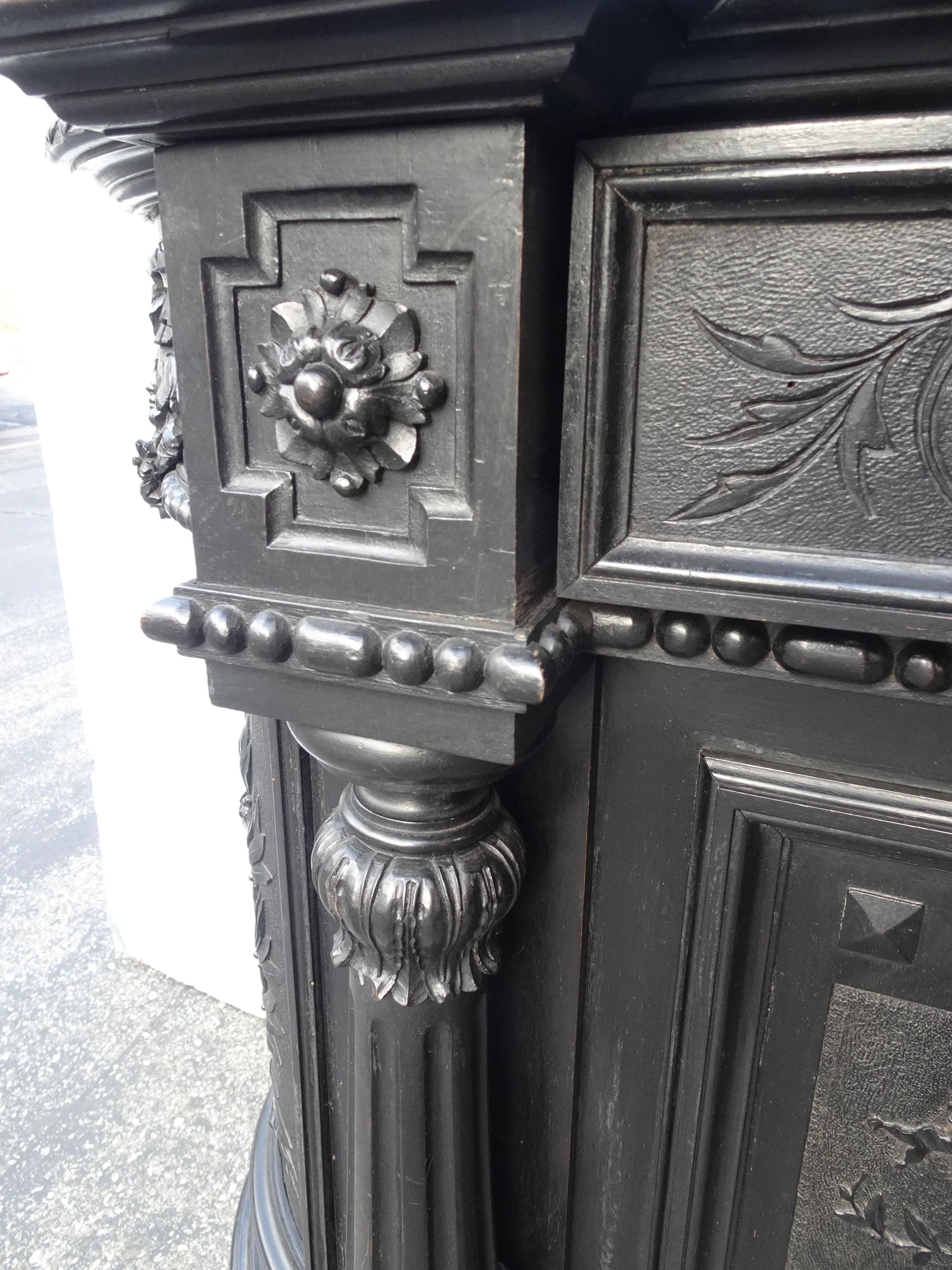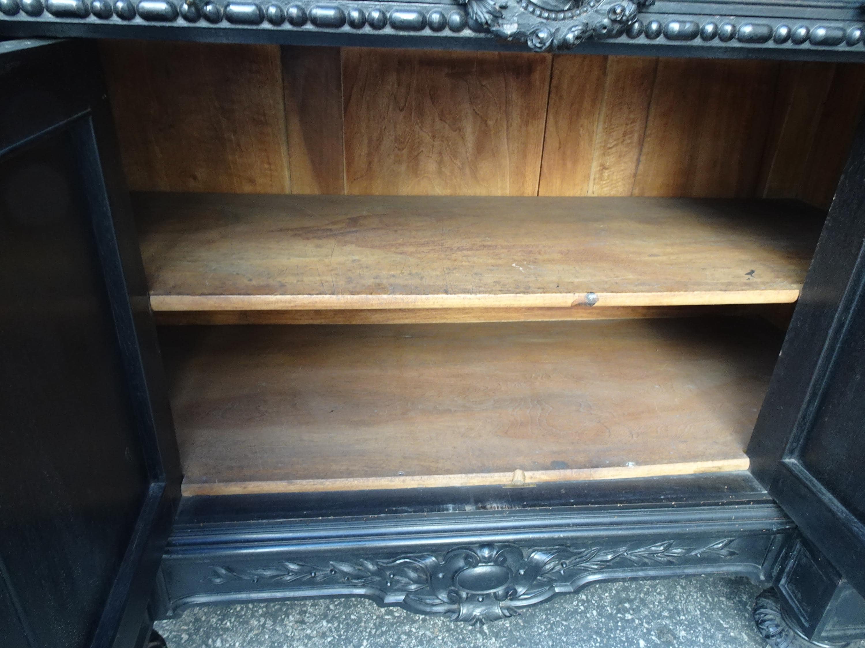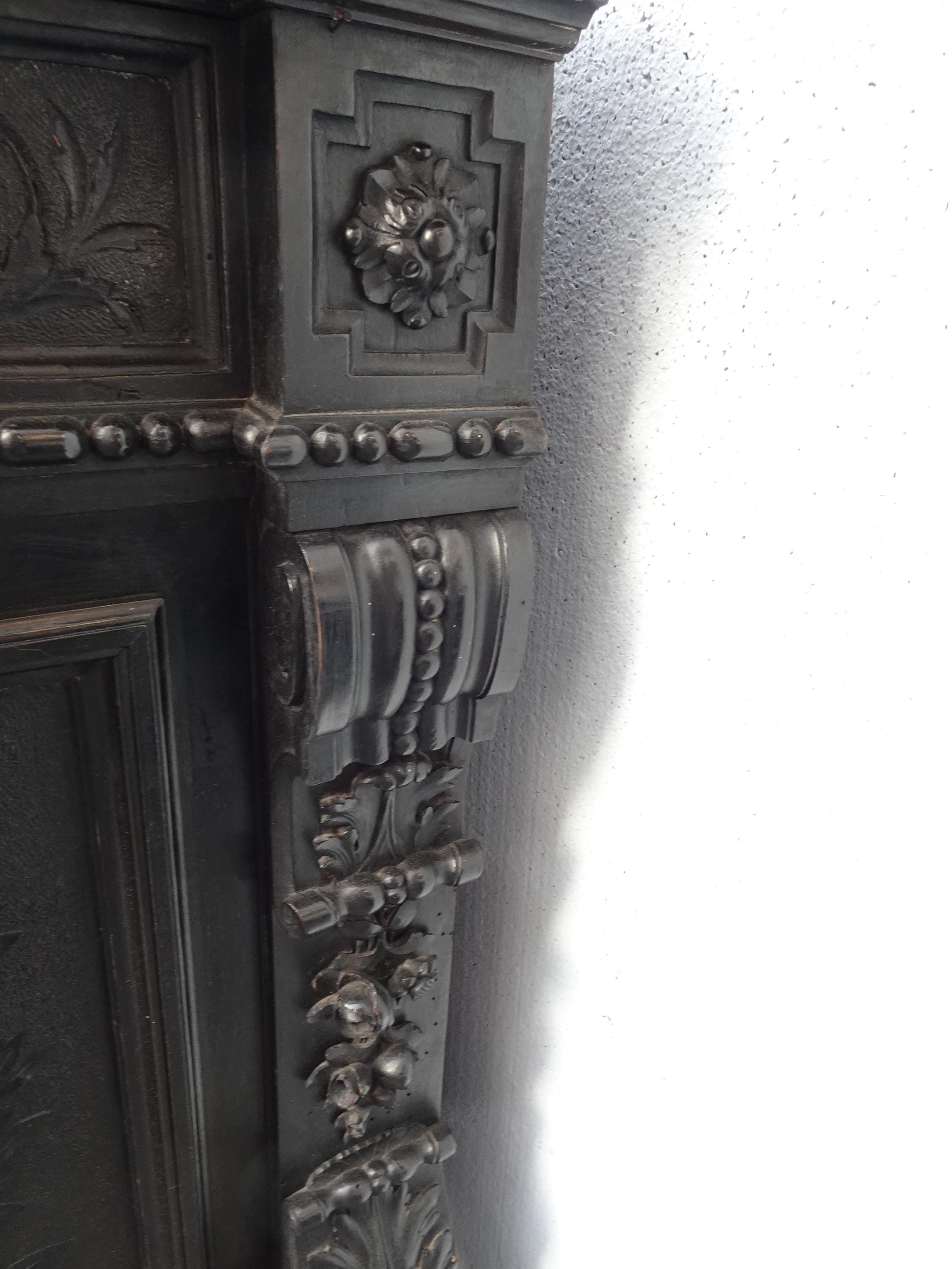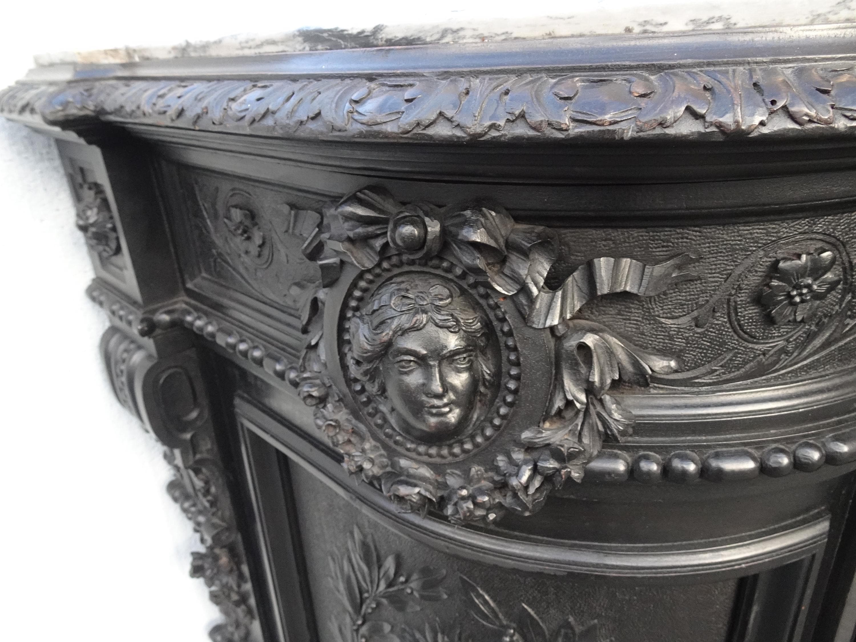 Antique French Renaissance Ebonized Baroque Marble Sideboard Buffet France 2of2