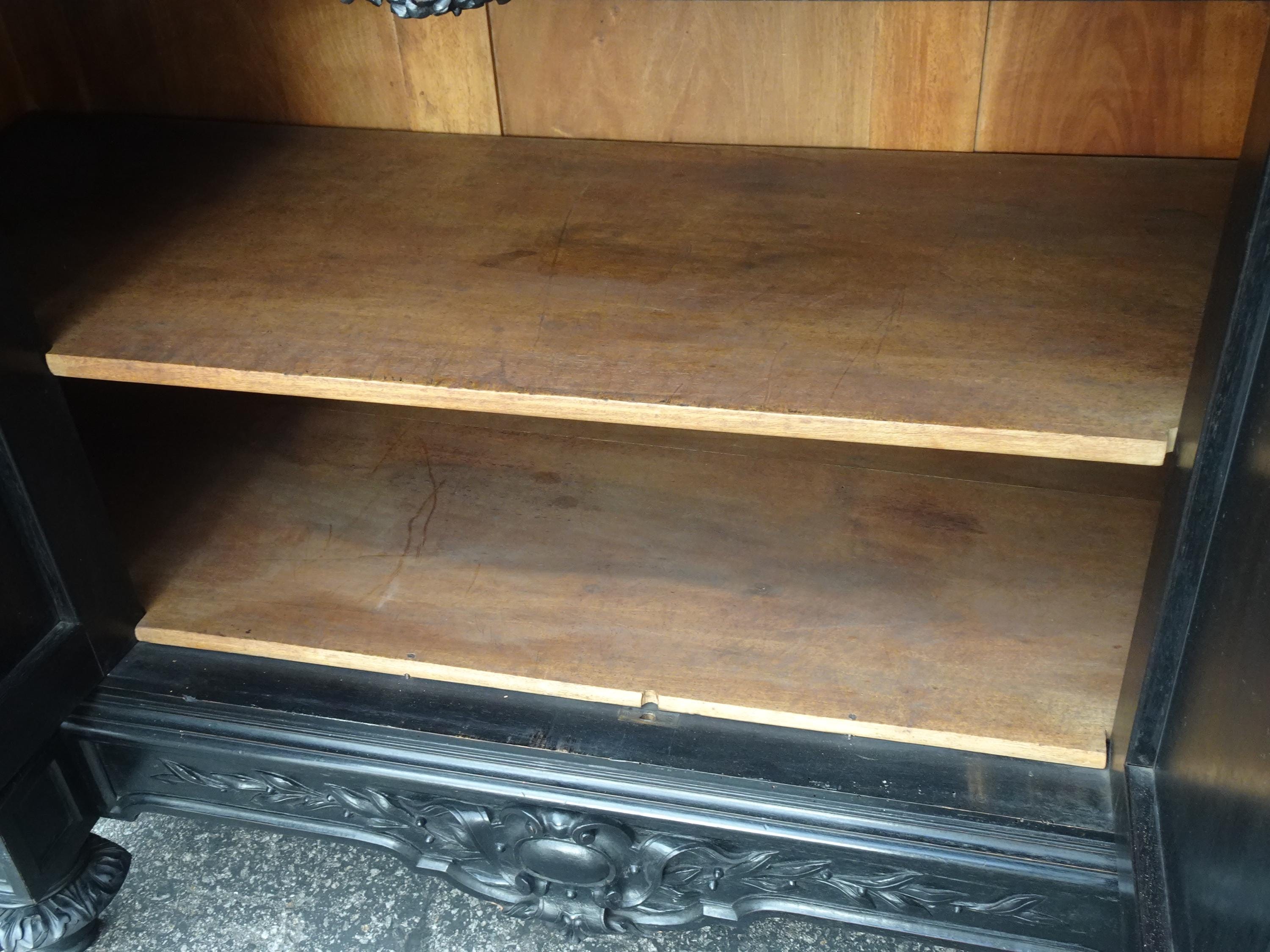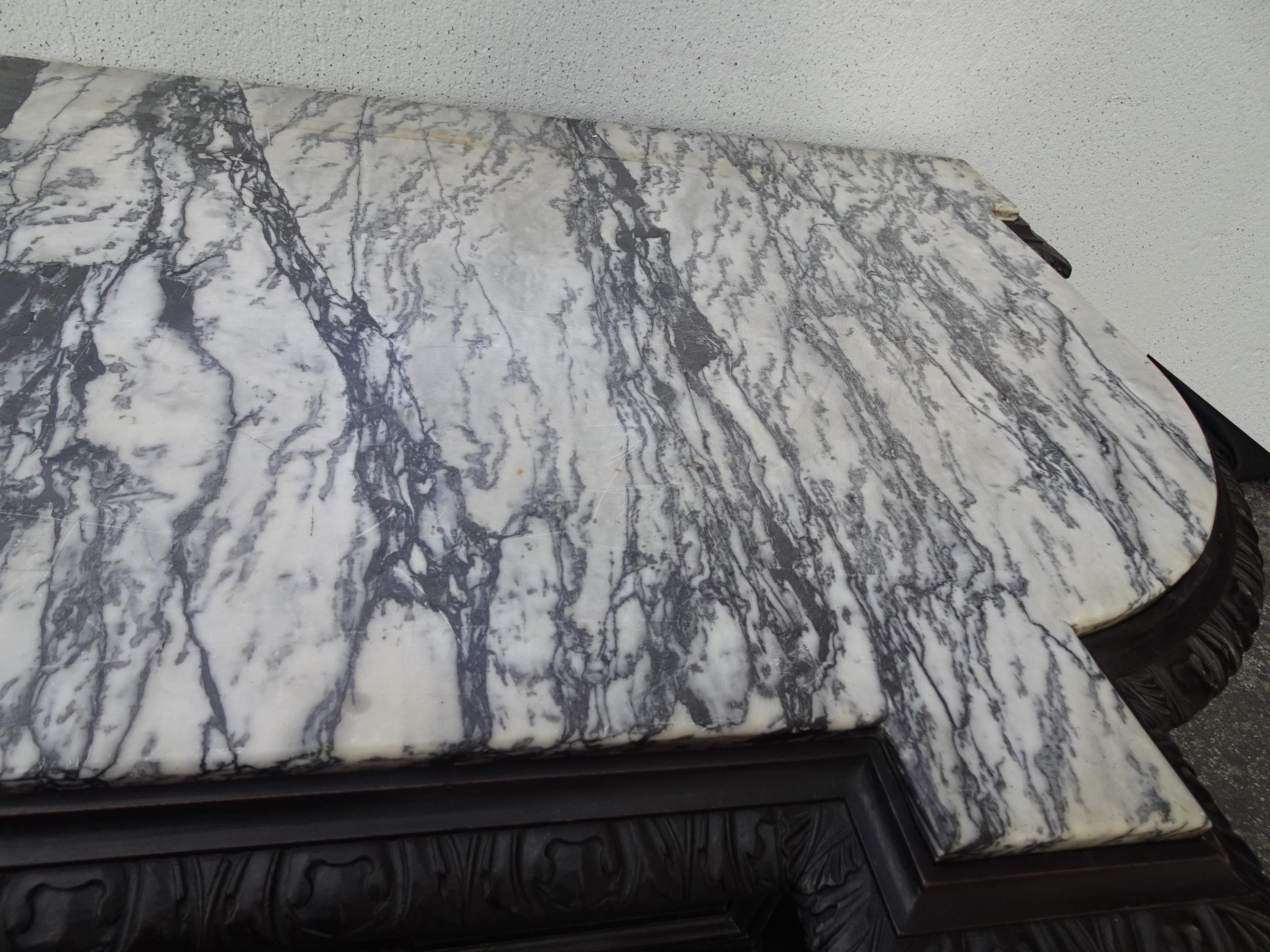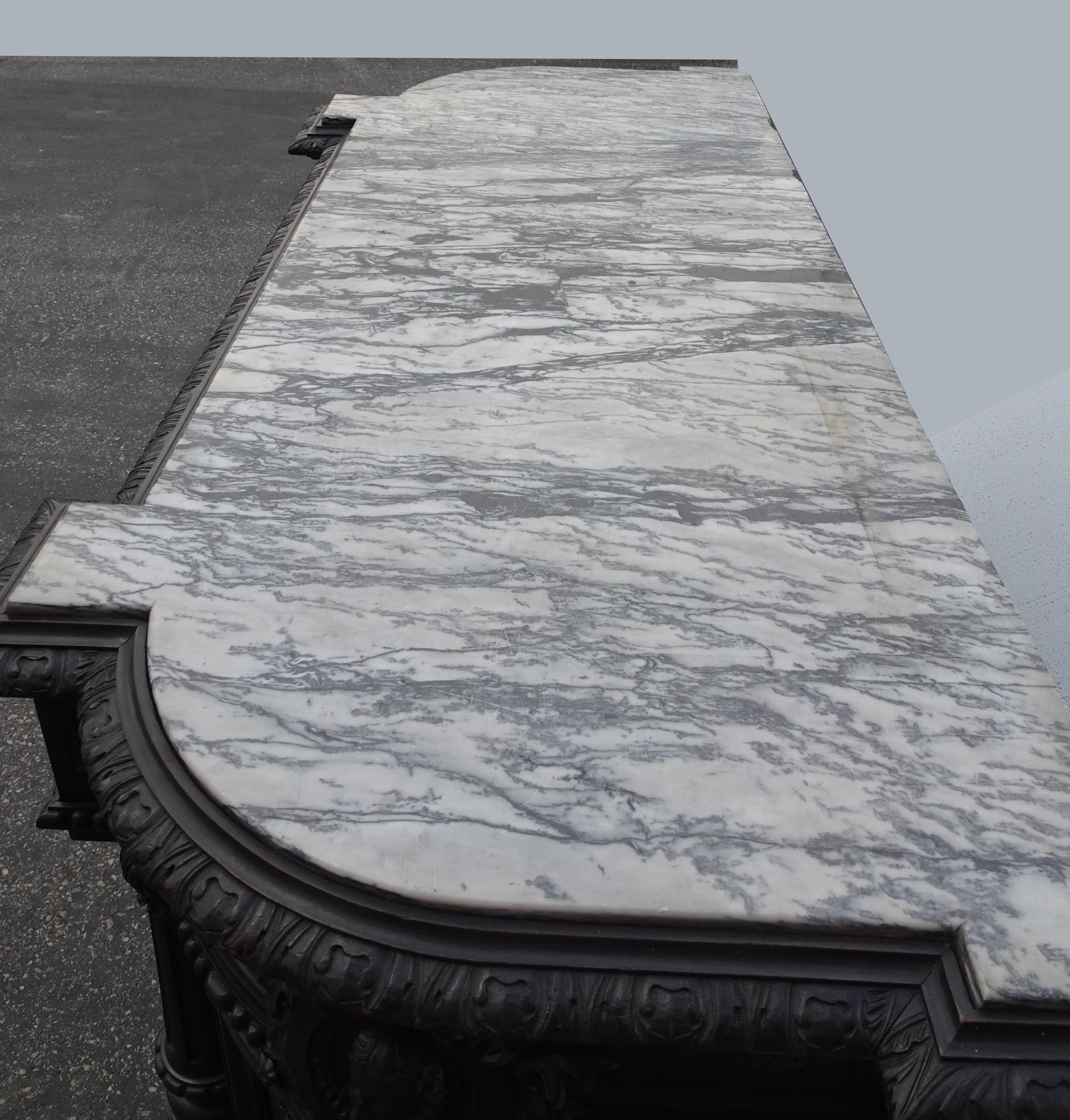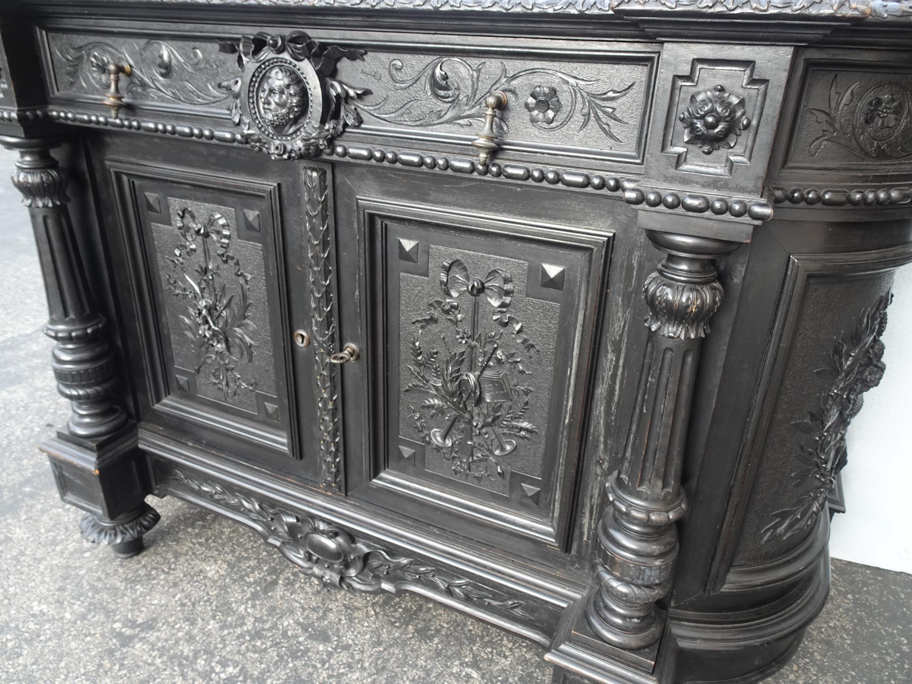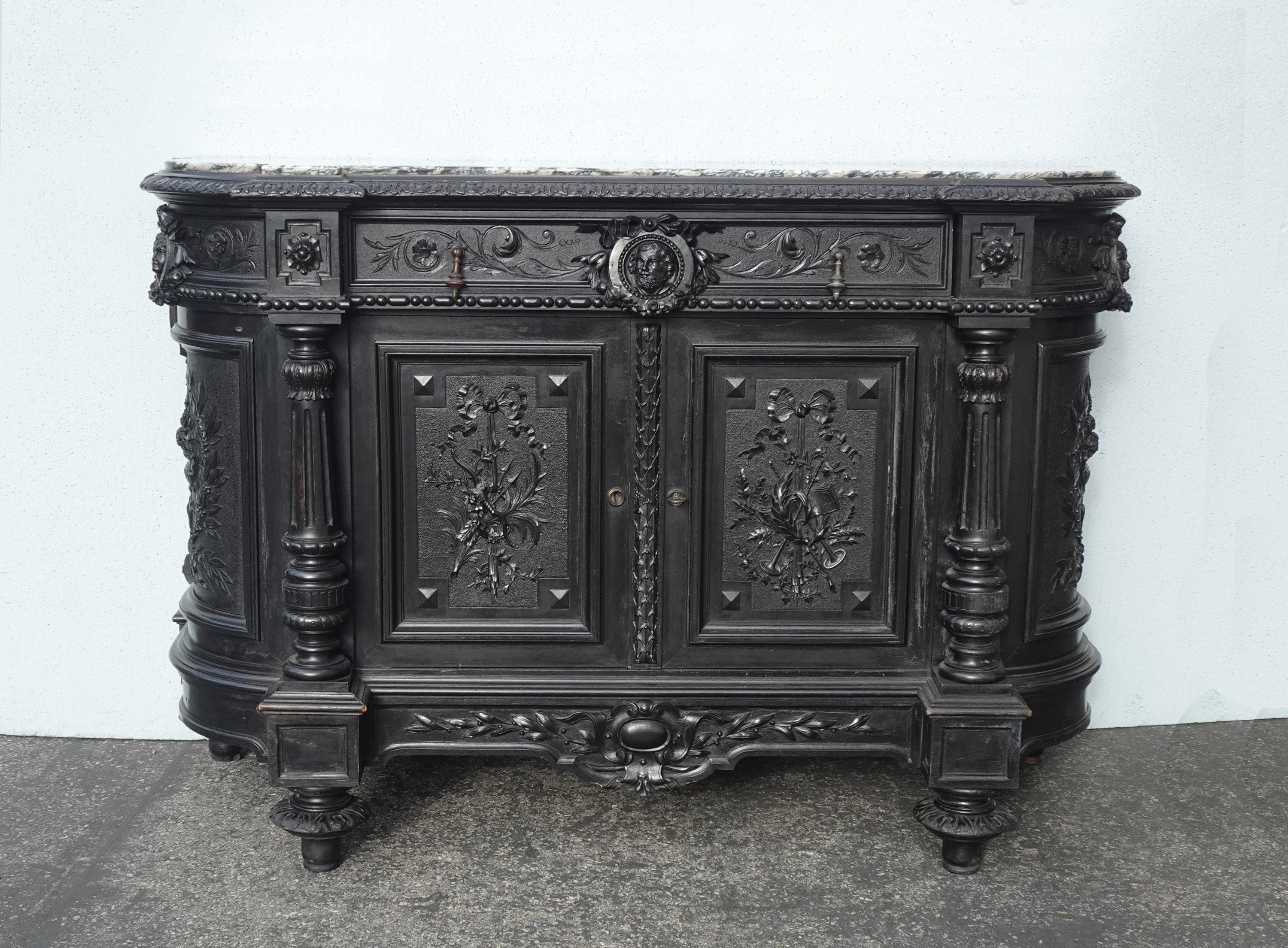 Pair Antique French Renaissance Ebonized Baroque Marble Sideboards Buffet France