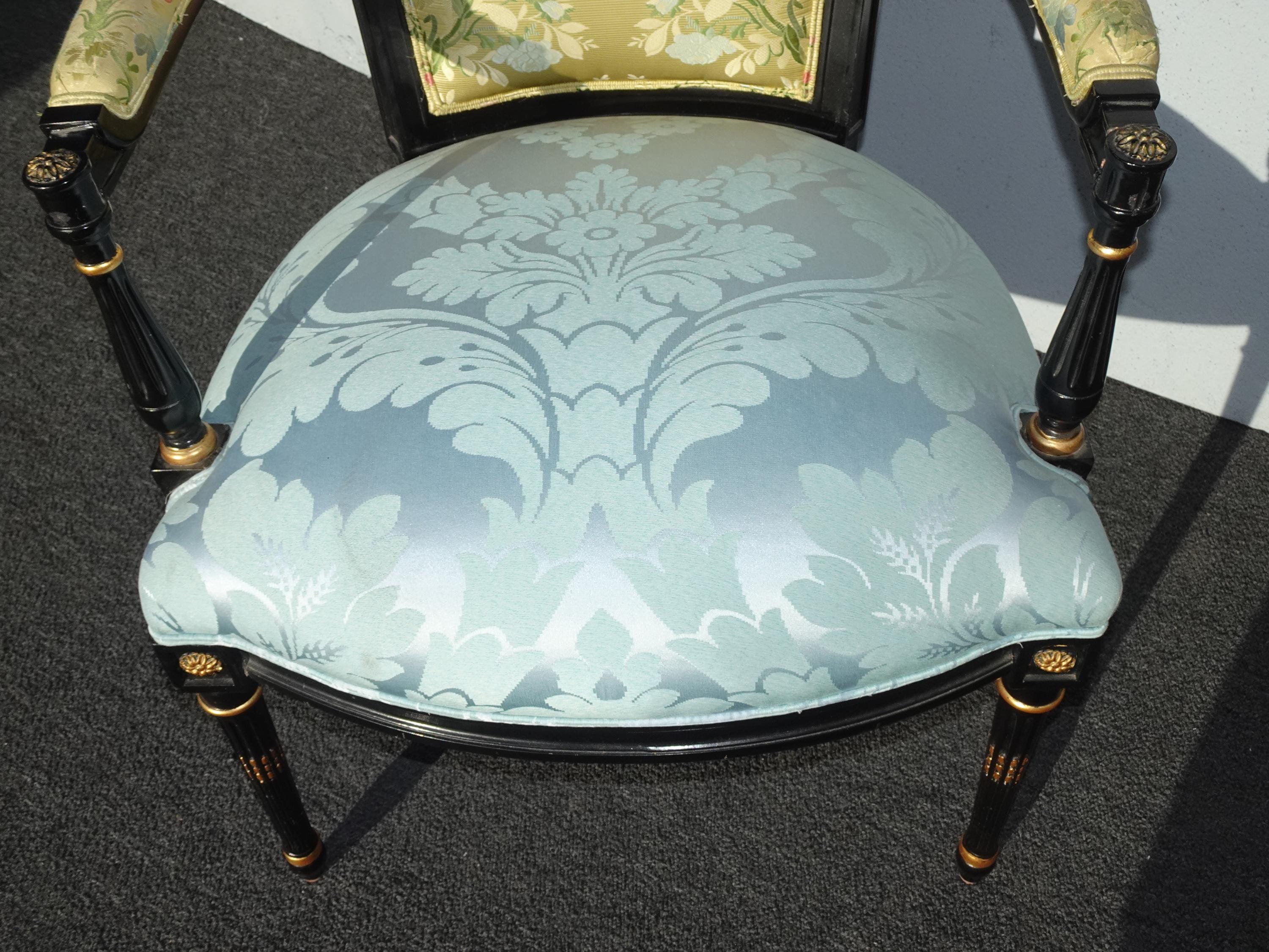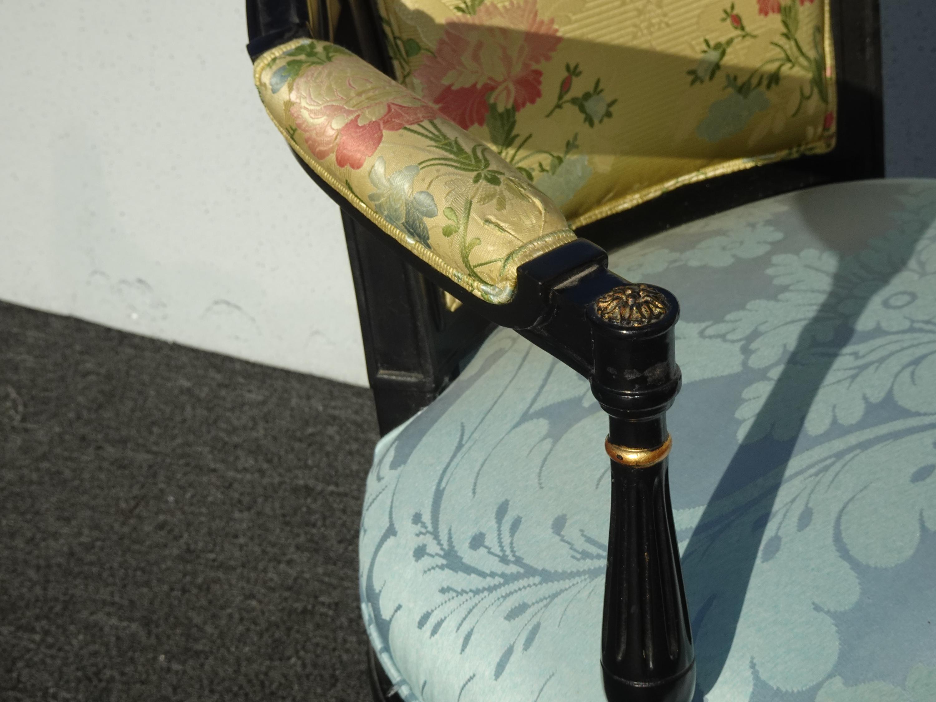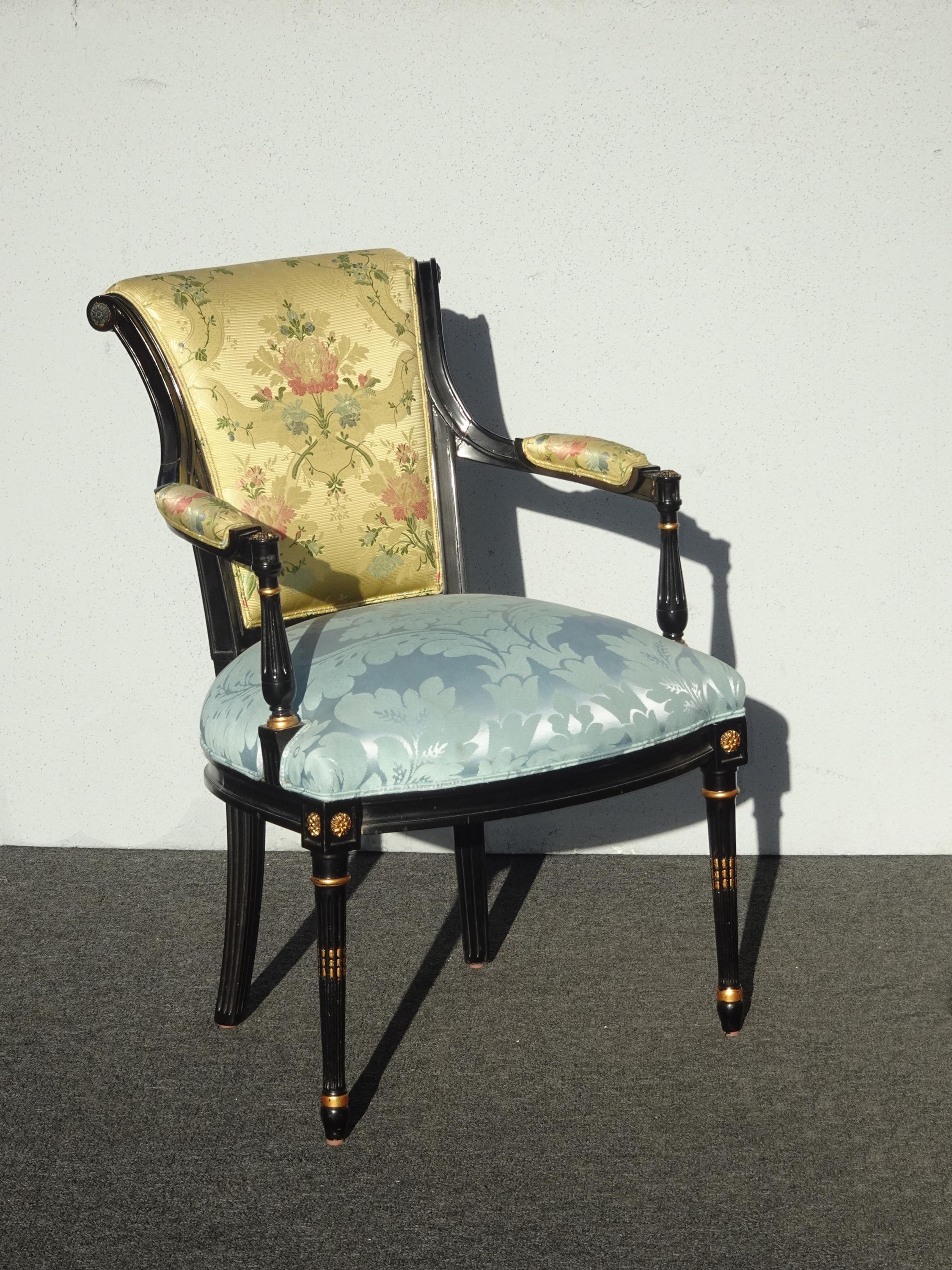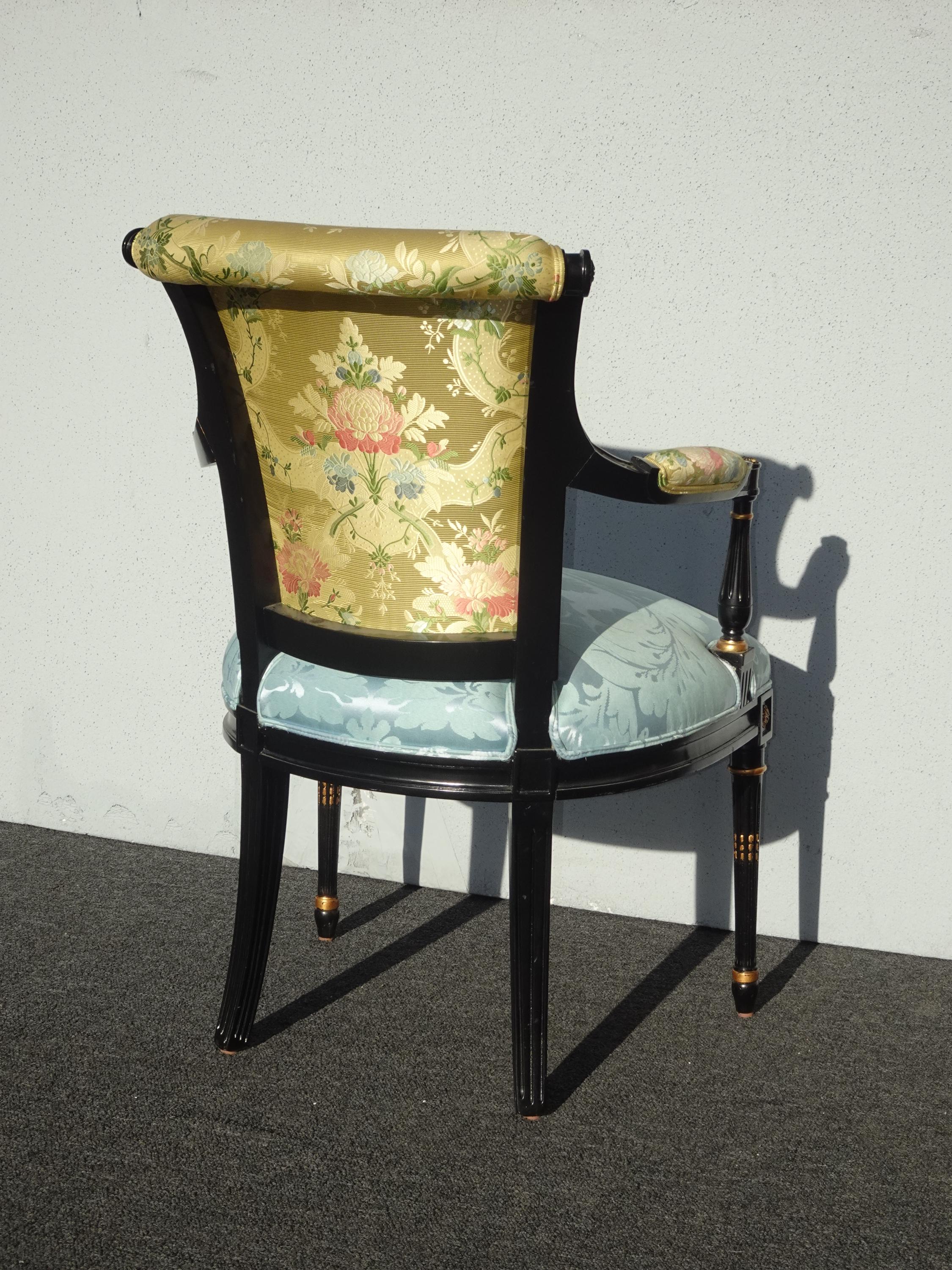 Vintage French Provincial Louis XVI Style Blue & Yellow Bergere Side Chair