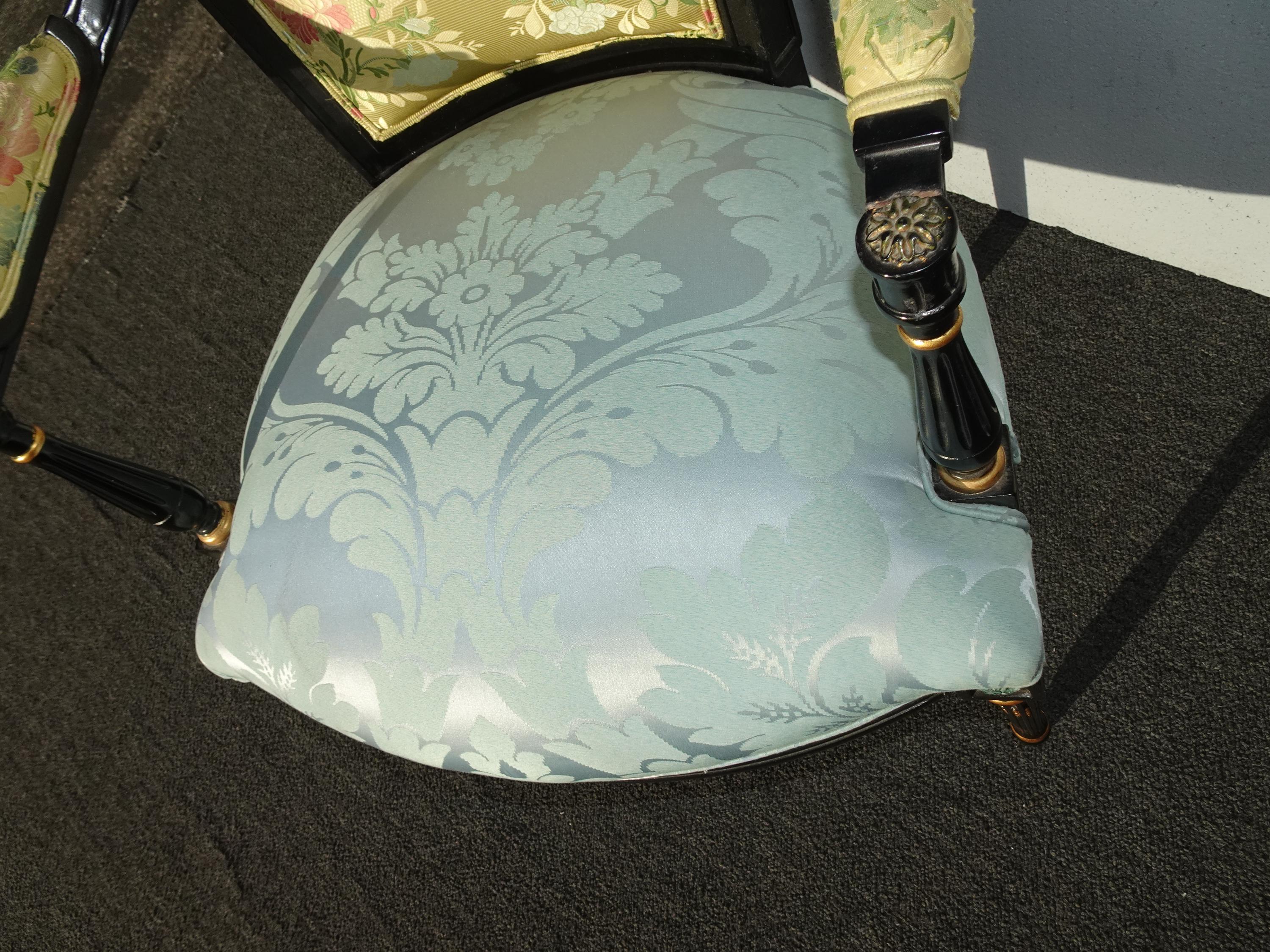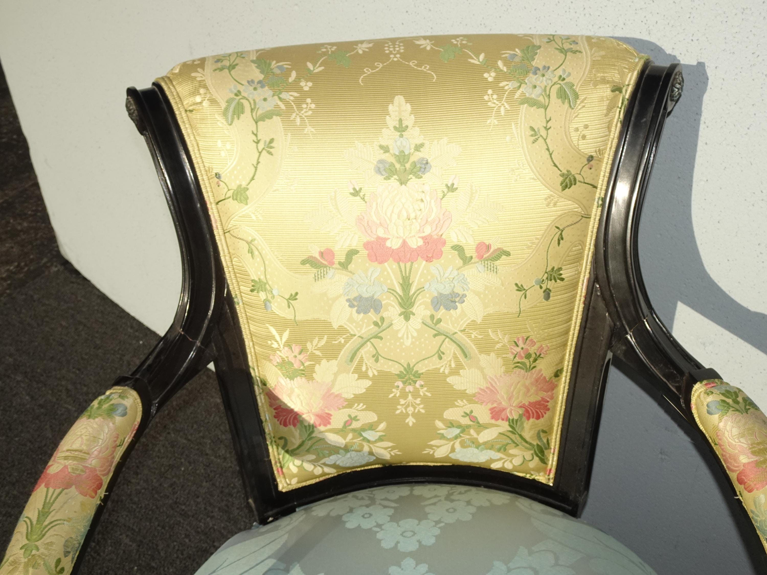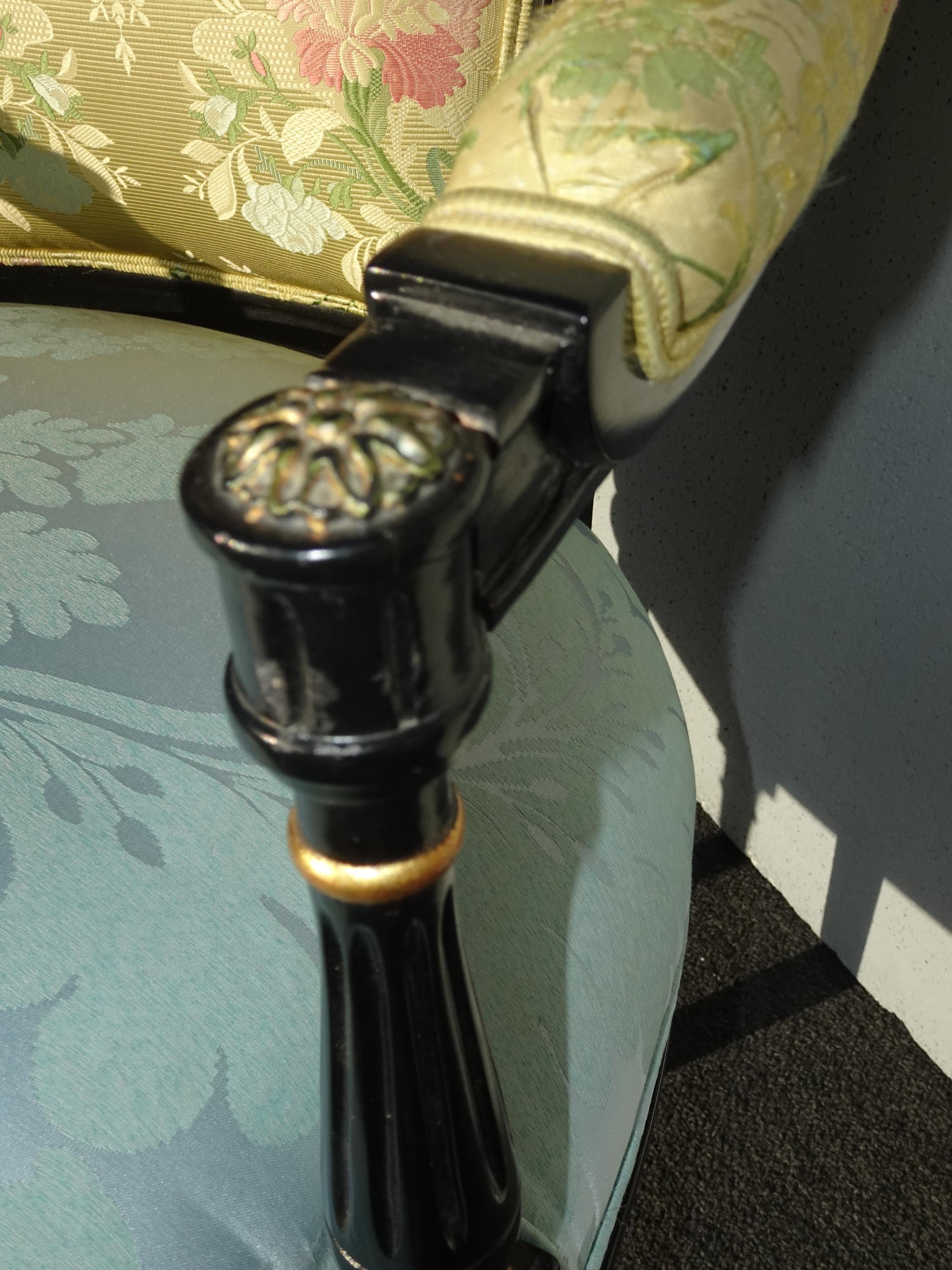 Vintage French Provincial Louis XVI Style Blue & Yellow Bergere Side Chair