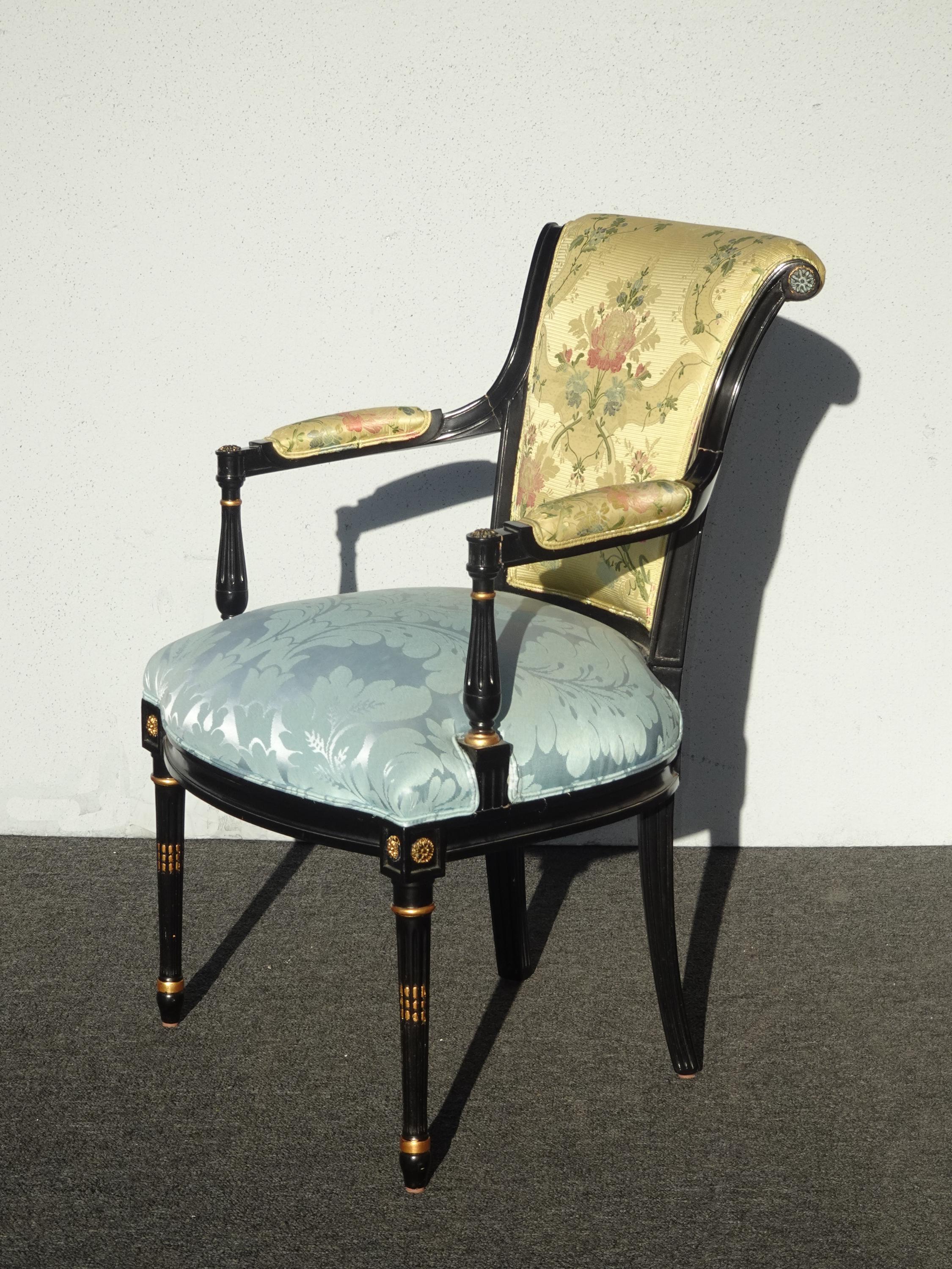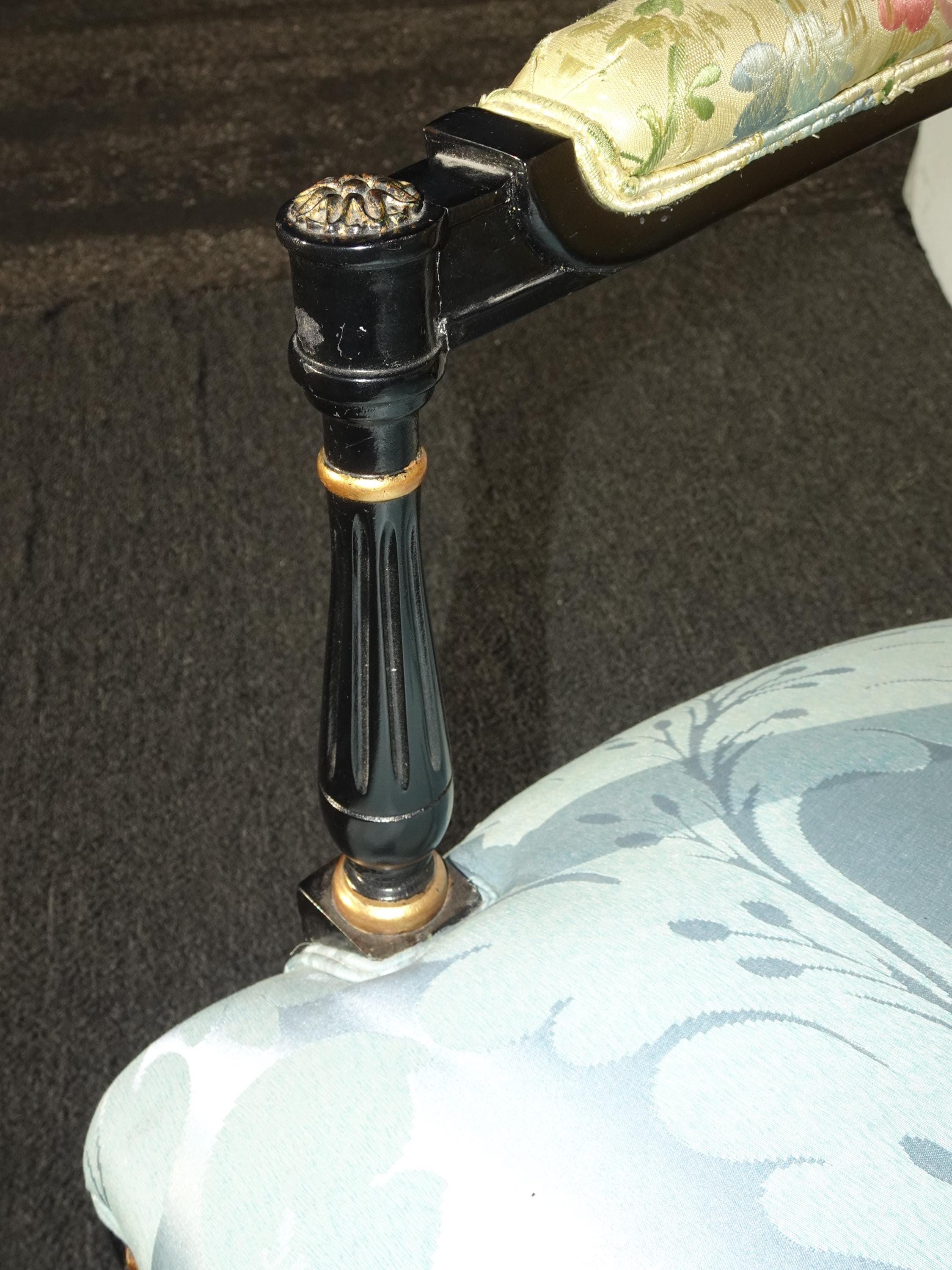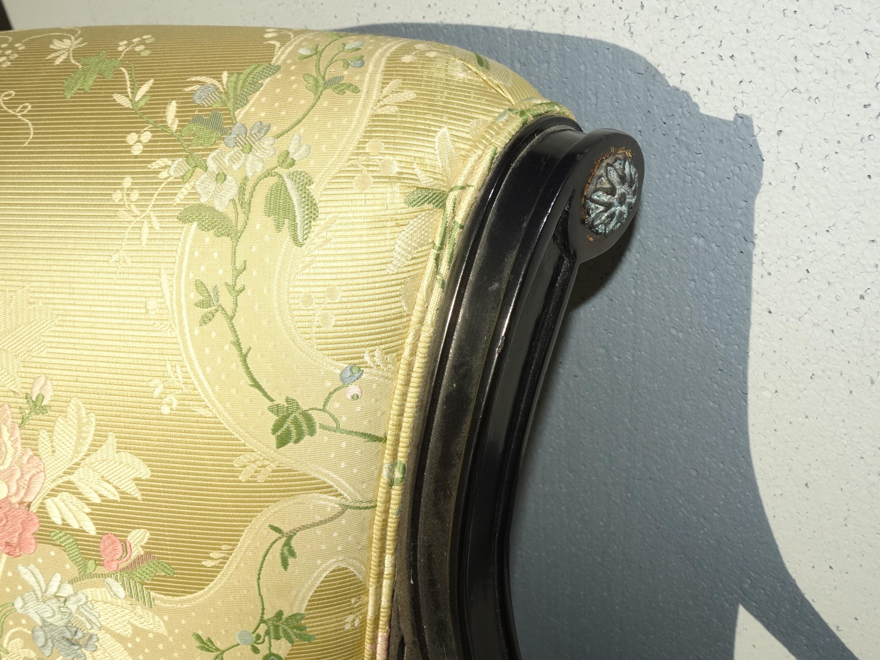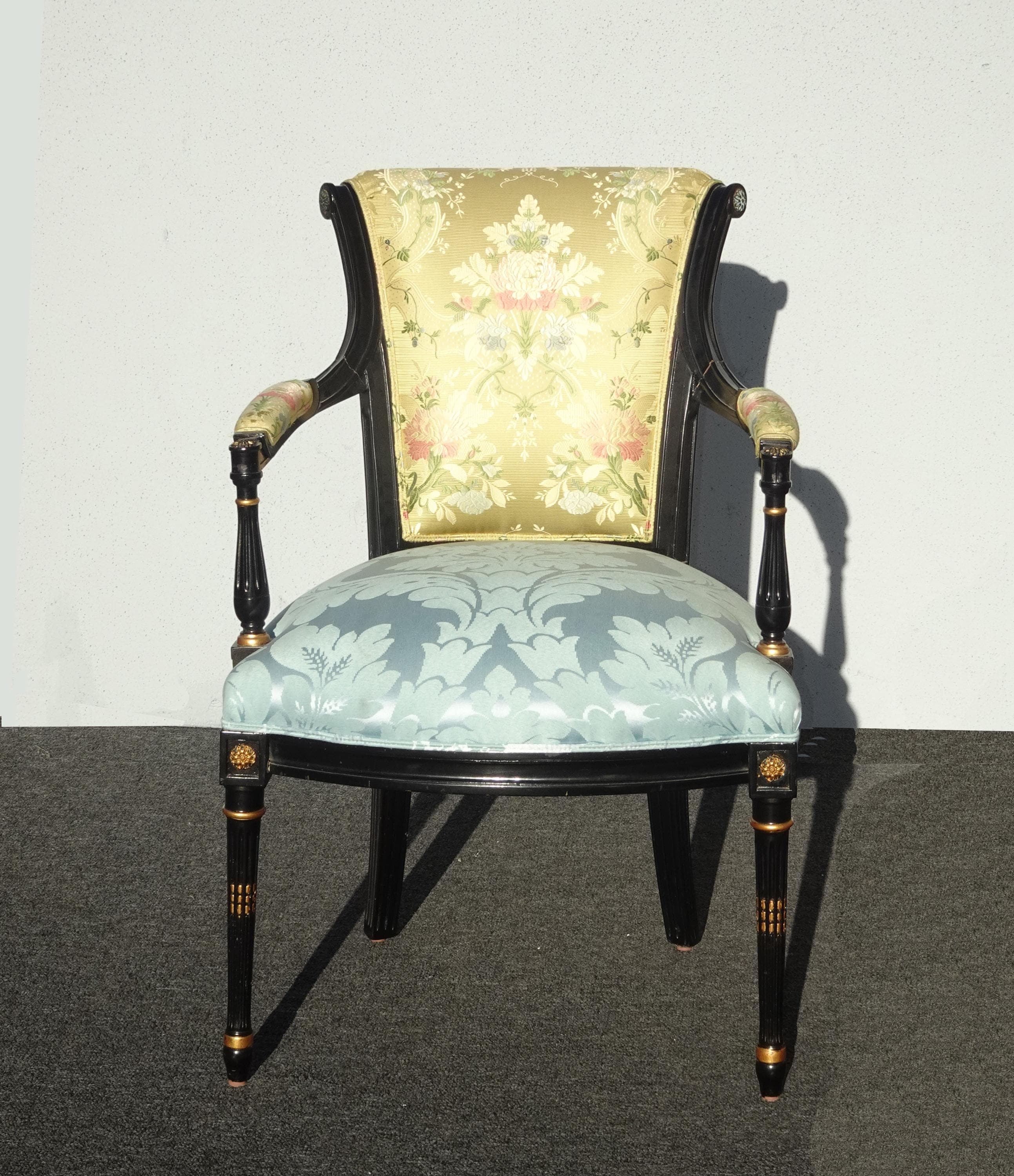Vintage French Provincial Louis XVI Style Blue & Yellow Bergere Side Chair