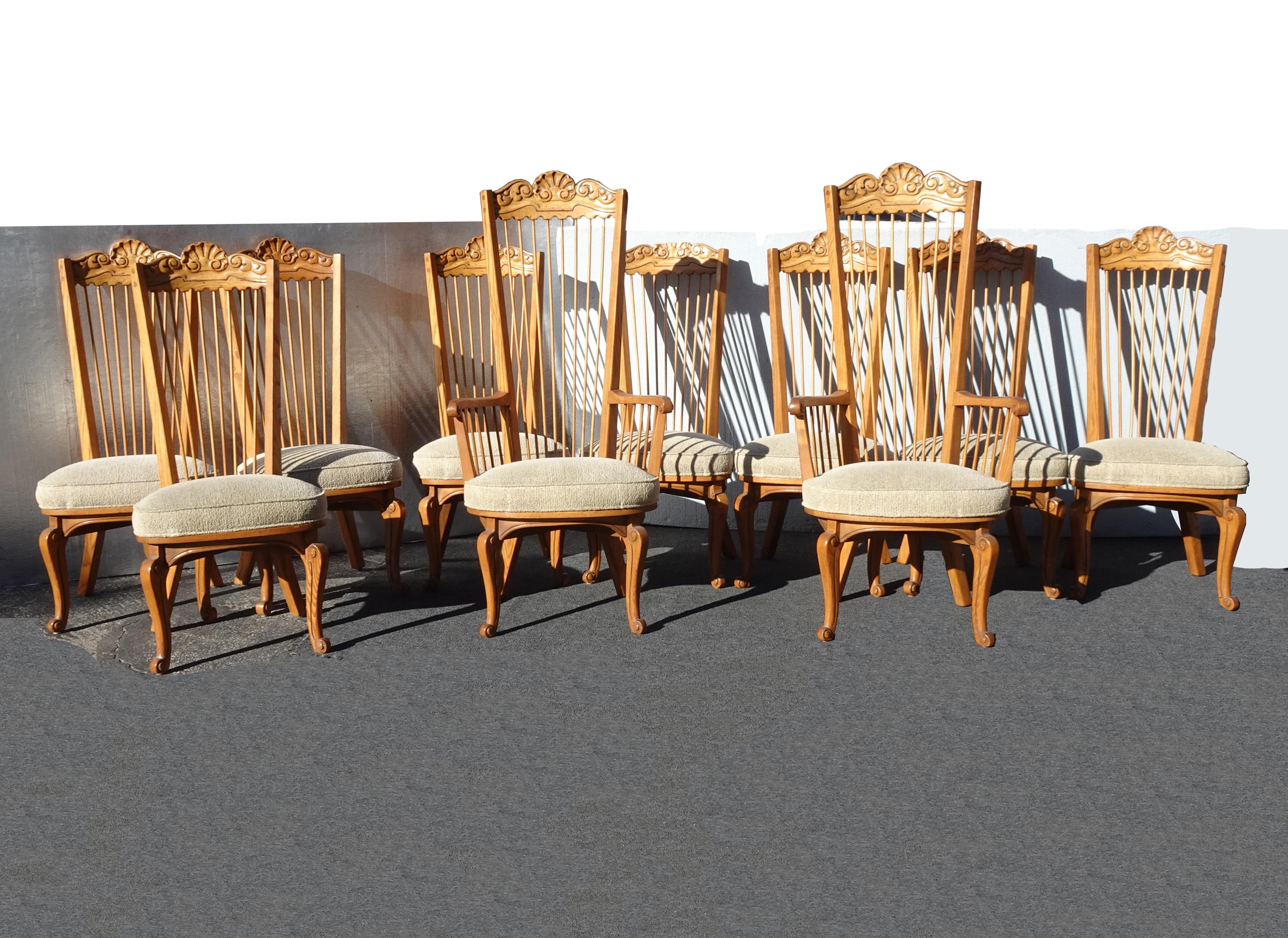 This ad is to sell 8 Chairs BUT the whole set includes 10 chairs. We will consider splitting it to 8 or 6 chairs. The Price will be adjusted for the amount of chairs you purchase. Please contact us.