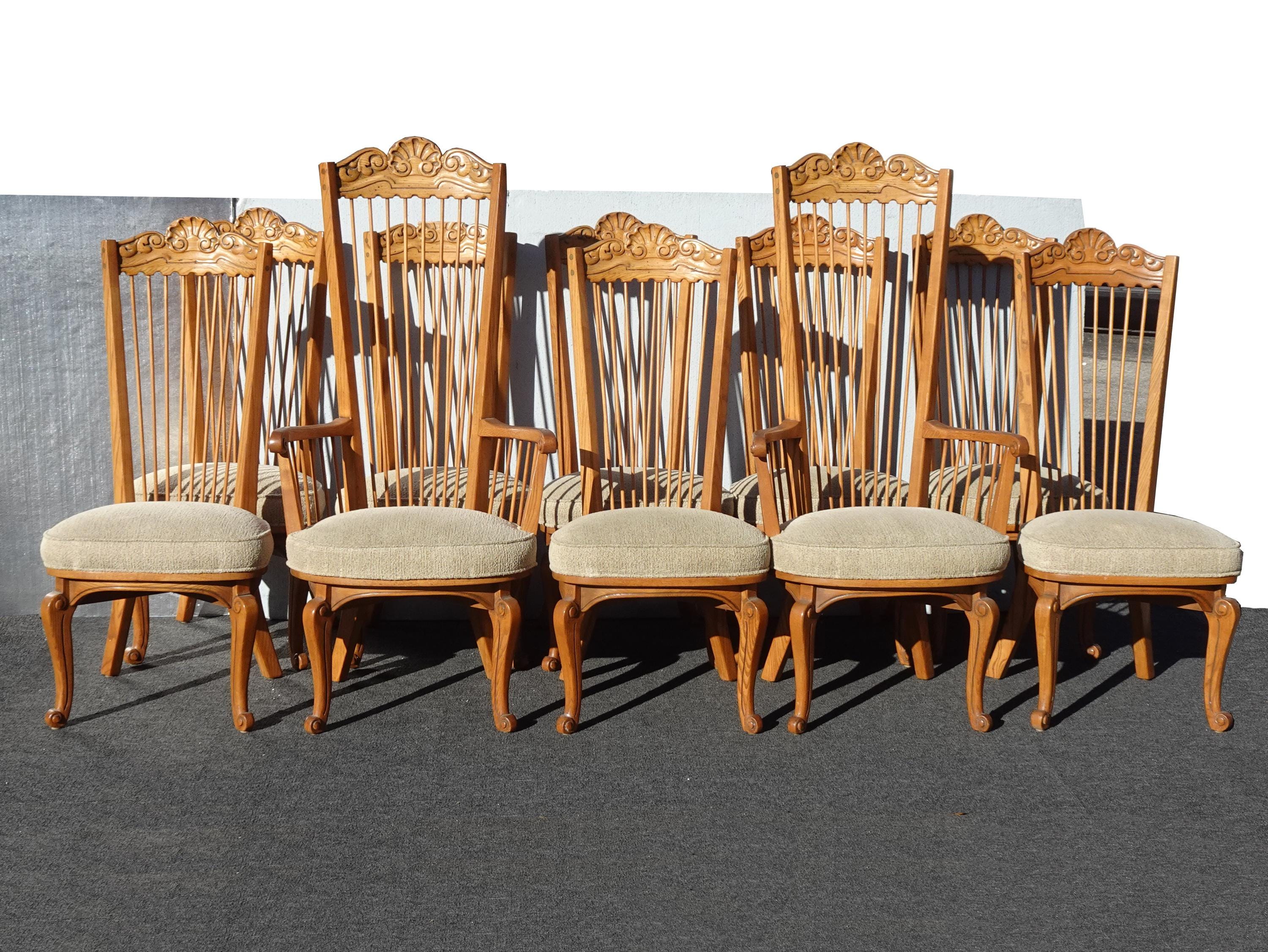 Set of 8 Vintage Mid Century Enkeboll La Condesa Oak Highback Spindle Chairs