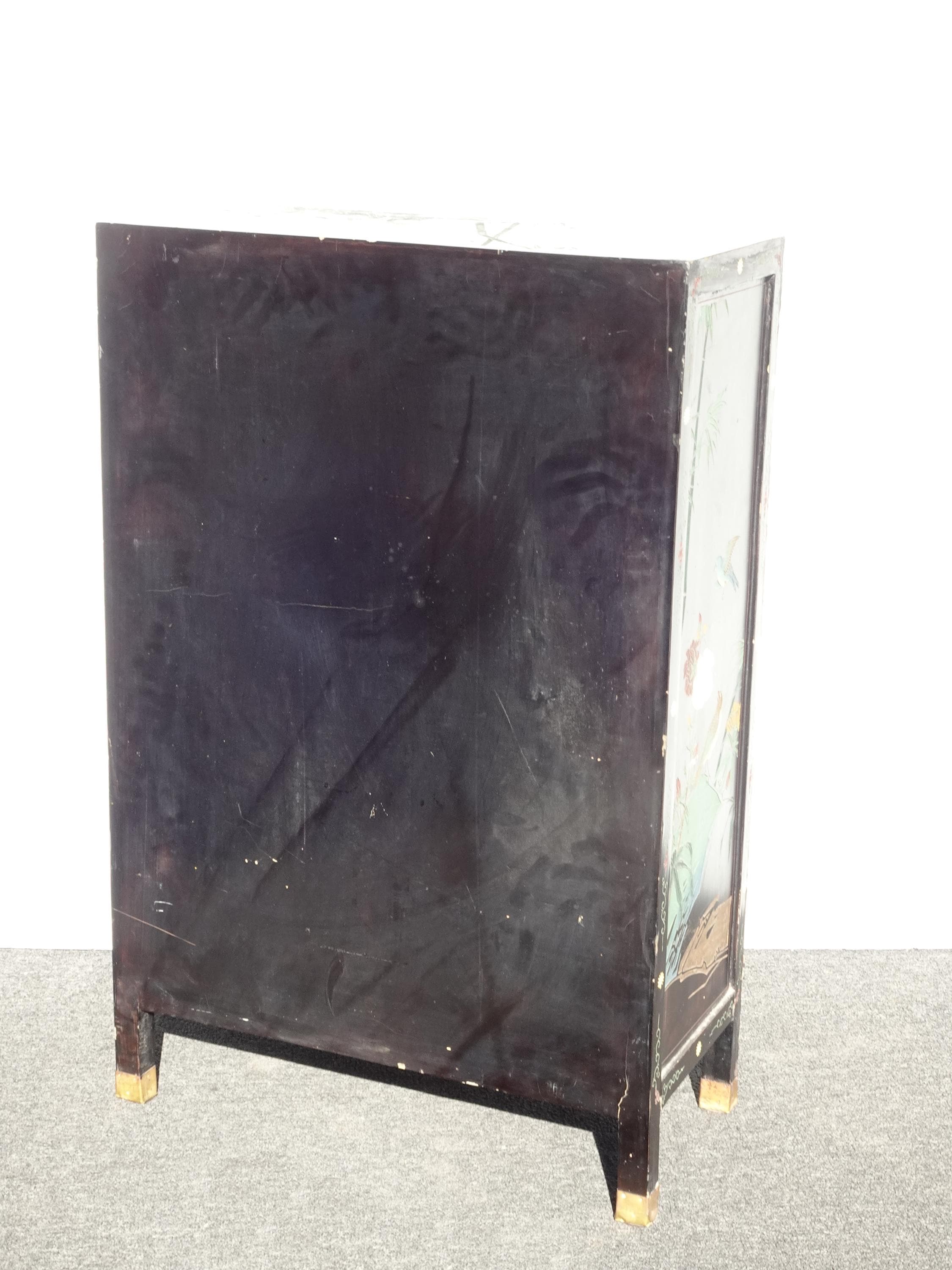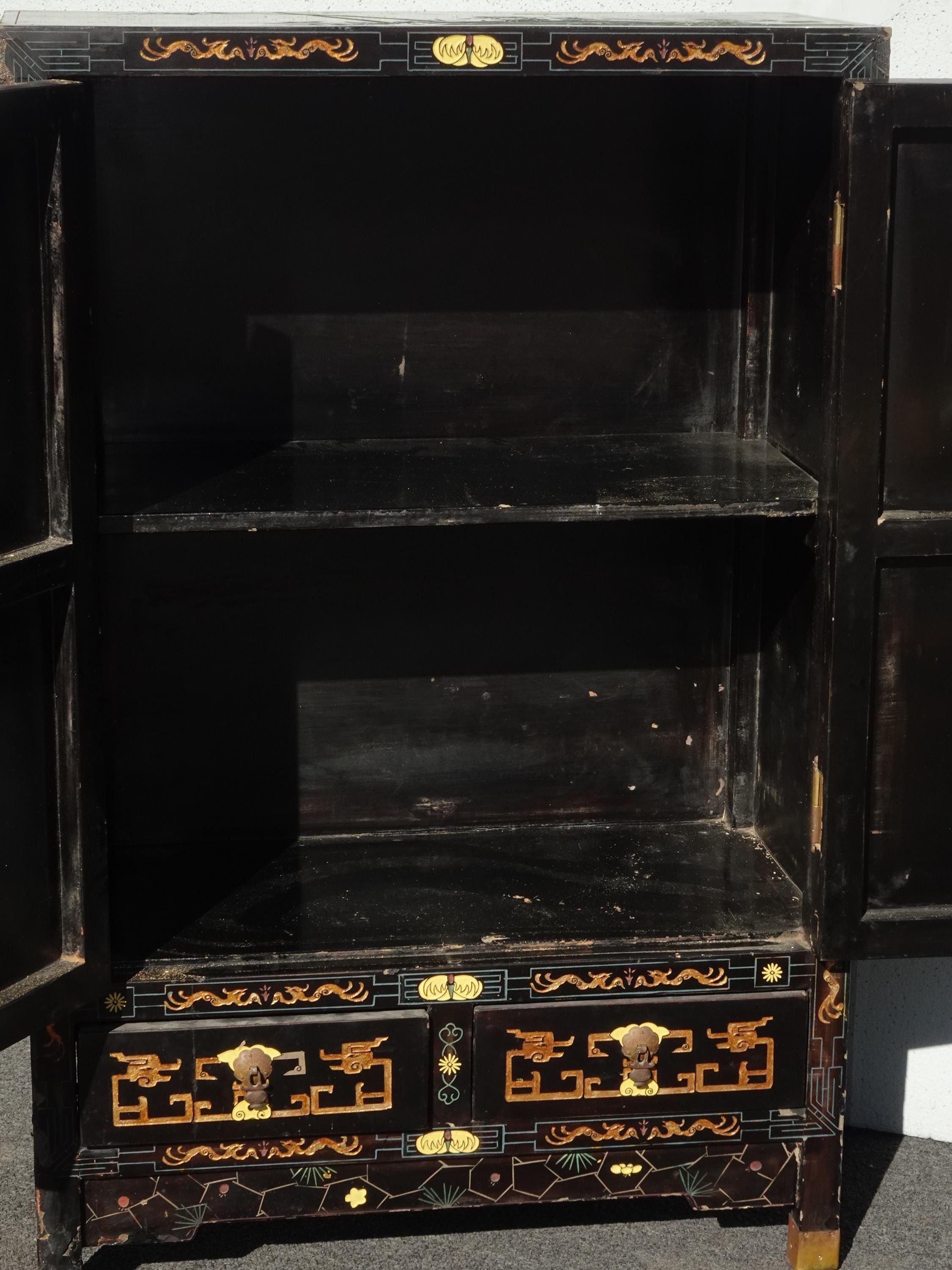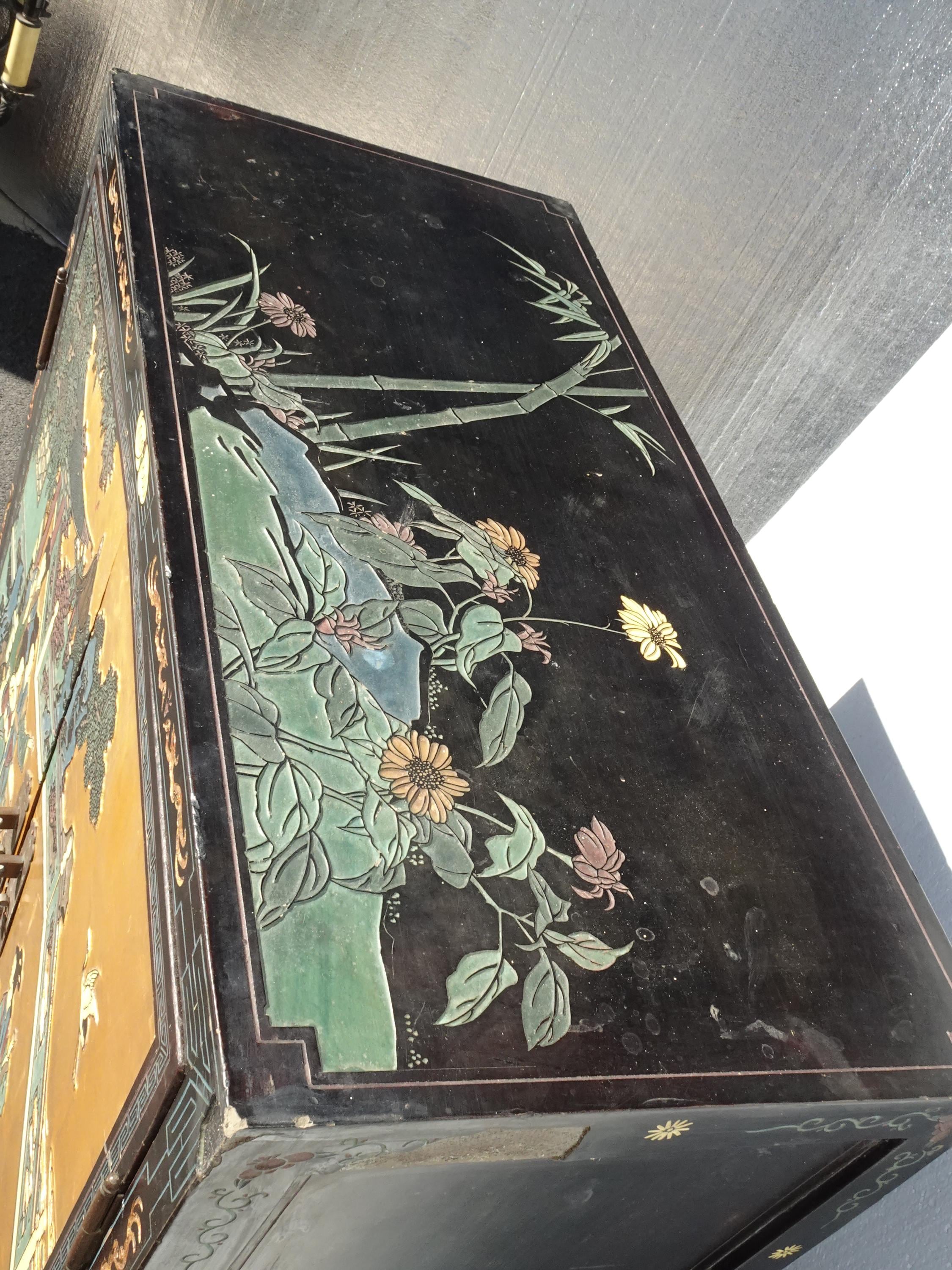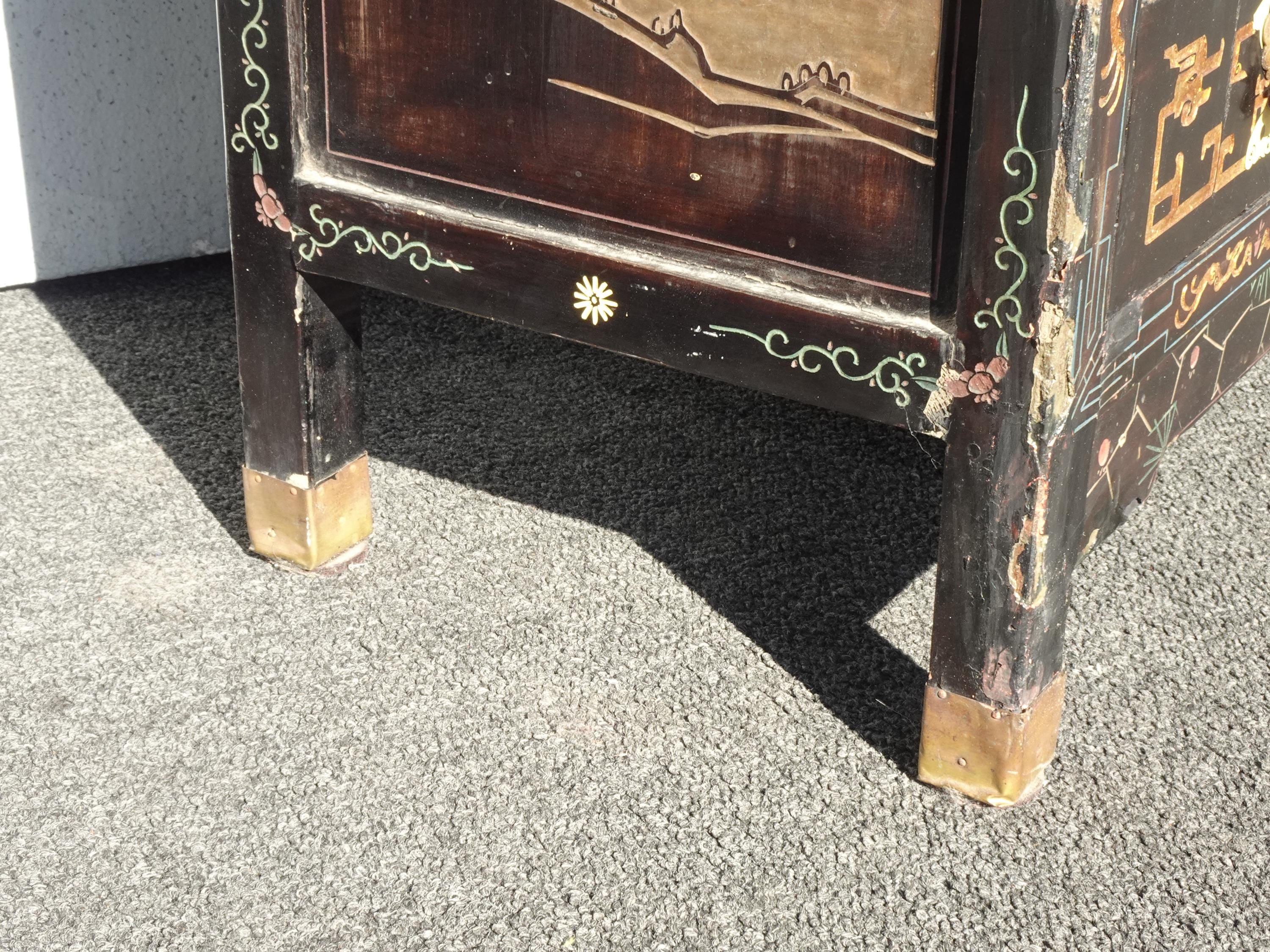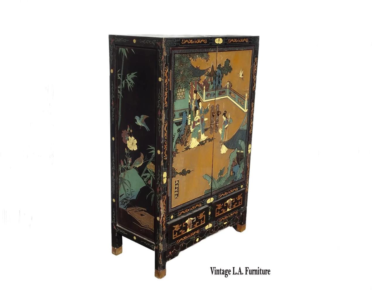 Vintage Oriental Asian Black Lacquer Cabinet Chinoiserie Side Table Signed Asis
