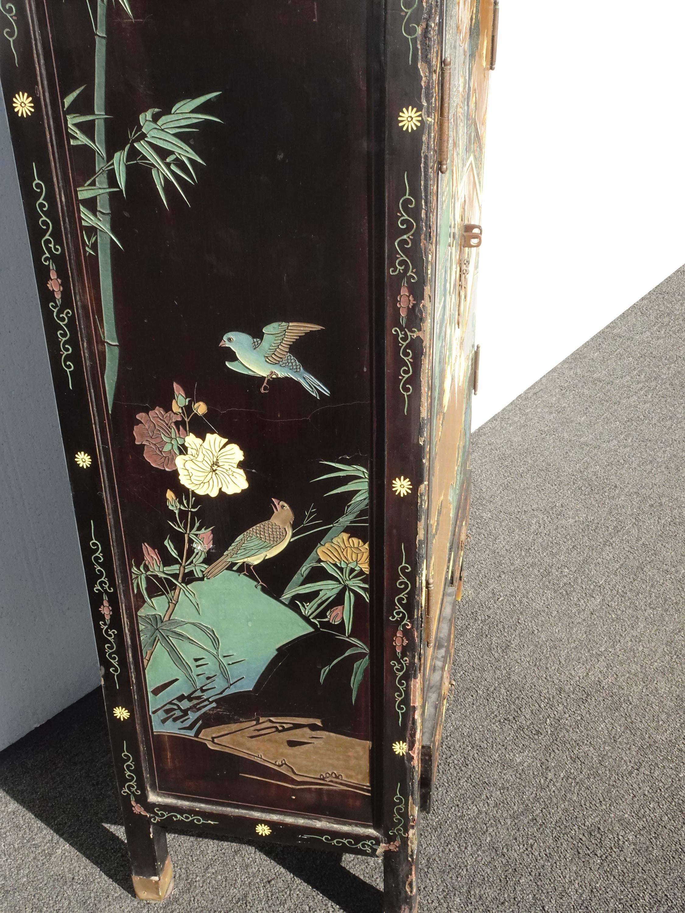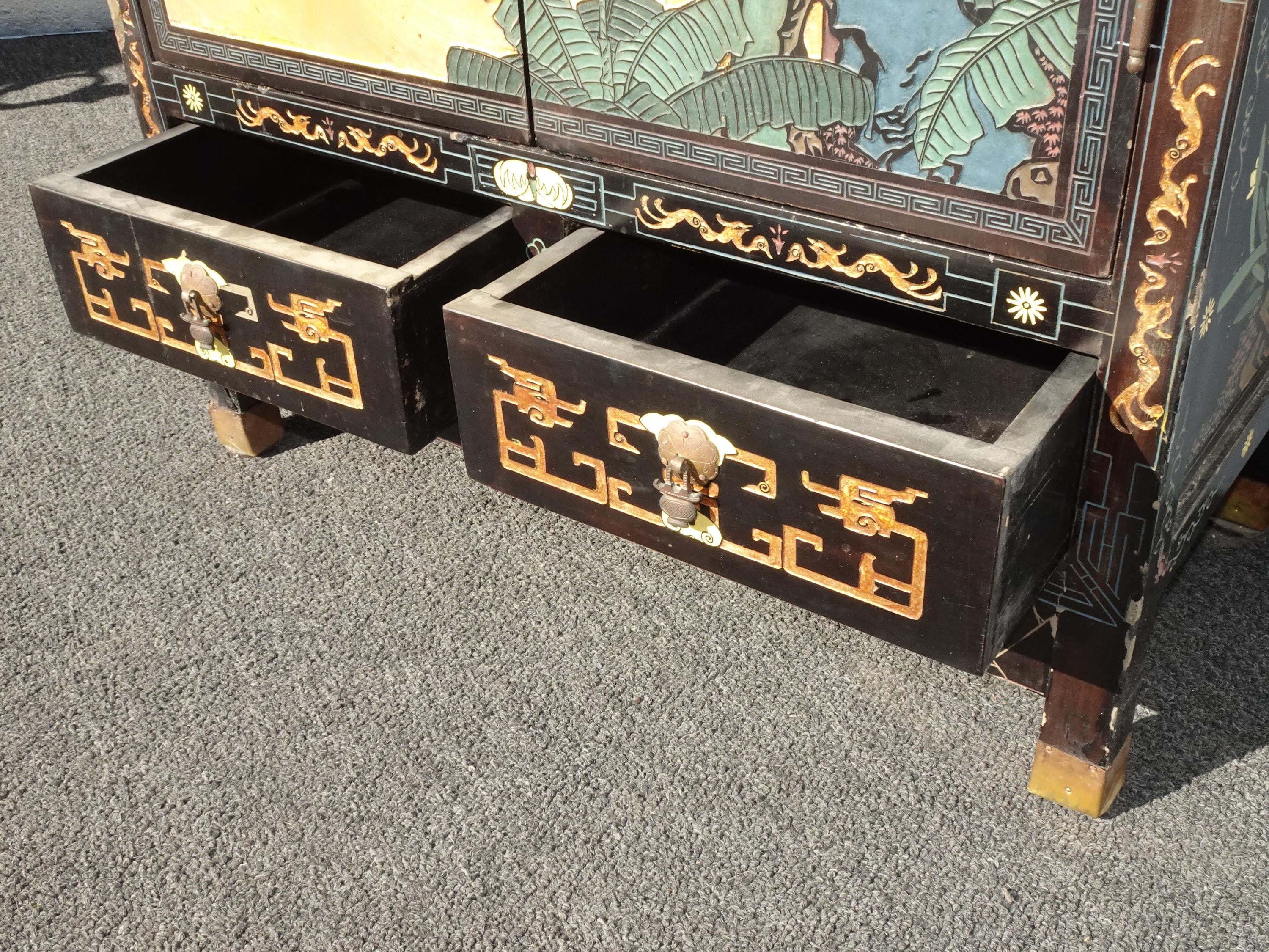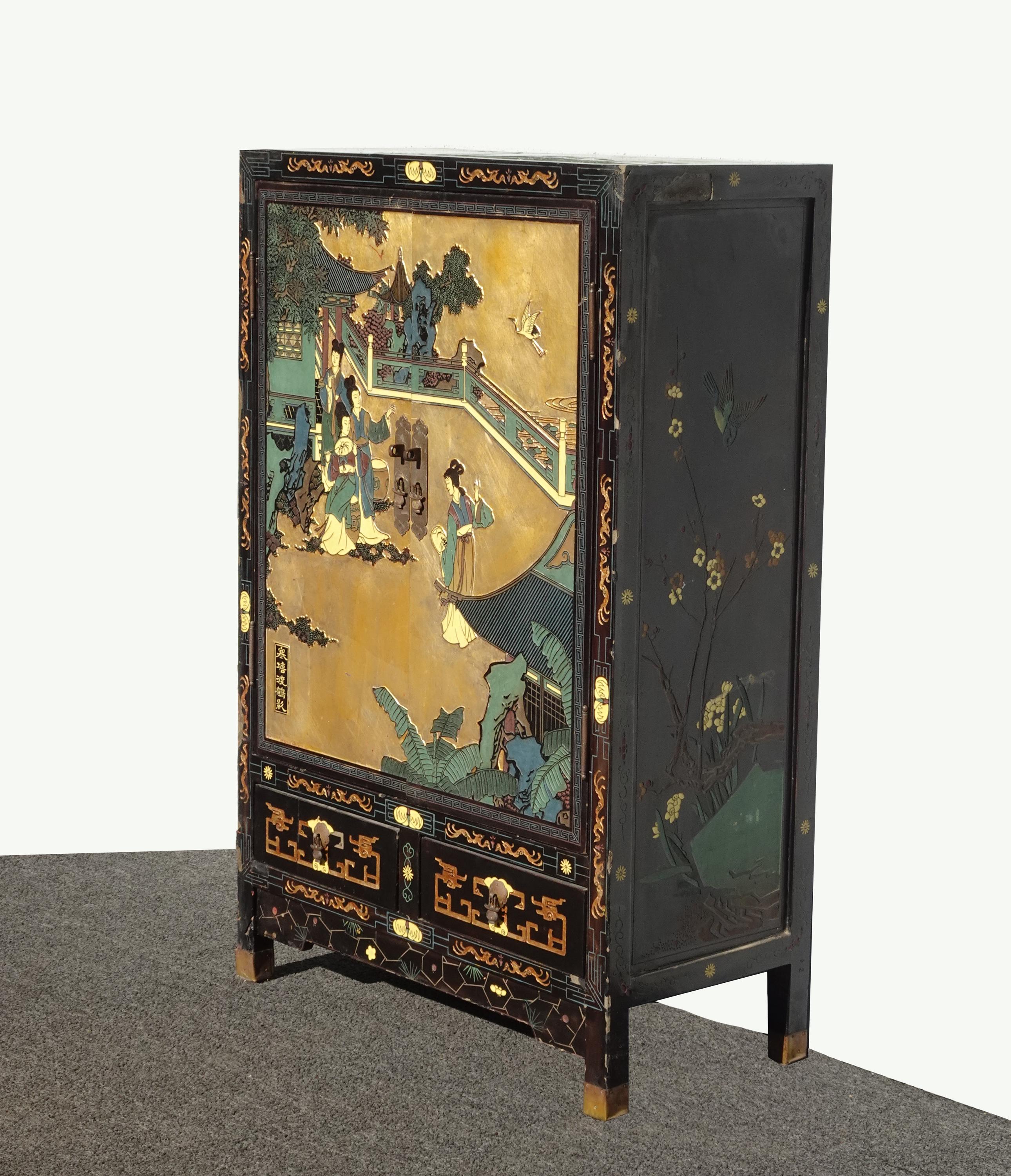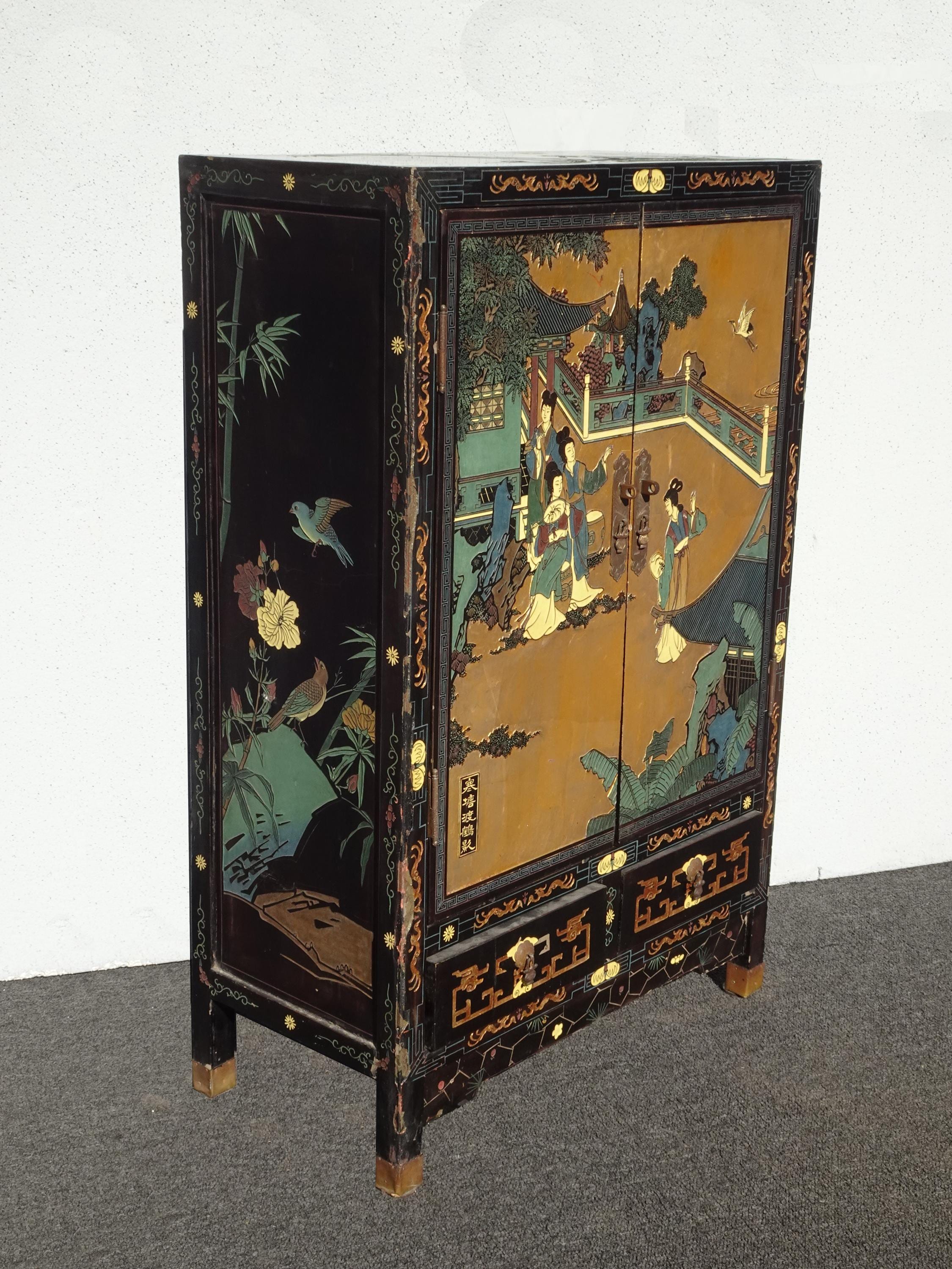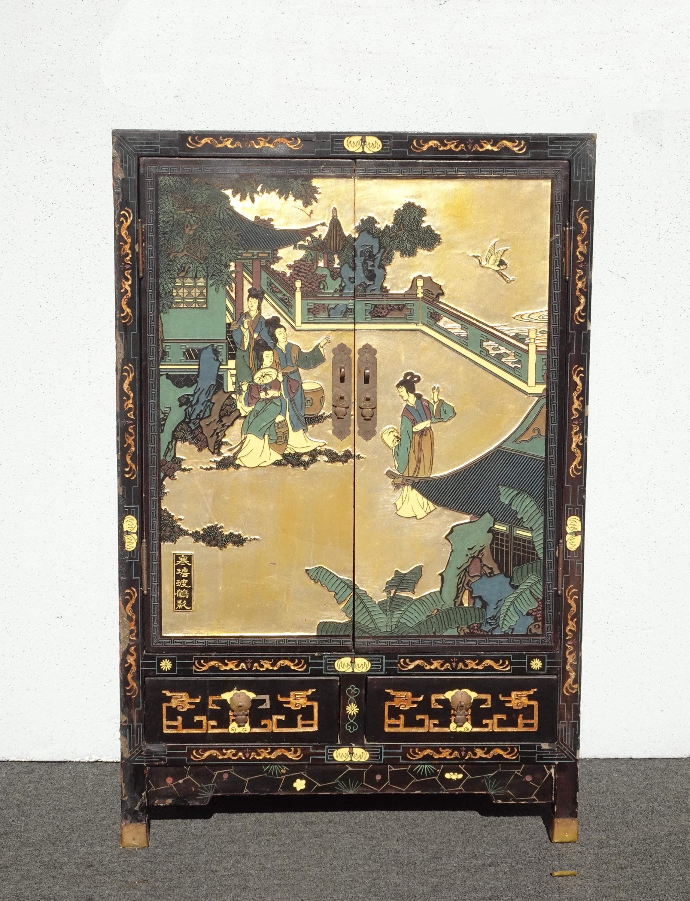 Vintage Oriental Asian Black Lacquer Cabinet Chinoiserie Side Table Signed Asis