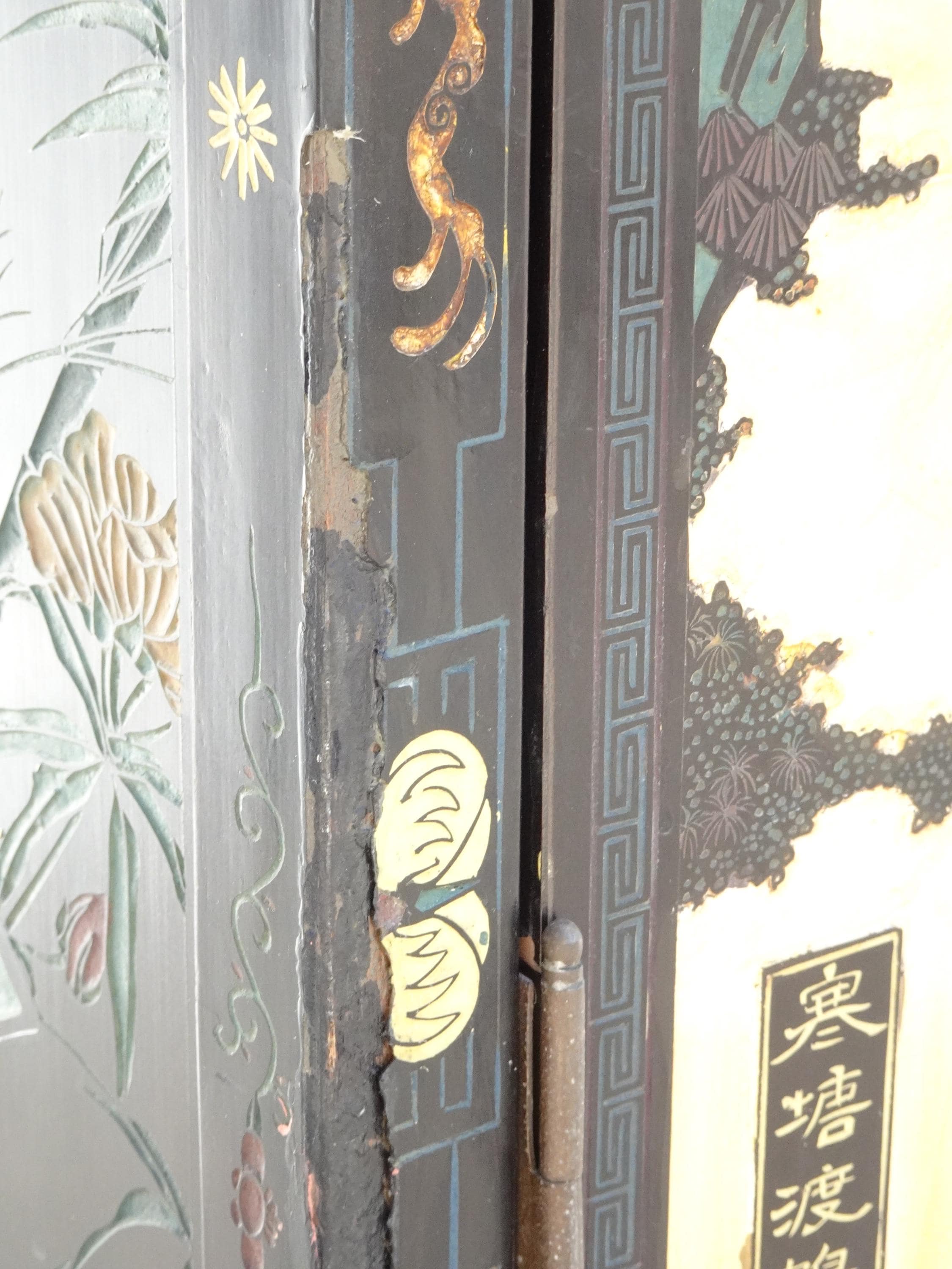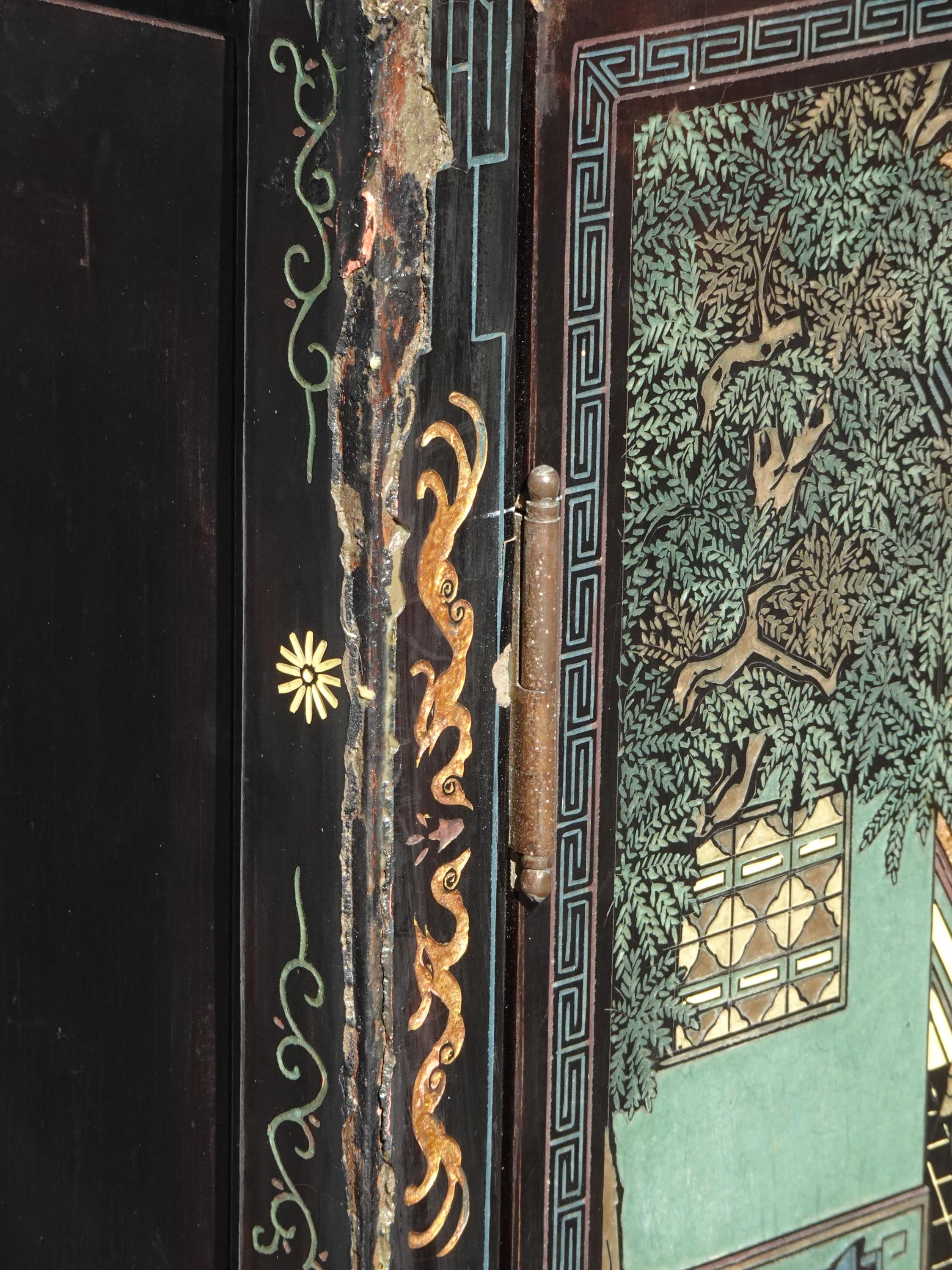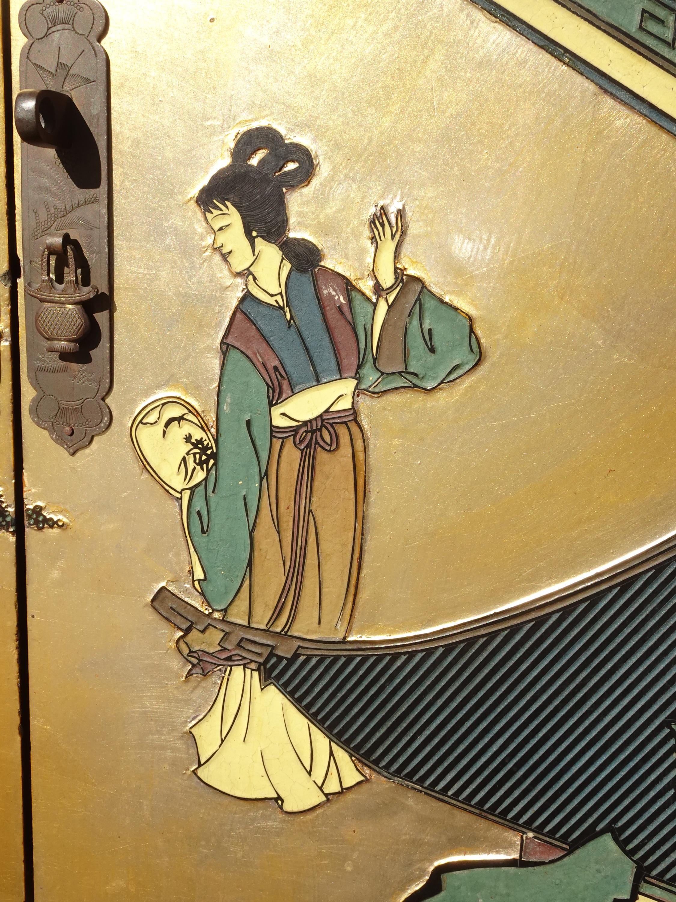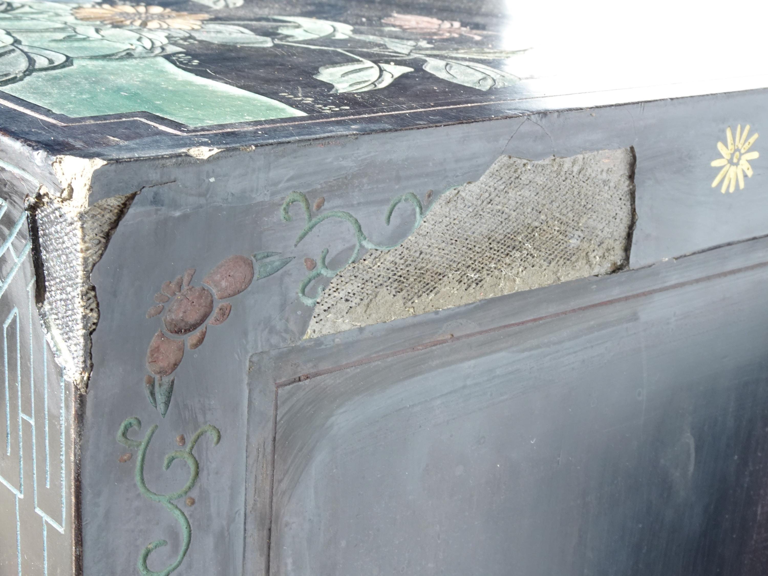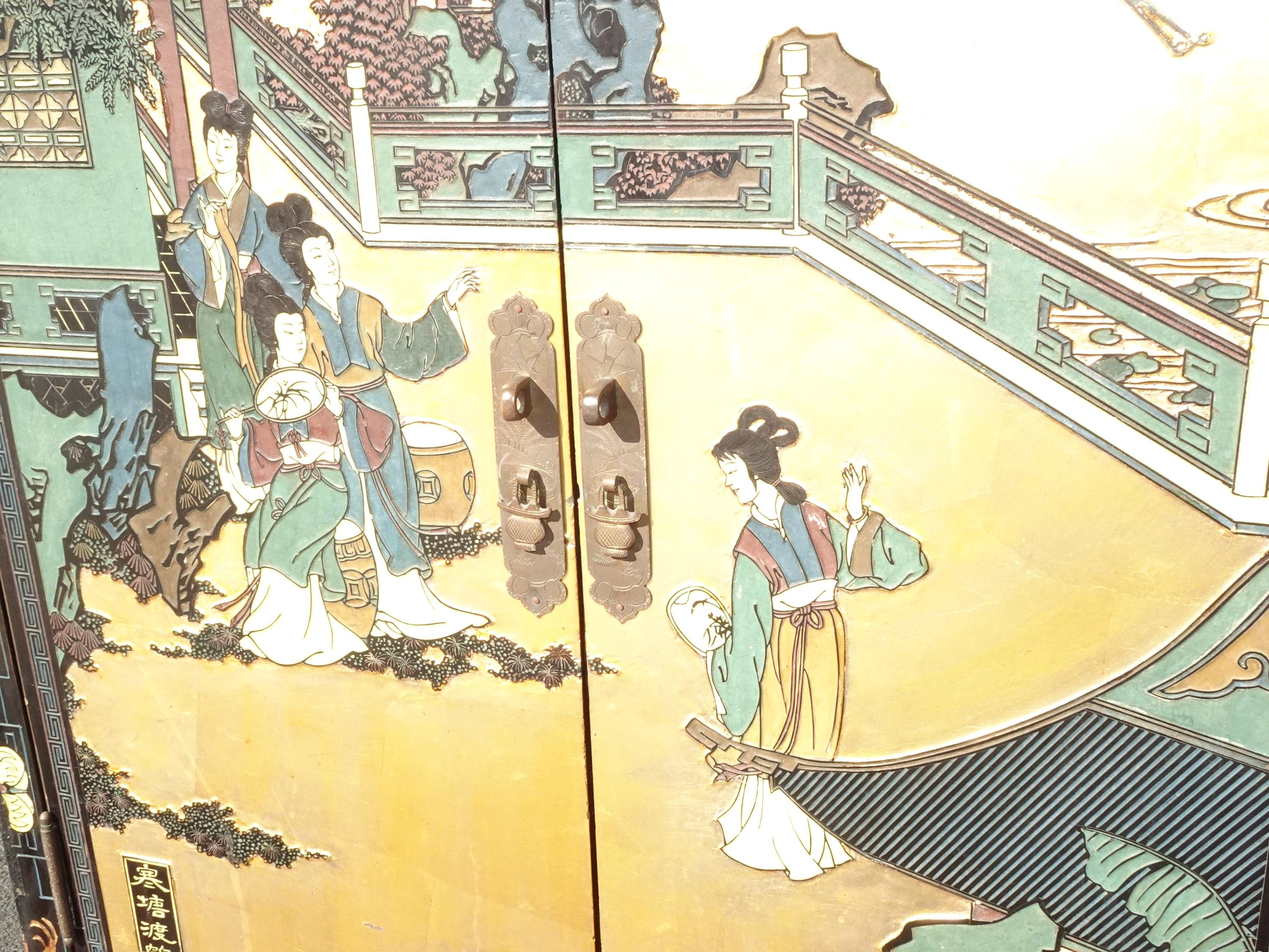 Vintage Oriental Asian Black Lacquer Cabinet Chinoiserie Side Table Signed Asis