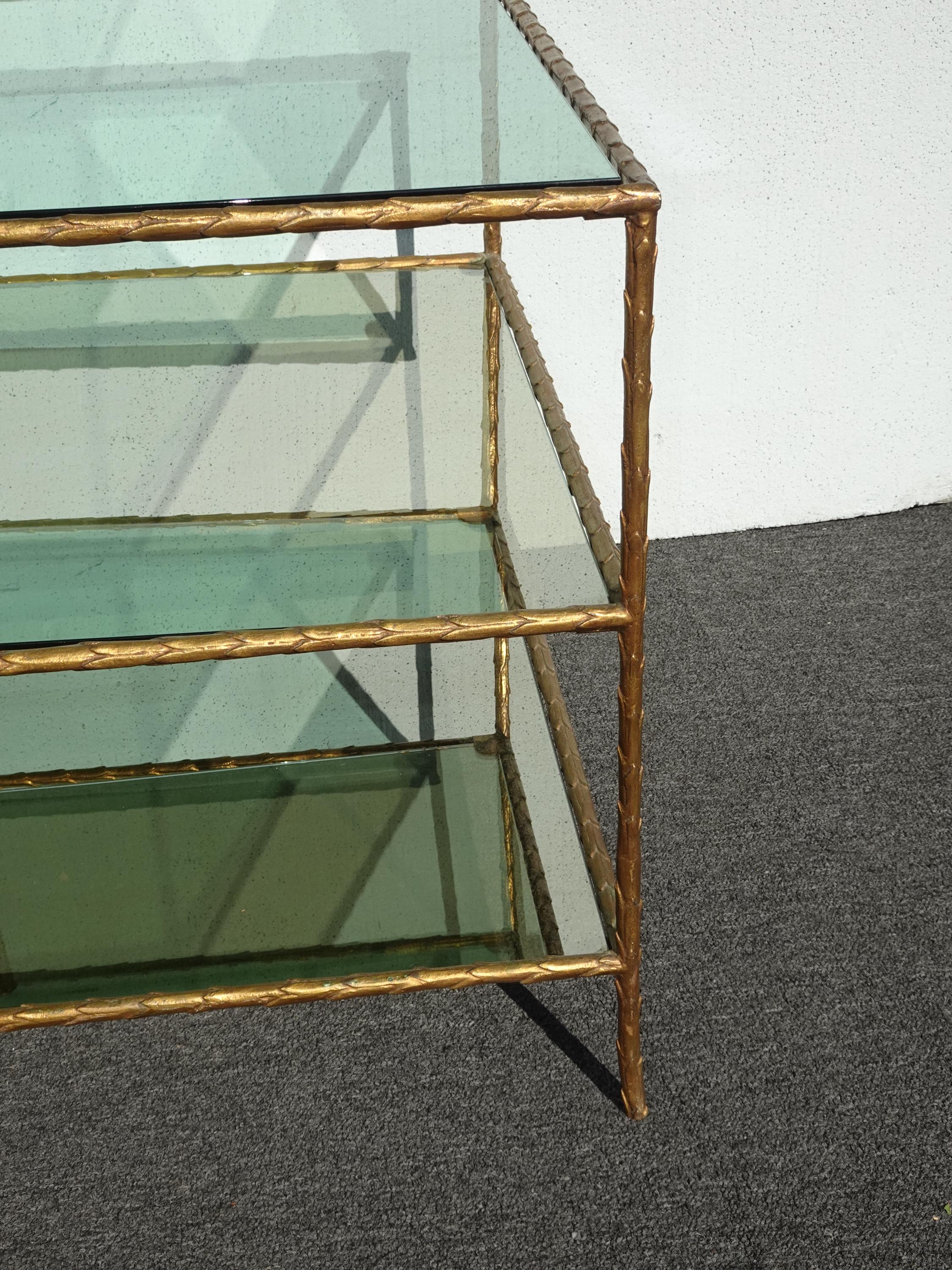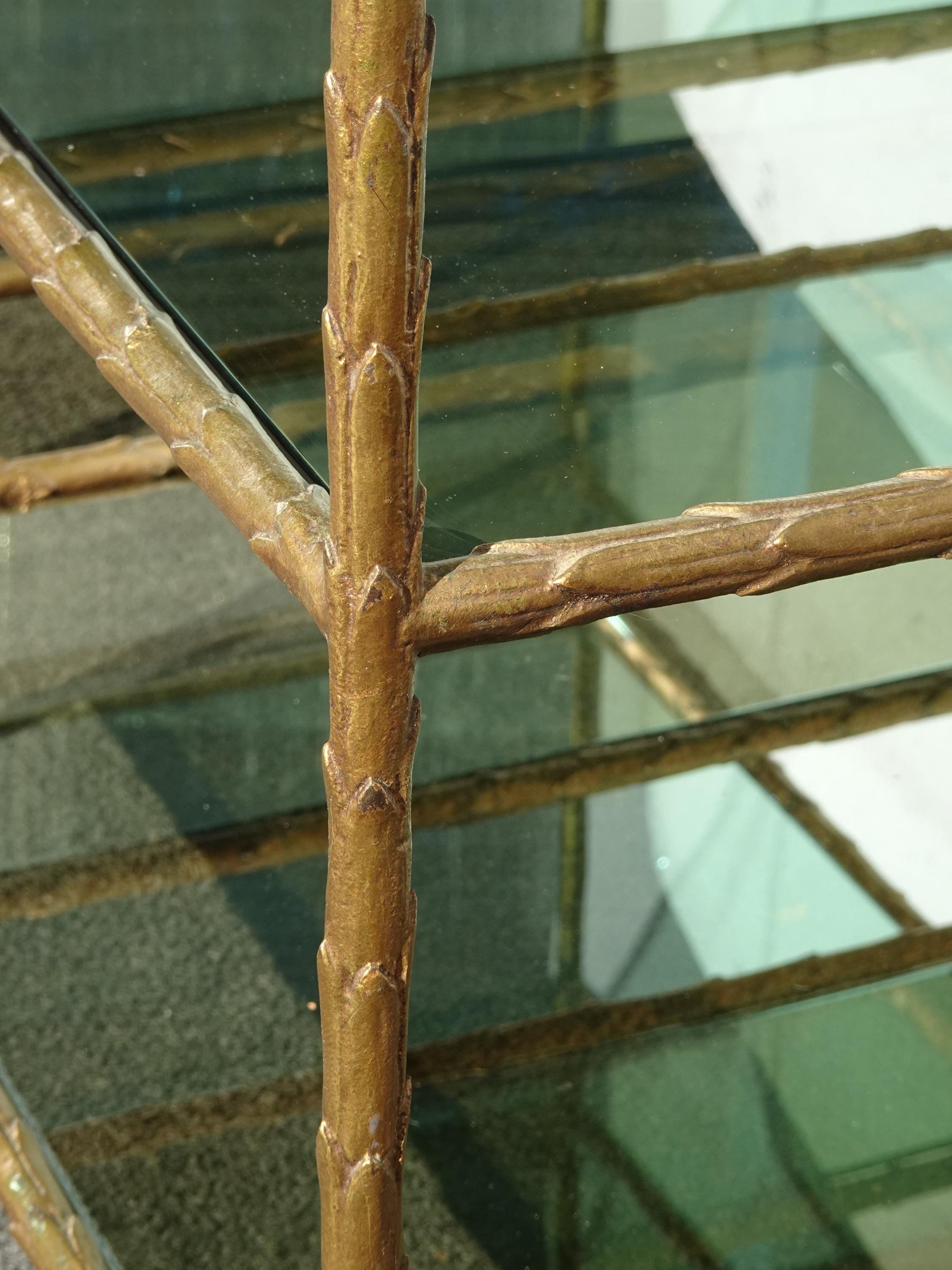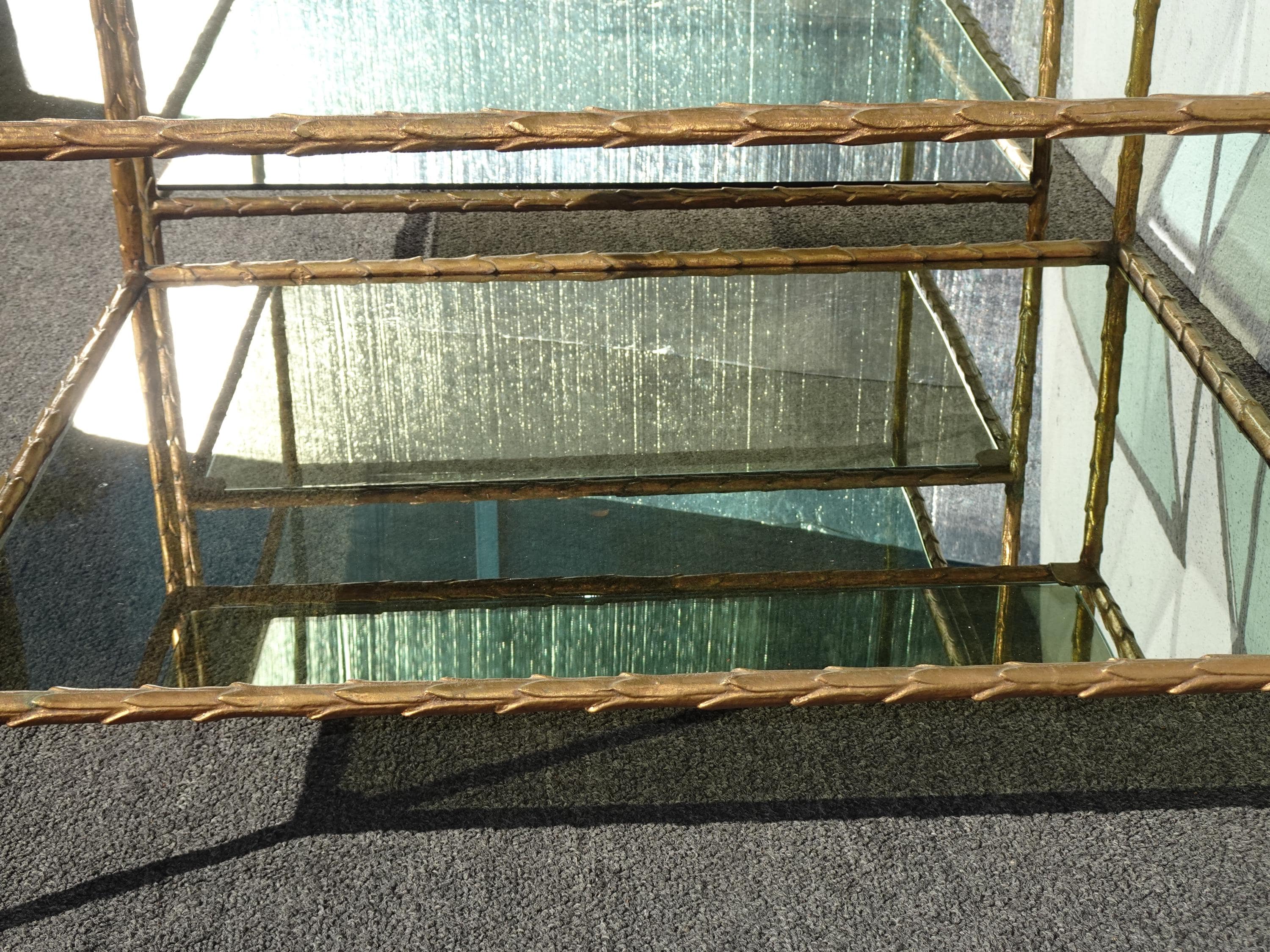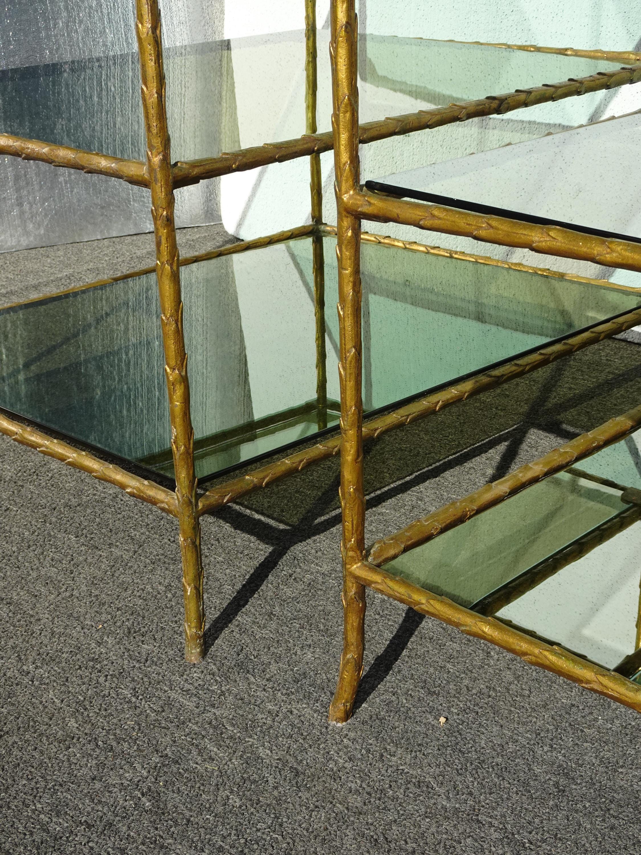 Pair of Vintage Three Tier Brass Bronze Side Tables w Etched Leaf Frames