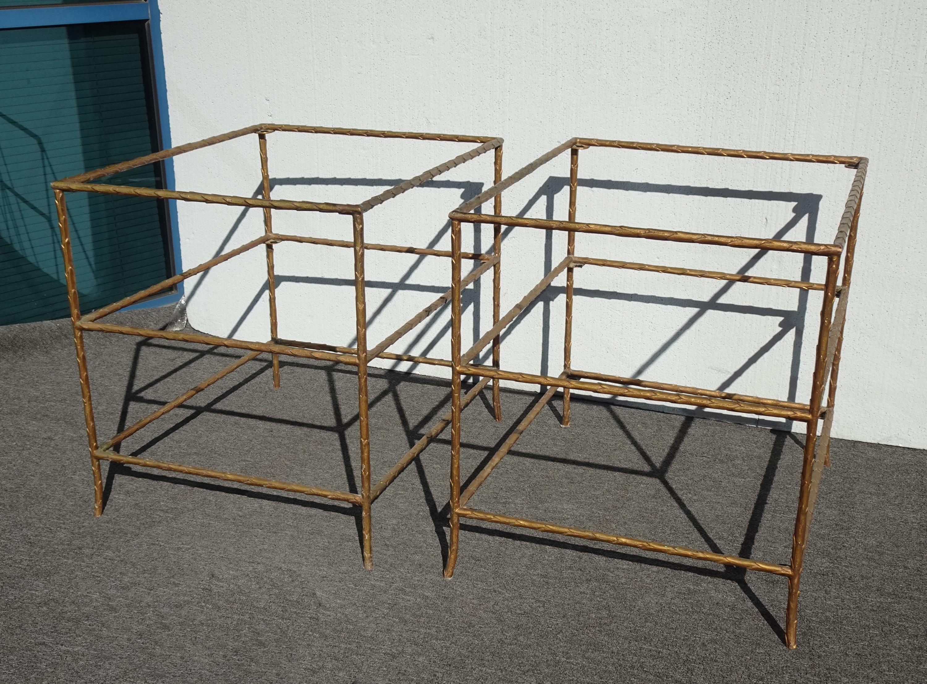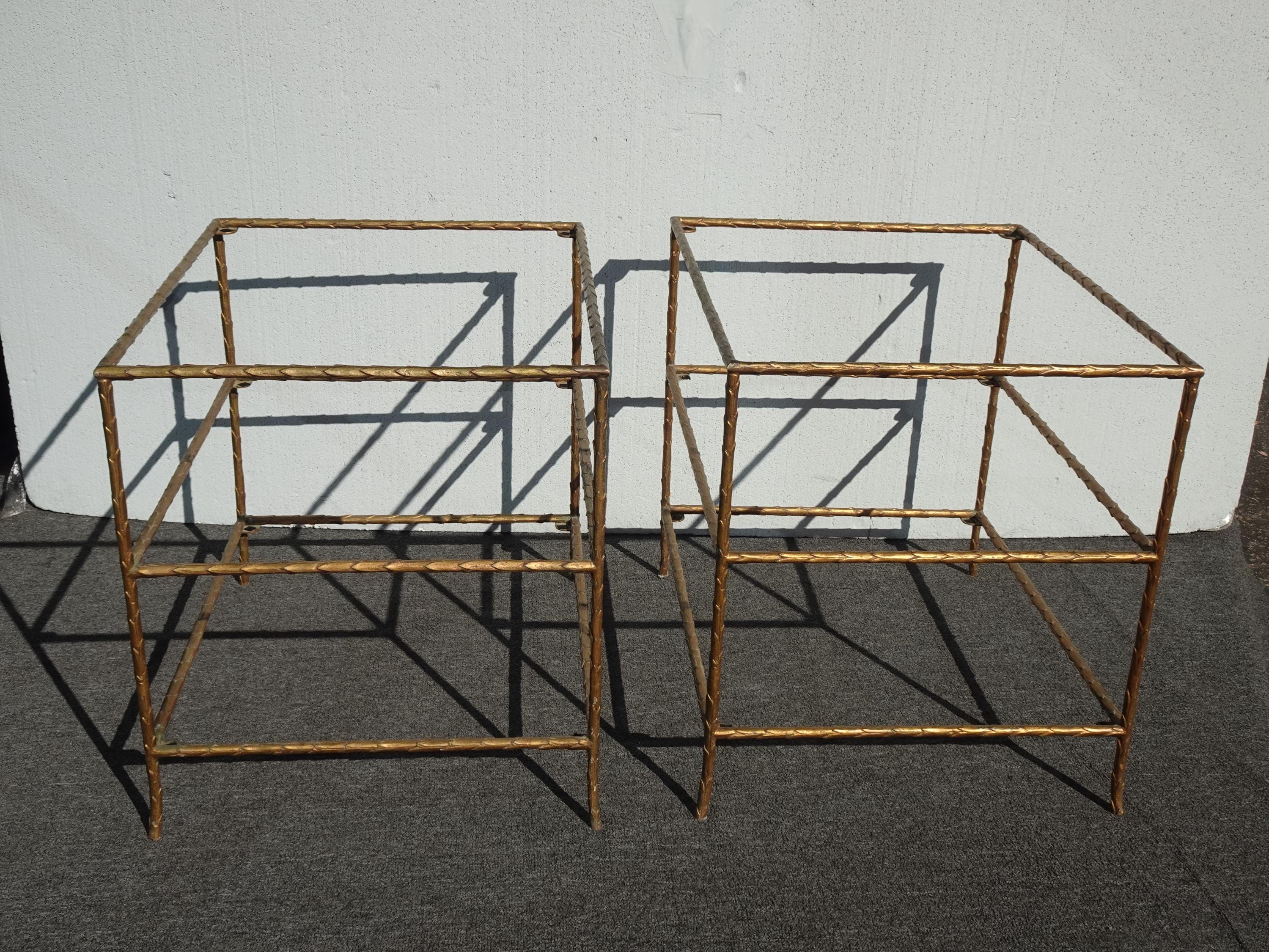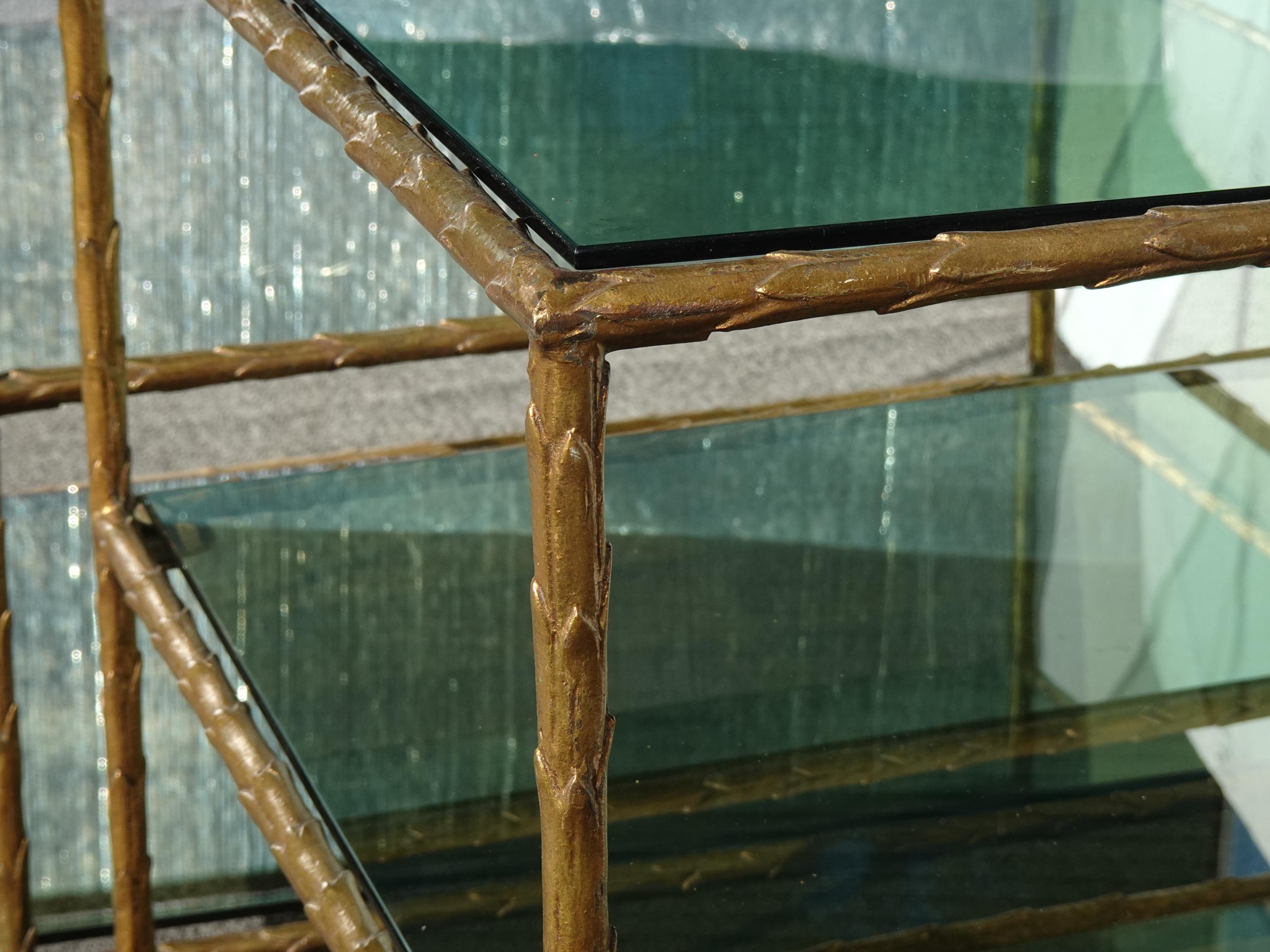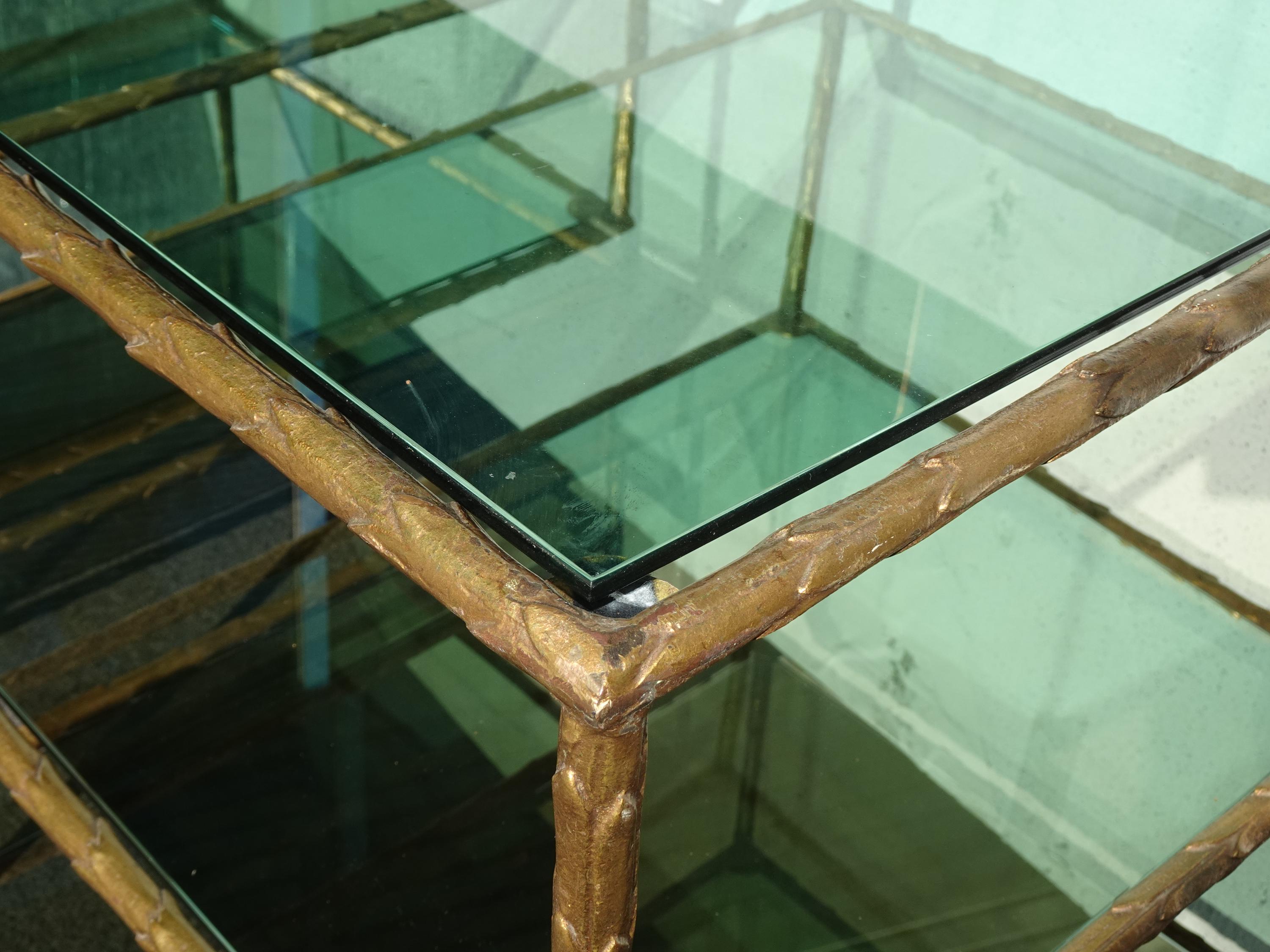 Pair of Vintage Three Tier Brass Bronze Side Tables w Etched Leaf Frames