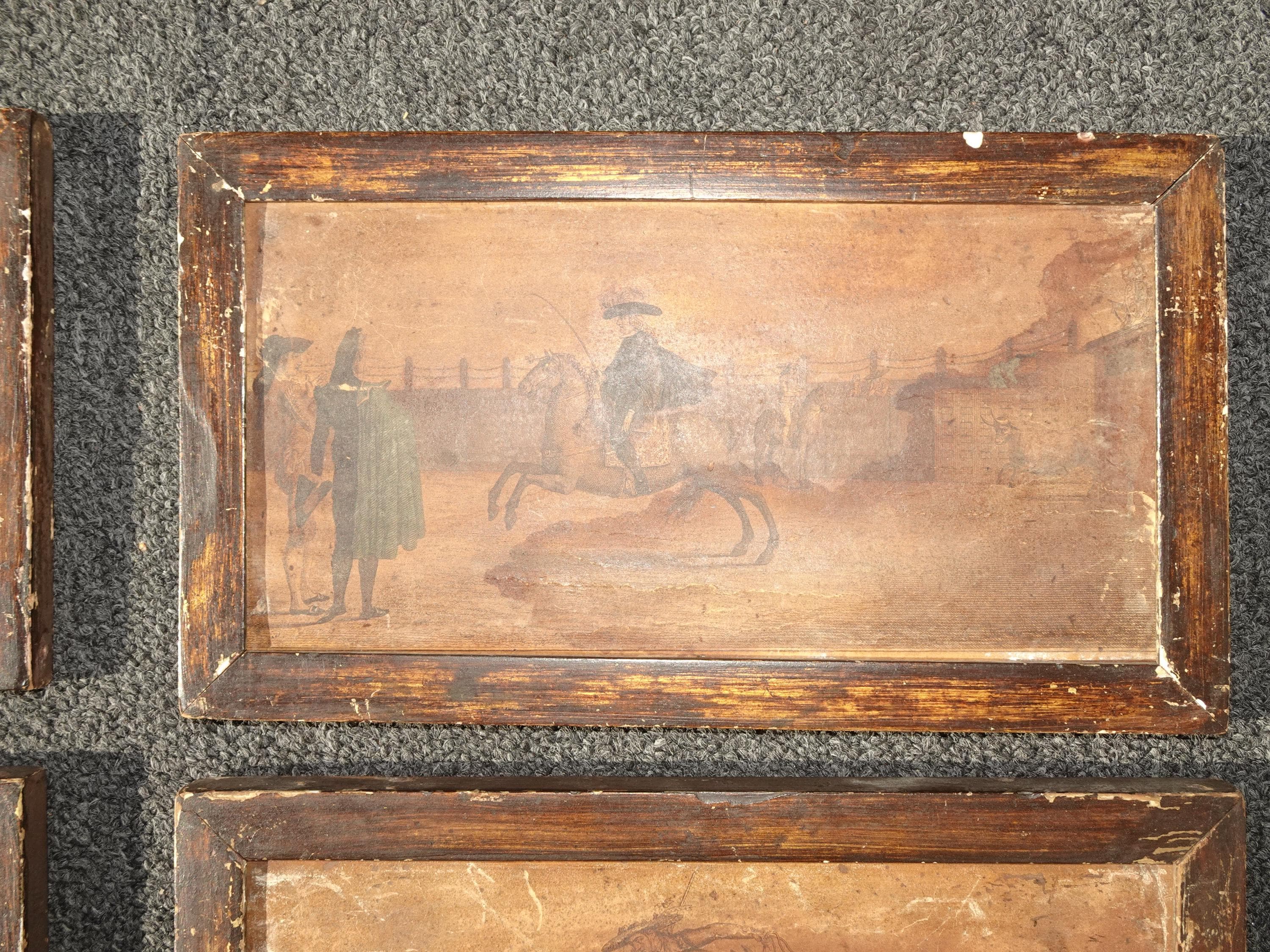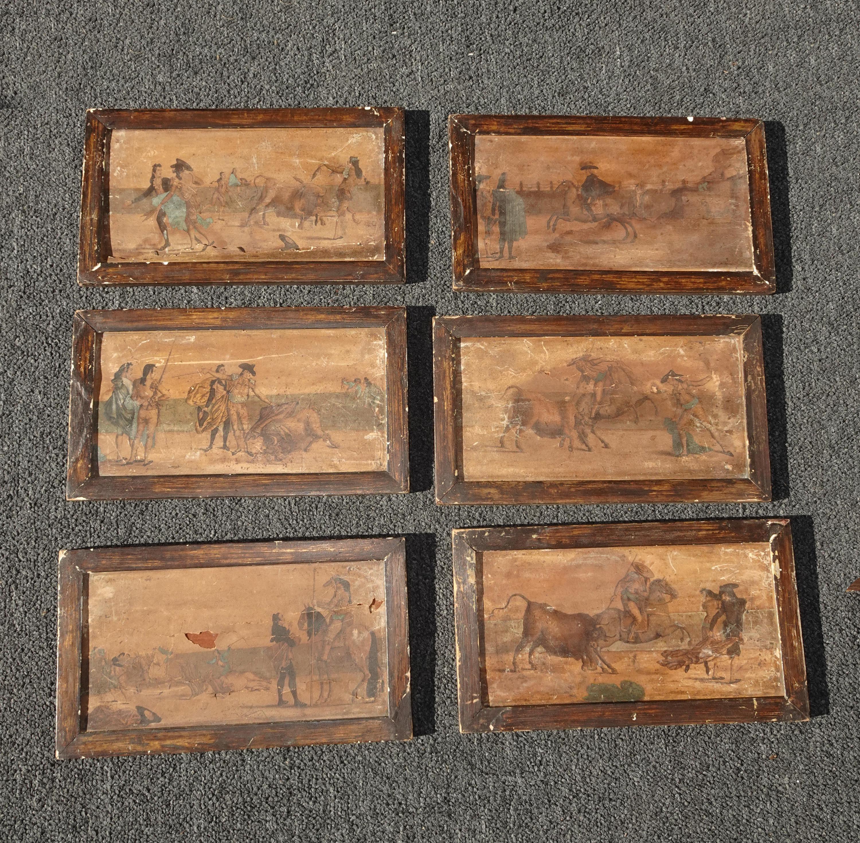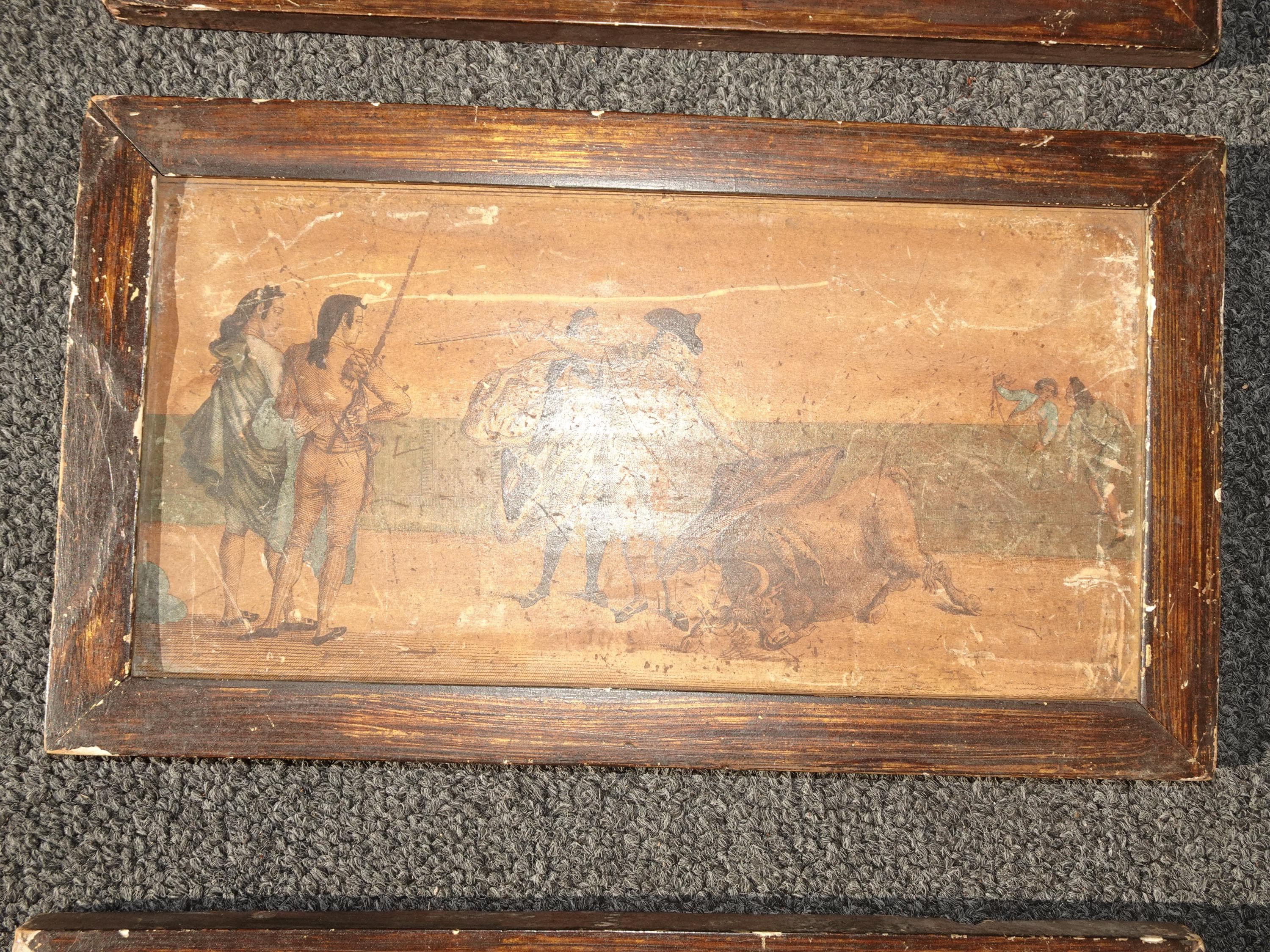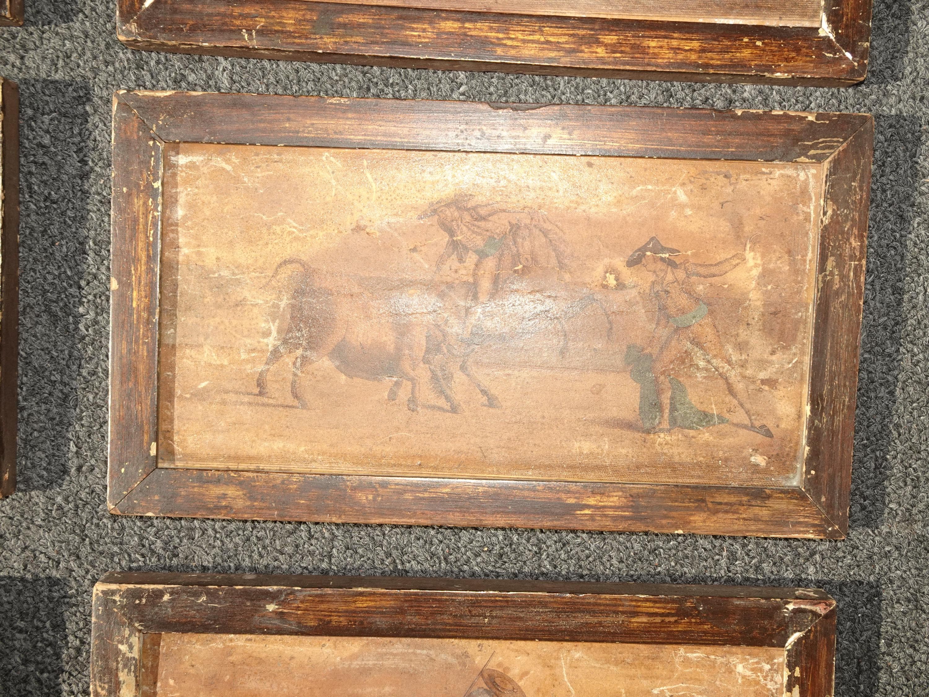Set Six 7"x12 Antique Rustic Spanish Style Pictures of Bullfighters & Matadors