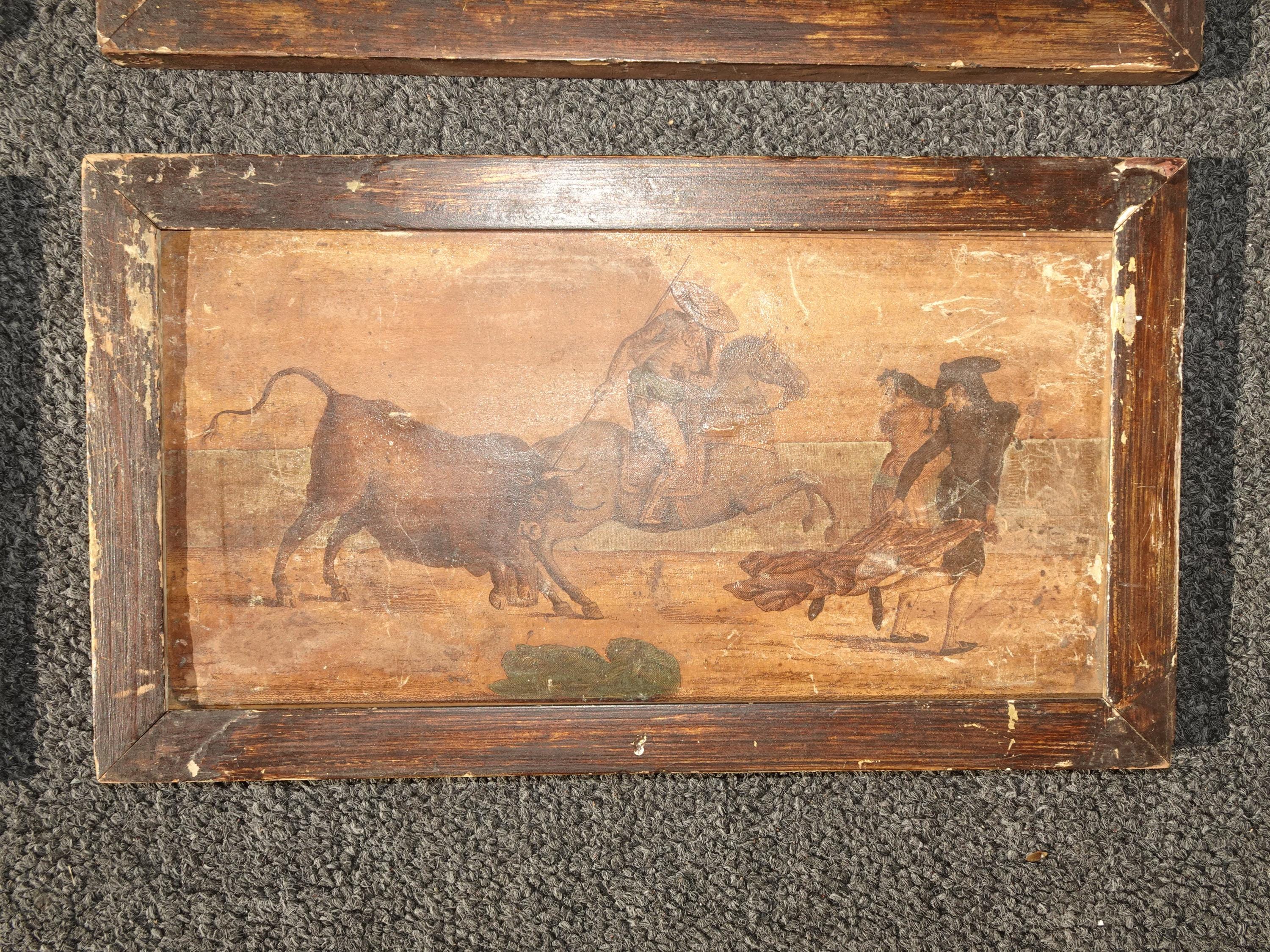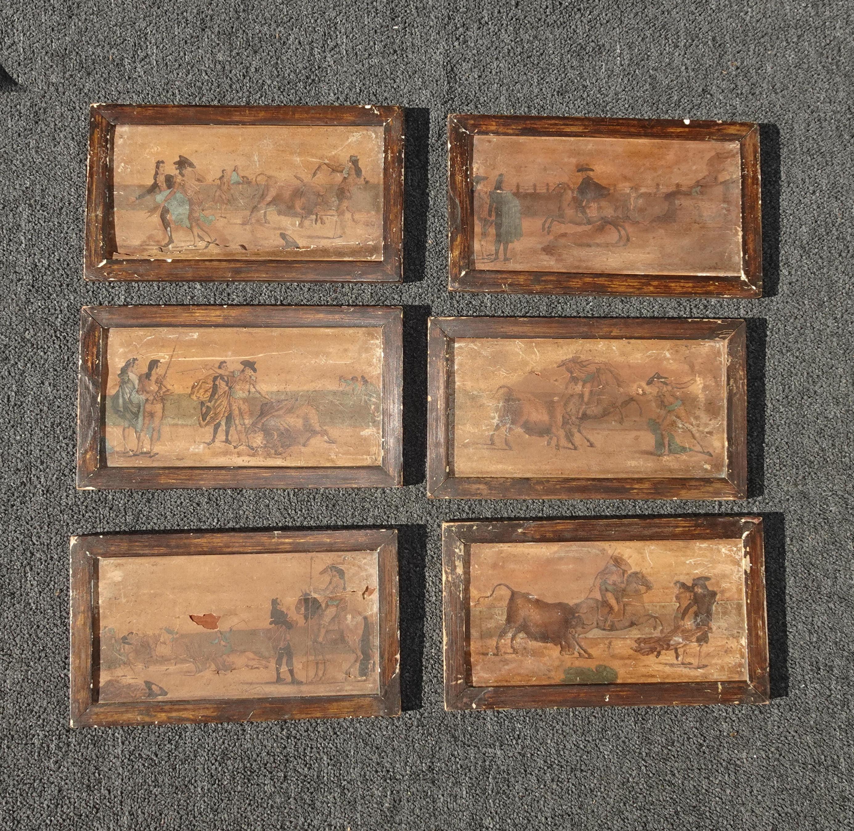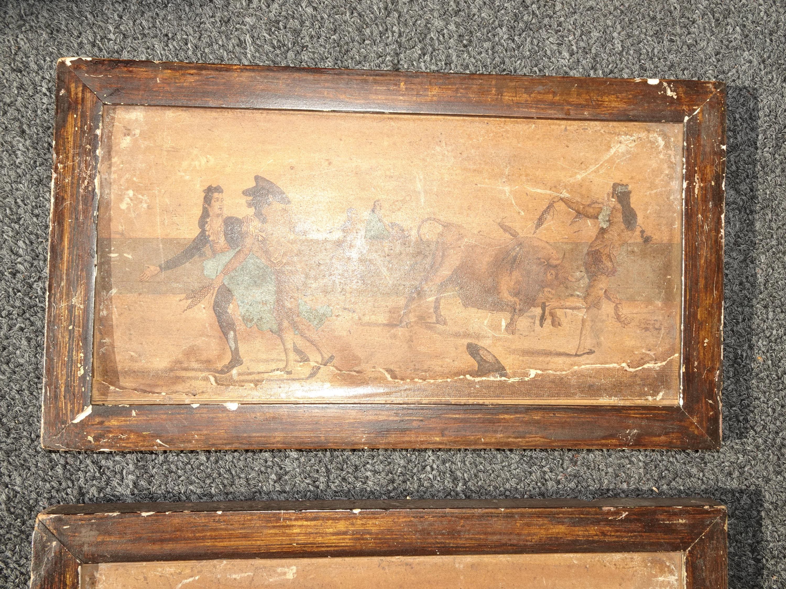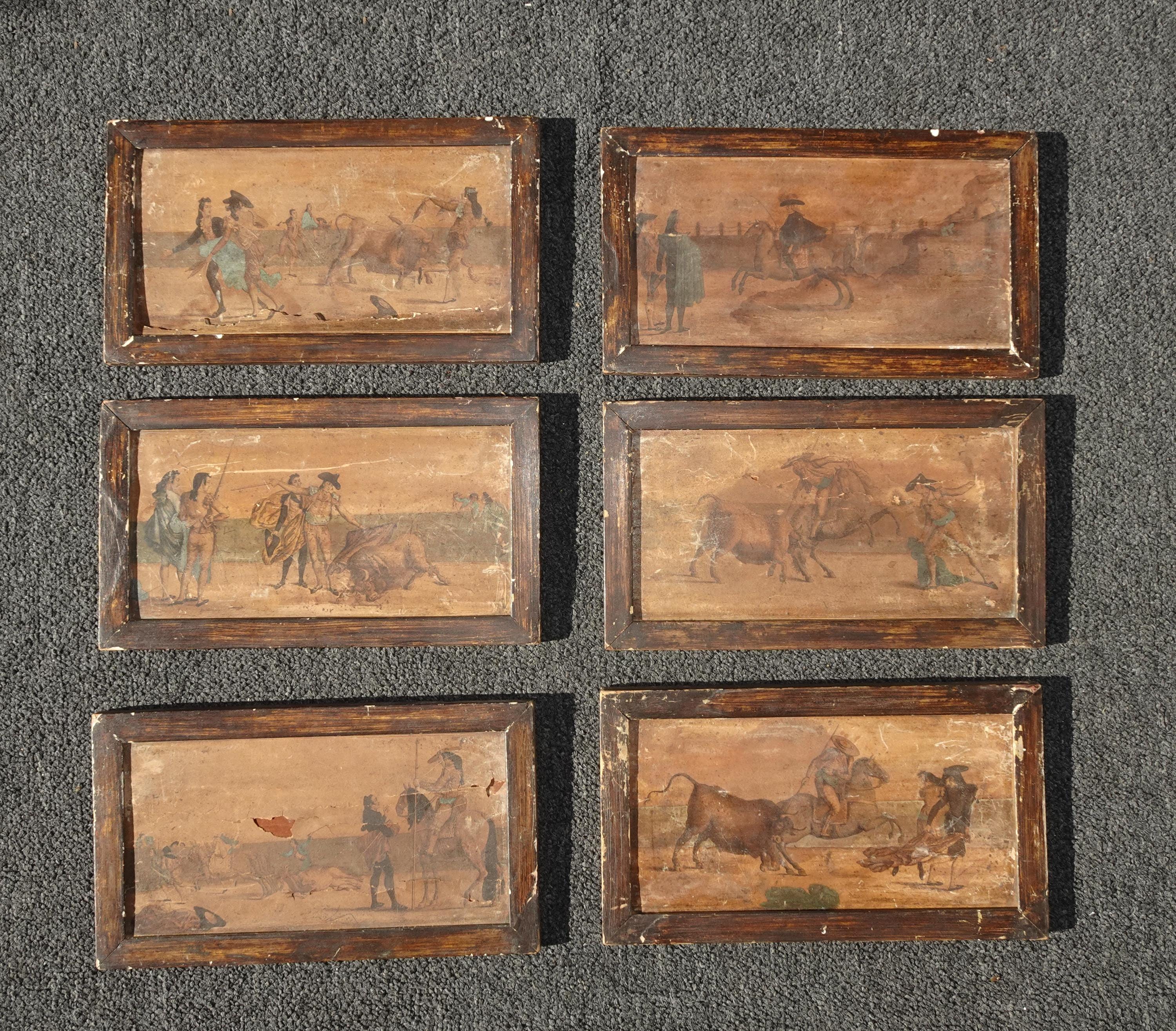 Set Six 7"x12 Antique Rustic Spanish Style Pictures of Bullfighters & Matadors