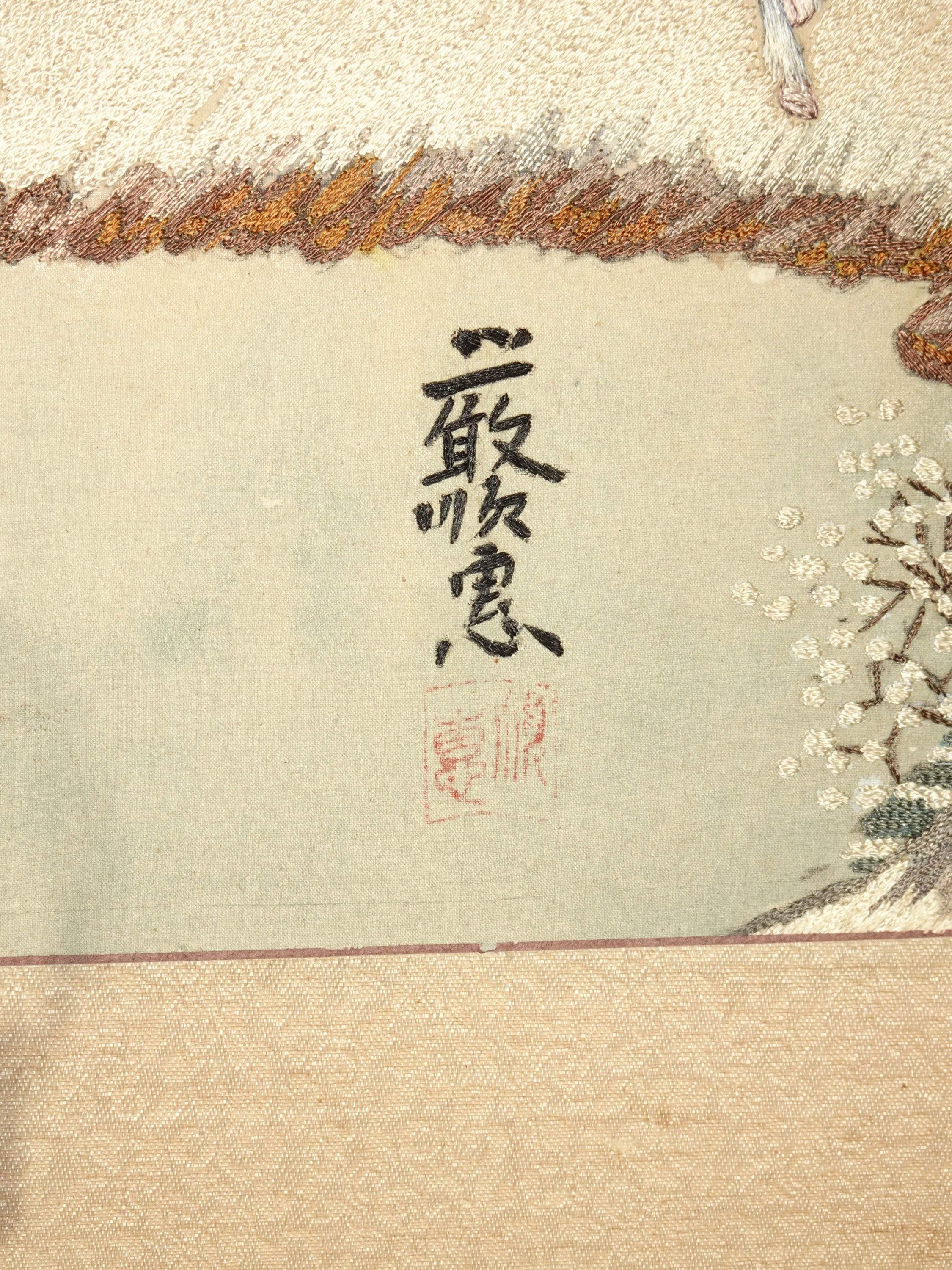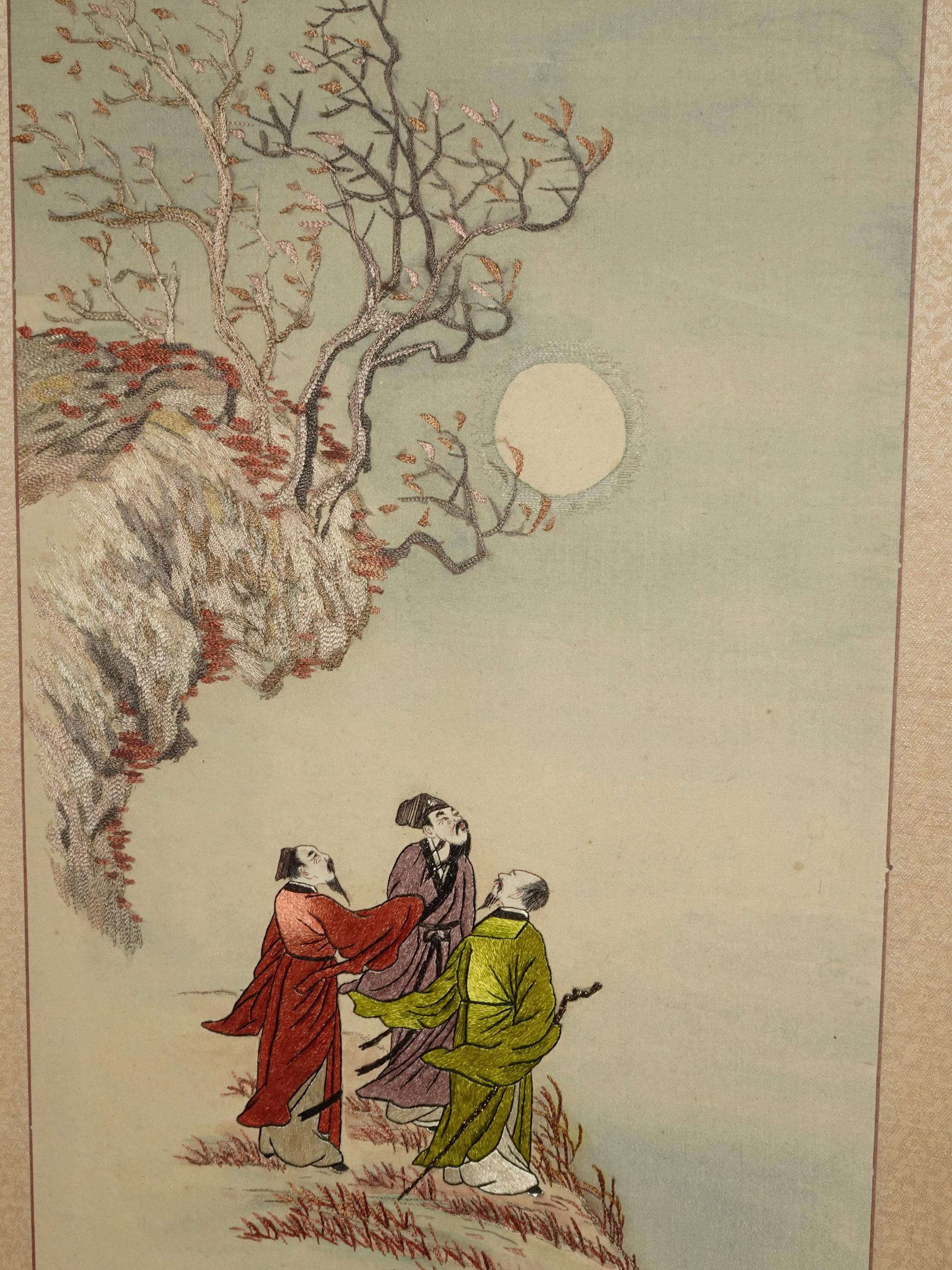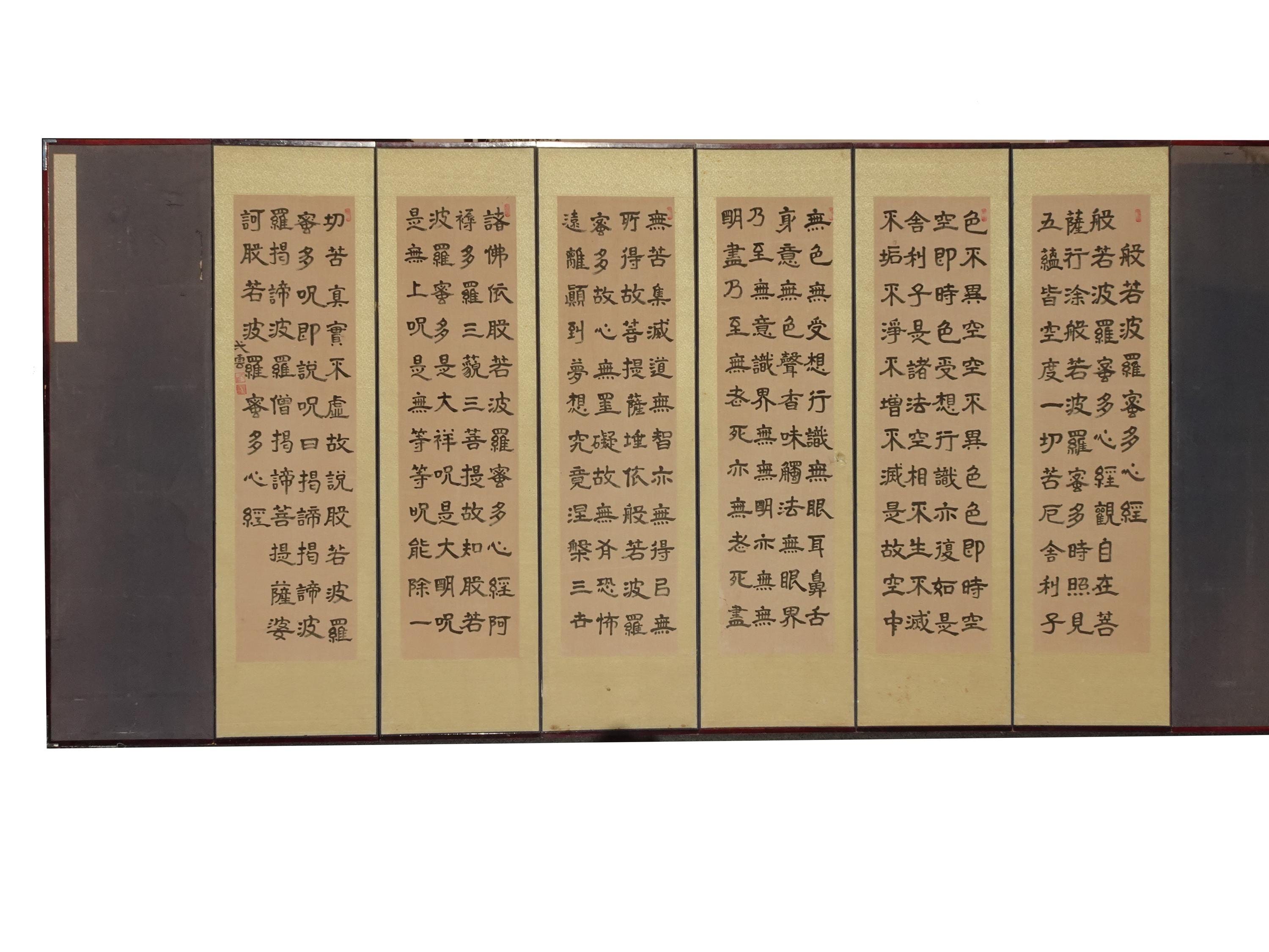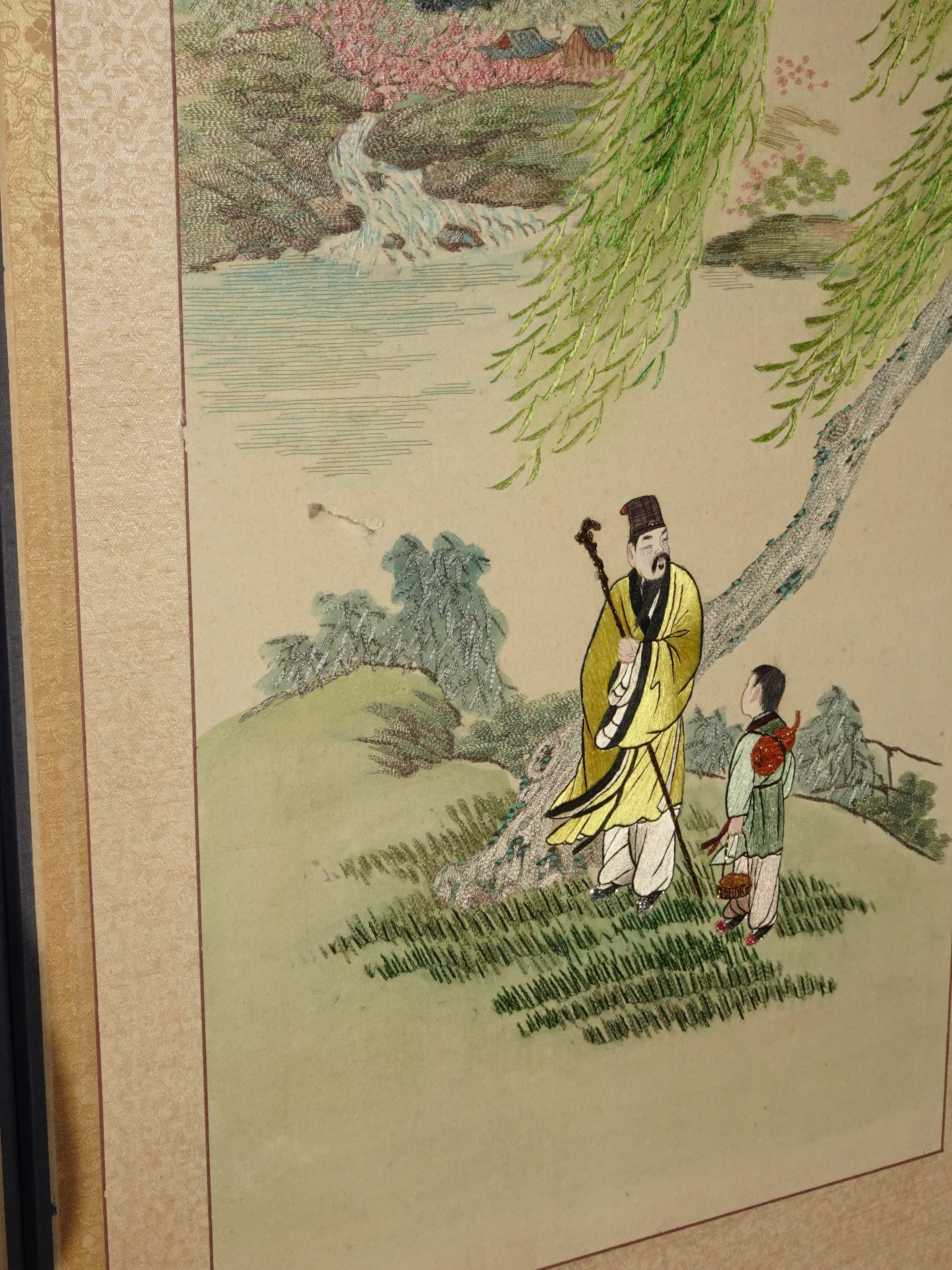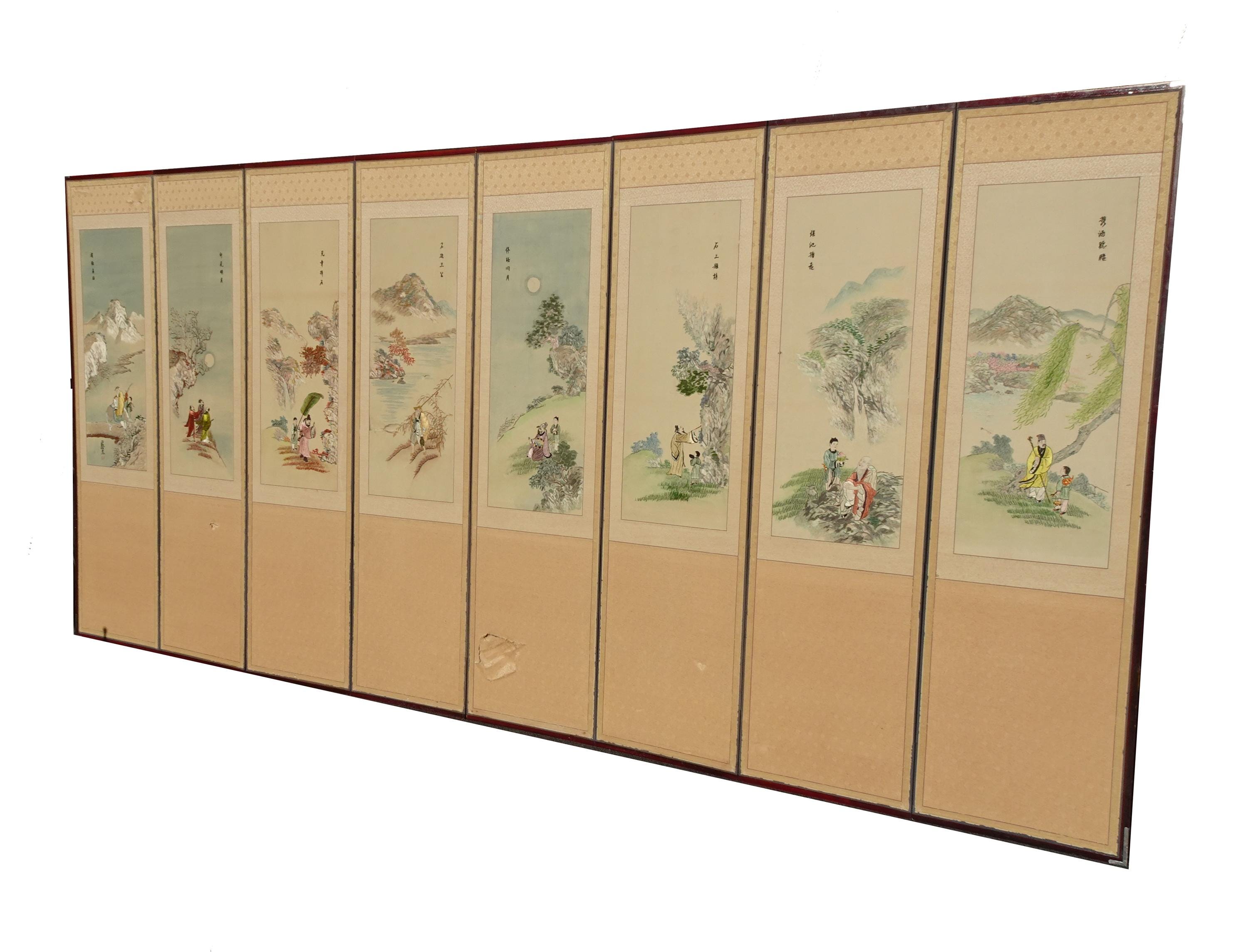 Antique Asian Eight Panel Embroidered Silk Screen Room Divider ~Caligraphy Back