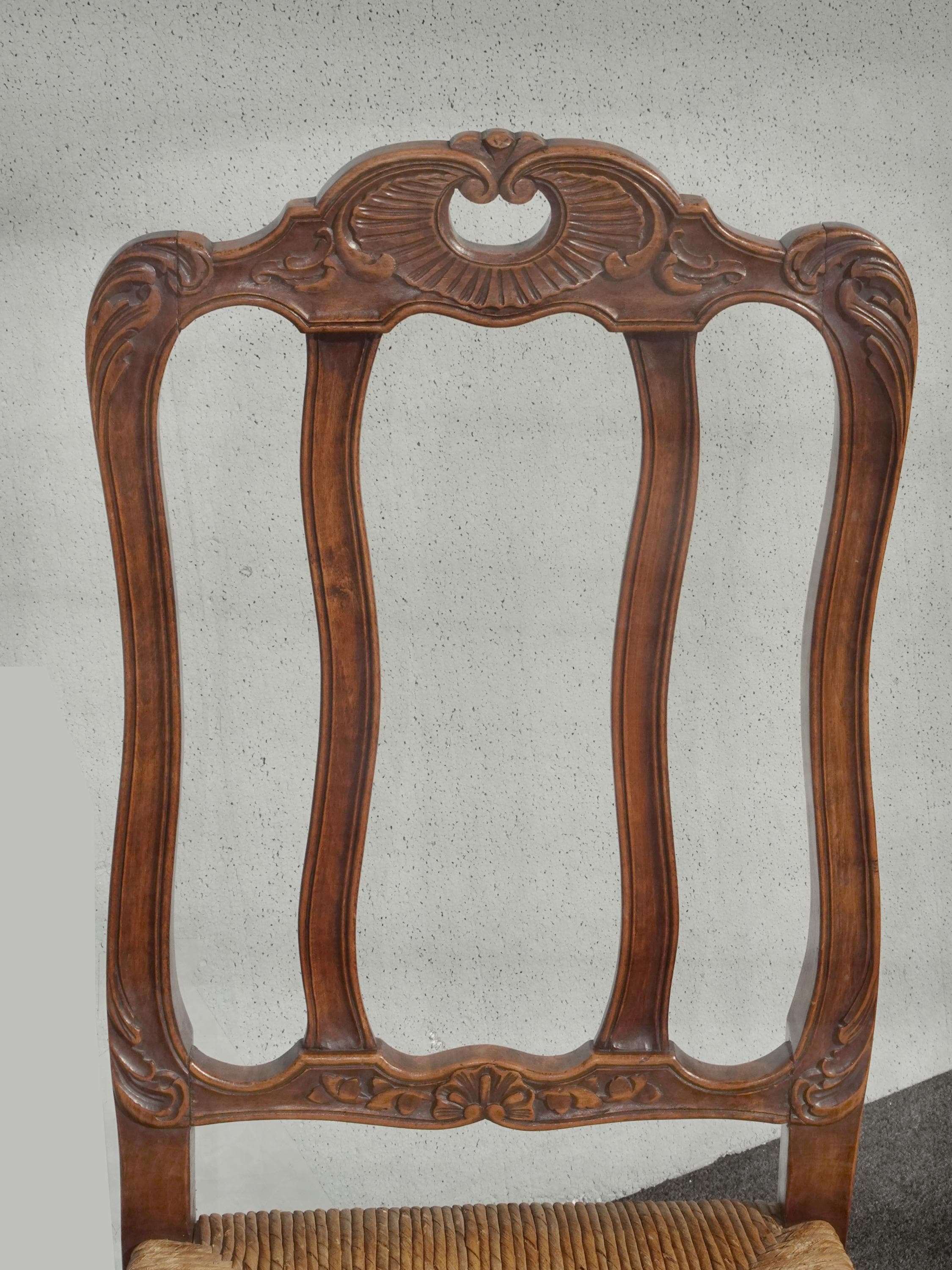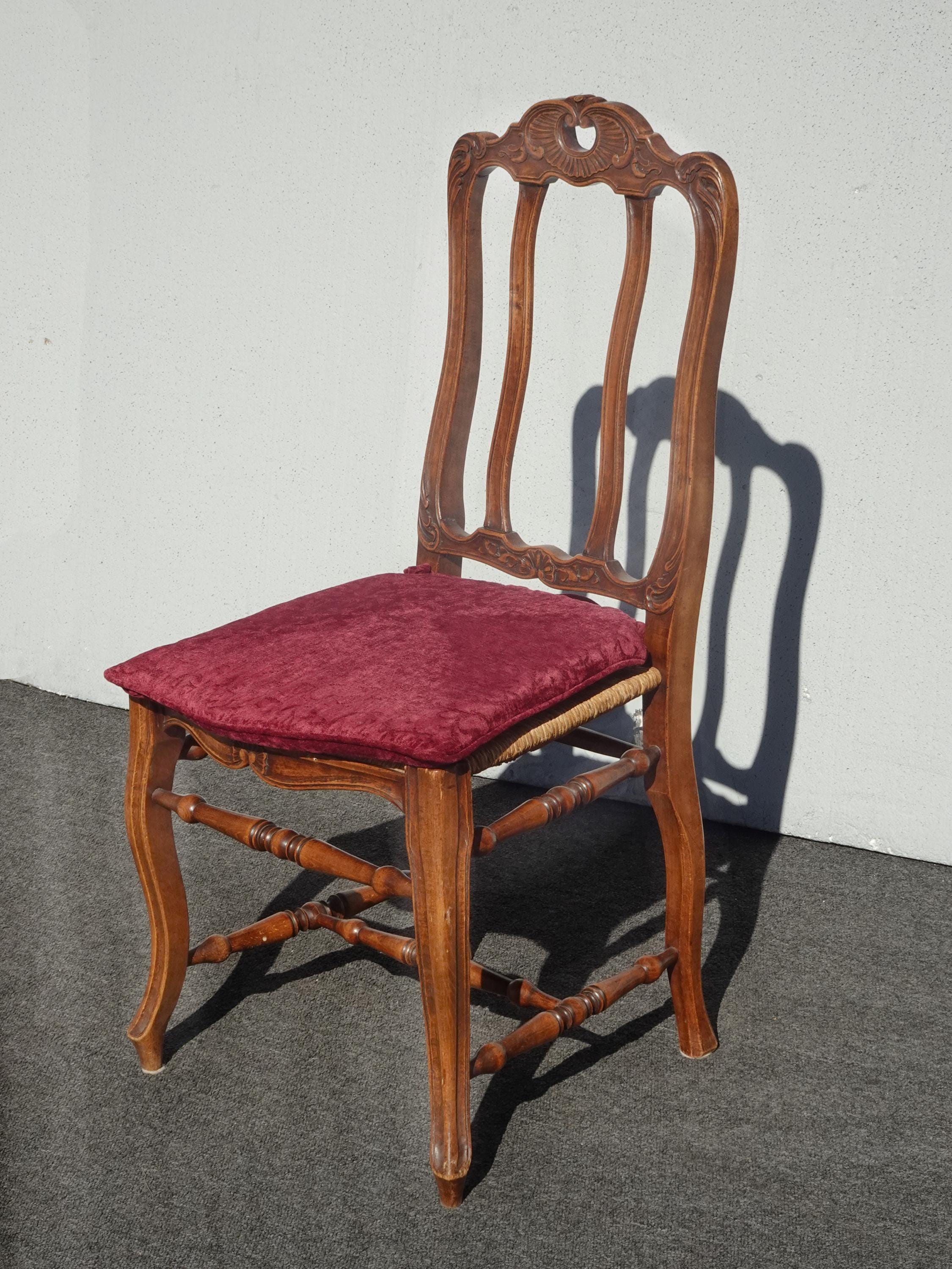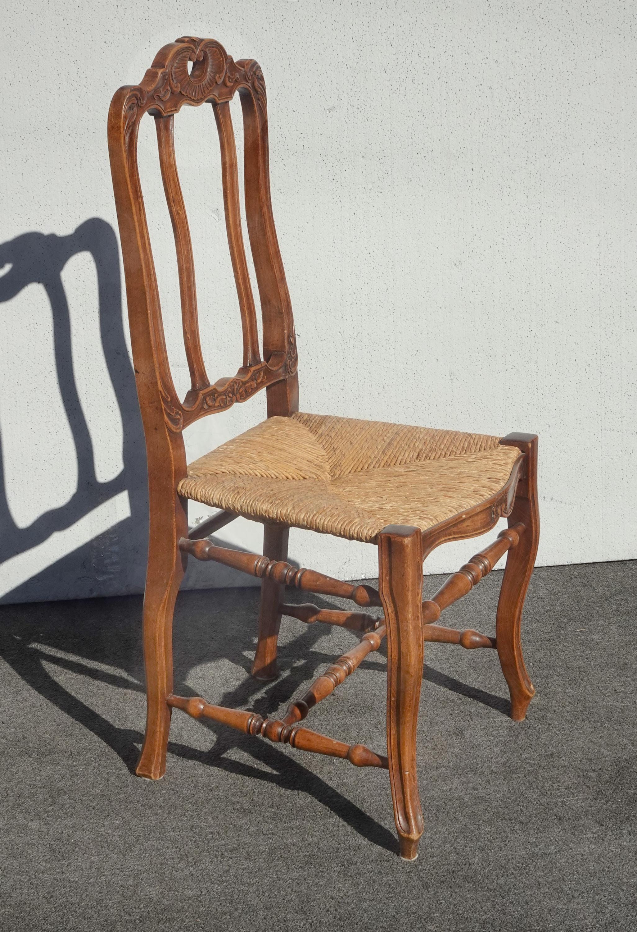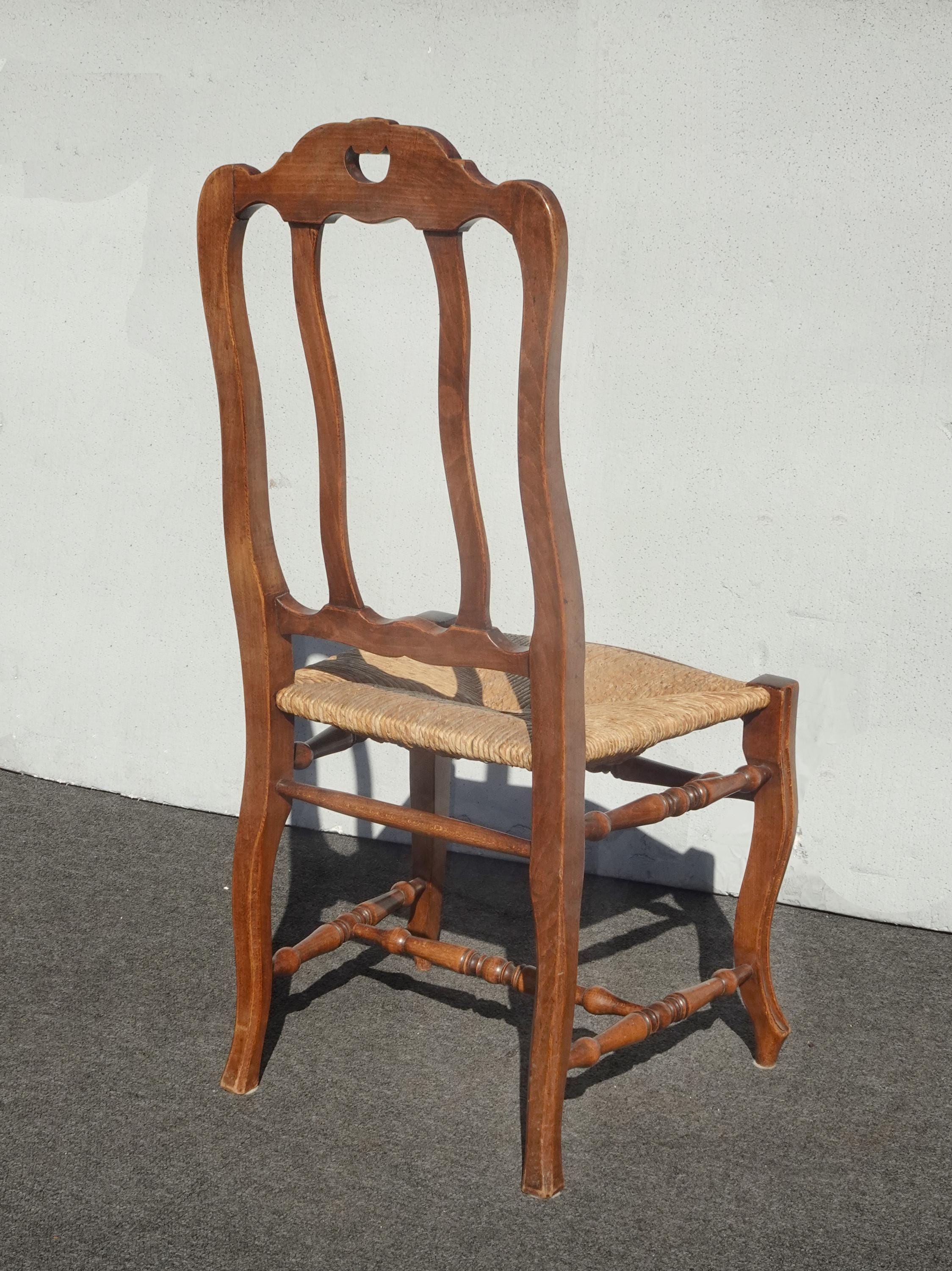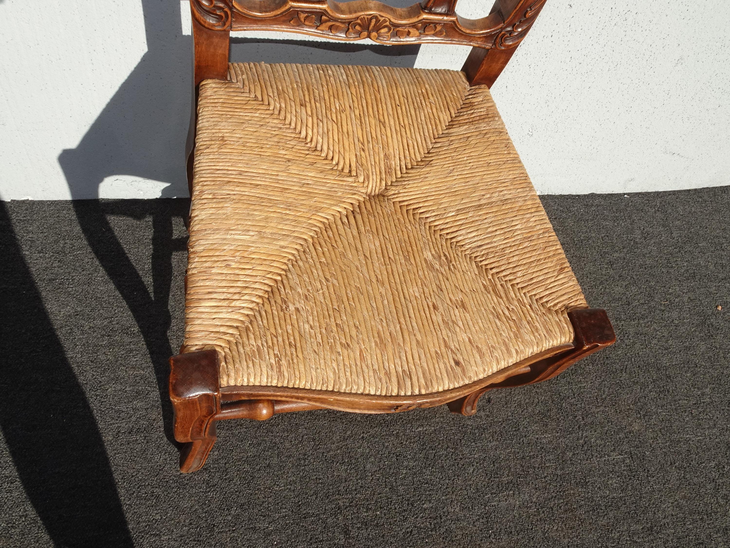 Set of Six Vintage French Country Brown Rush Dining Chairs