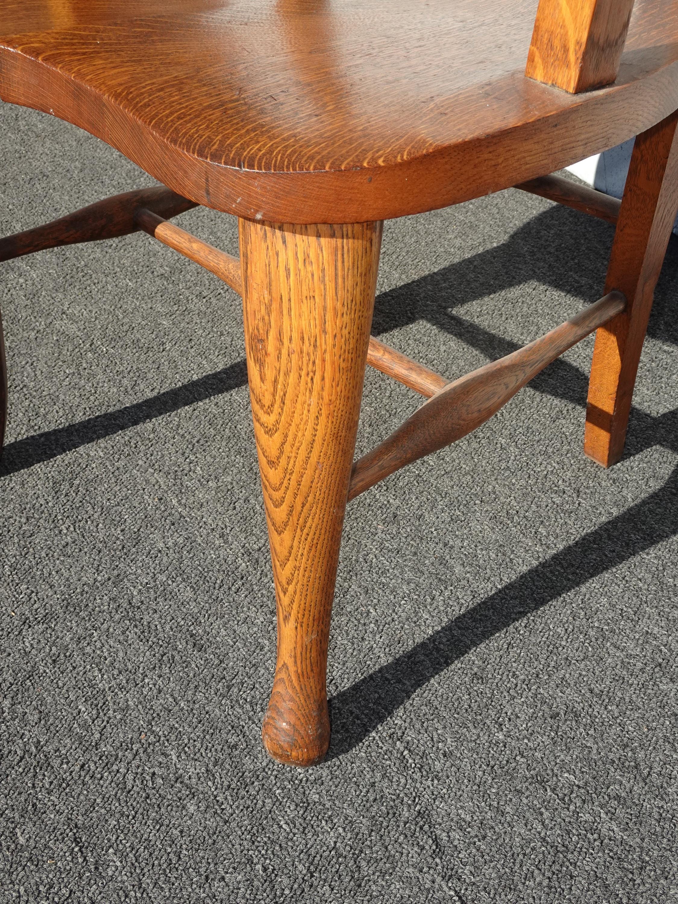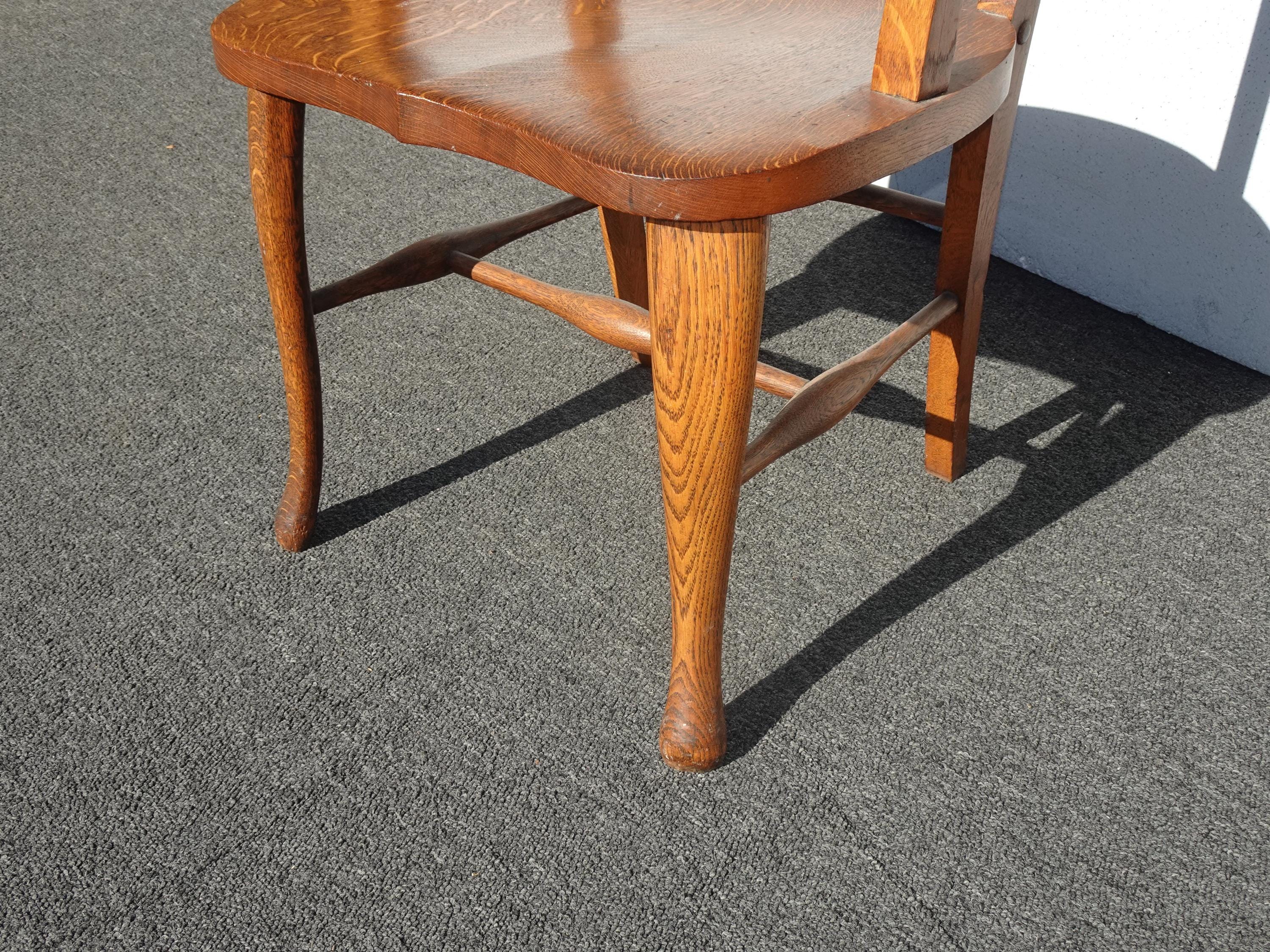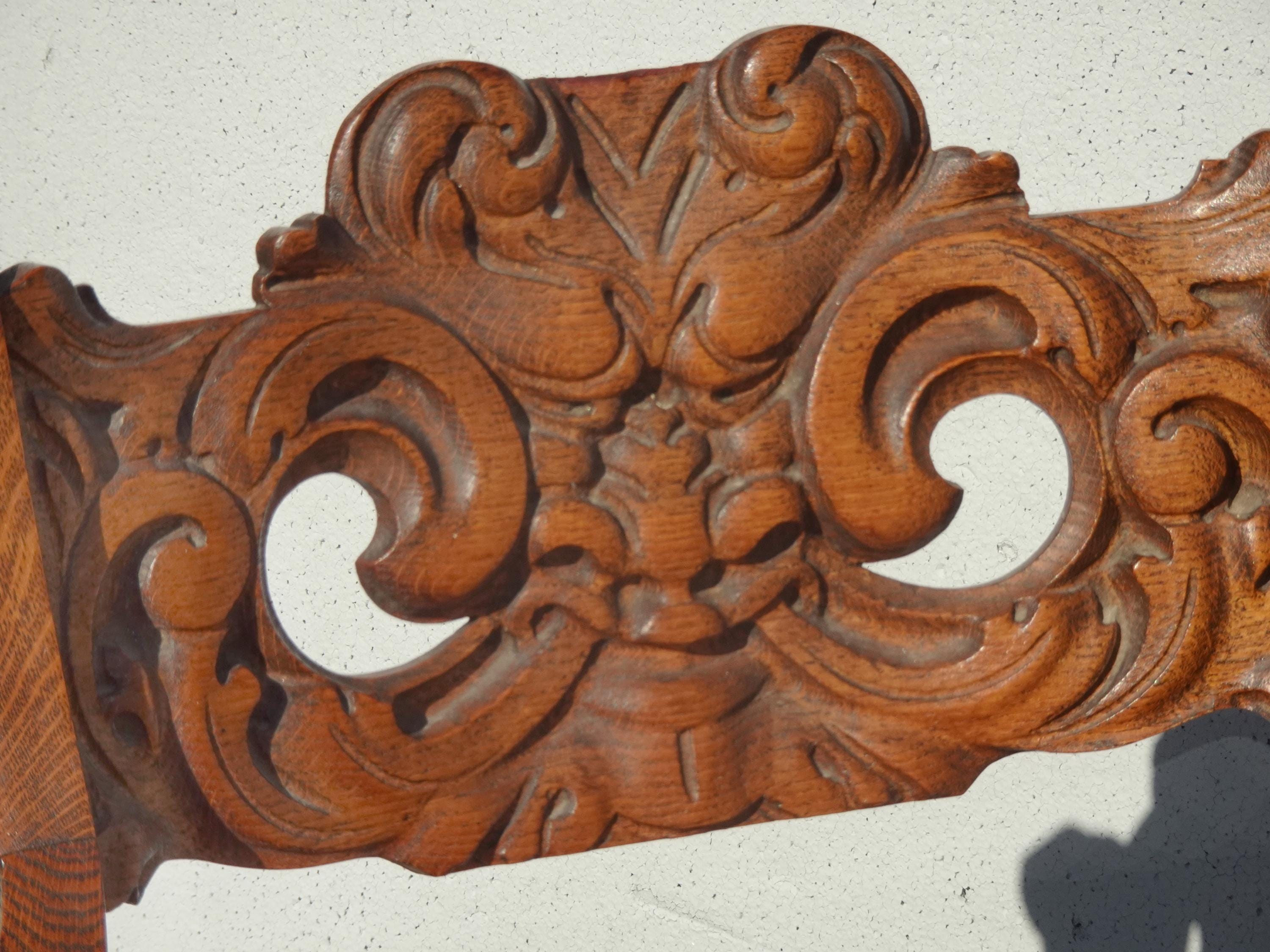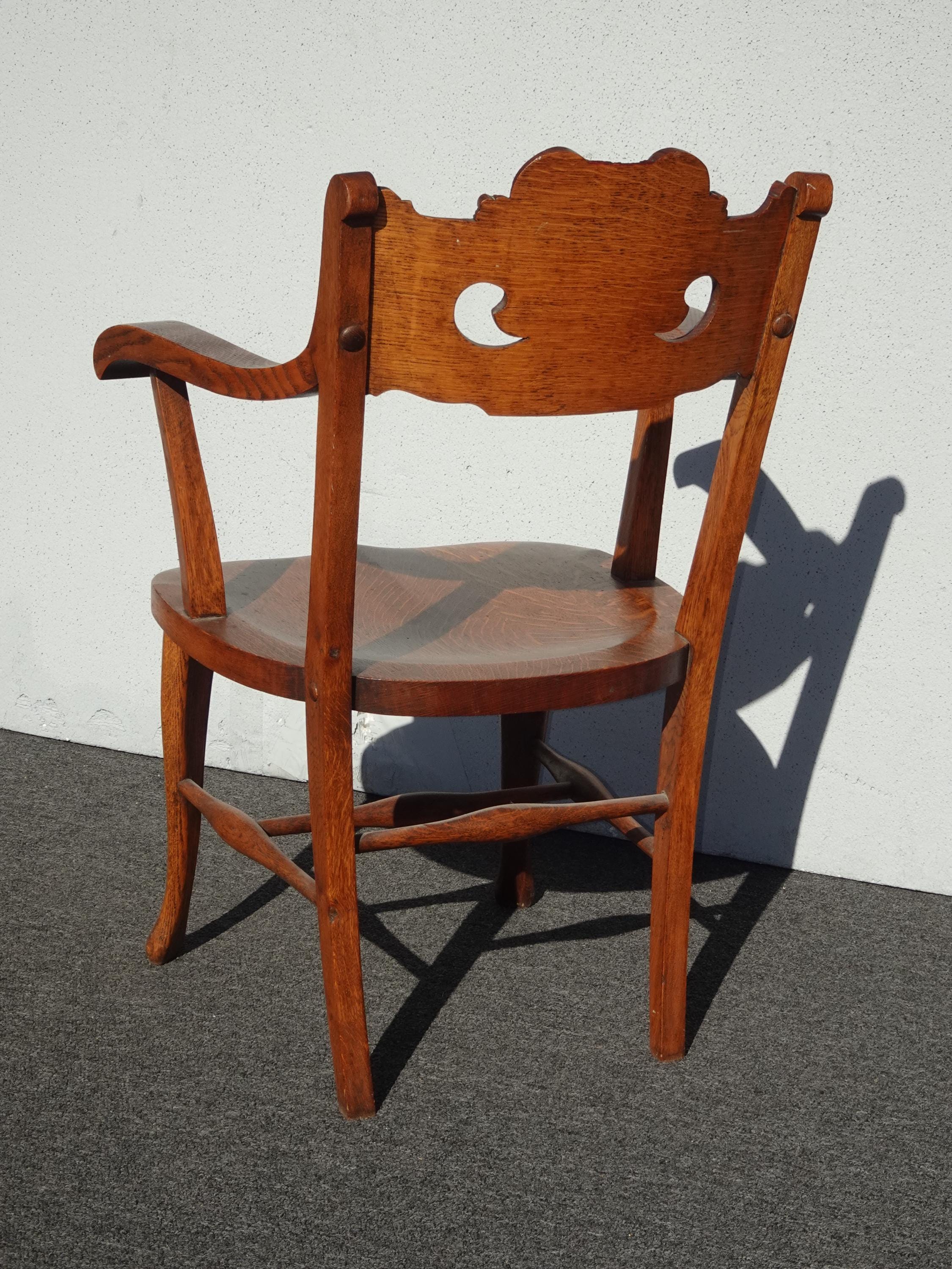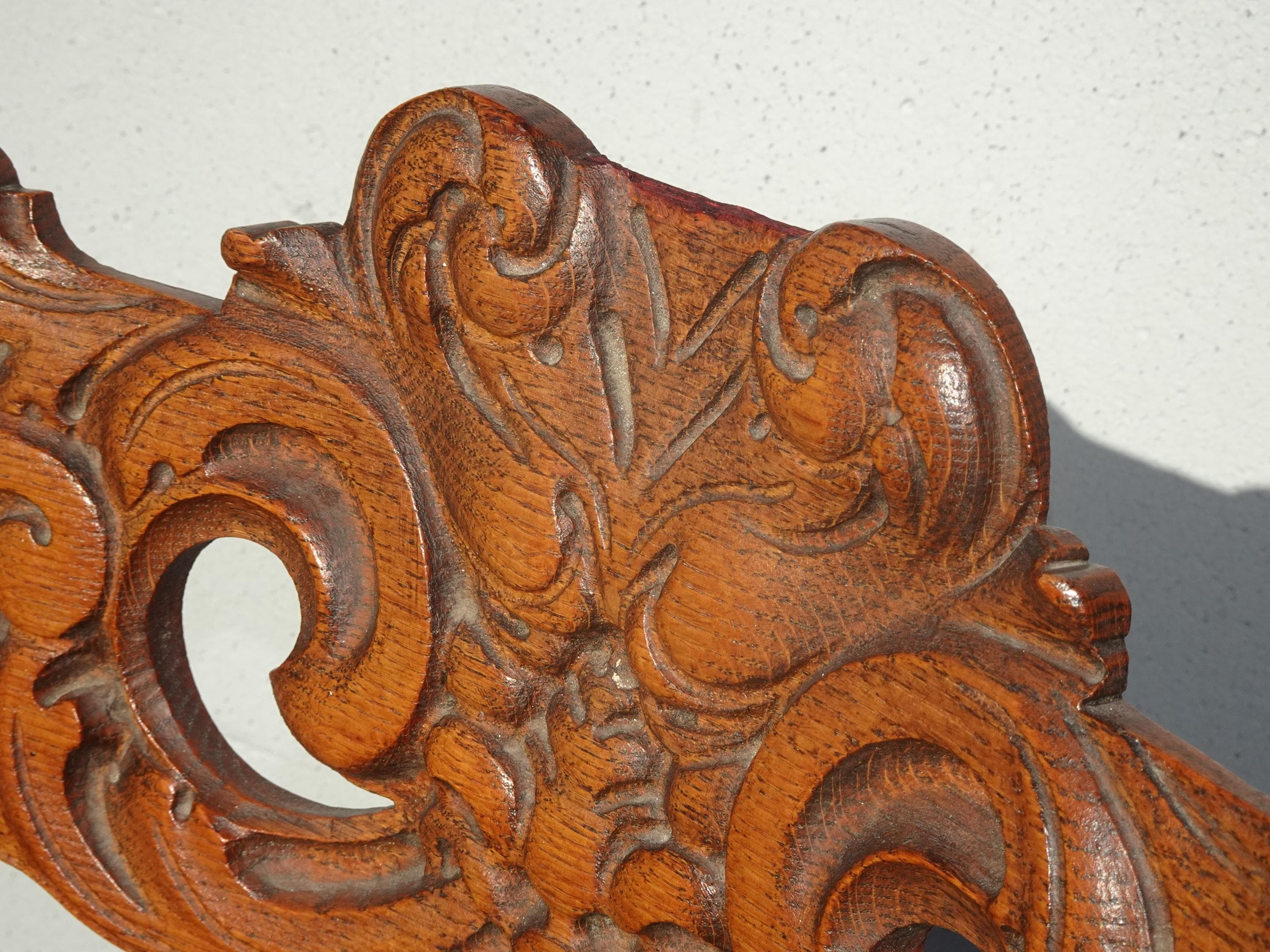 Vintage French Country Brown Oak Carved Arm Chair by Eldredge Co.