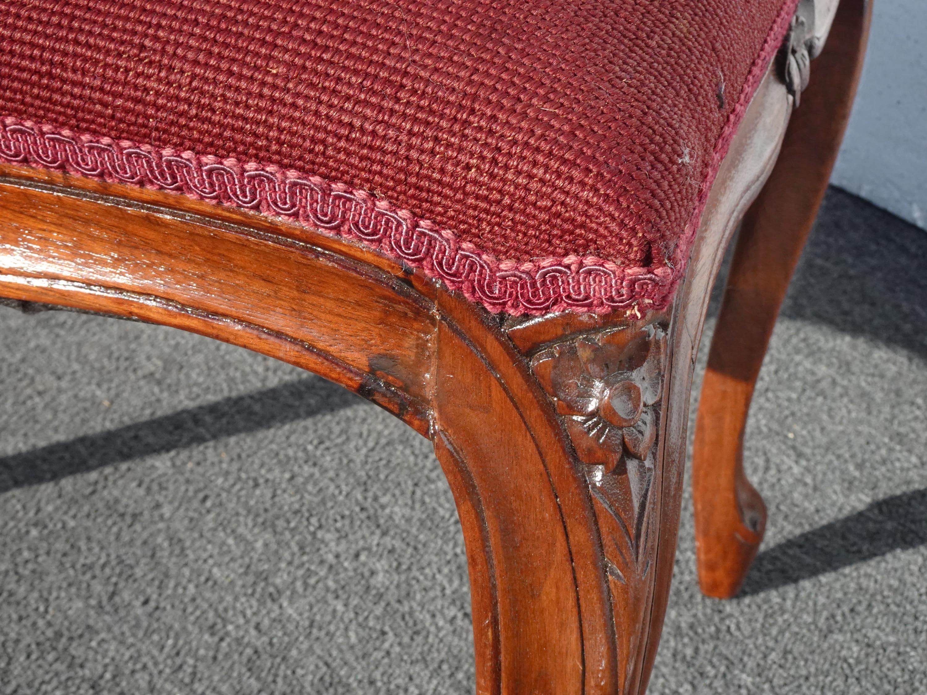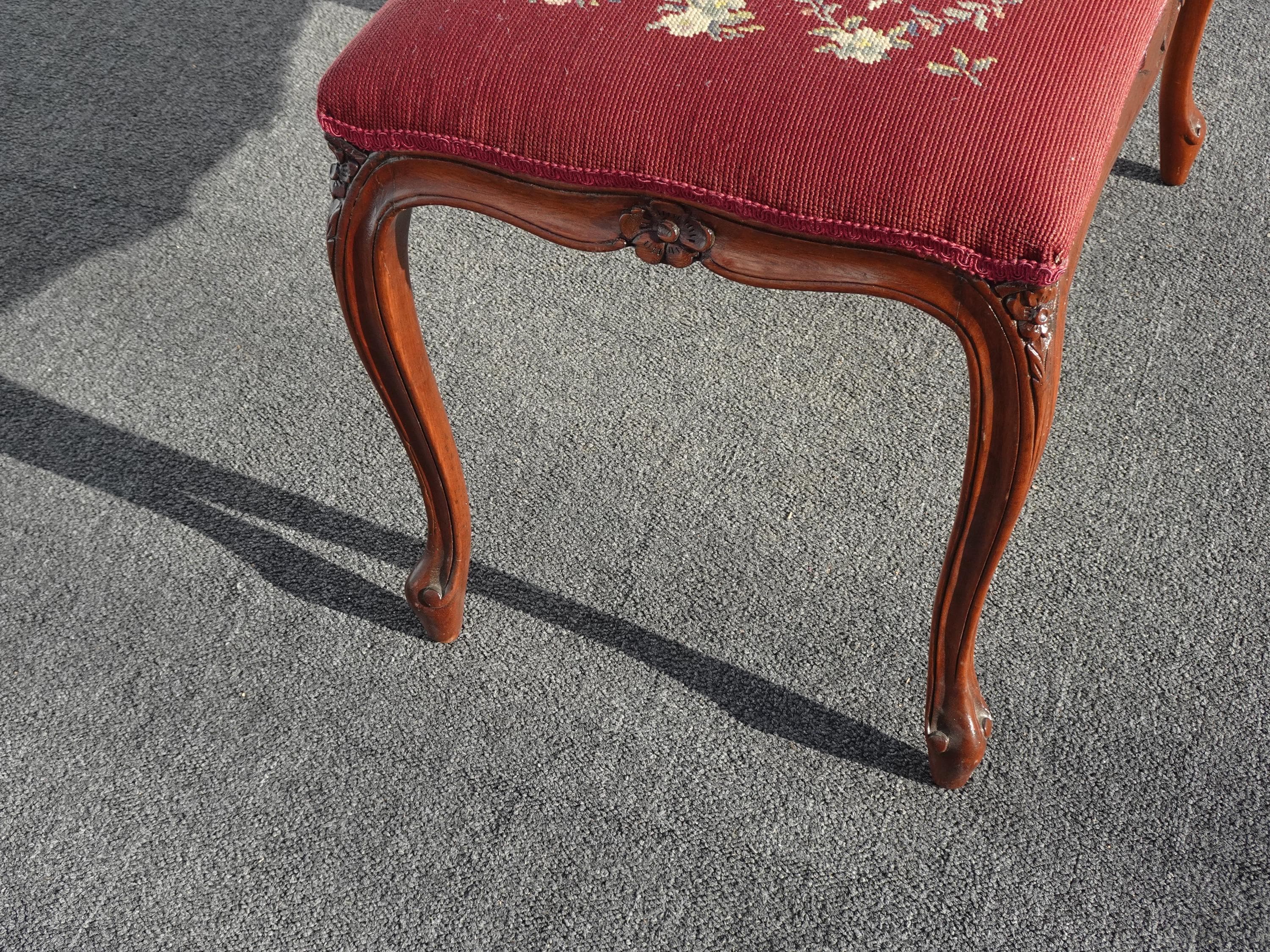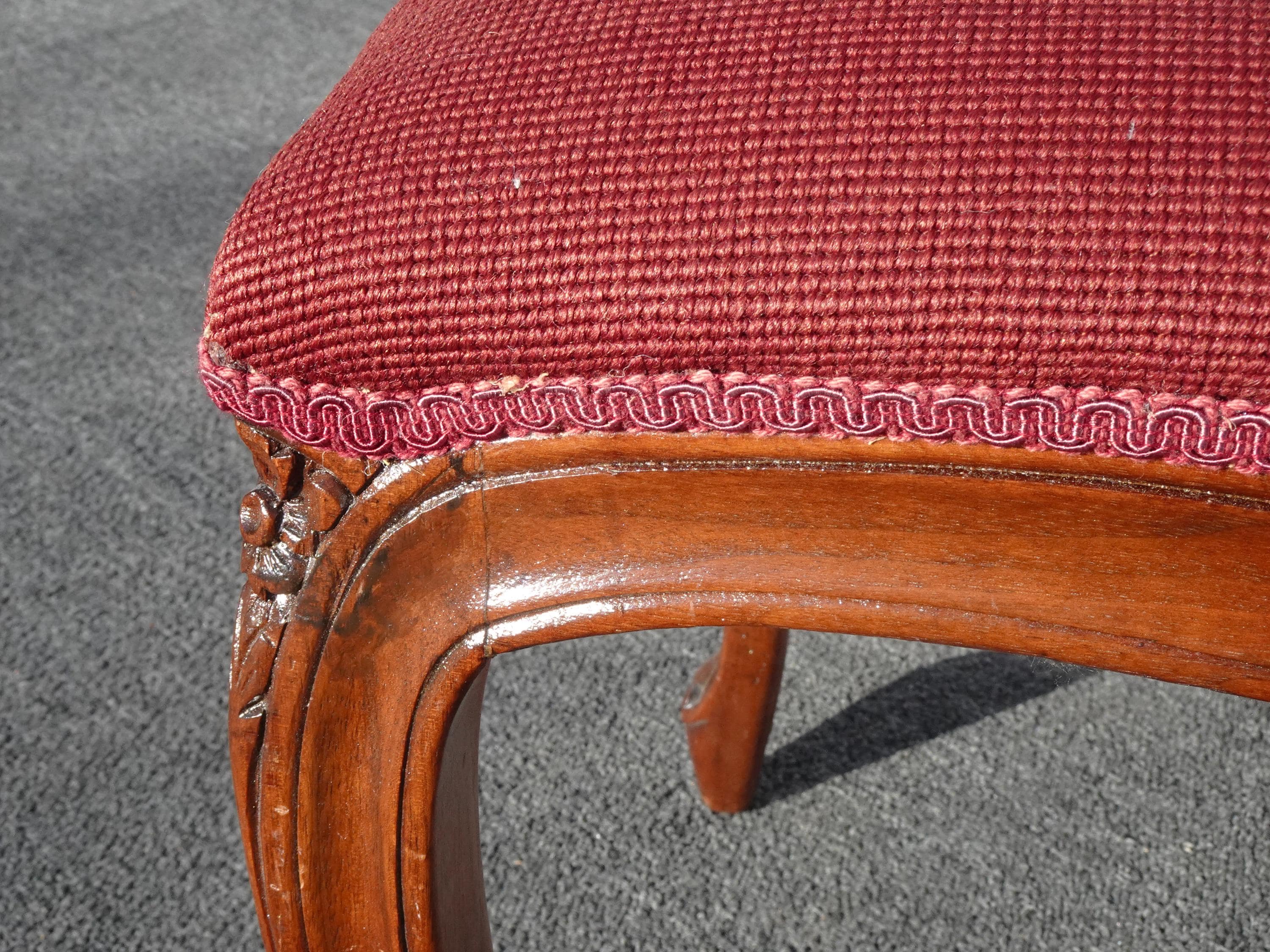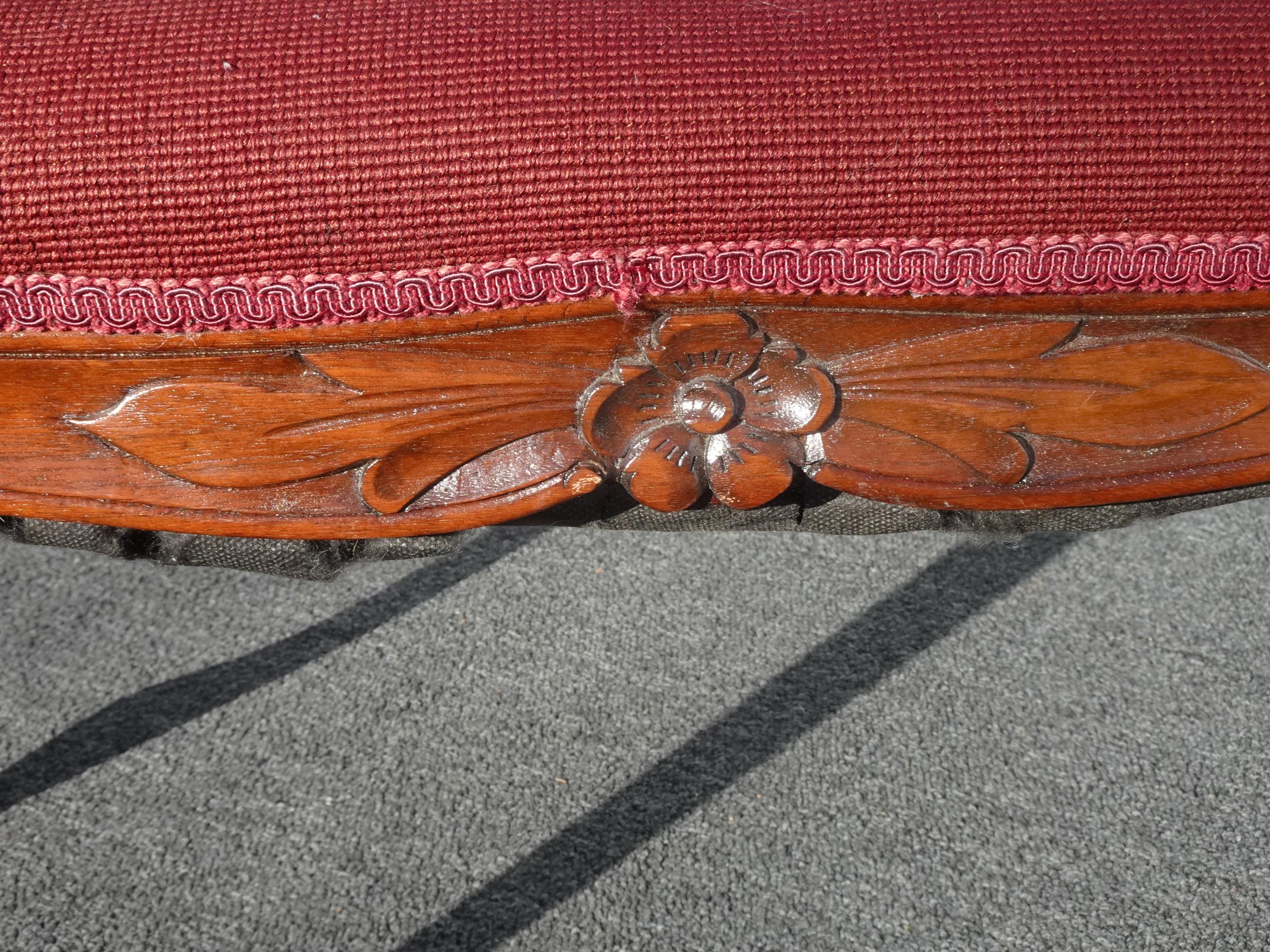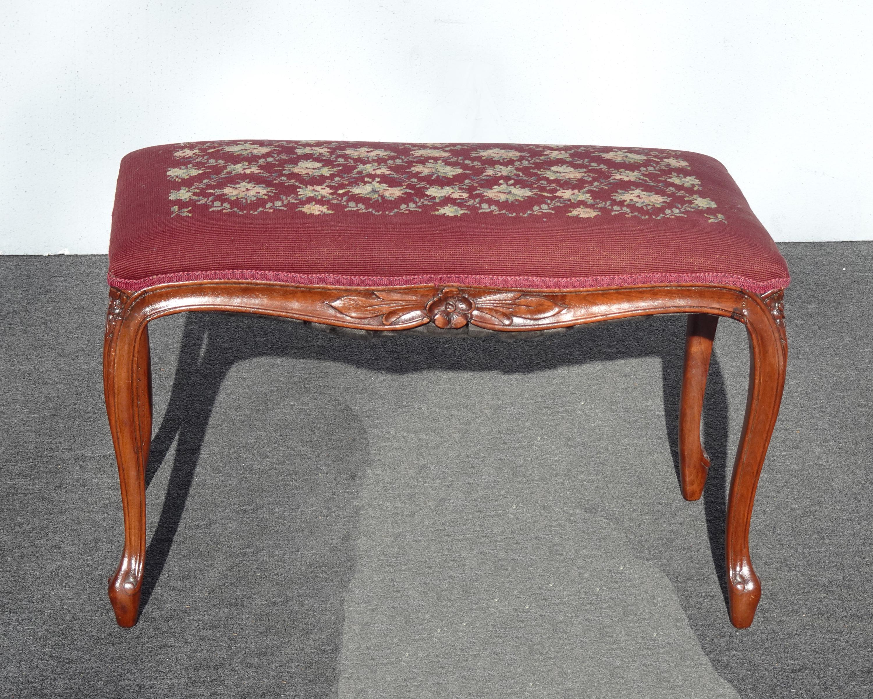 Vintage French Provincial Burgundy Needlepoint Tapestry Bench w Floral Design