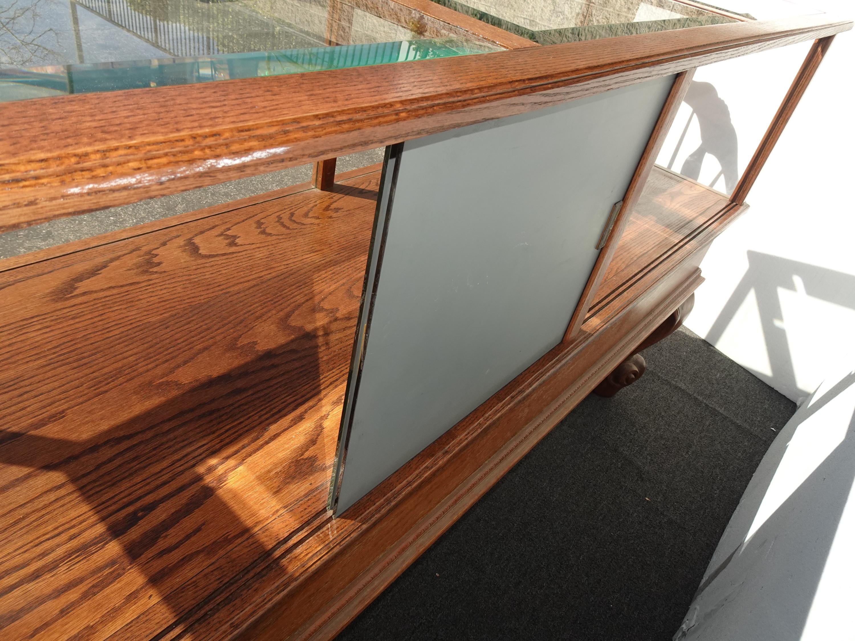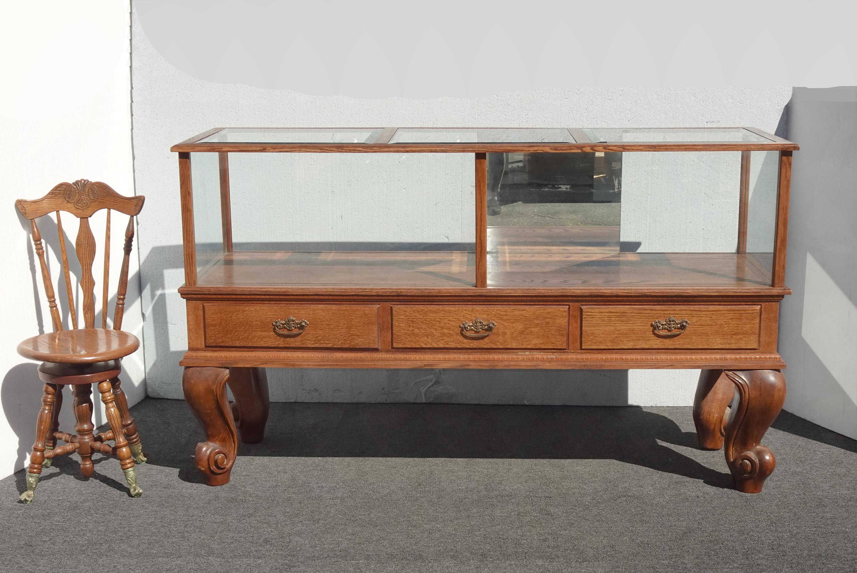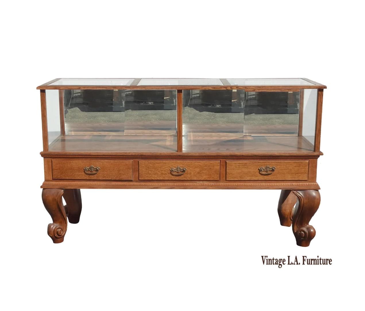 Large Vintage French Country Mercantile Store Display Case Floor Cabinet w Mirror Doors