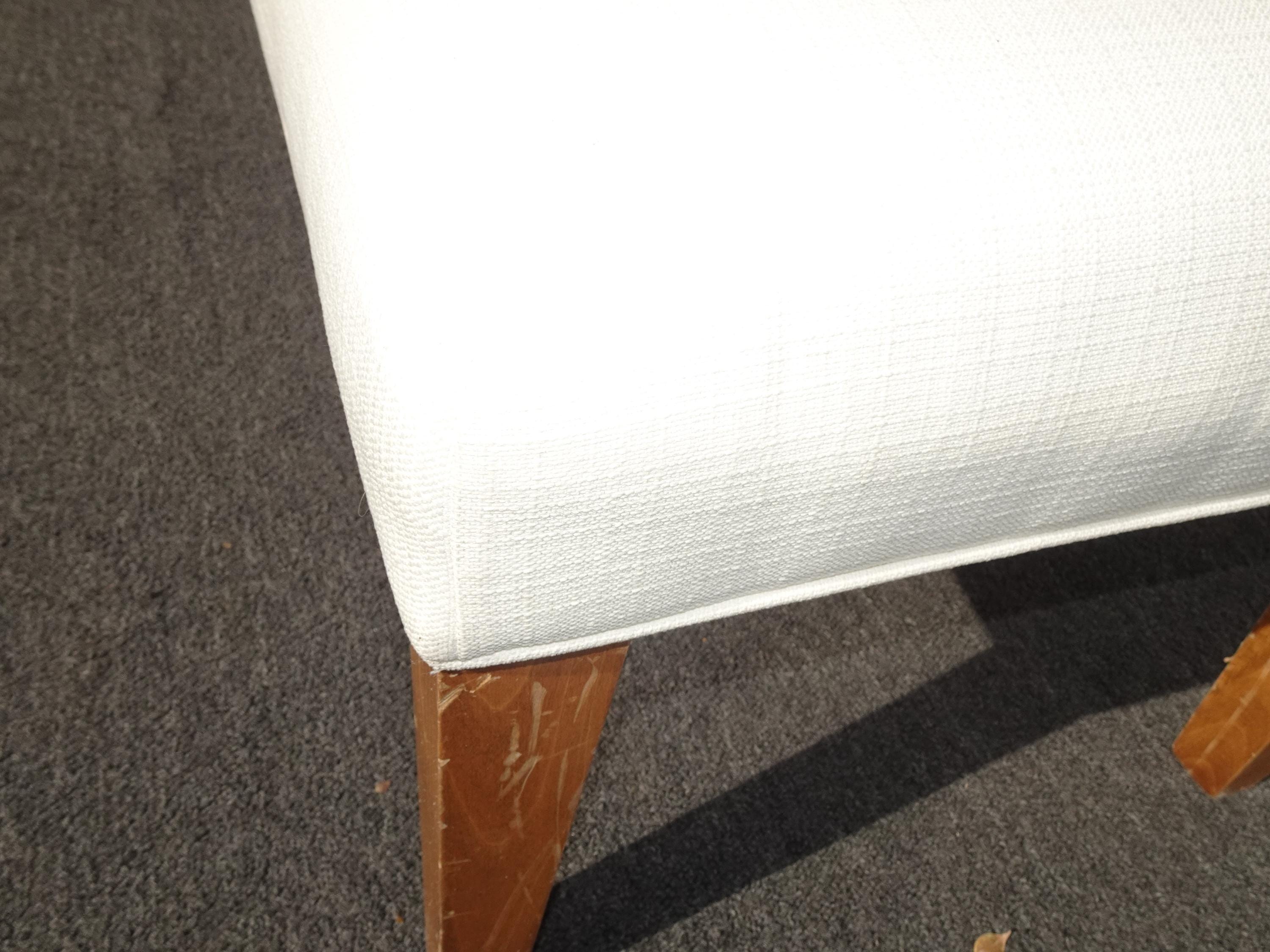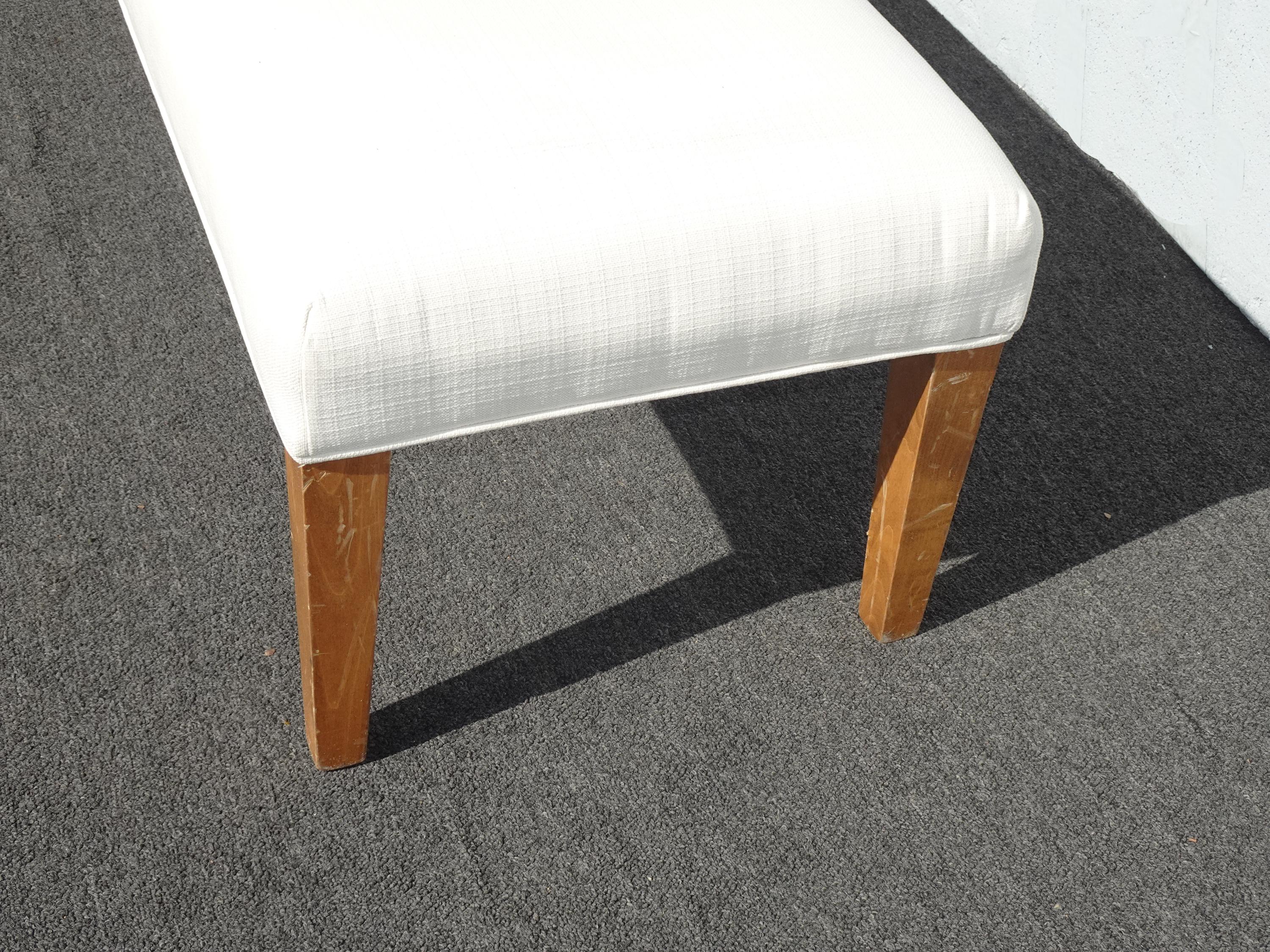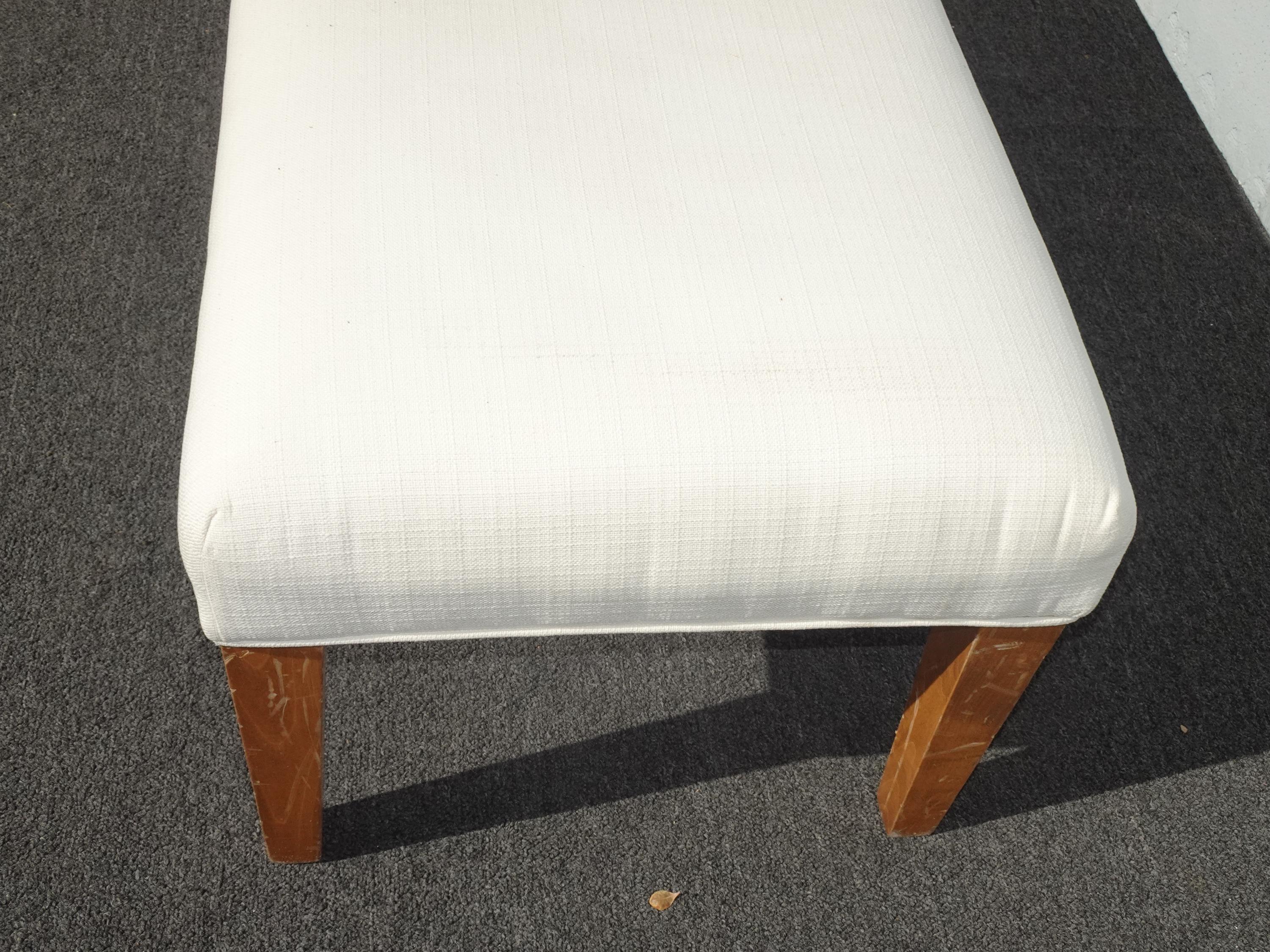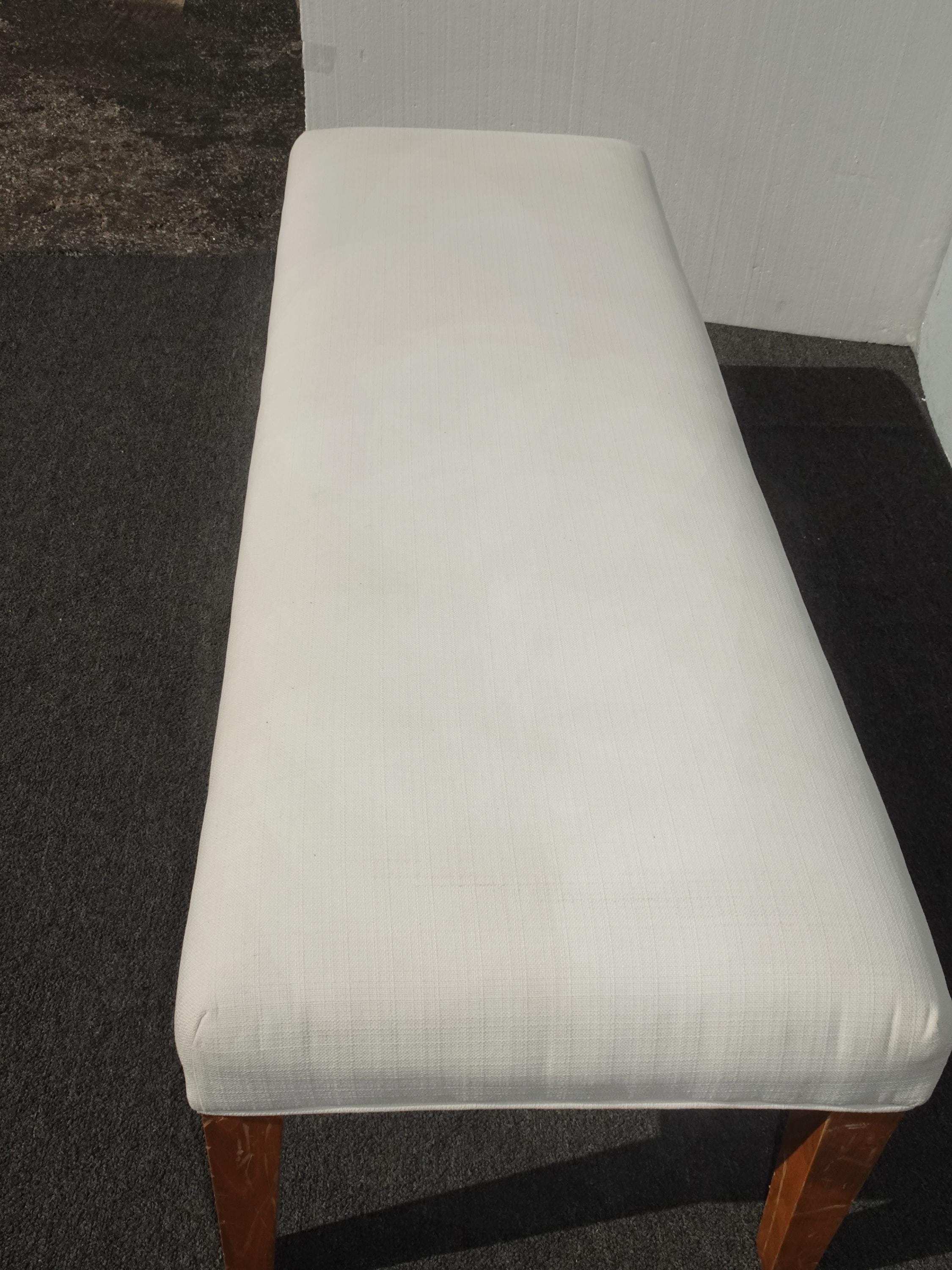 Modern White Bed Side Bench with Brown Legs & Designer Fabric