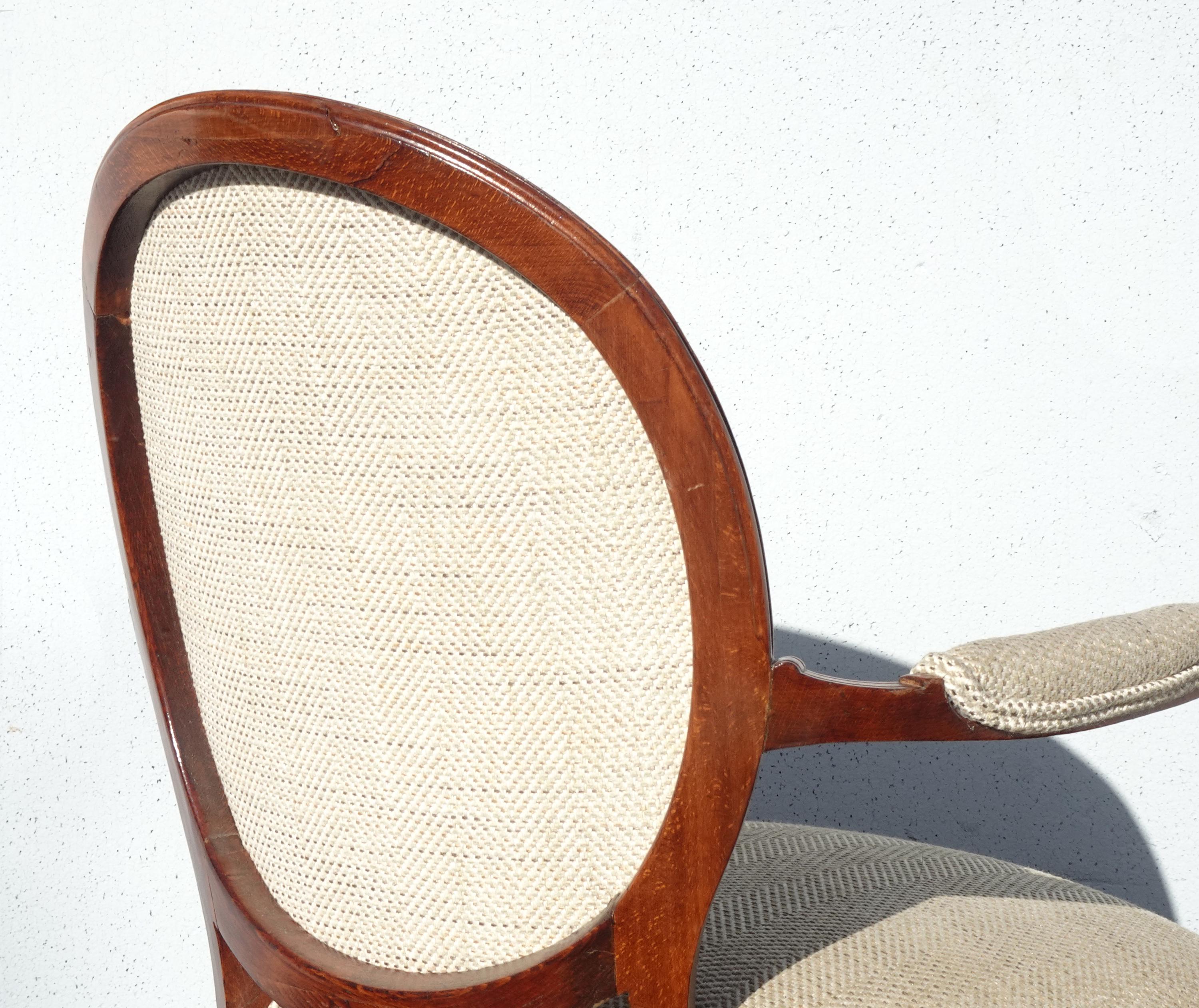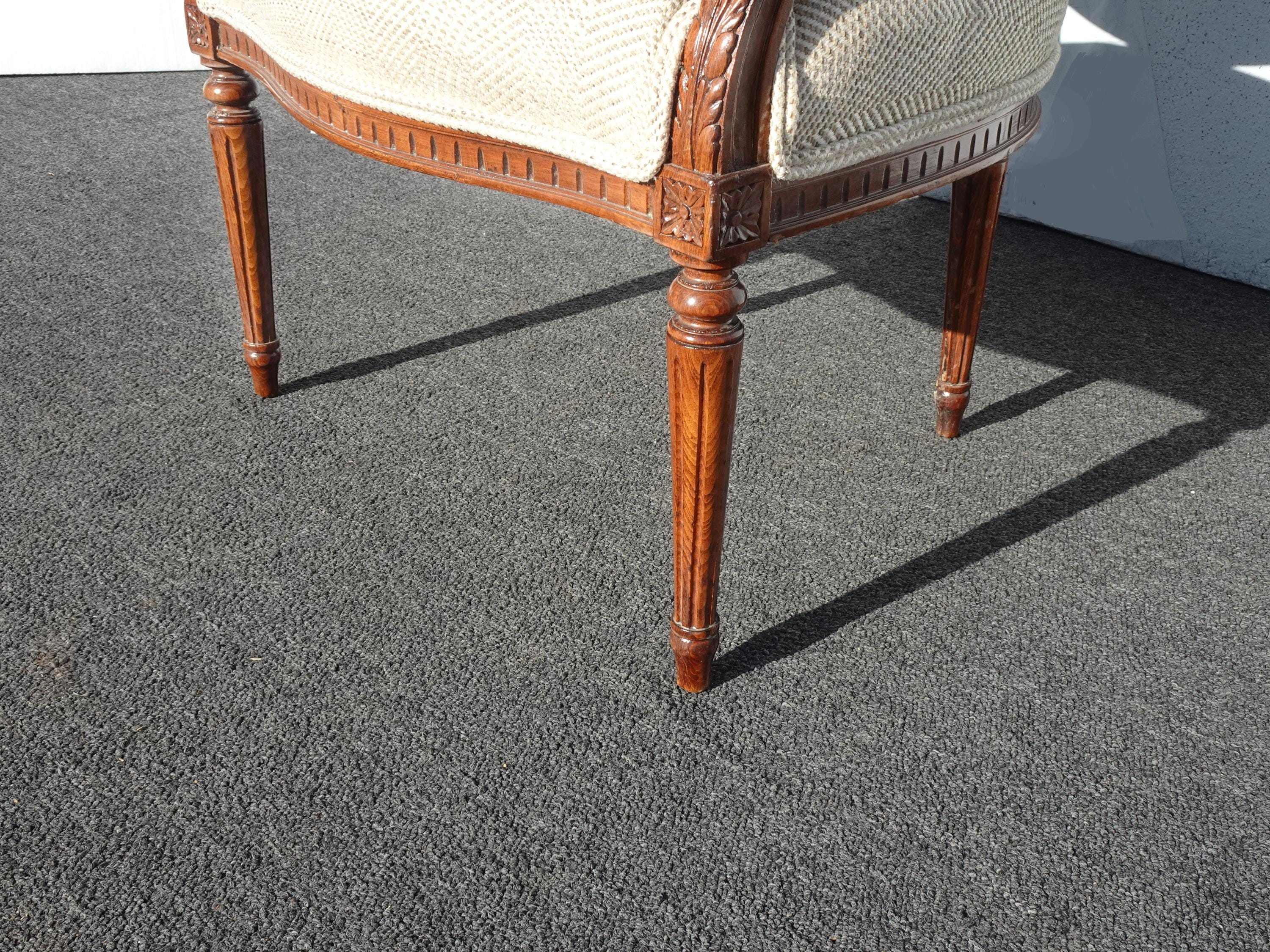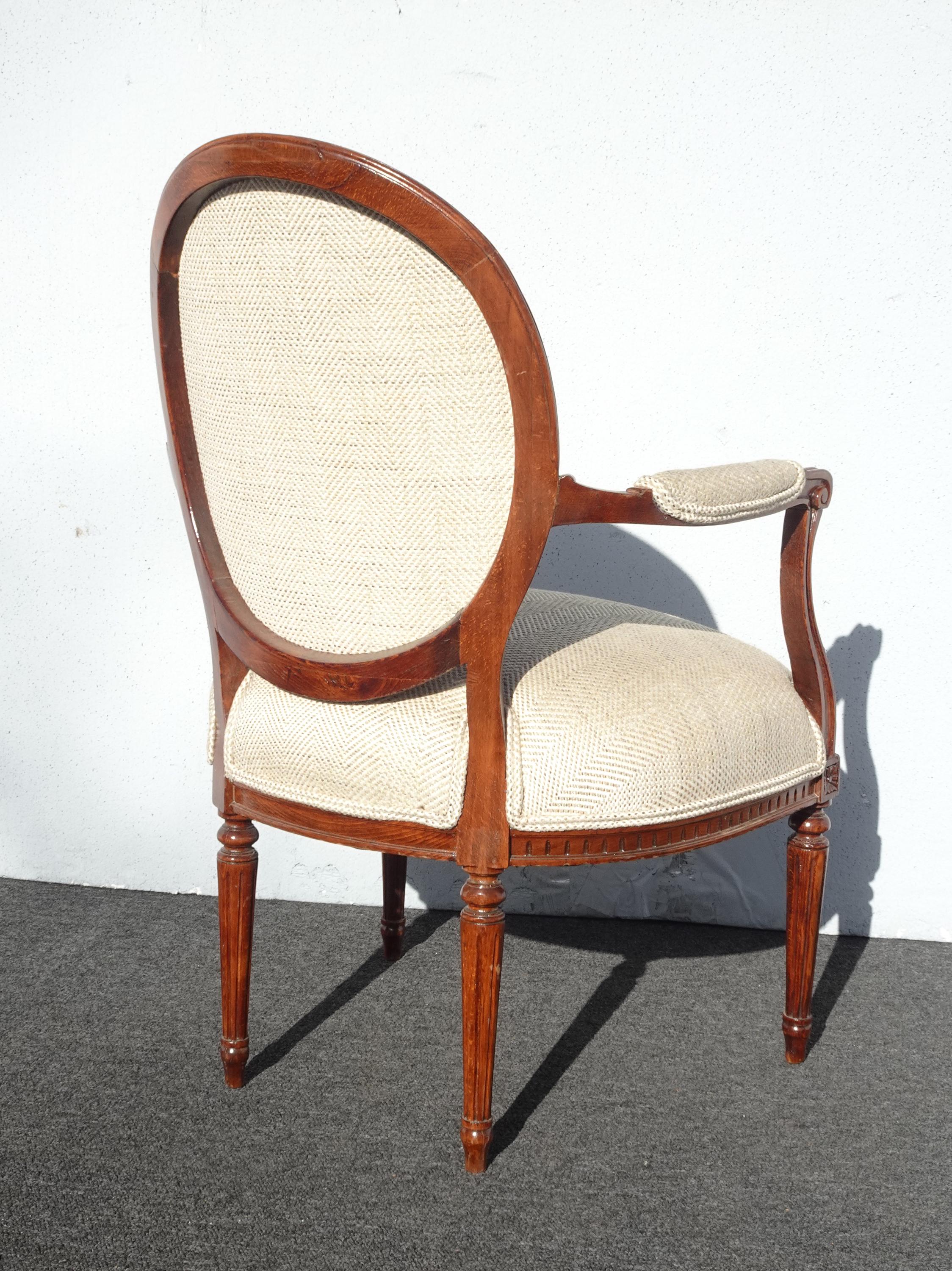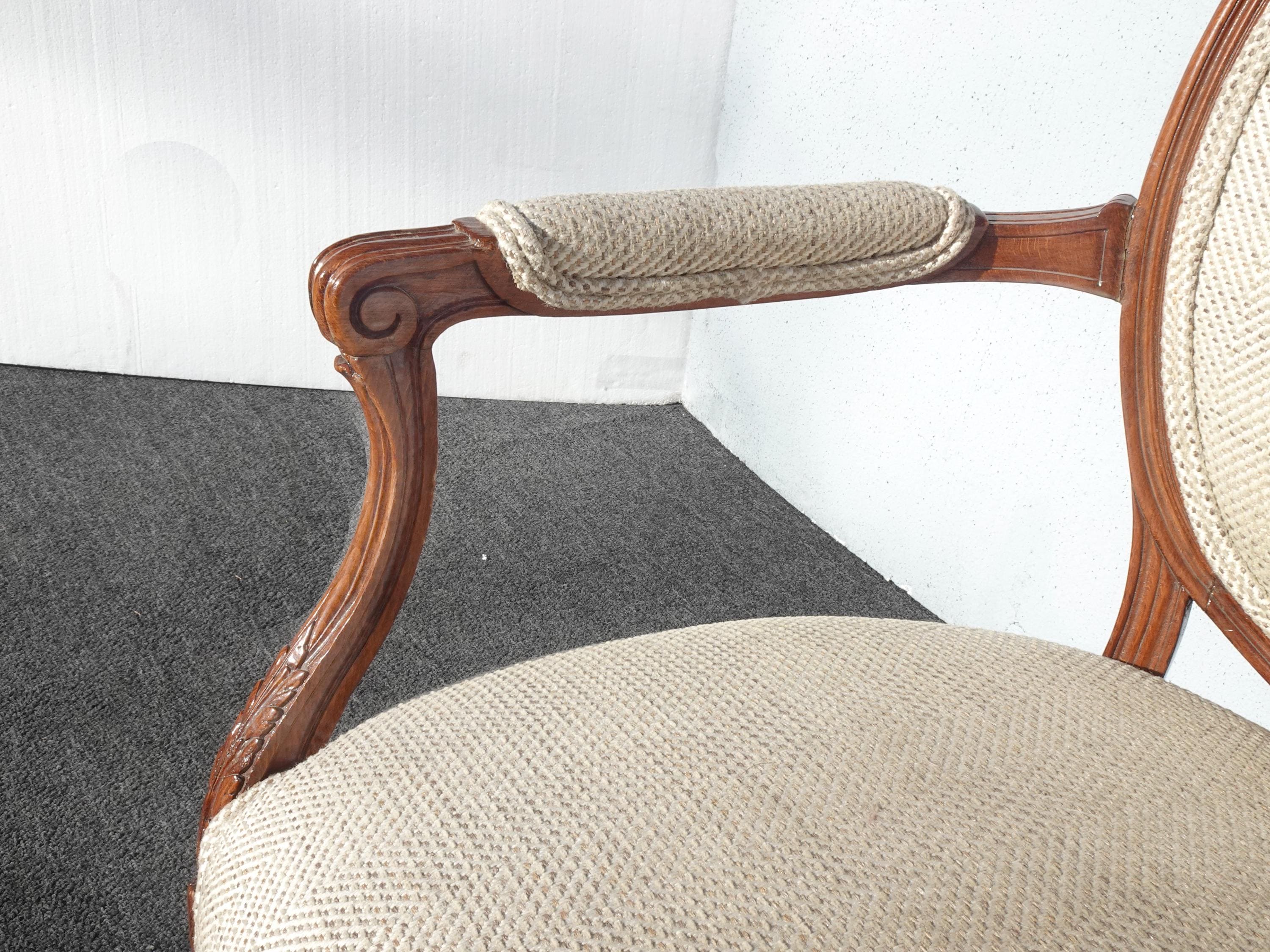 Vintage French Provincial Burlap Linen Side Arm Chair w Ornate Frame