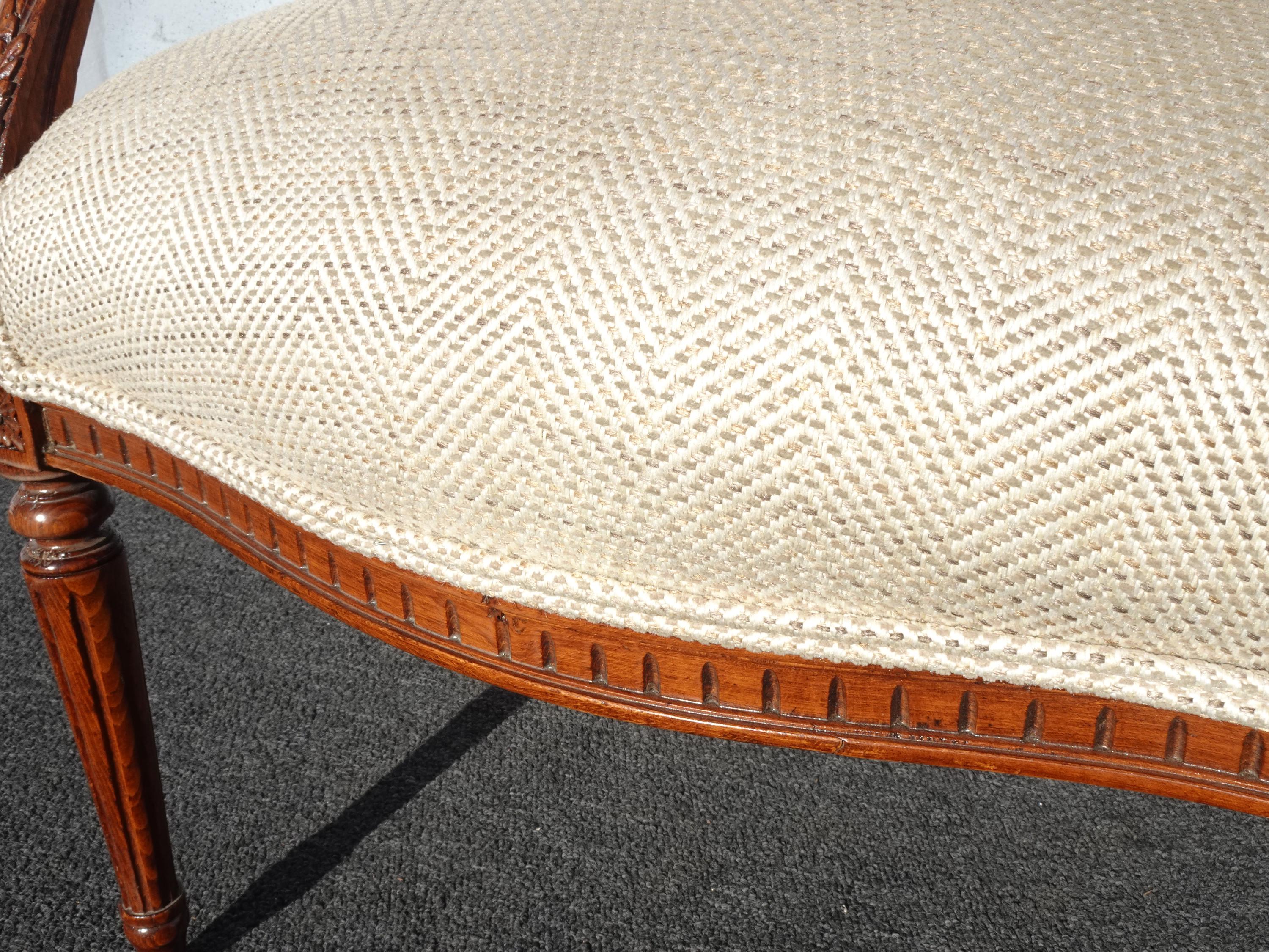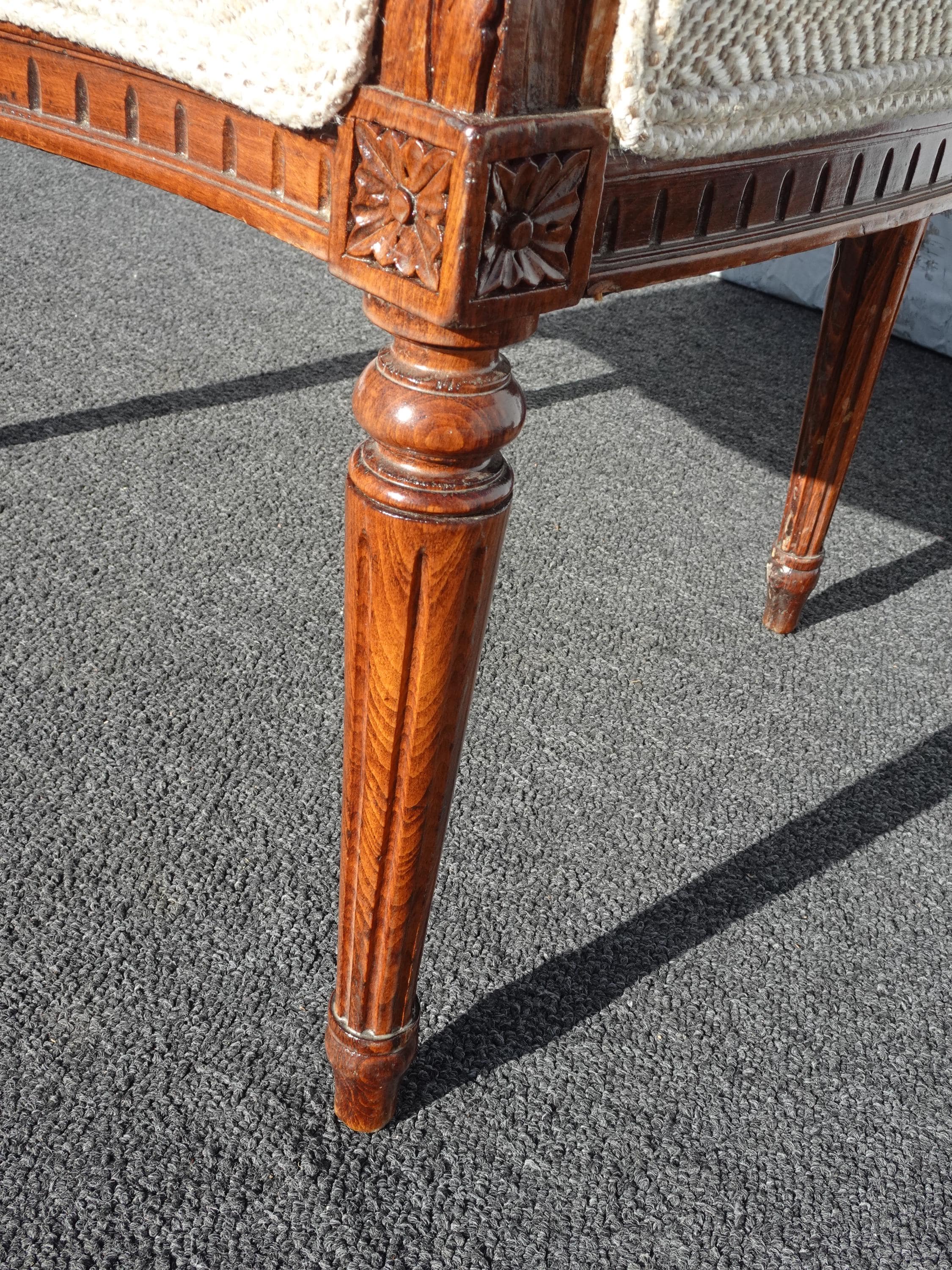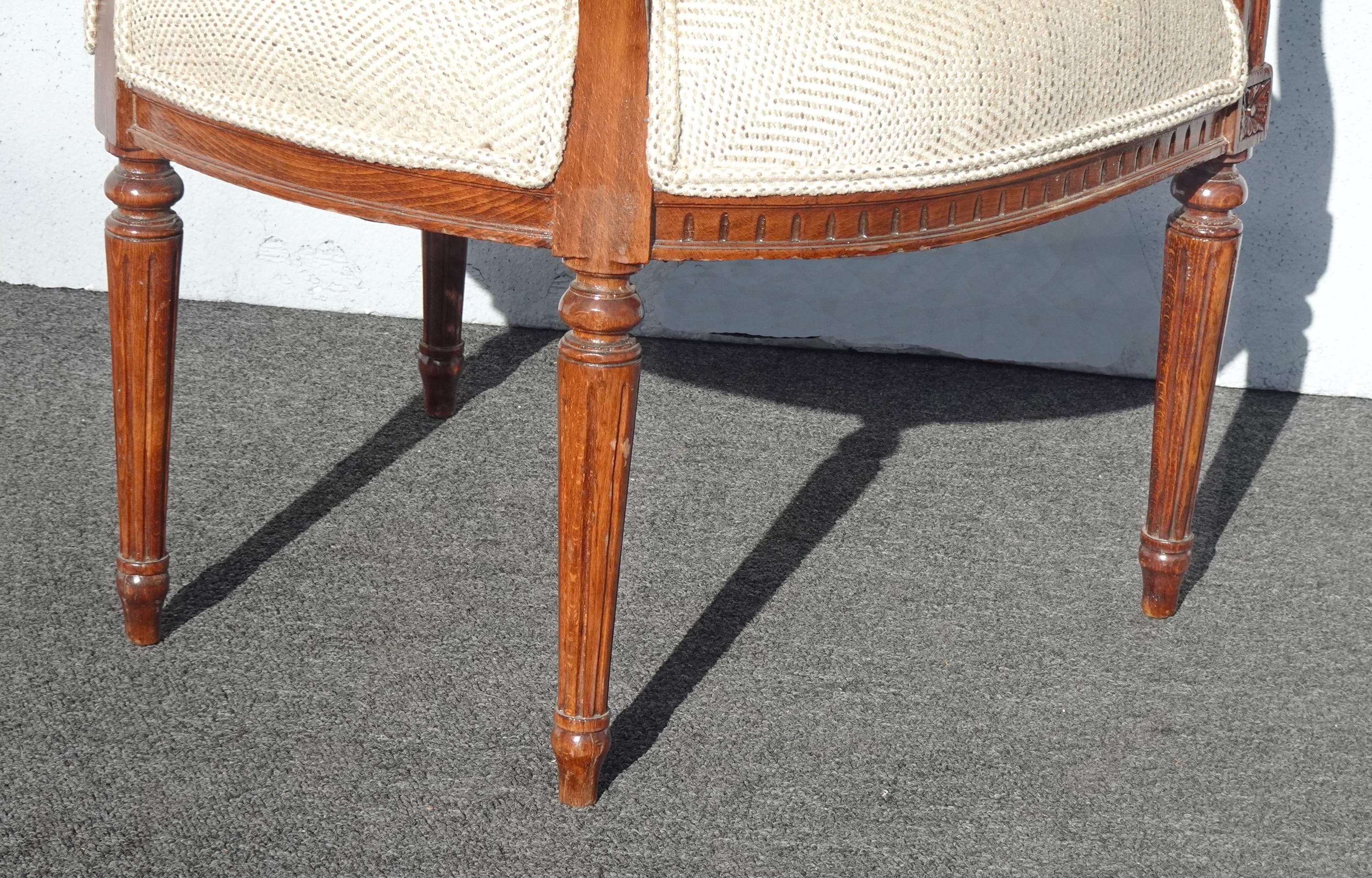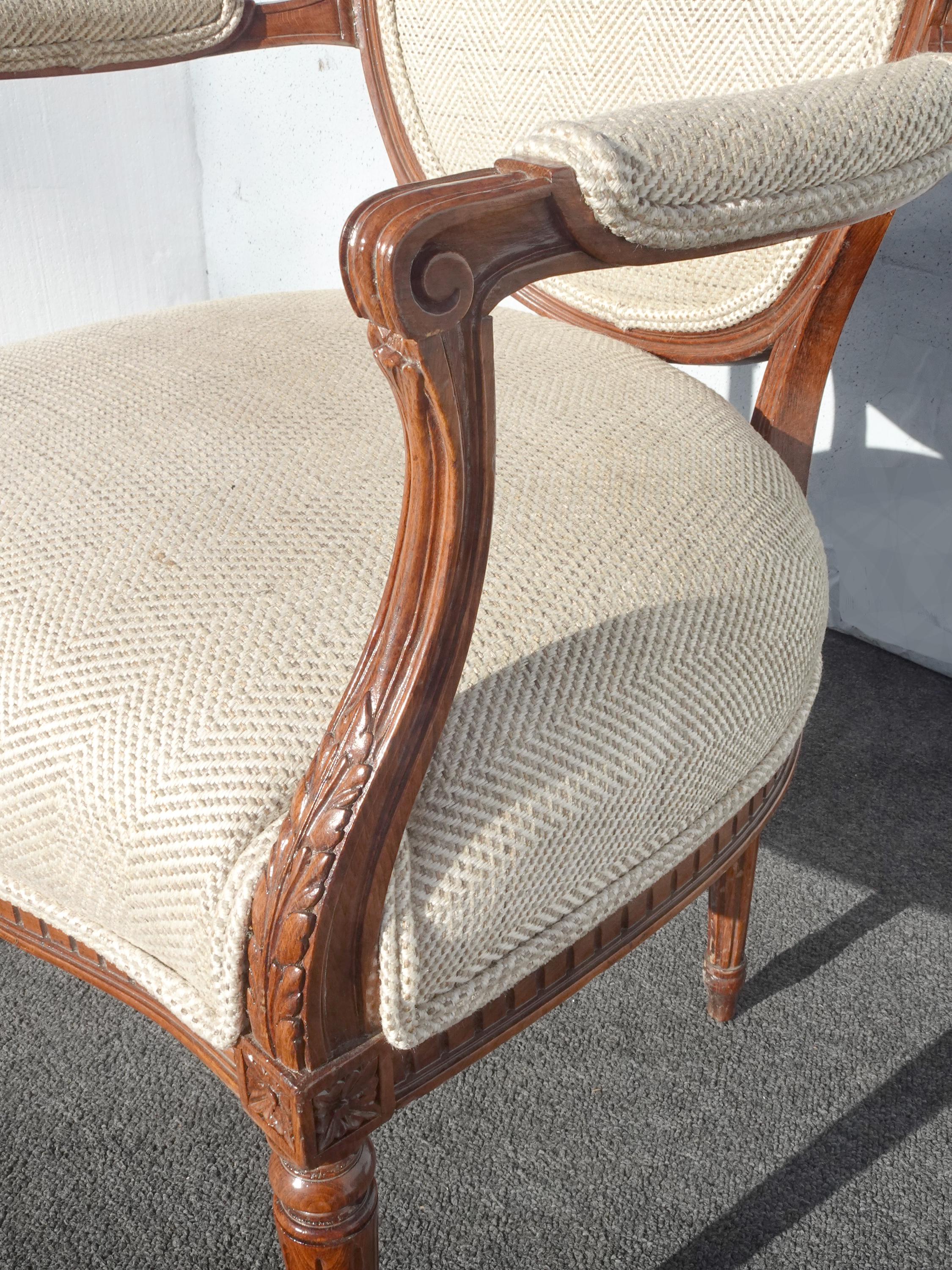 Vintage French Provincial Burlap Linen Side Arm Chair w Ornate Frame