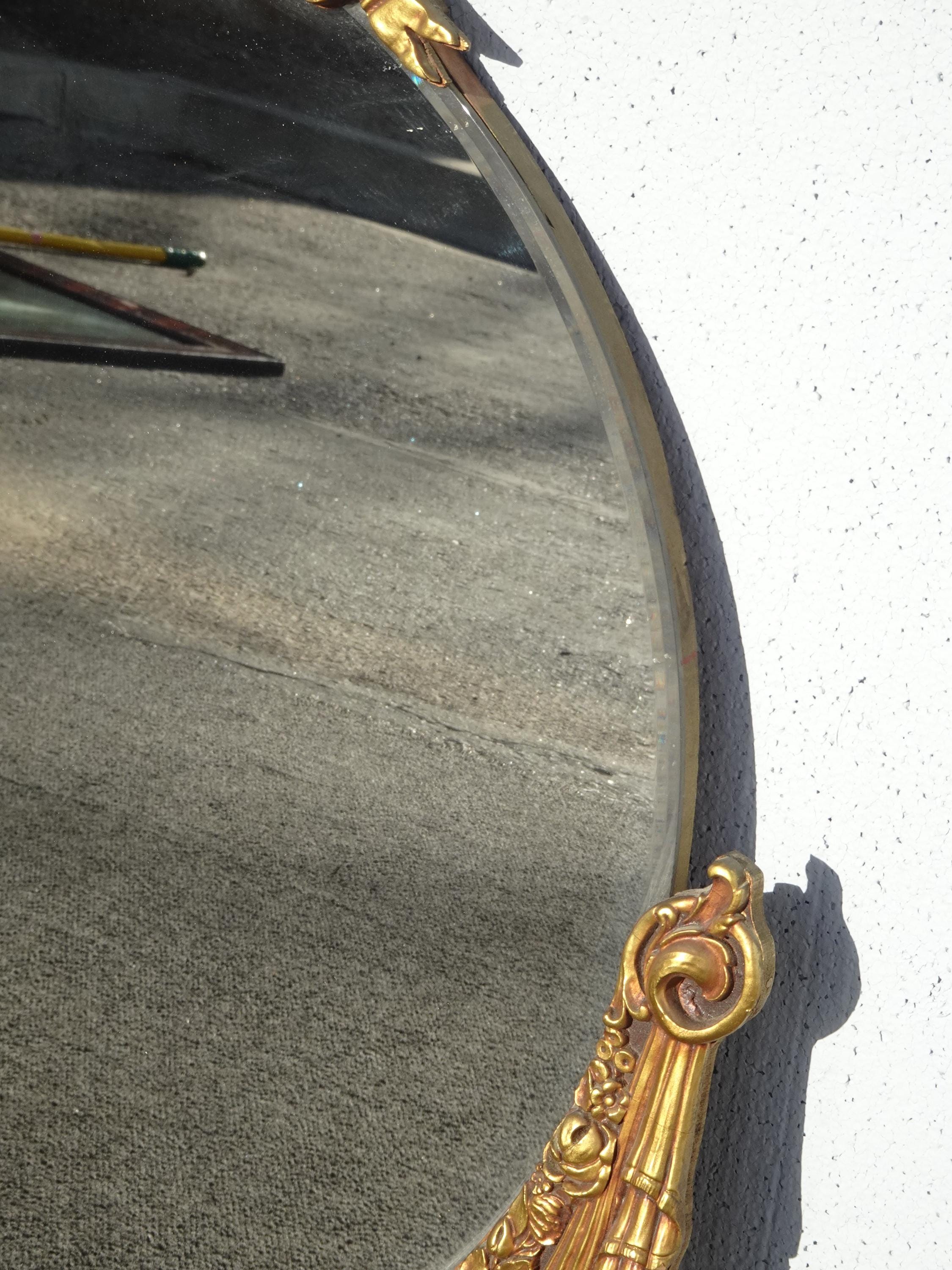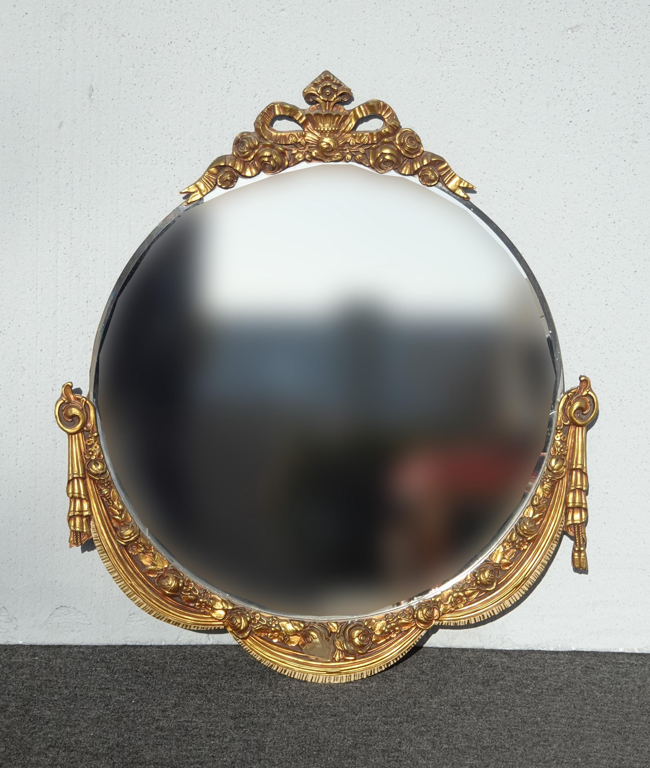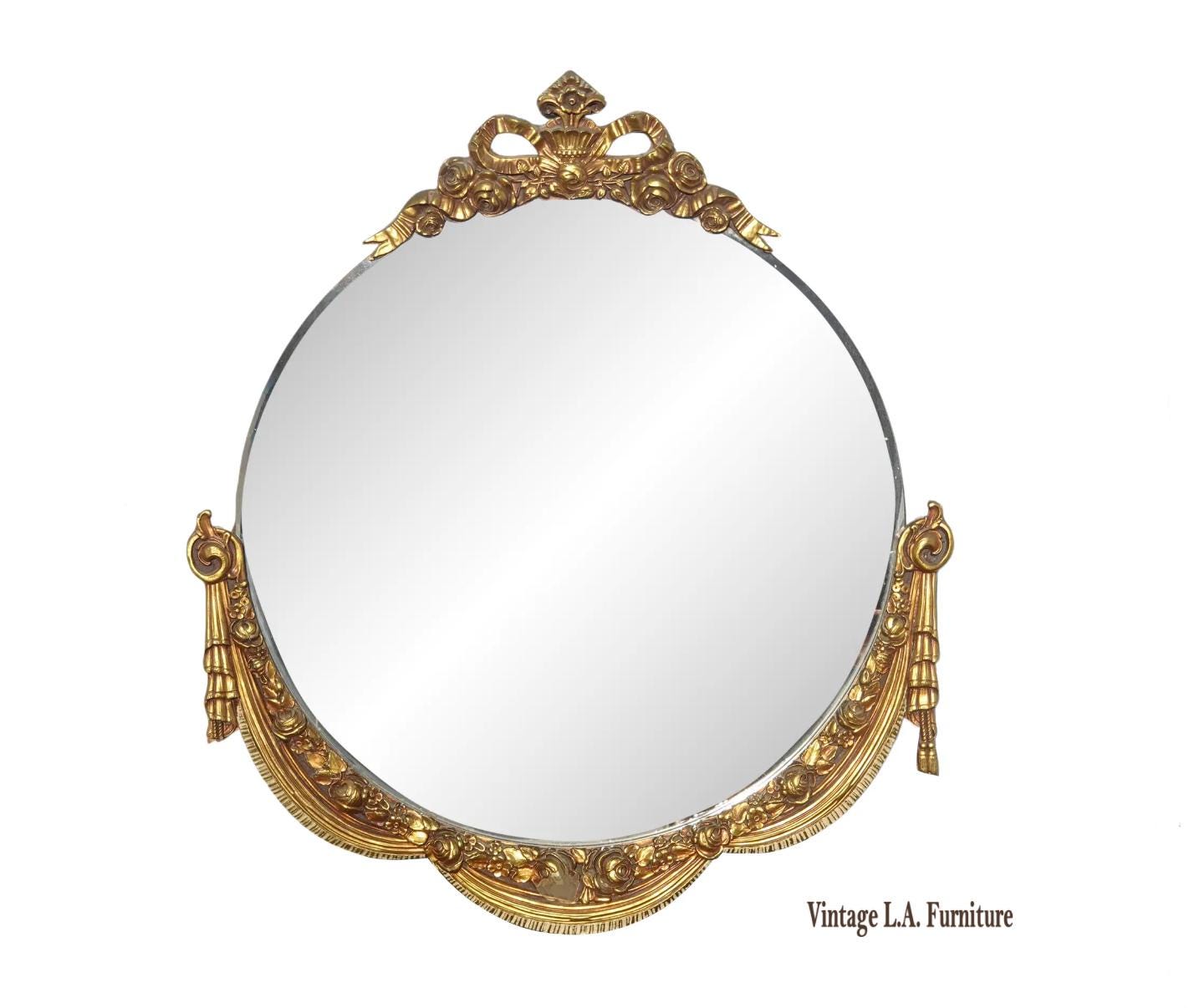 Vintage French Provincial Round Gold Ornate Wall Mantle Mirror