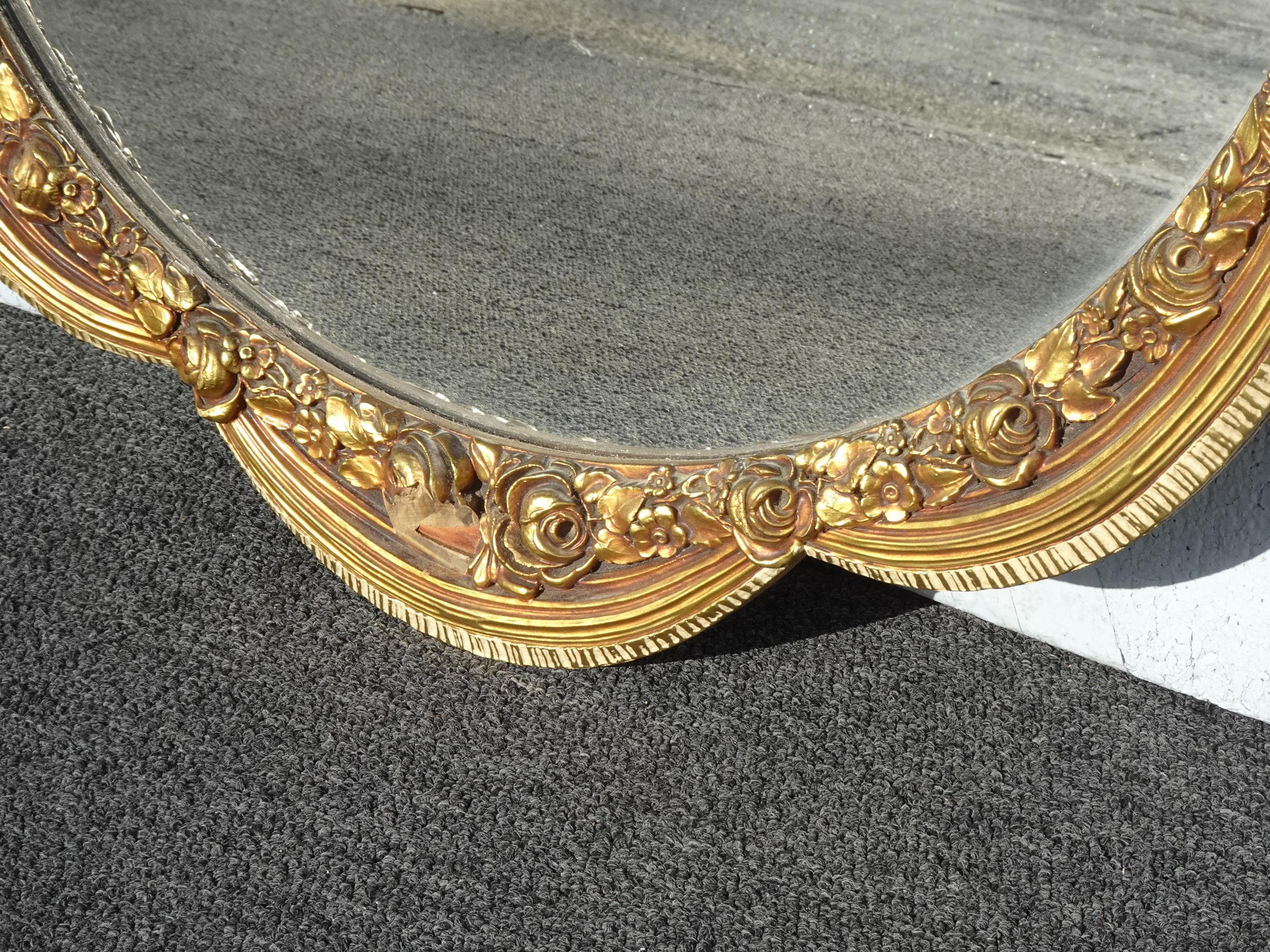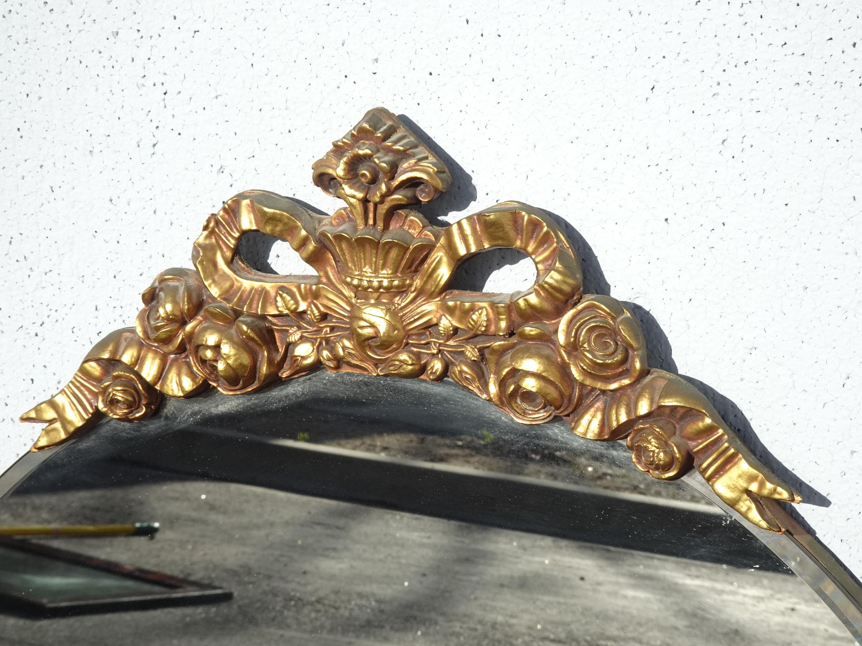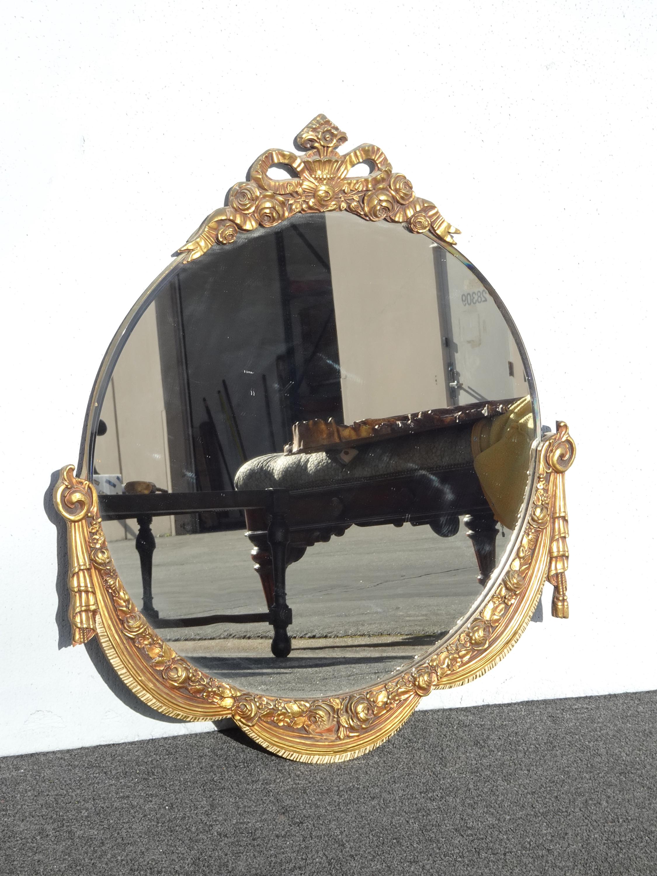 Vintage French Provincial Round Gold Ornate Wall Mantle Mirror