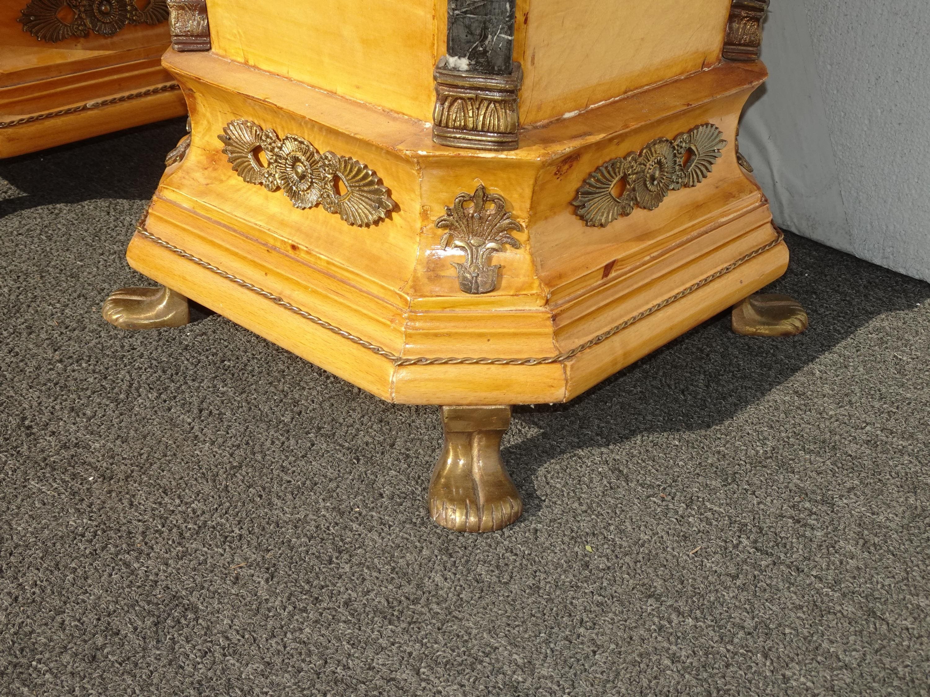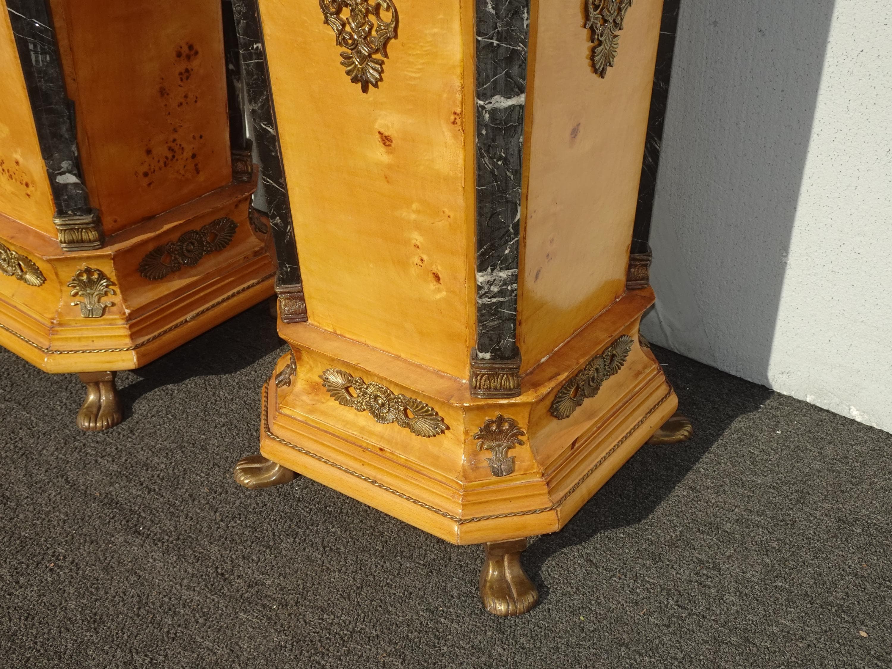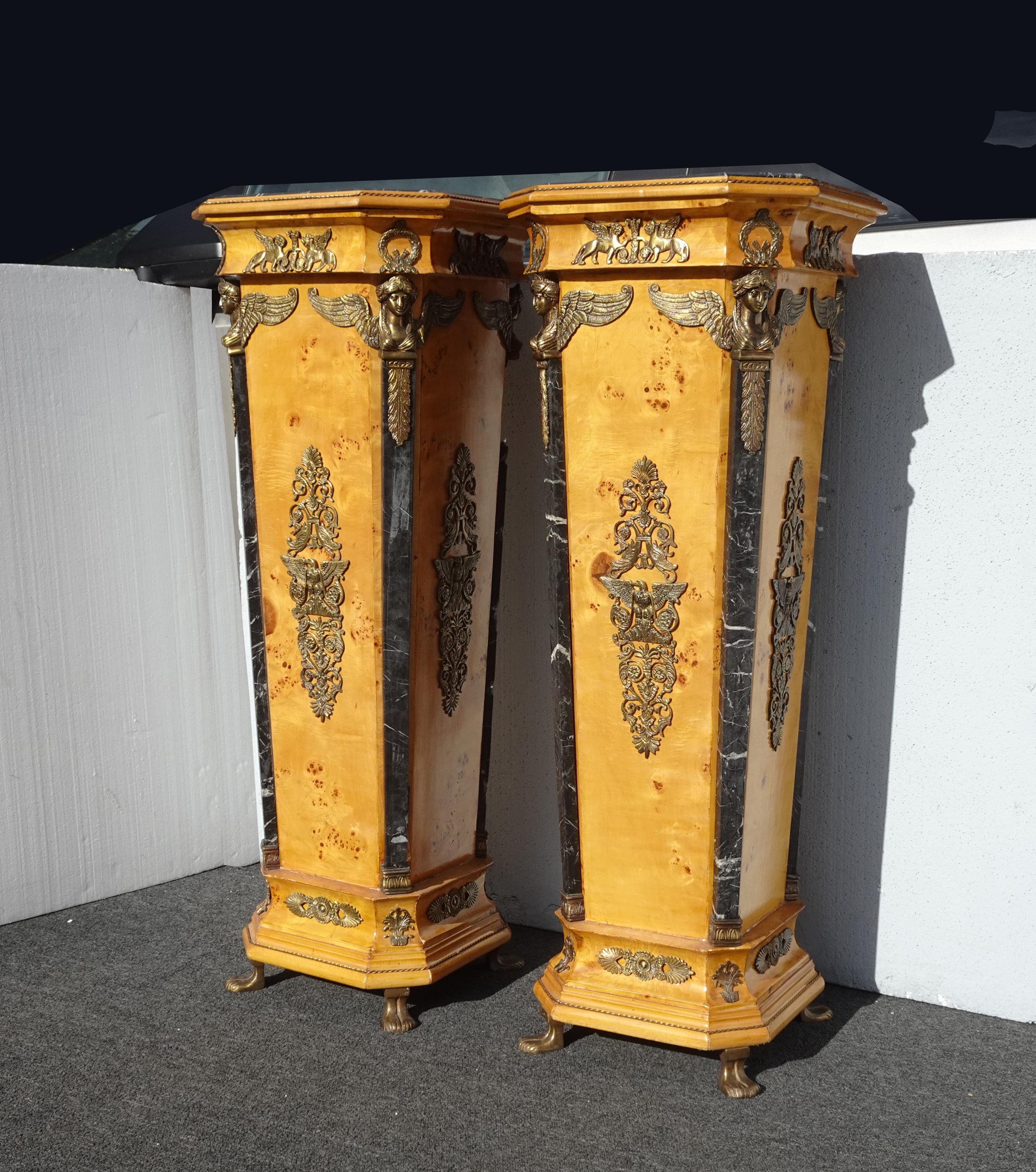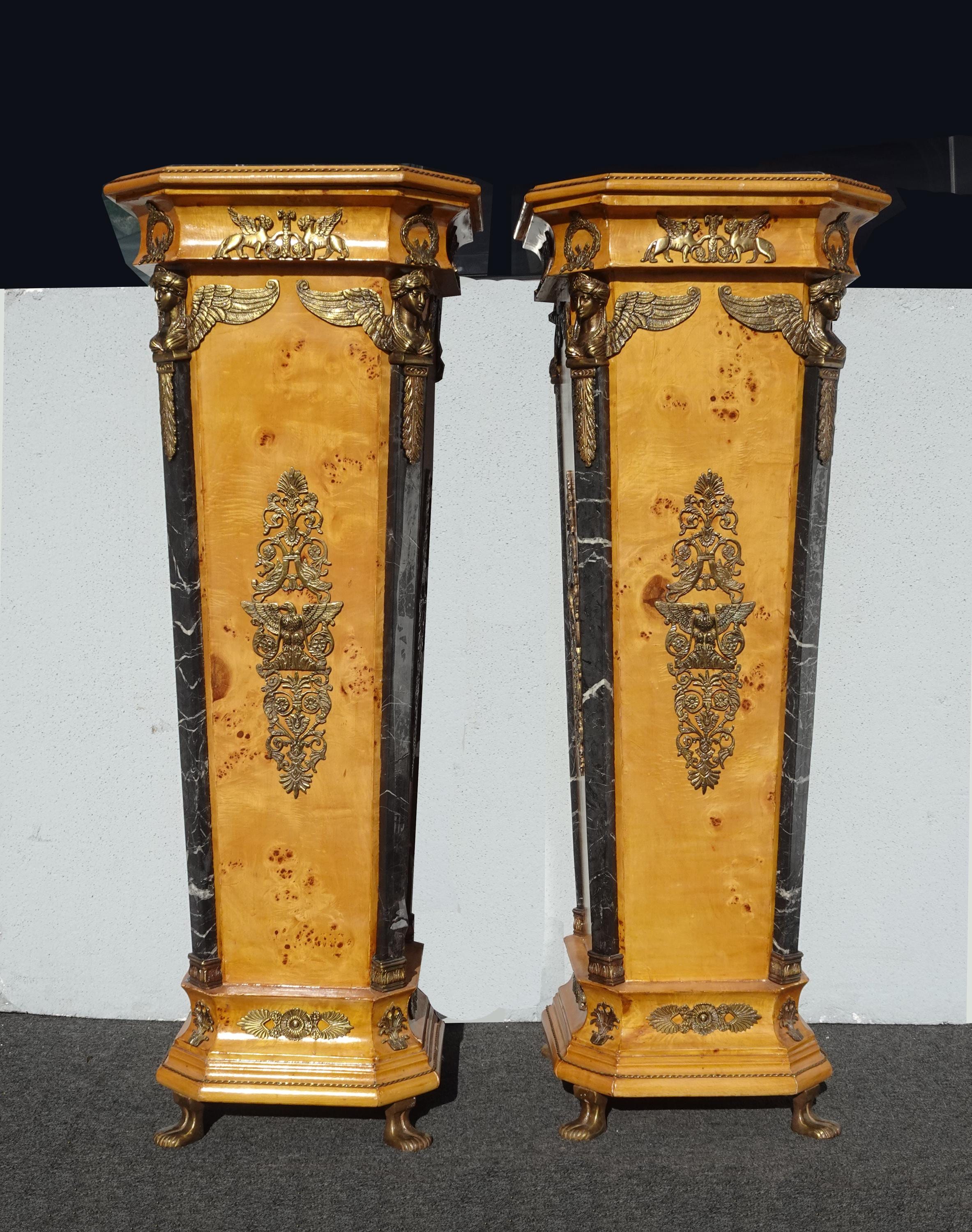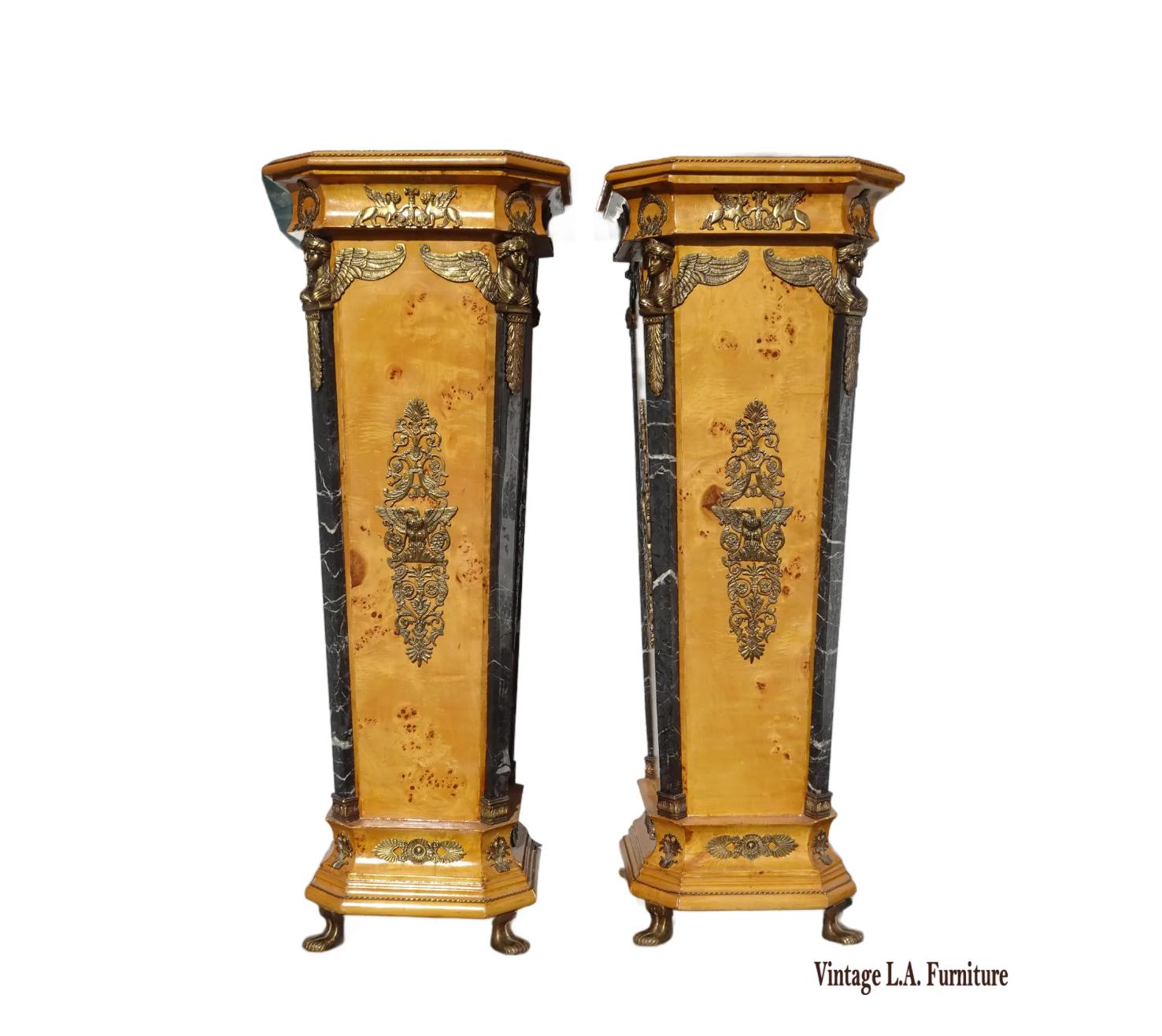 Pair of Antique French Empire Gold Ormolu Mottled Marble Pedestals Stands