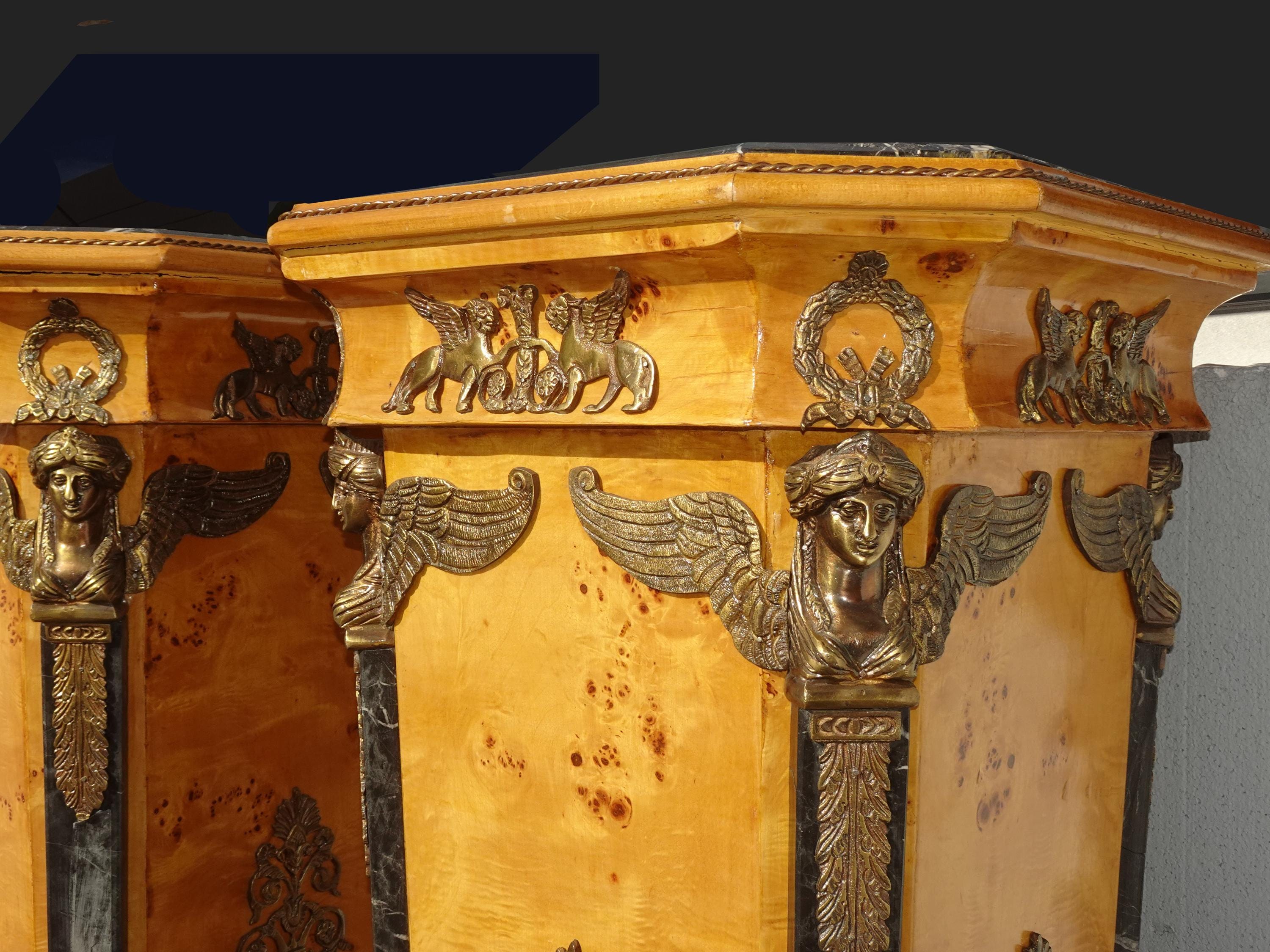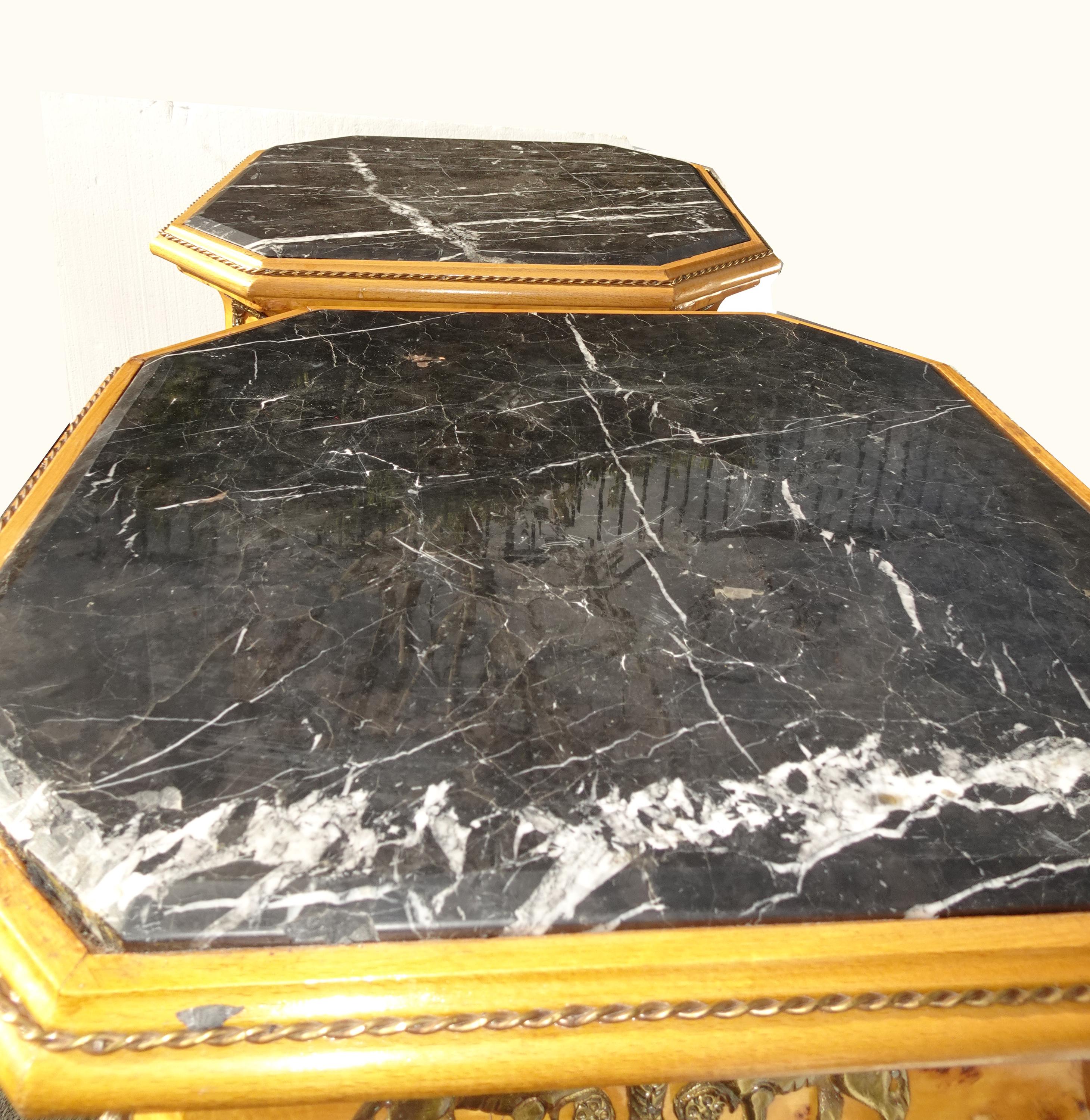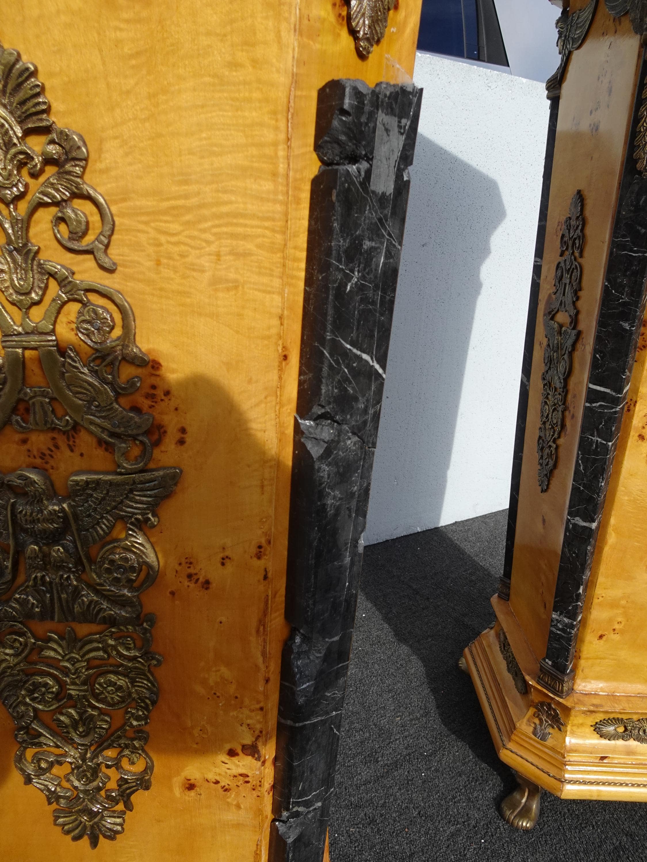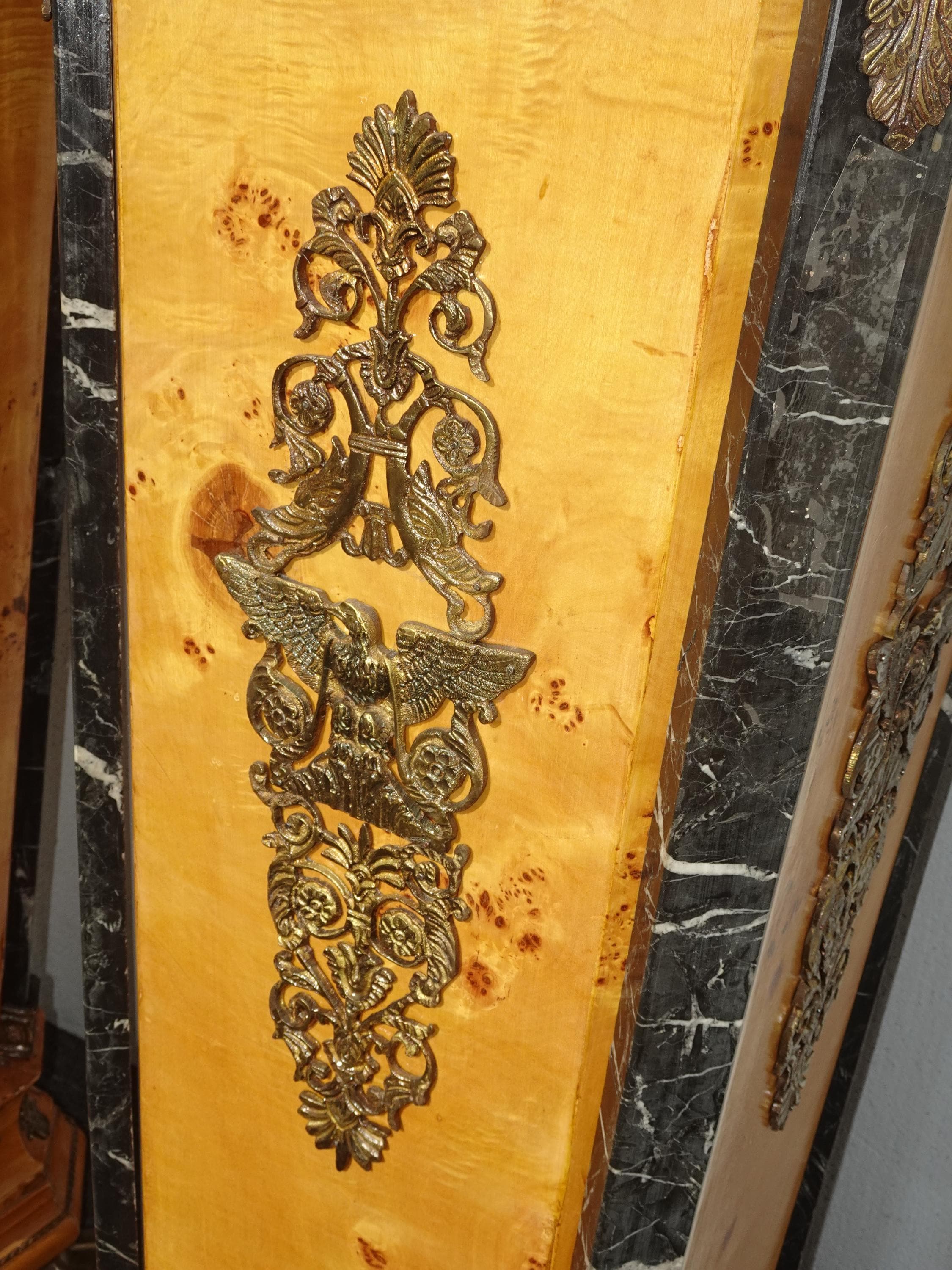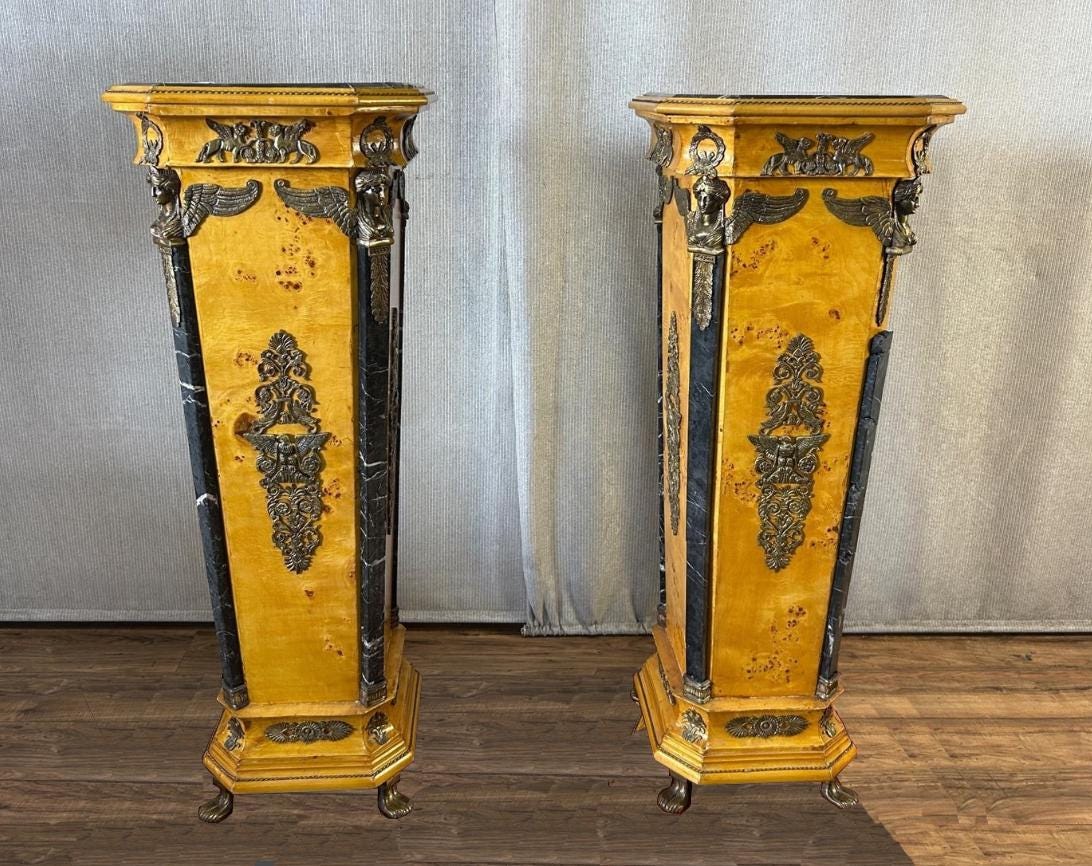 Pair of Antique French Empire Gold Ormolu Mottled Marble Pedestals Stands