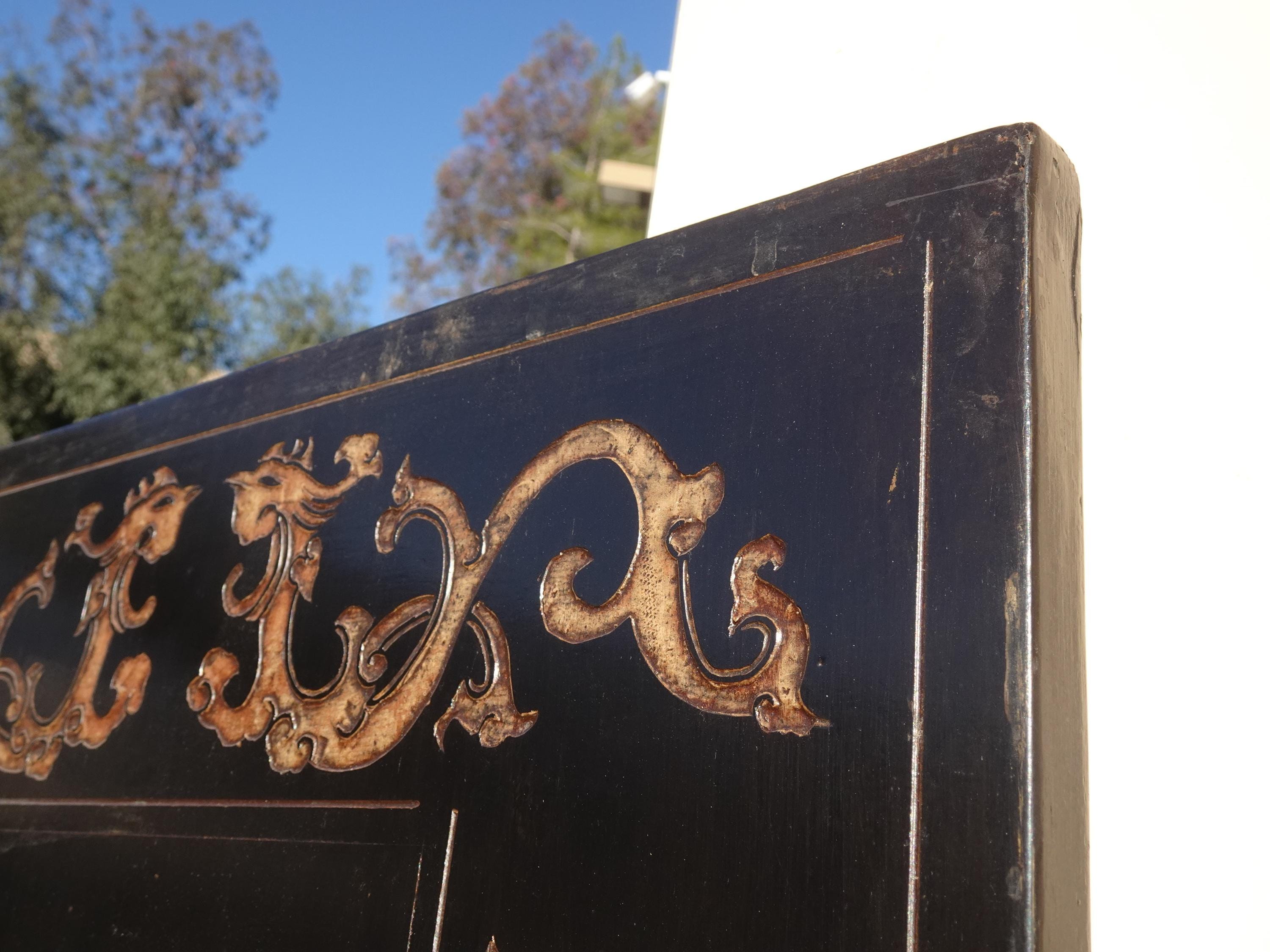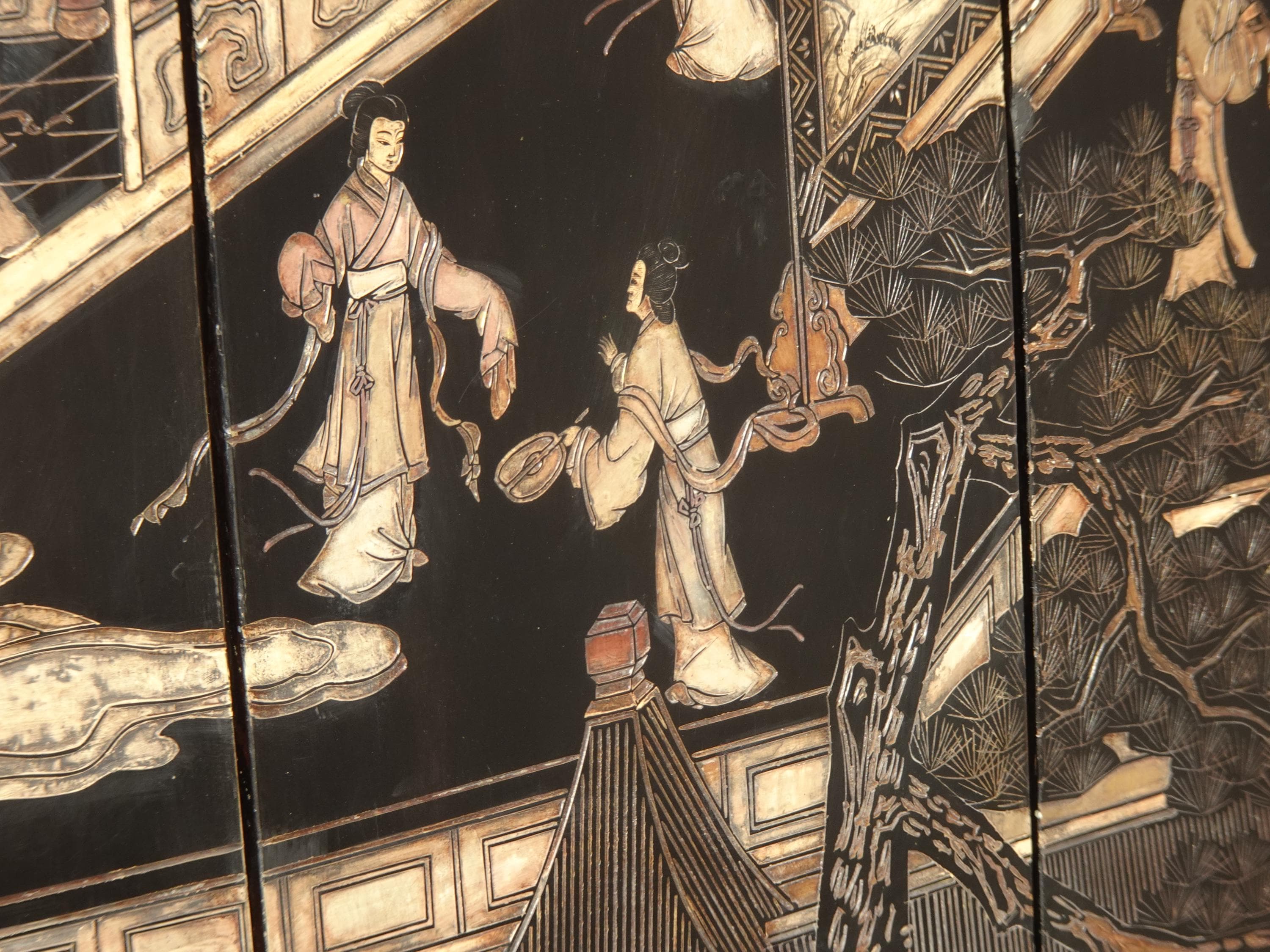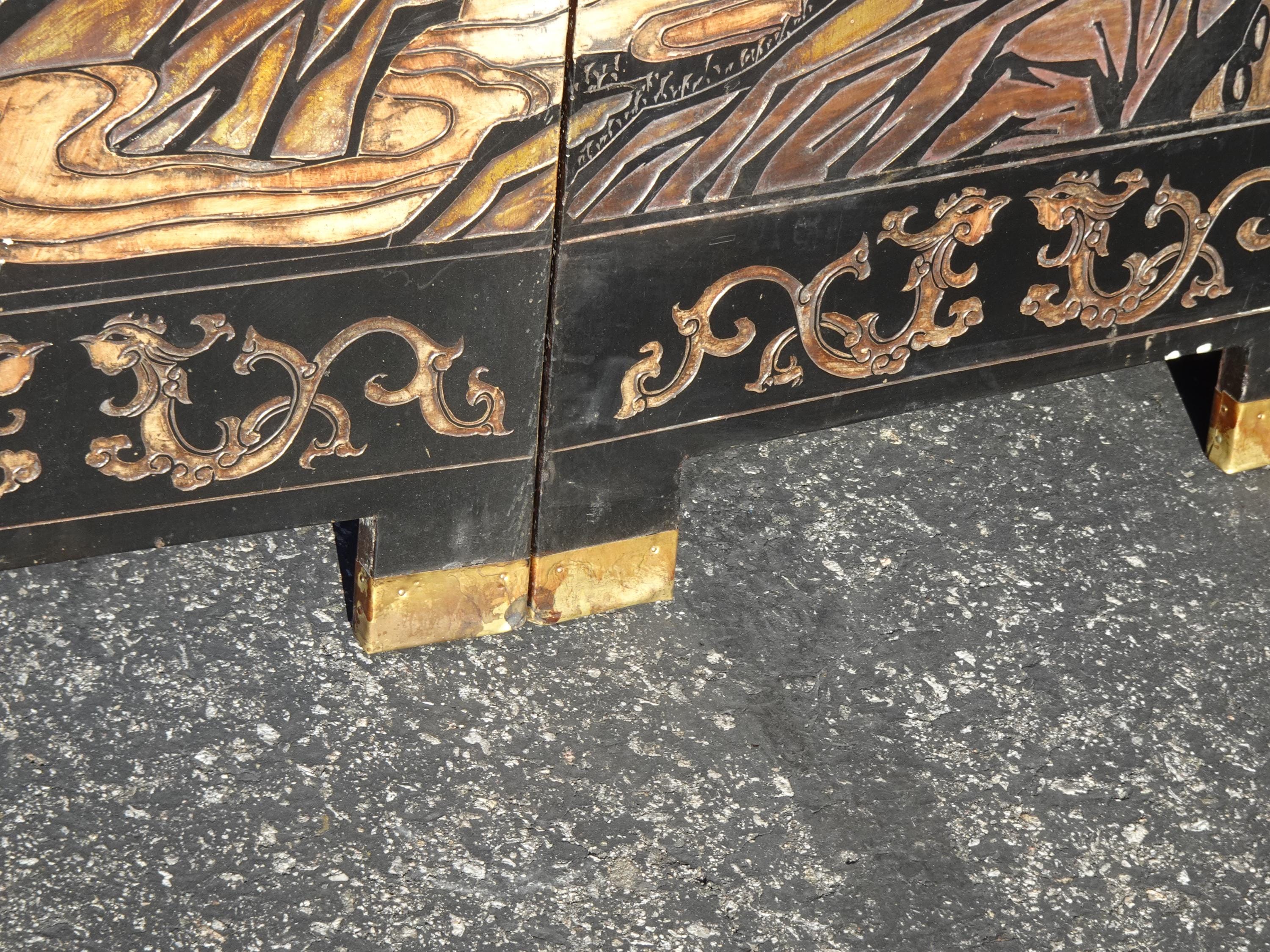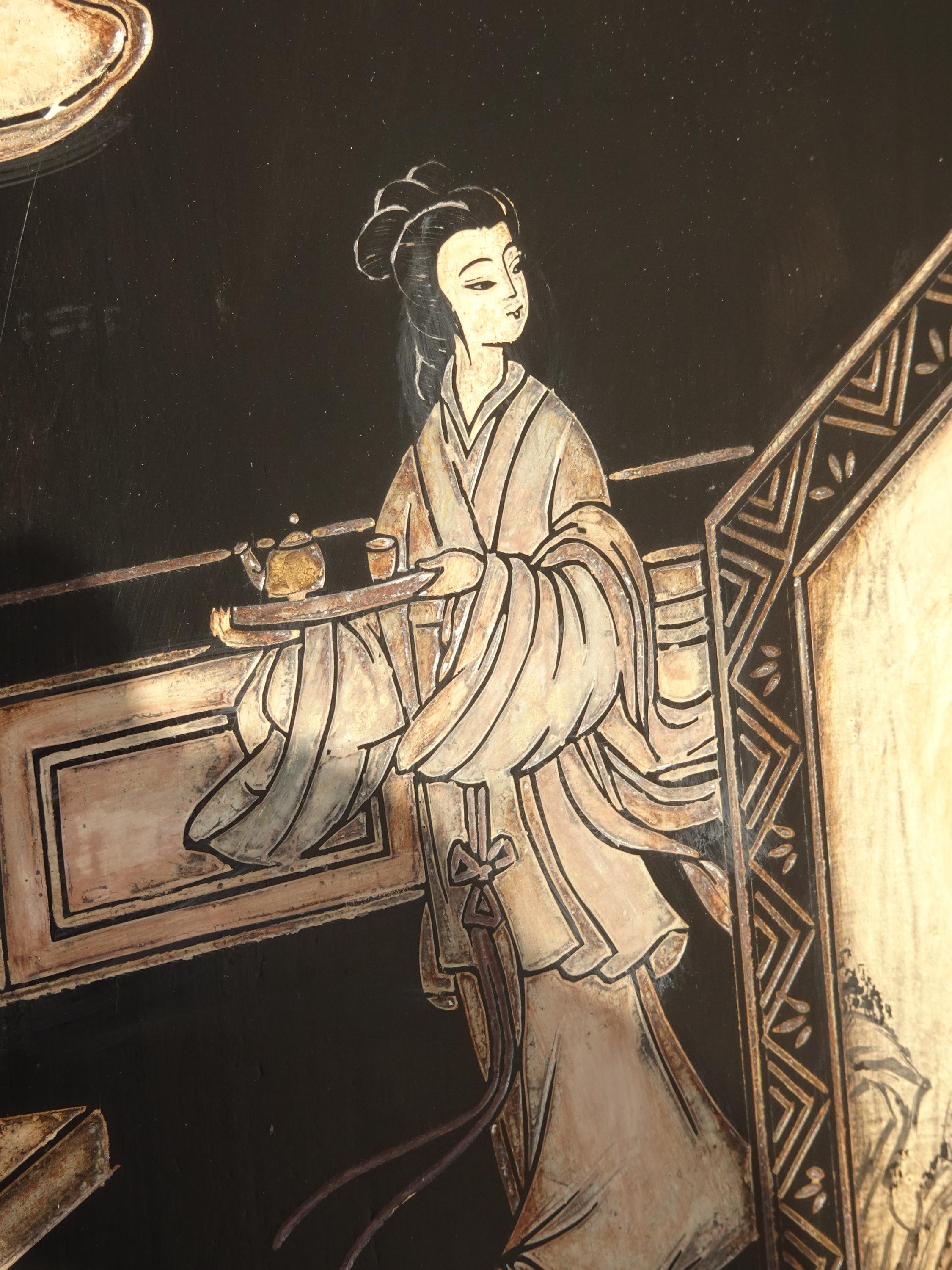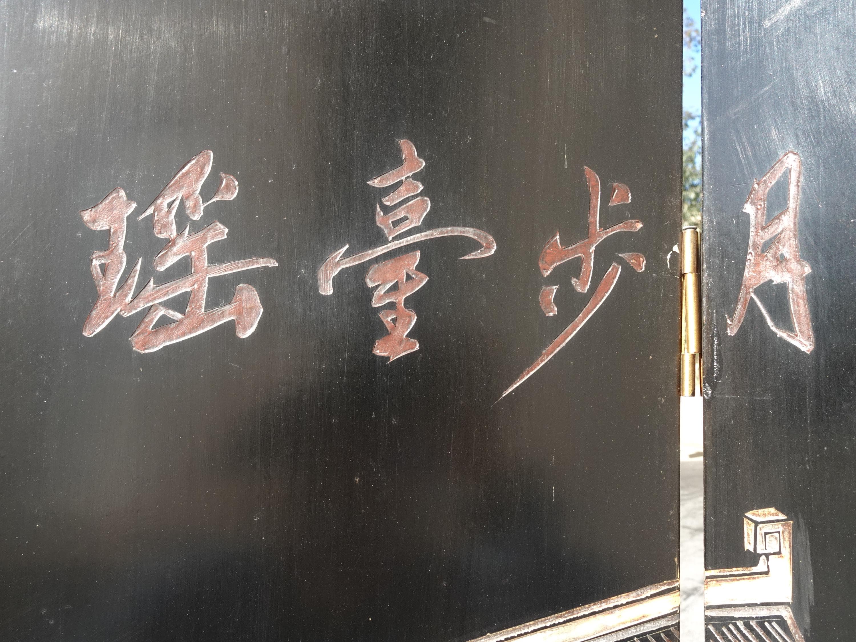 Vintage Oriental Asian Palace City Coromandel Chinoiserie Black Six Panel Screen