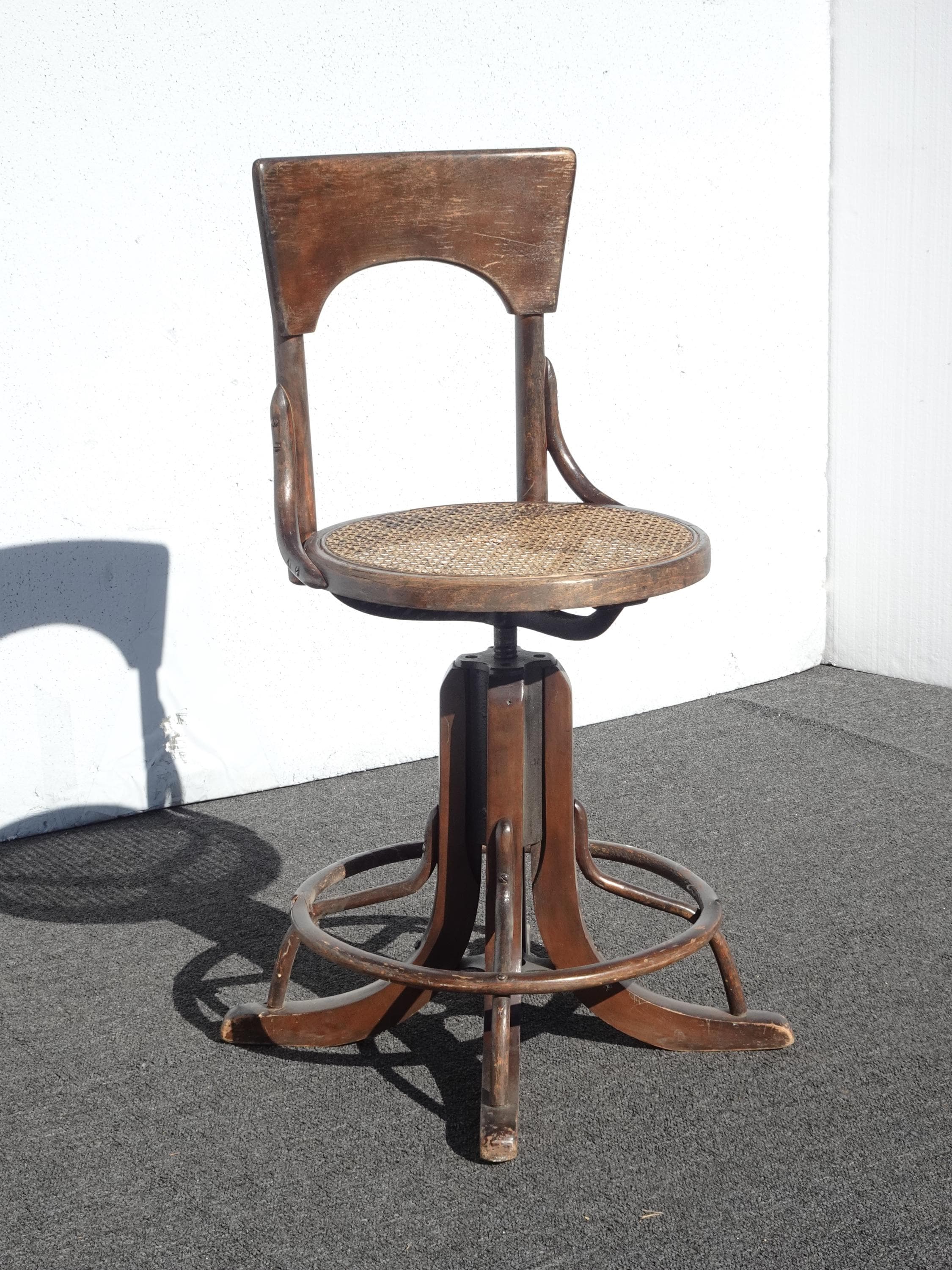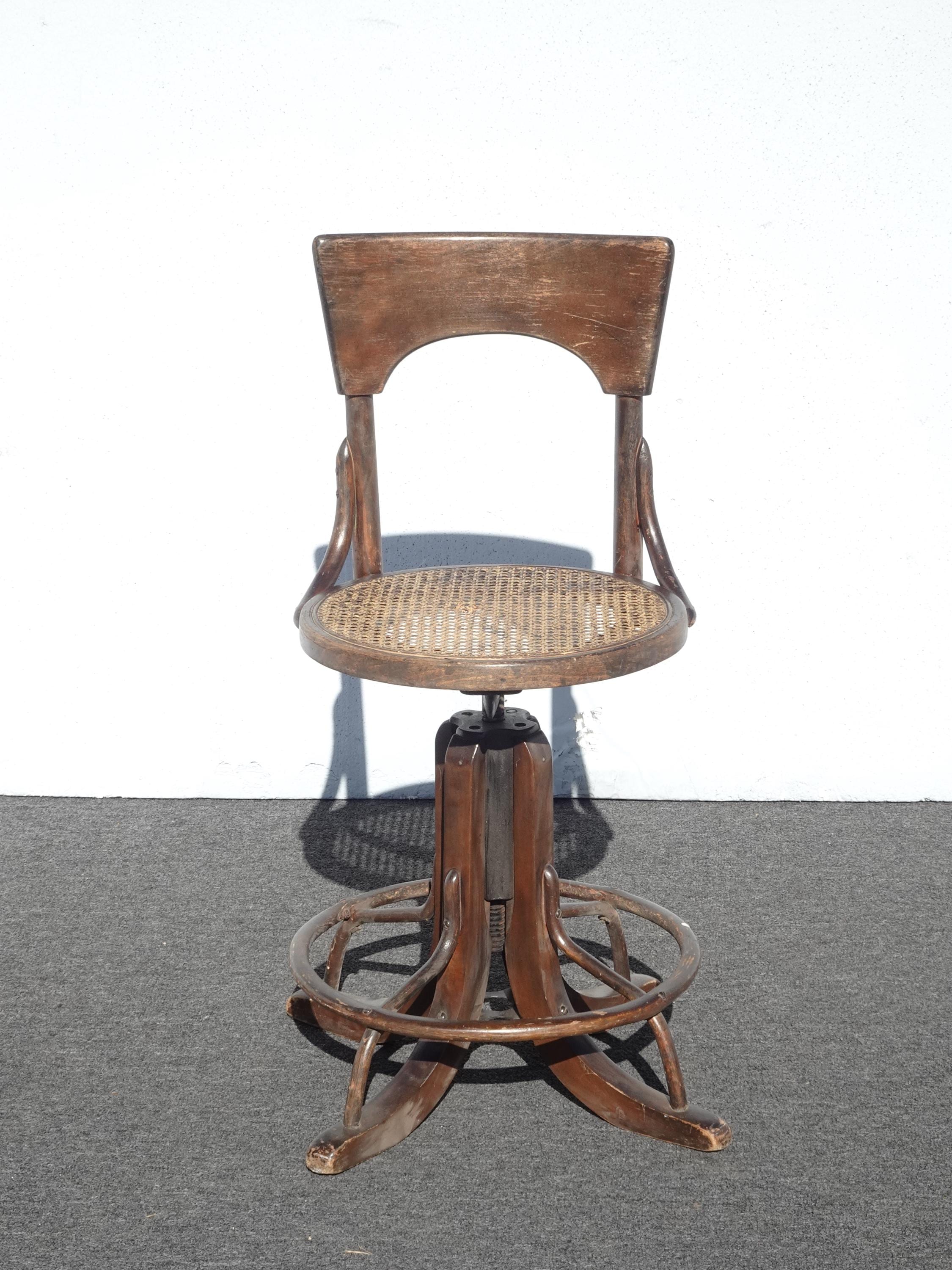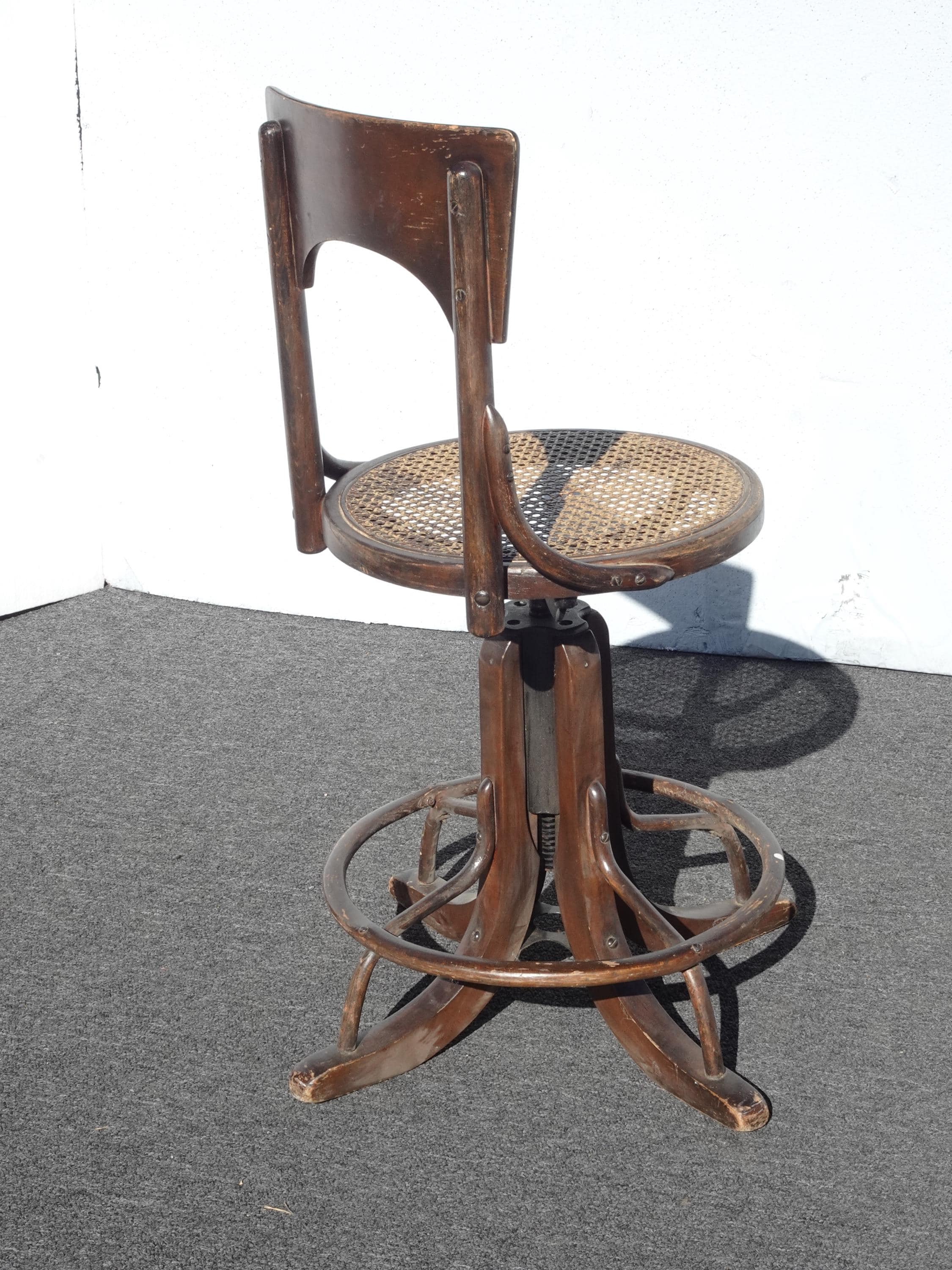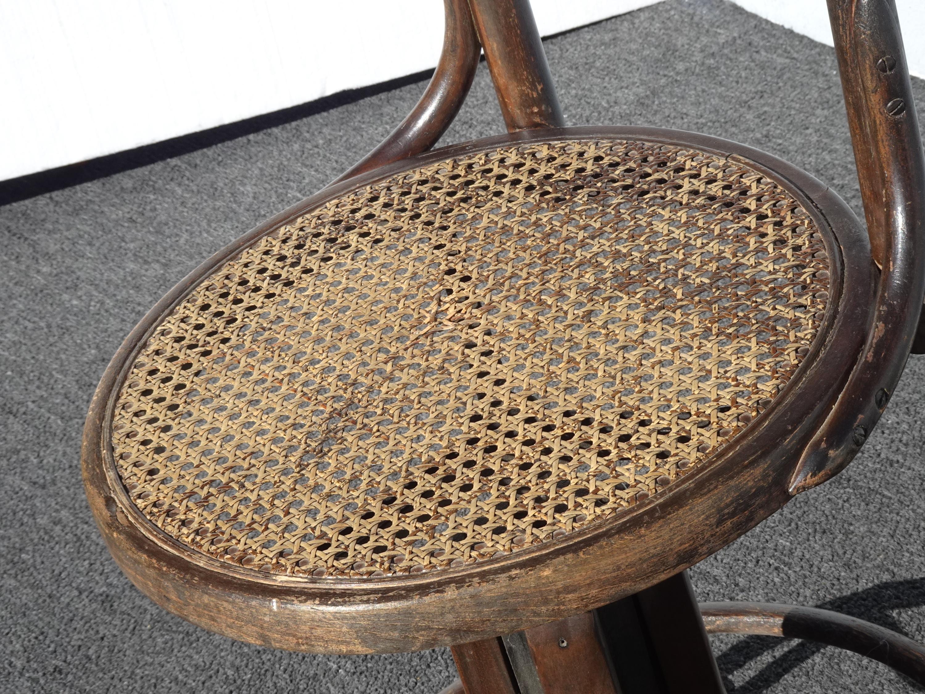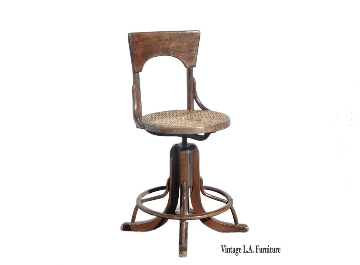 Antique French Country Industrial Telephone Swivel Cane Chair ~ Stool Adjustible