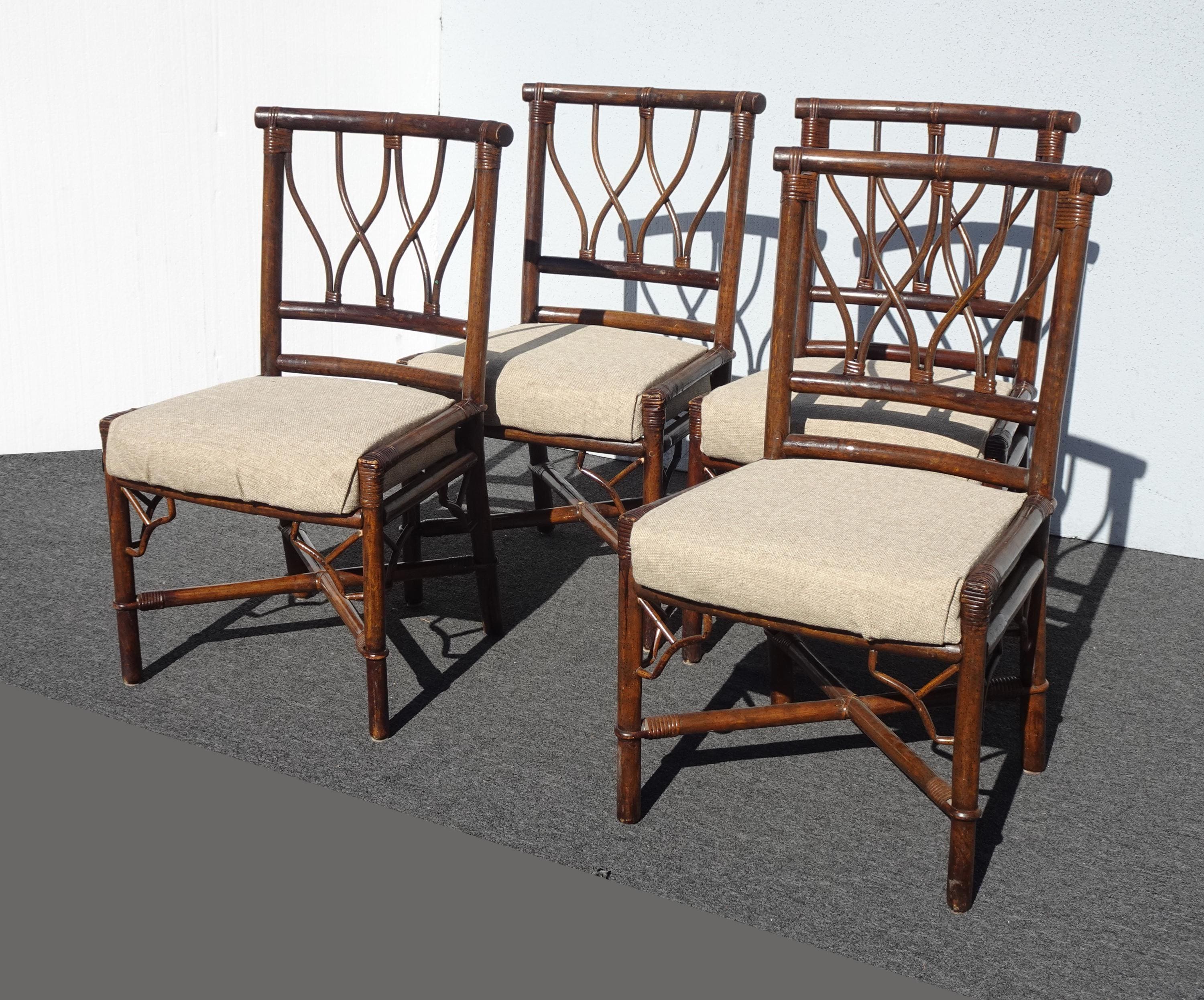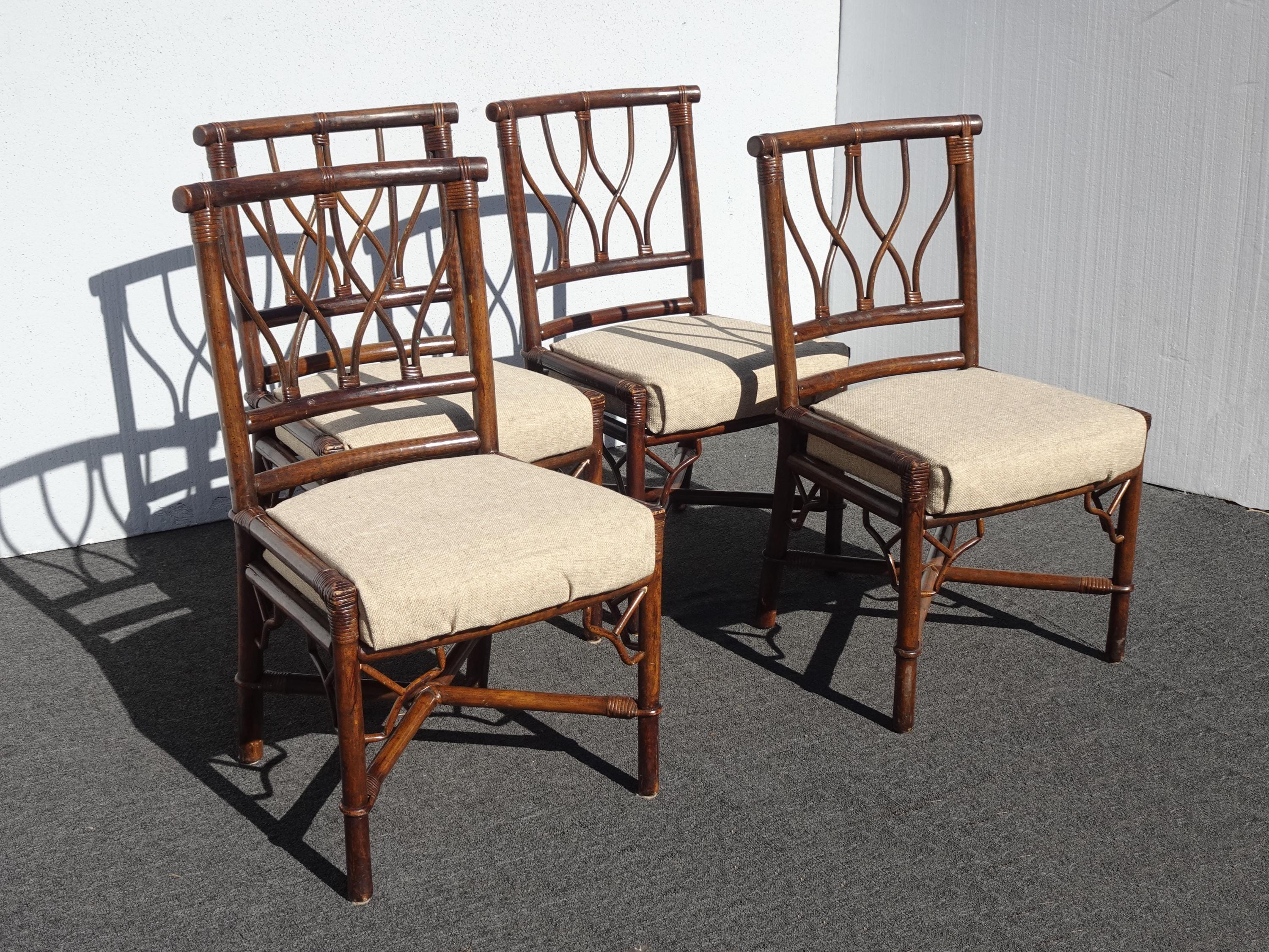 Chairs Chinese Chippendale - Set Four French Country Bamboo Dining Room Chairs