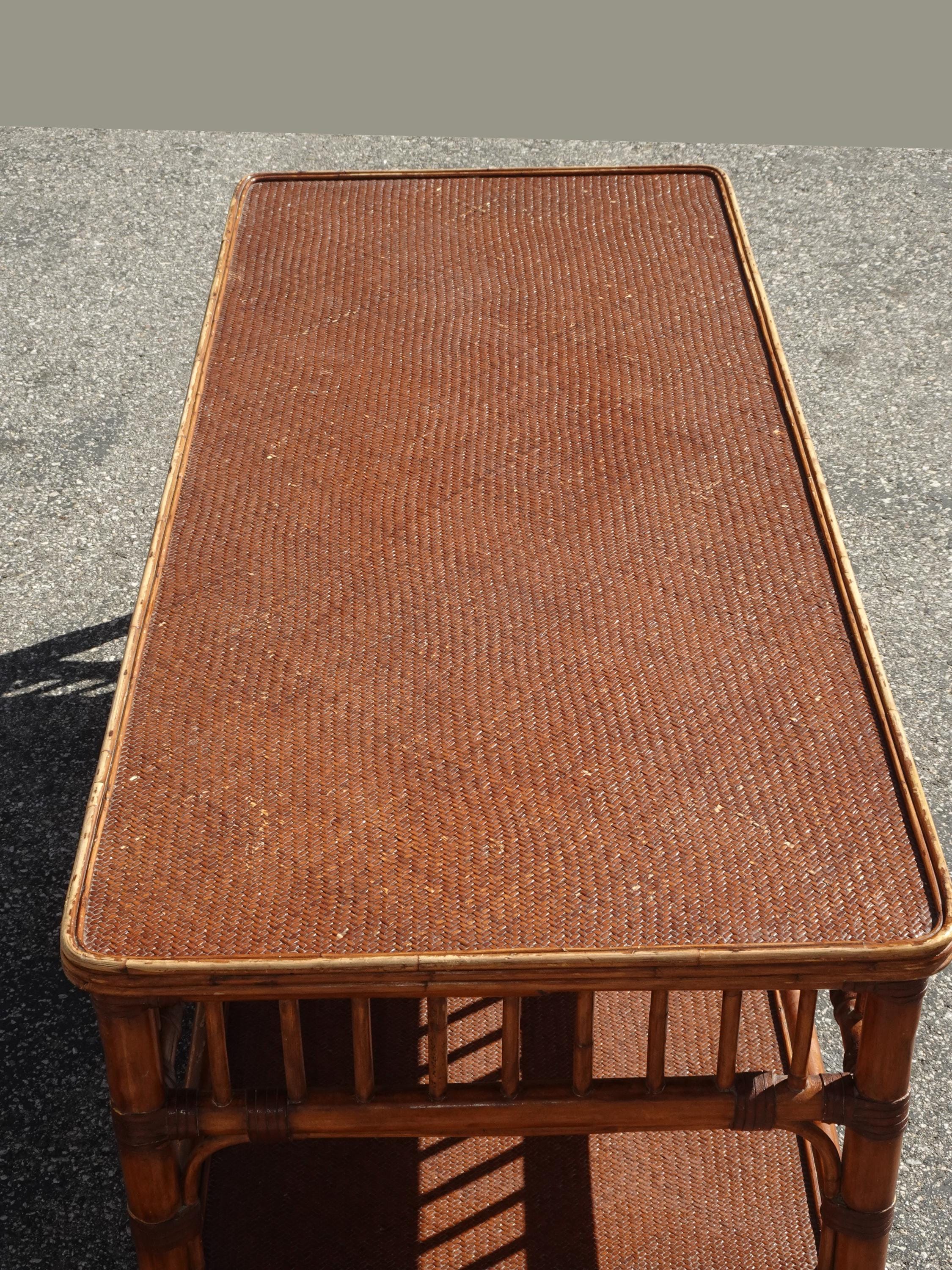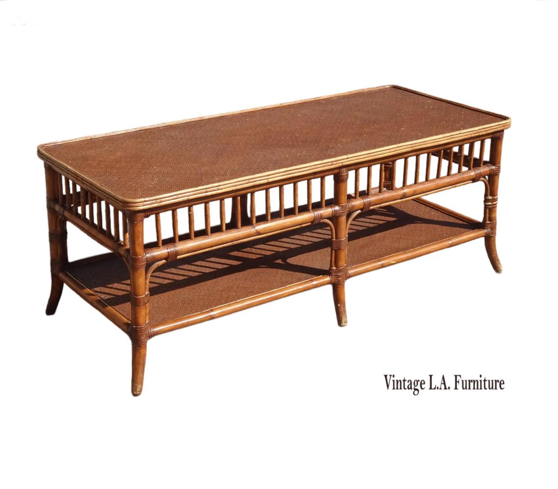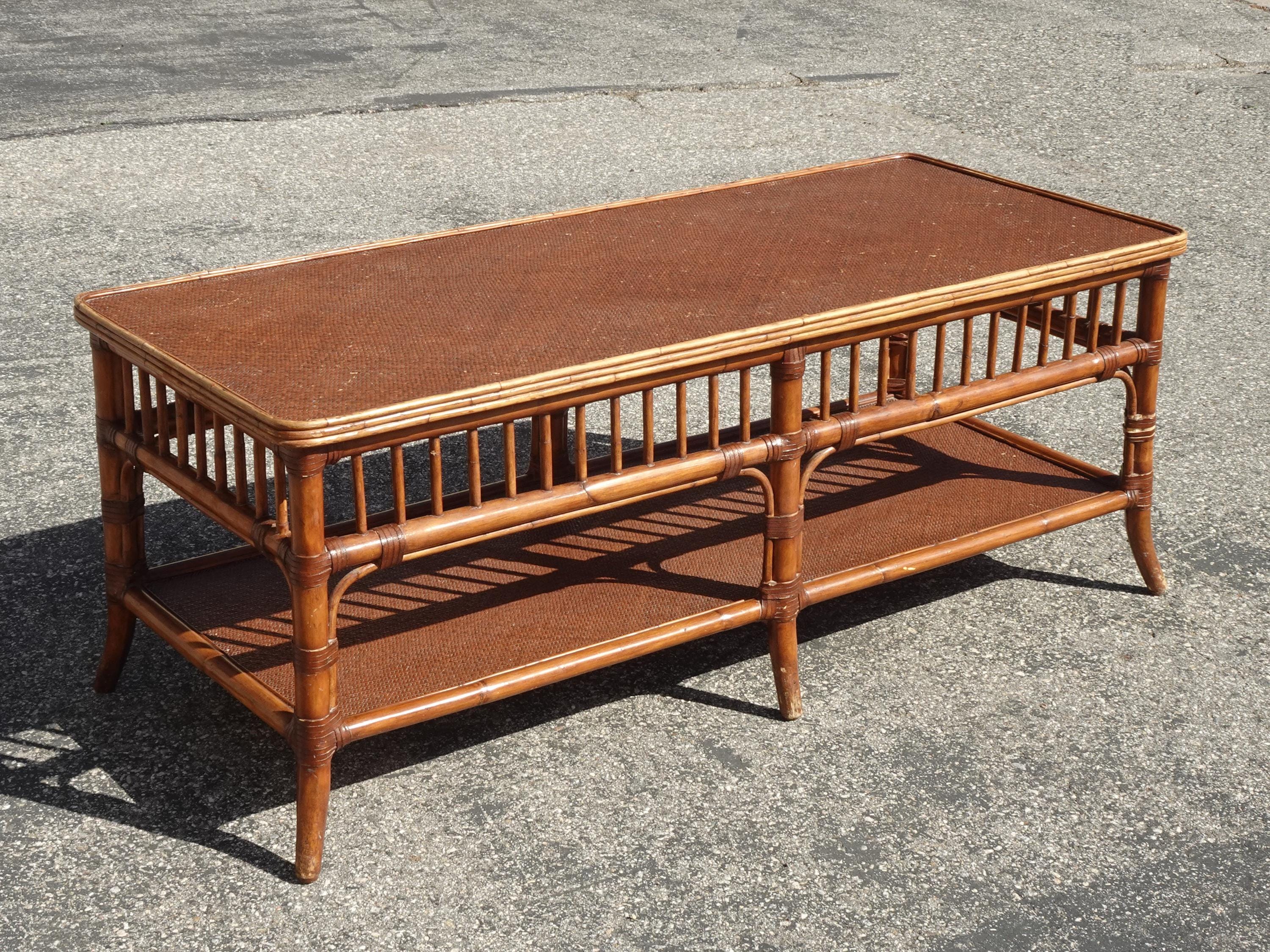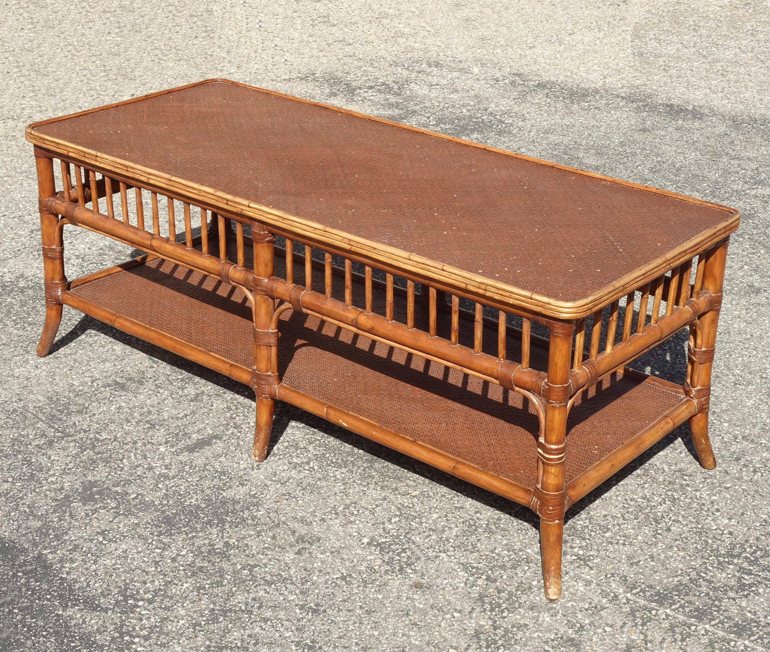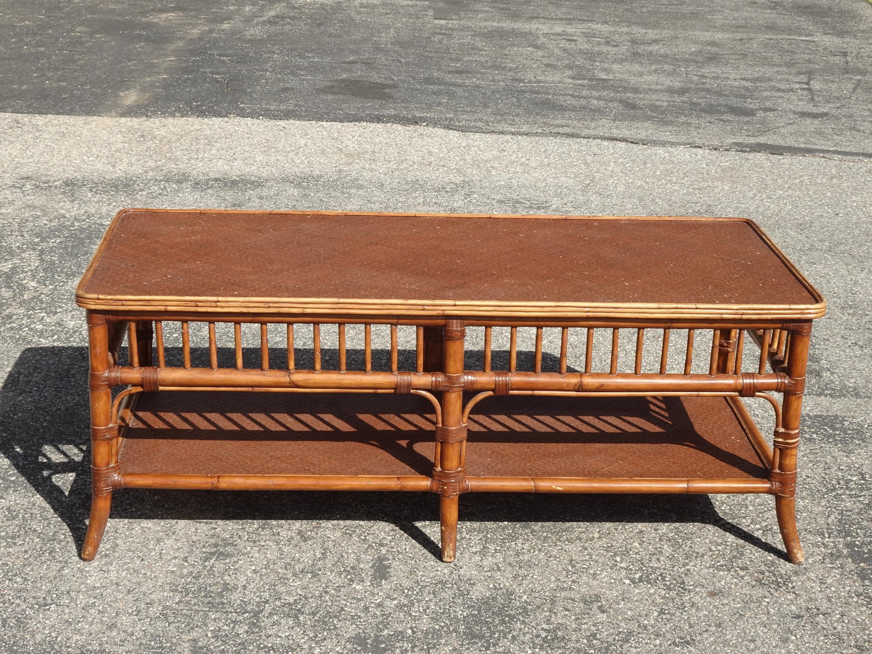 Coffee Table Ethan Allen ~ Coastal Rattan Brown Bamboo Cocktail Table