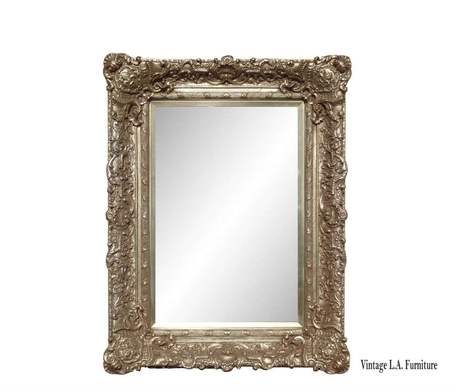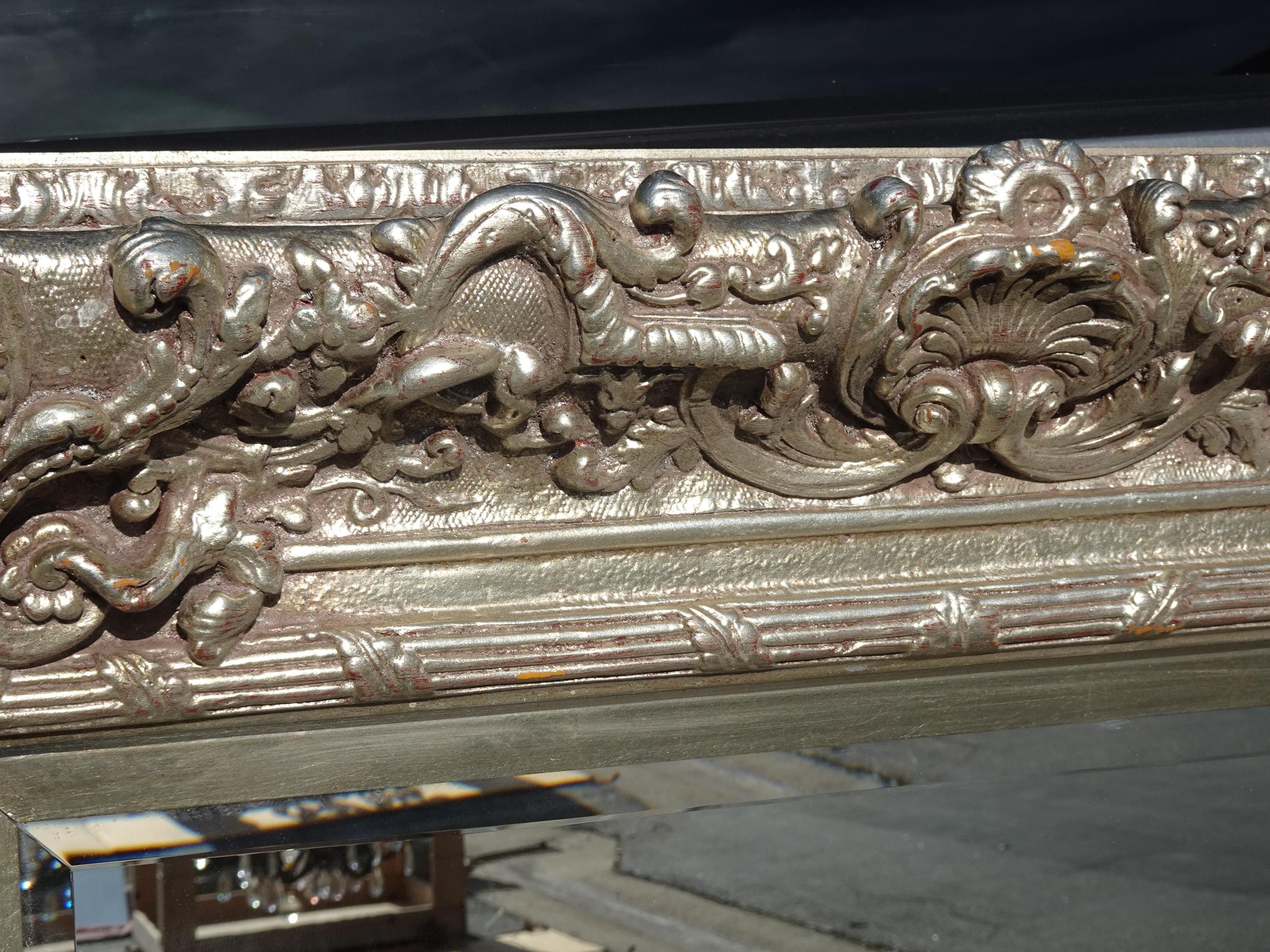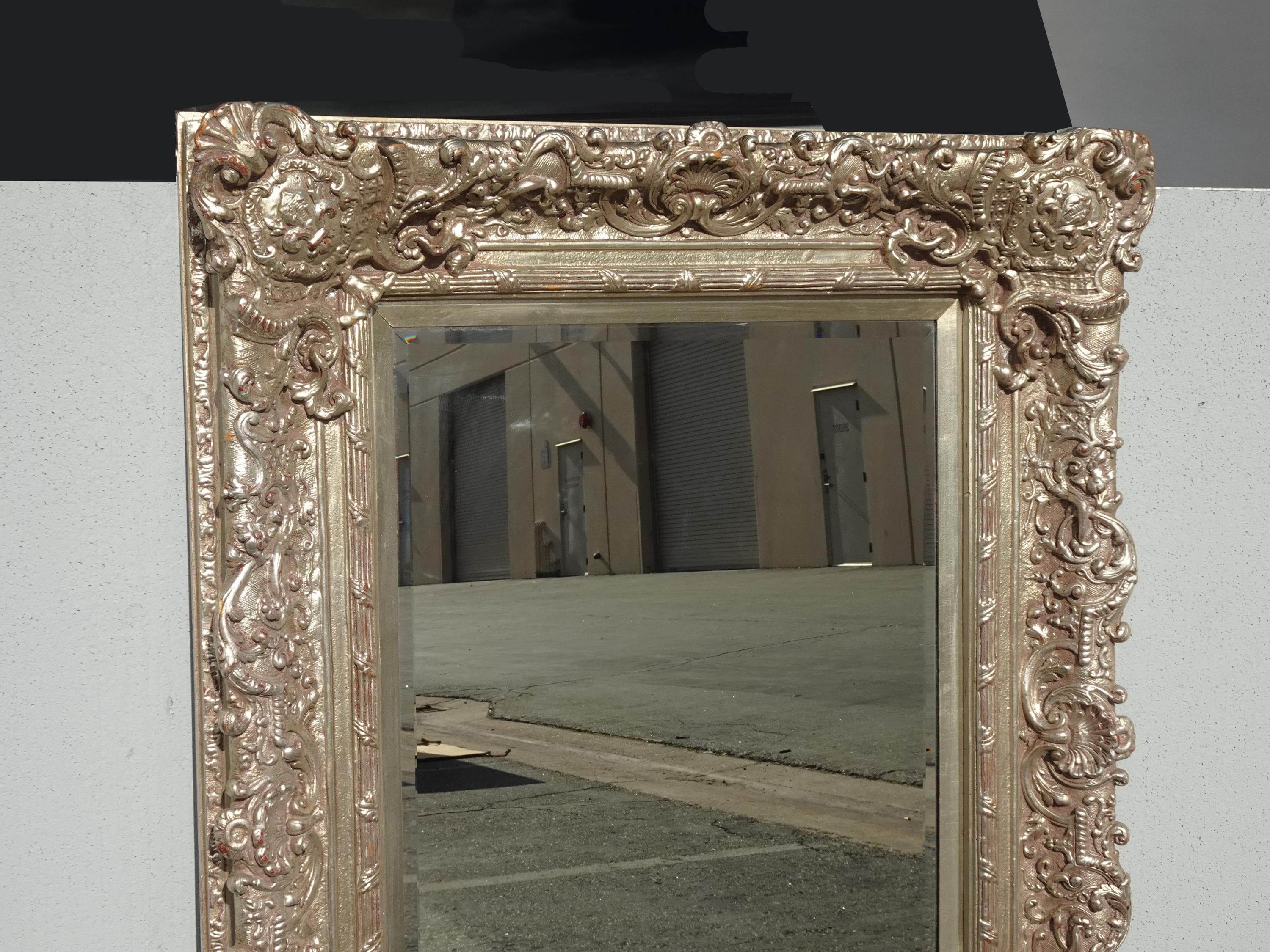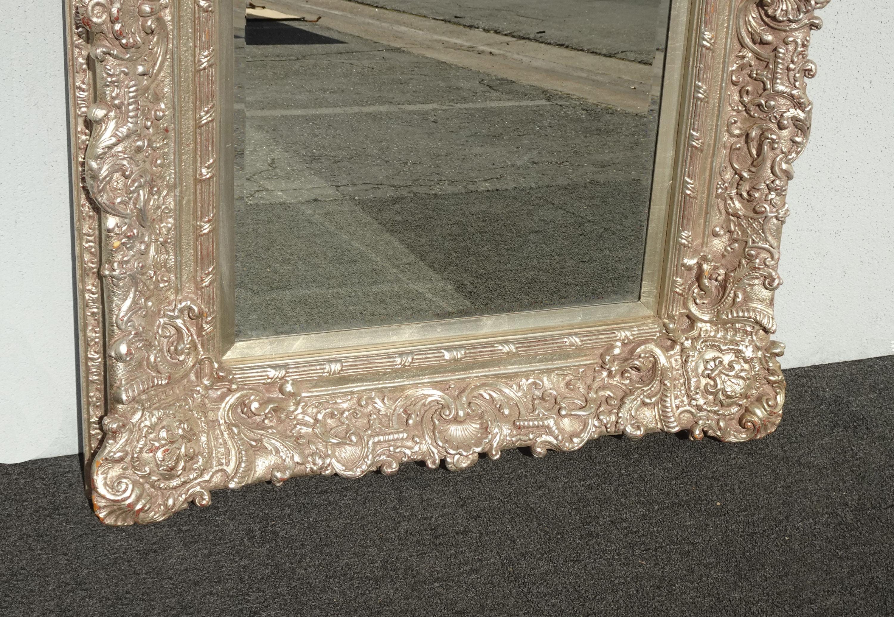 Large 51" Tall Vintage French Baroque Silver Ornate Wall Mantle Mirror