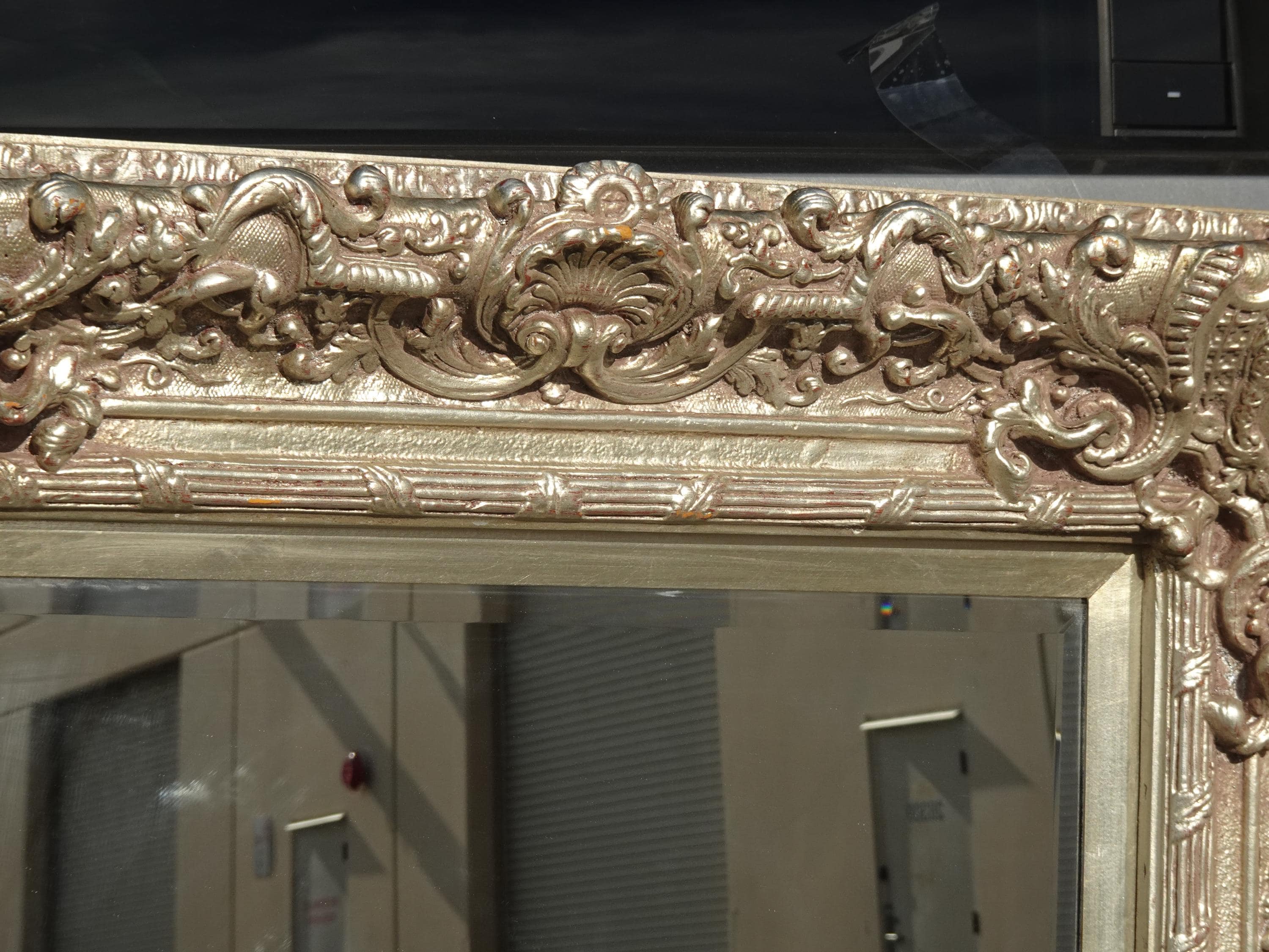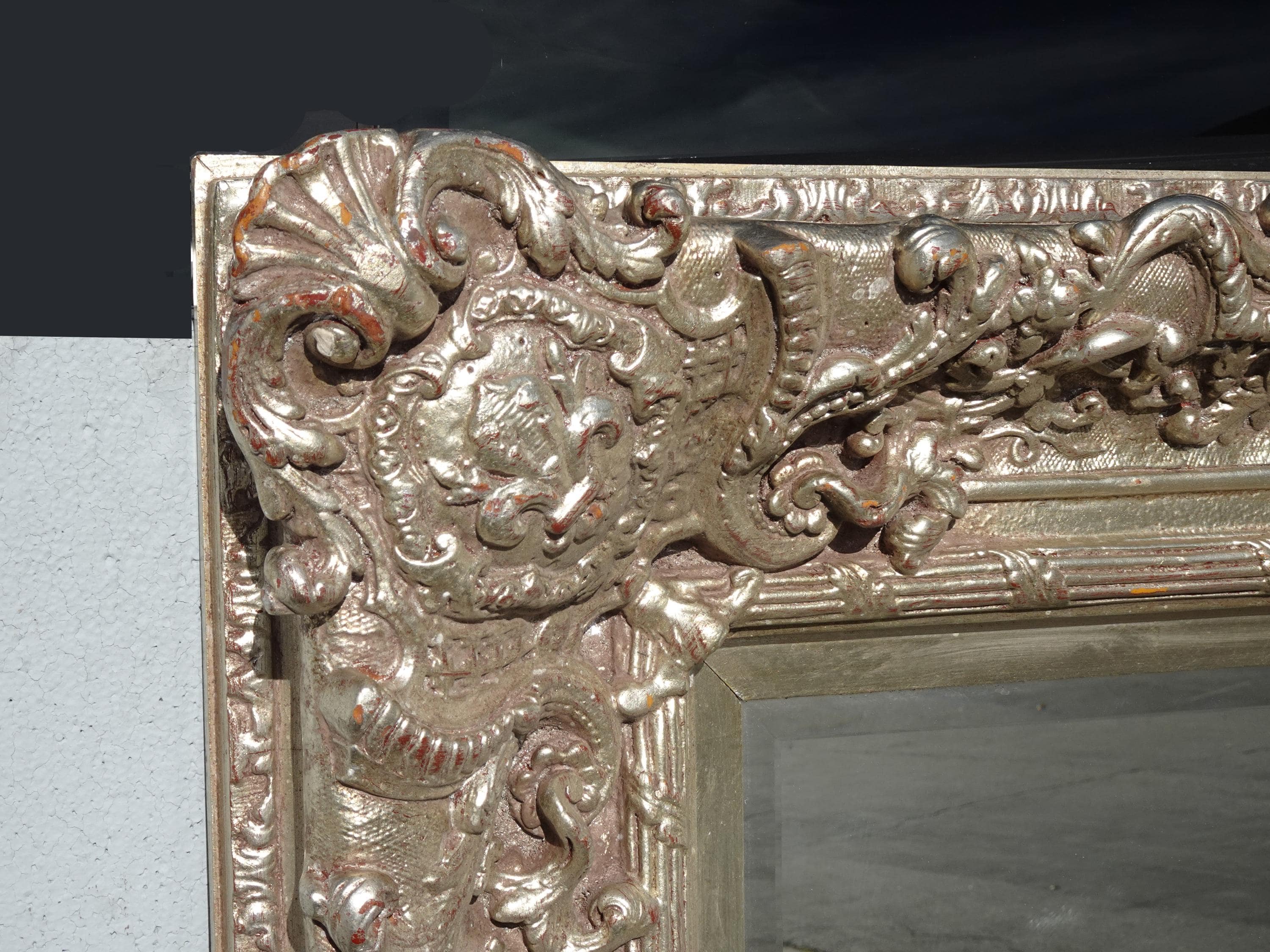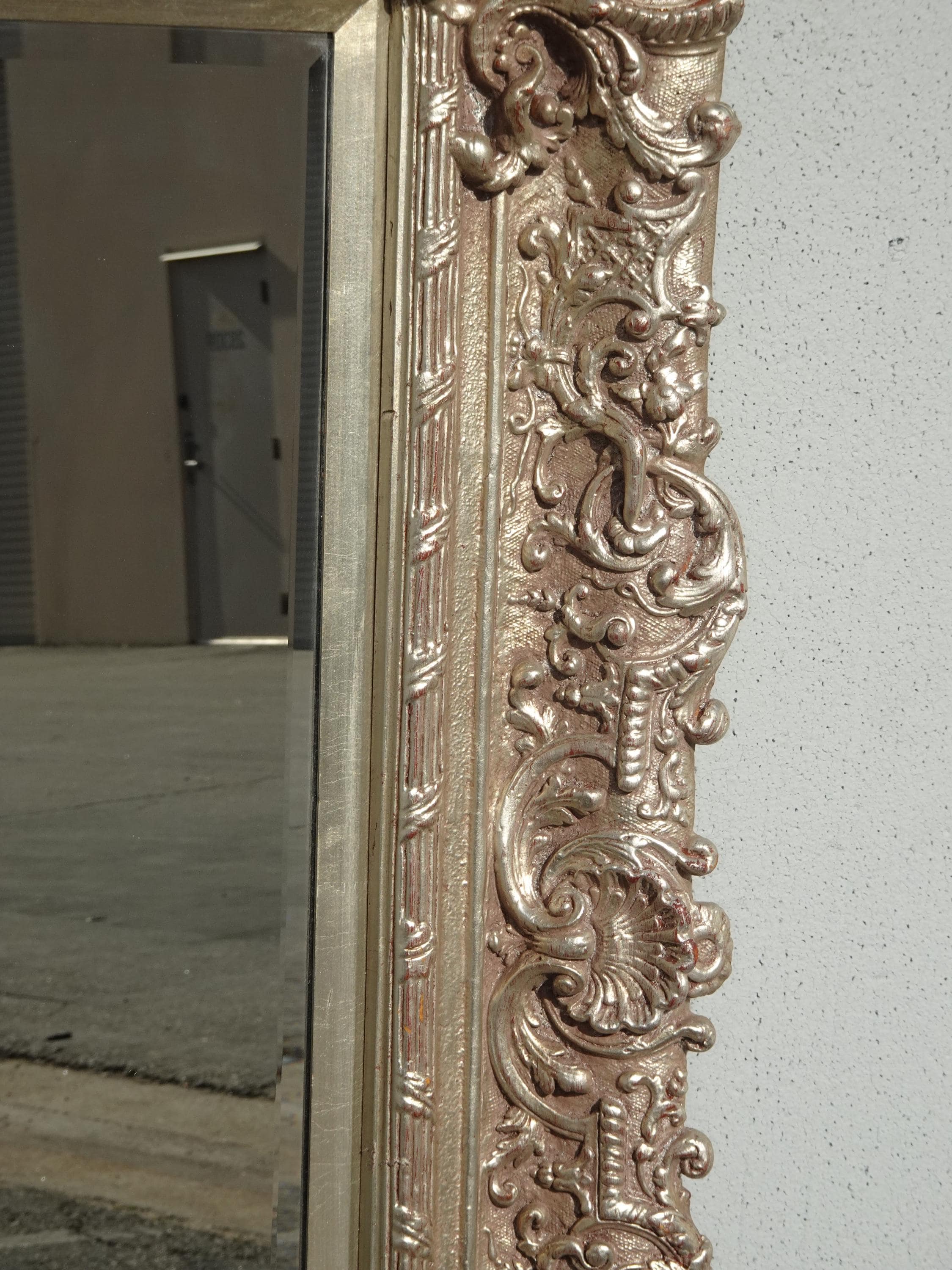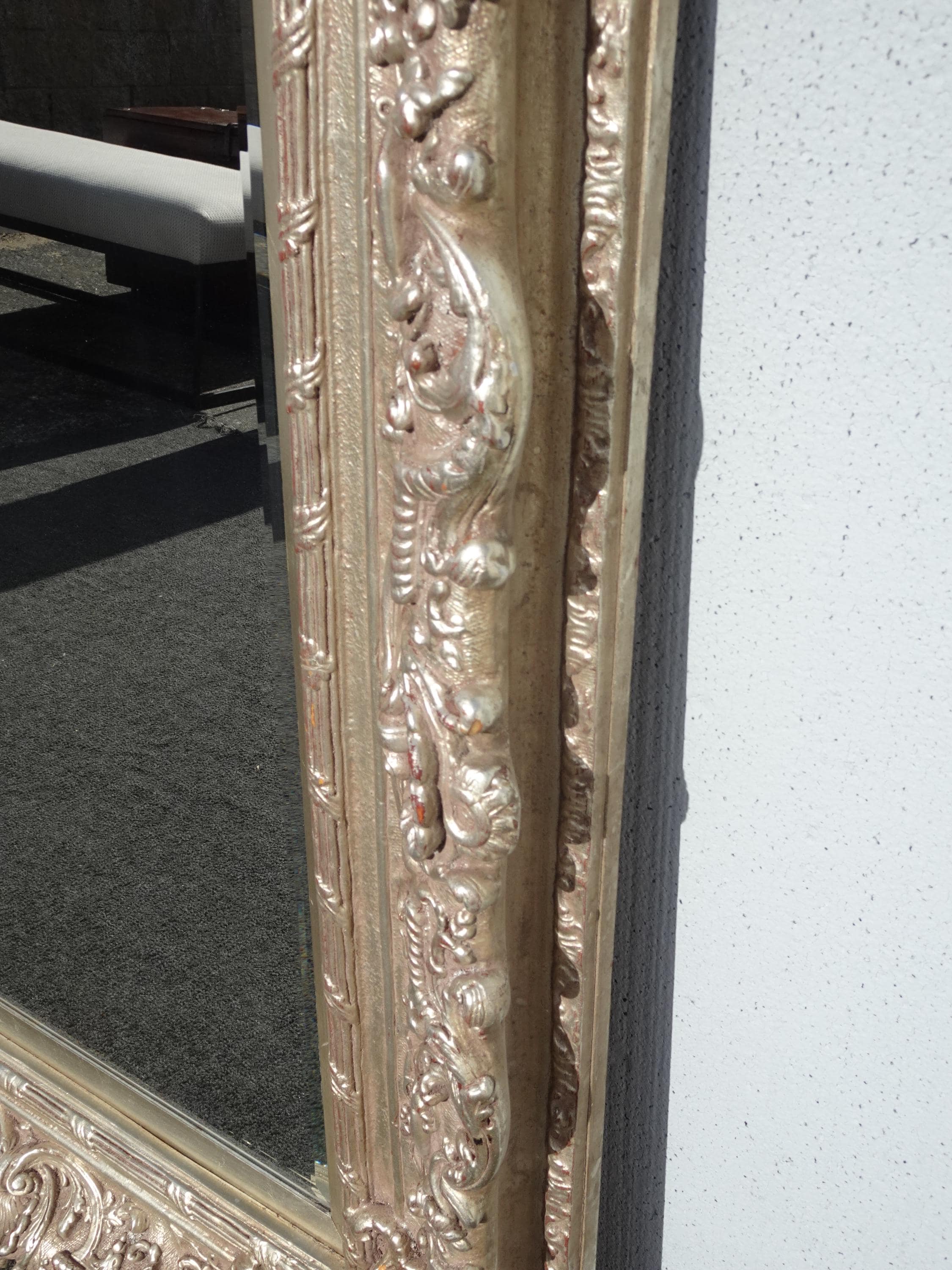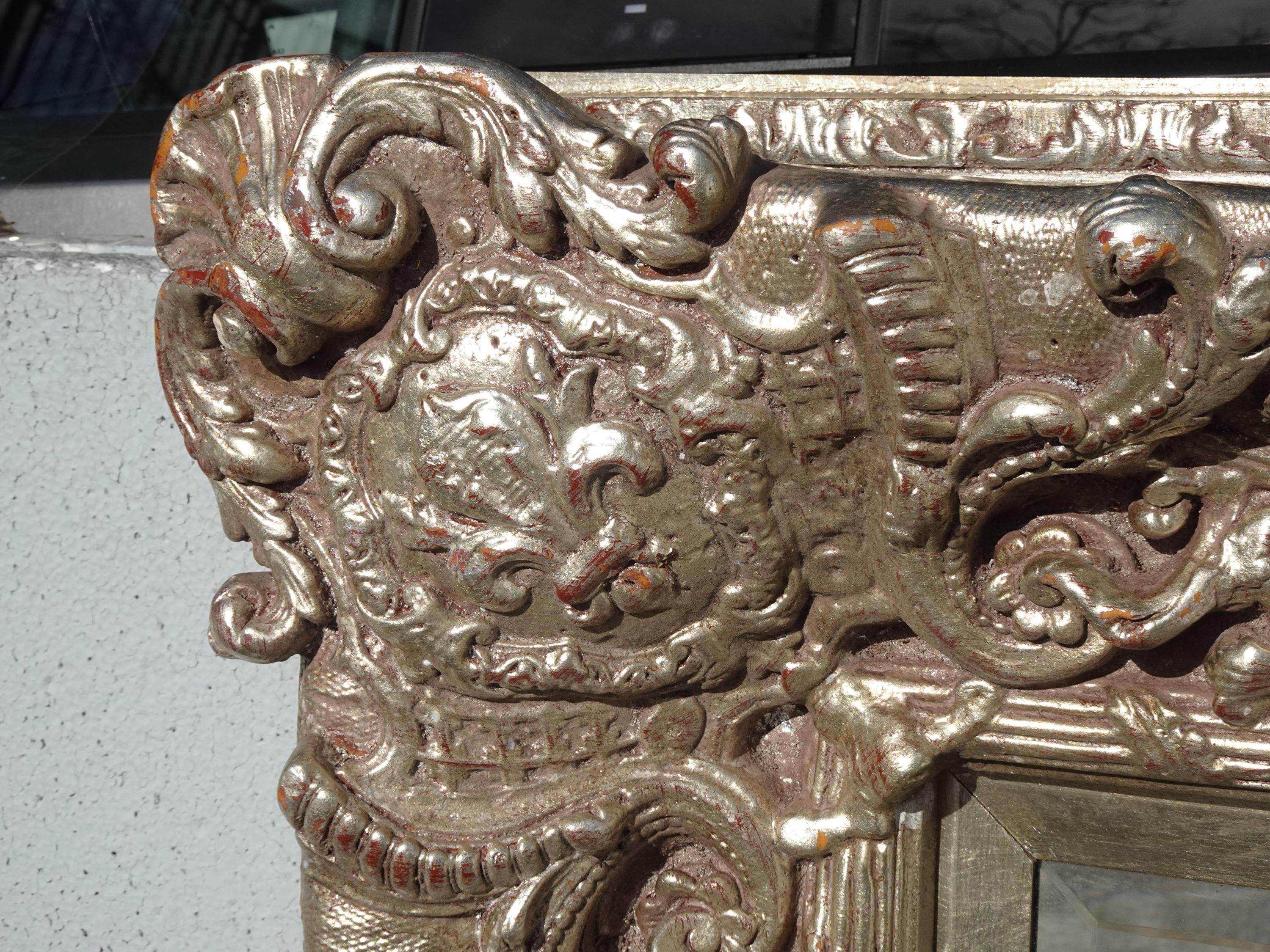 Large 51" Tall Vintage French Baroque Silver Ornate Wall Mantle Mirror
