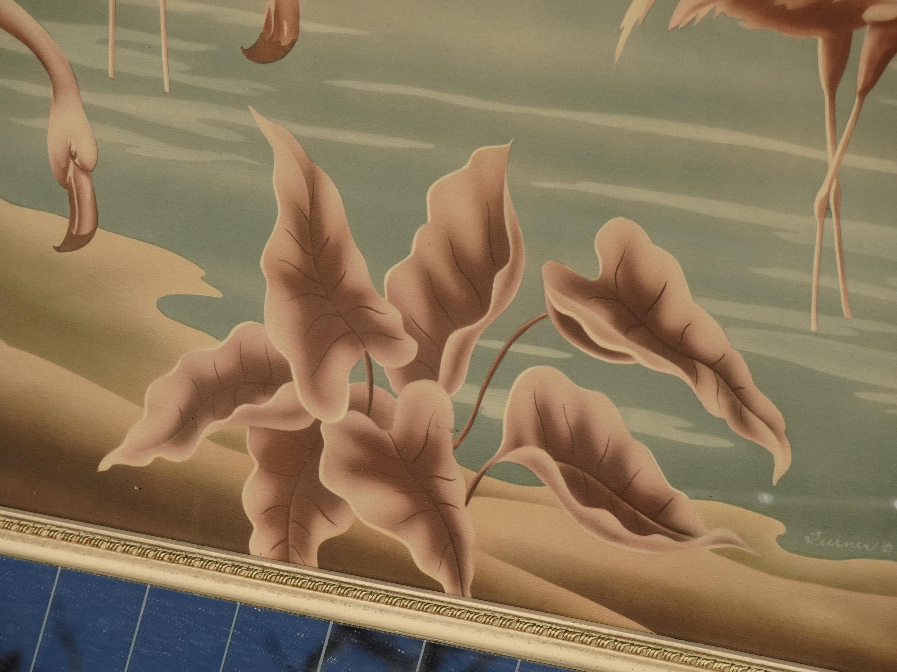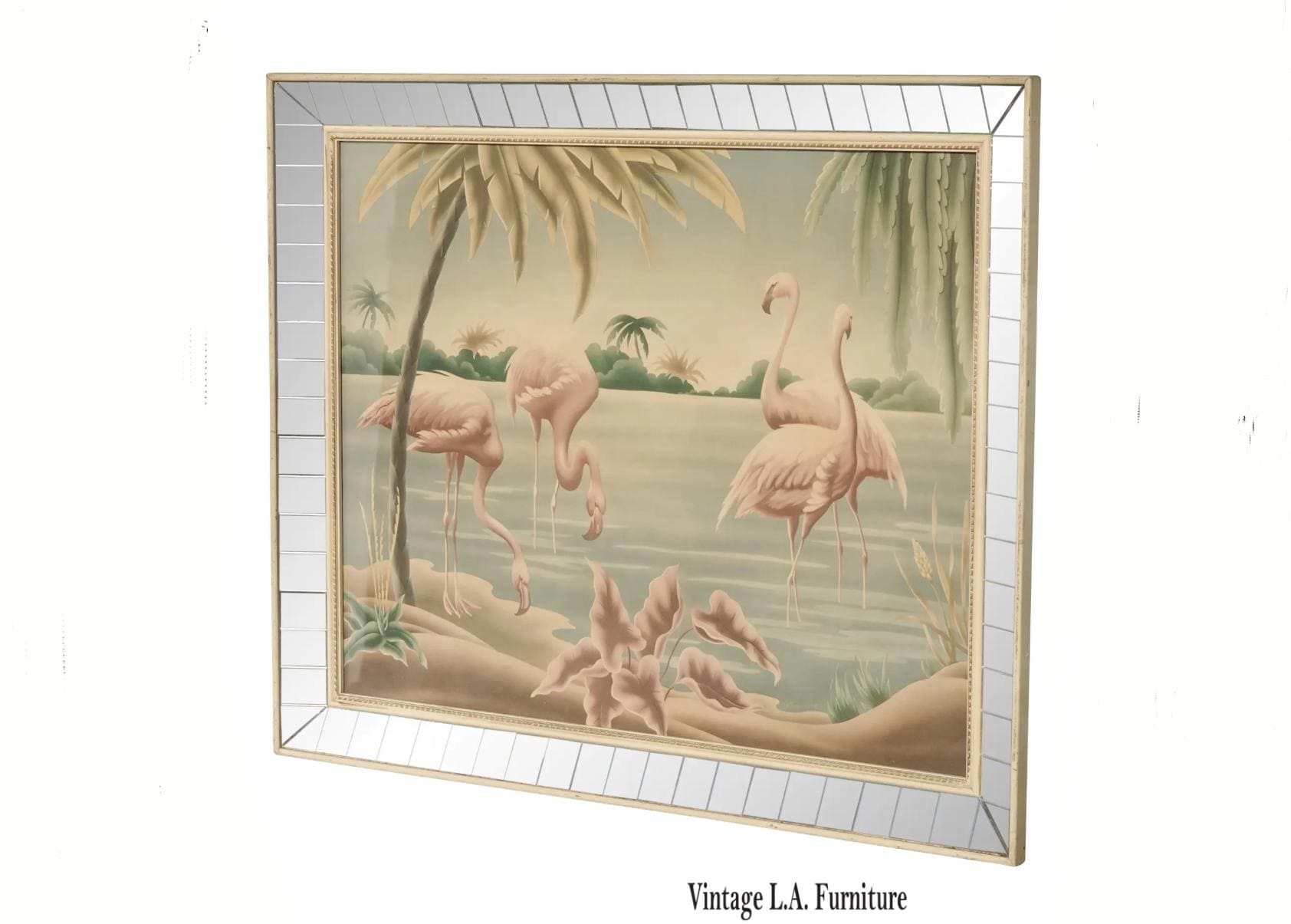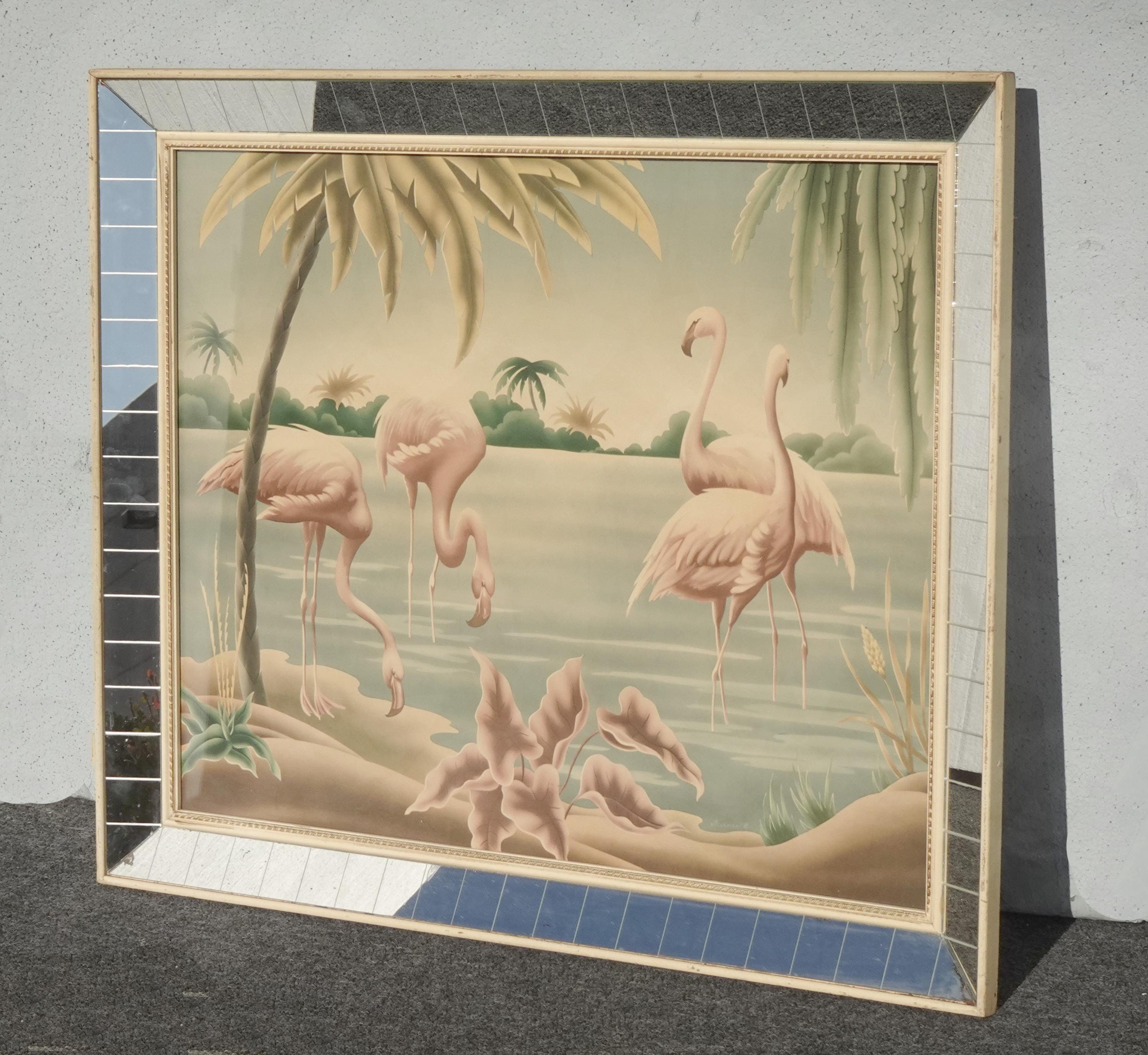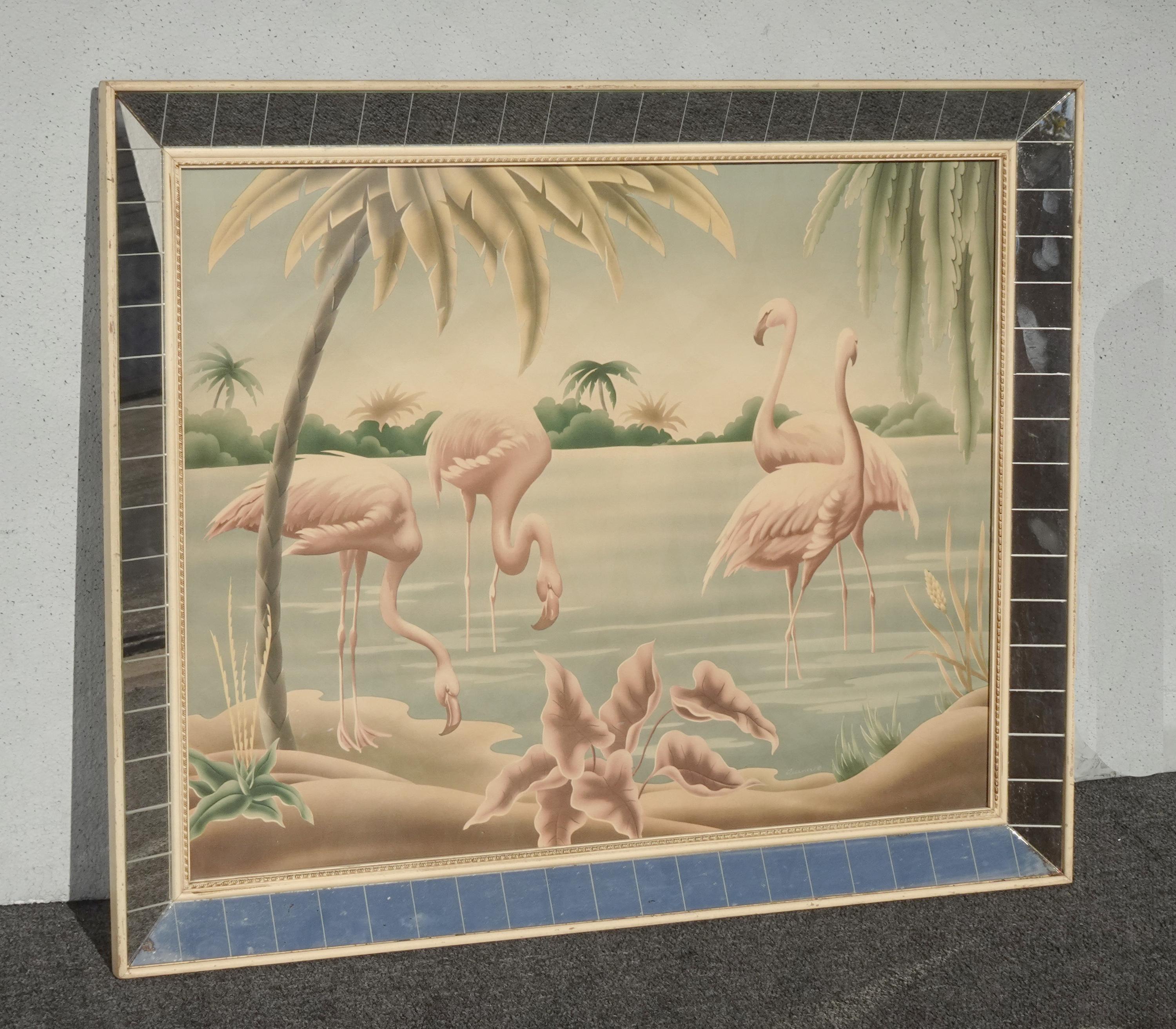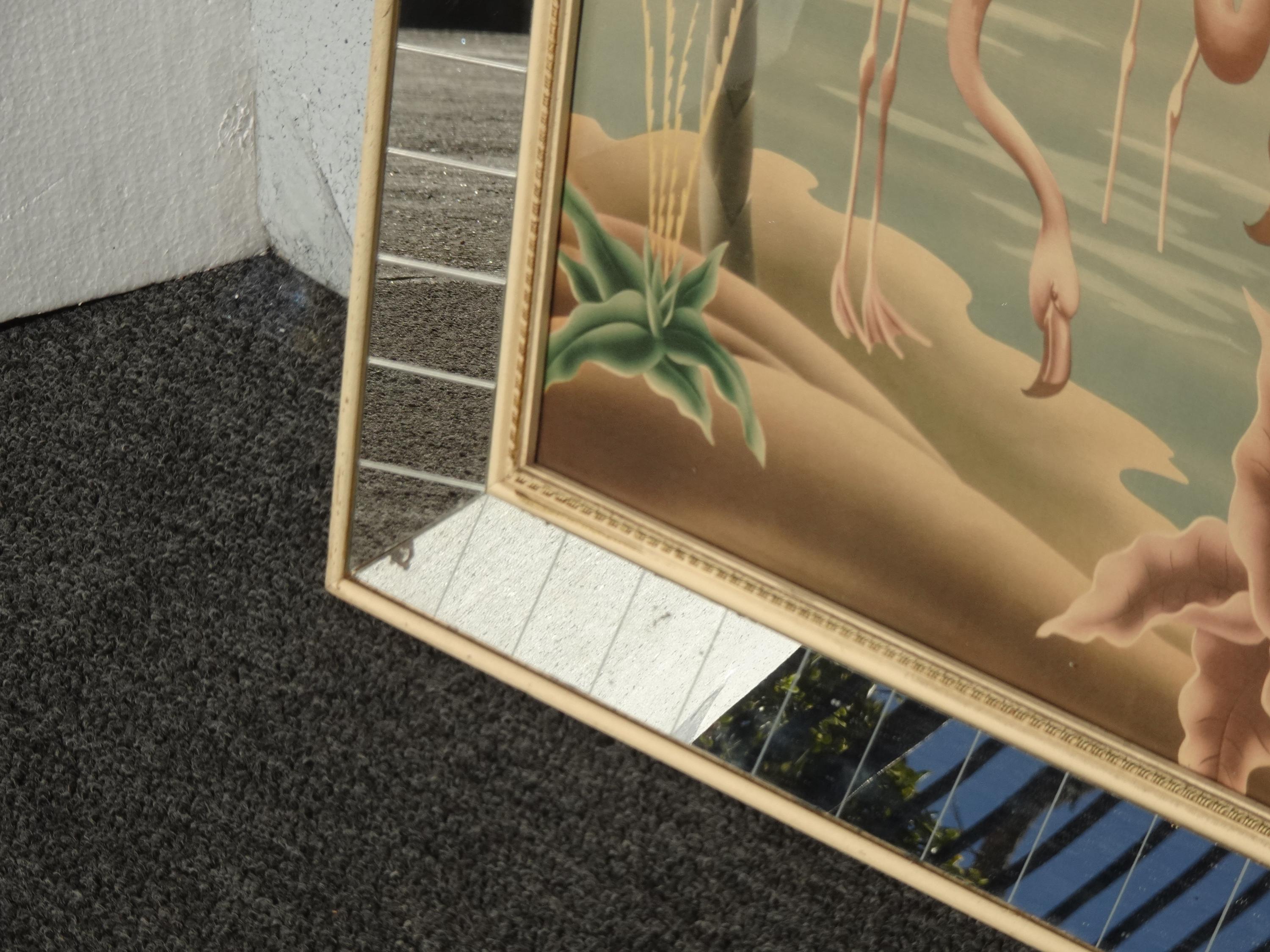 Vintage Mid Century Flamingo Lithograph Picture Print by Turner Mirror Frame 2