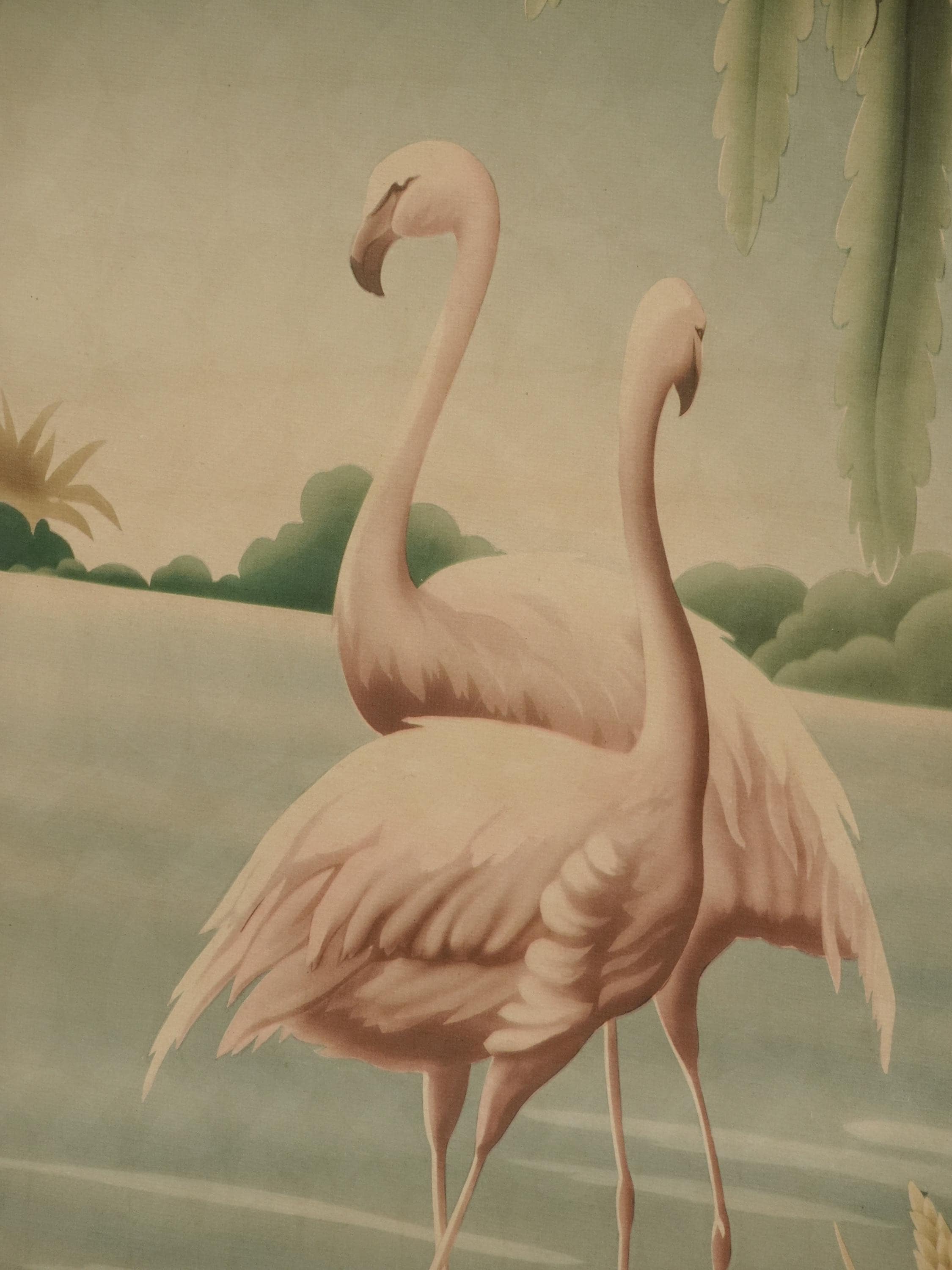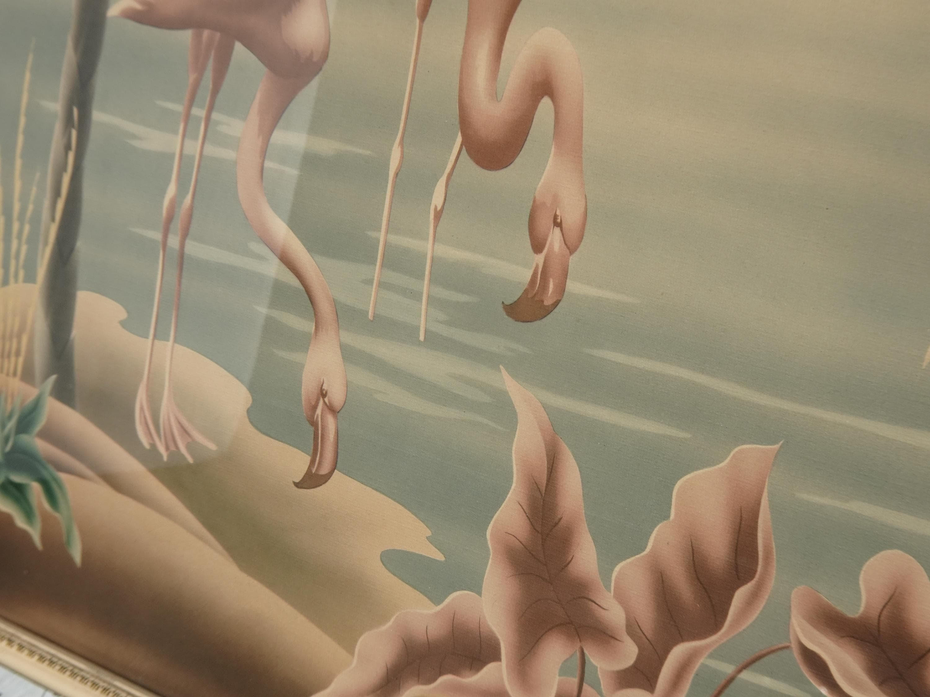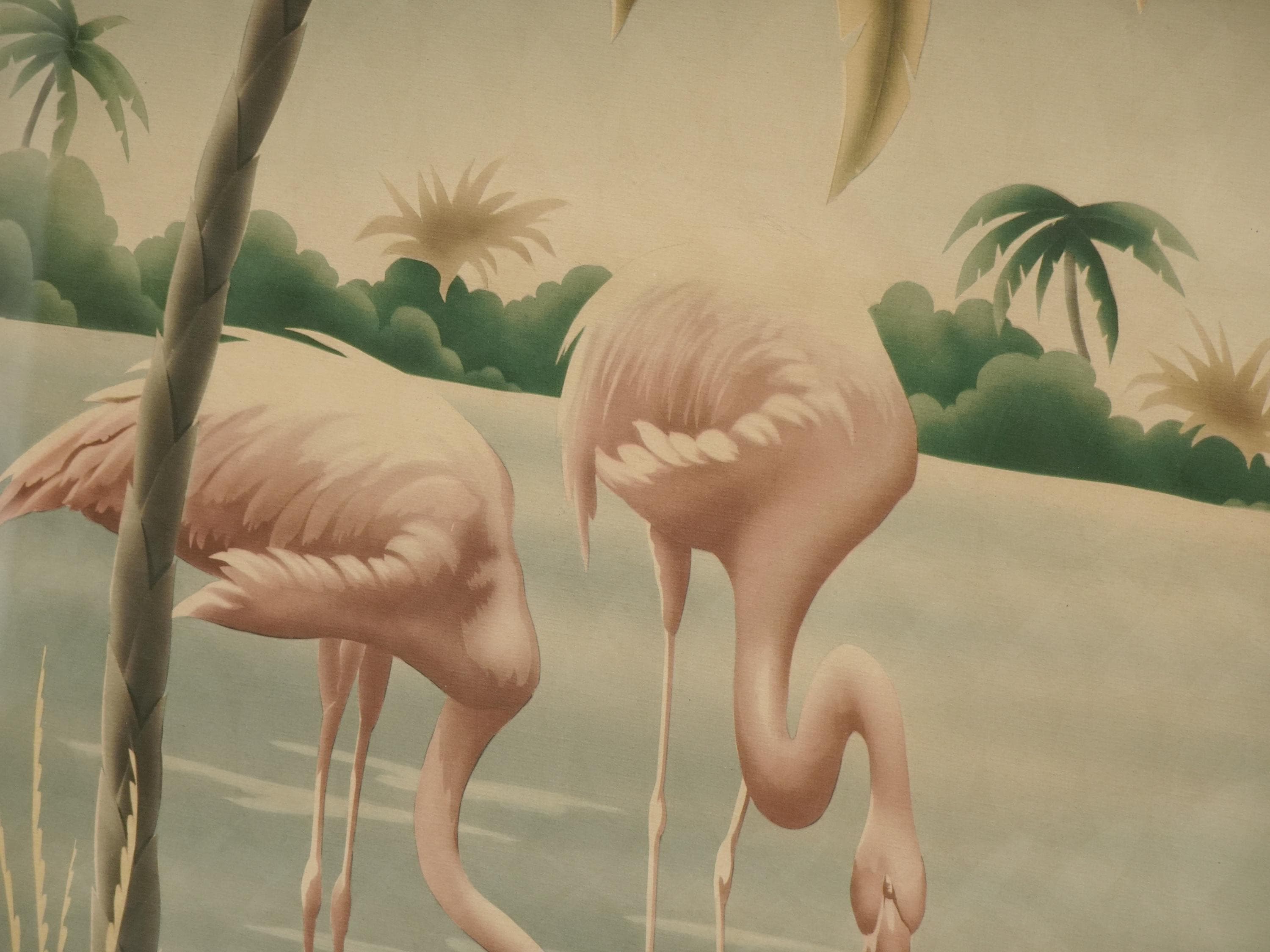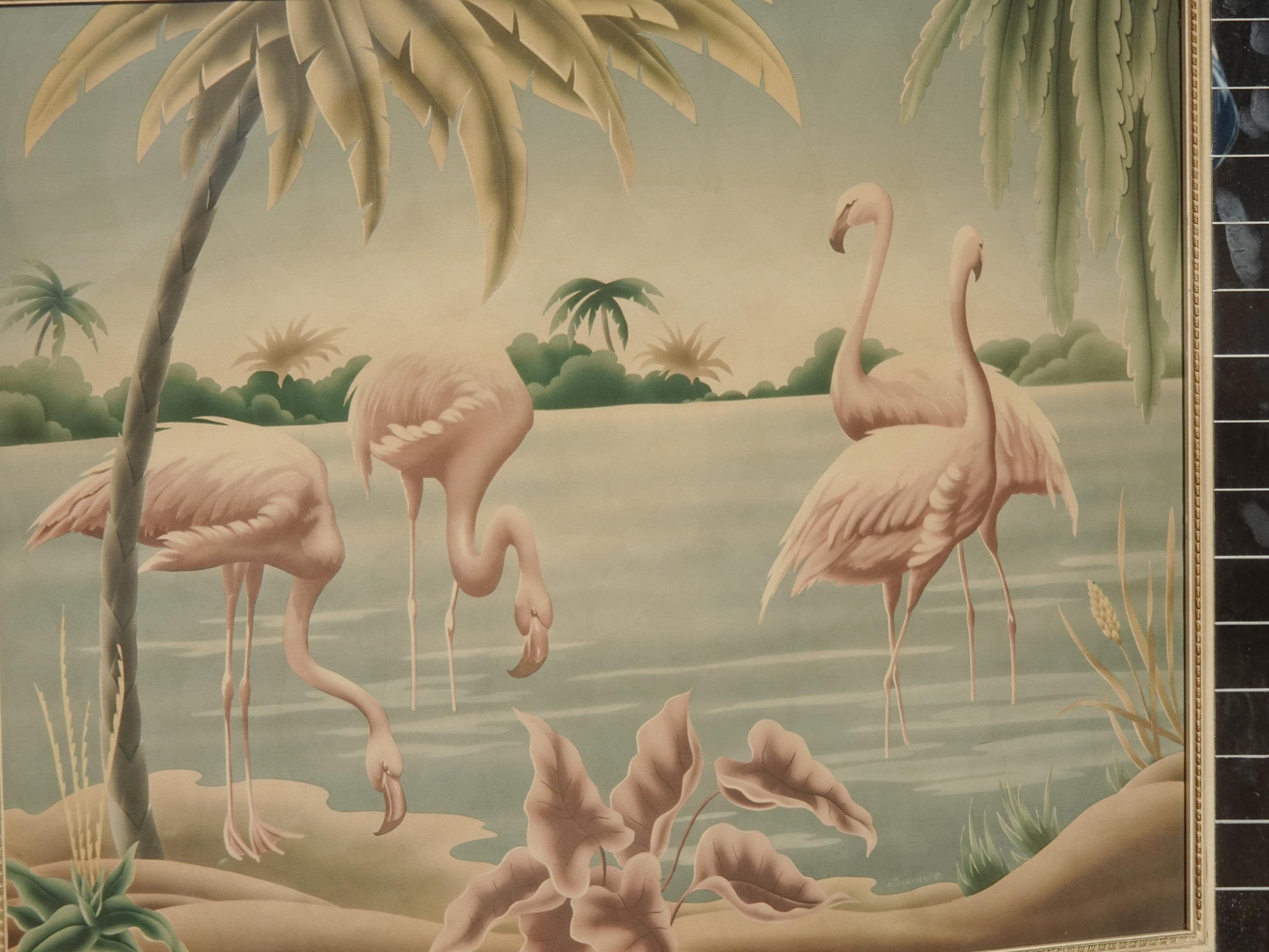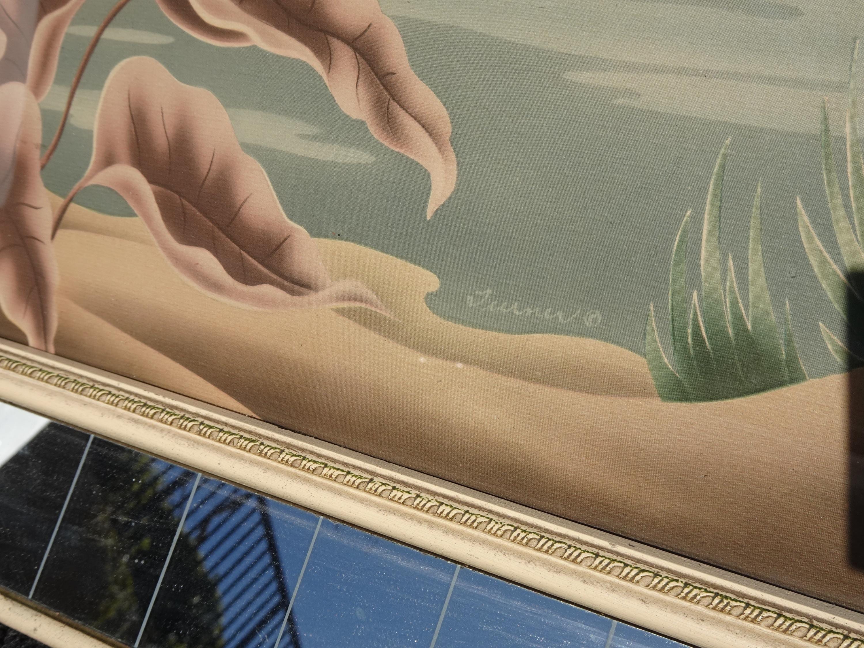 Vintage Mid Century Flamingo Lithograph Picture Print by Turner Mirror Frame 2