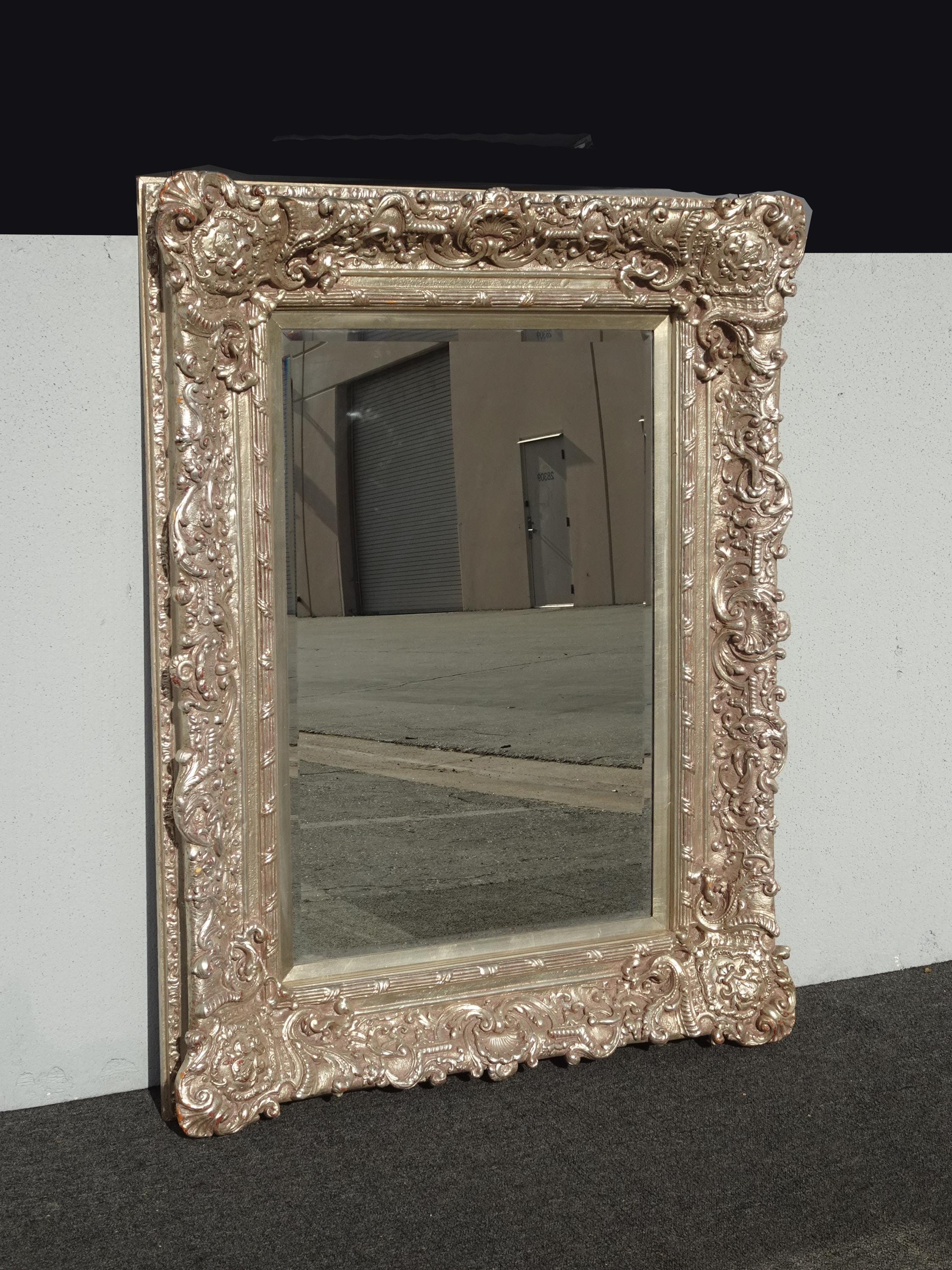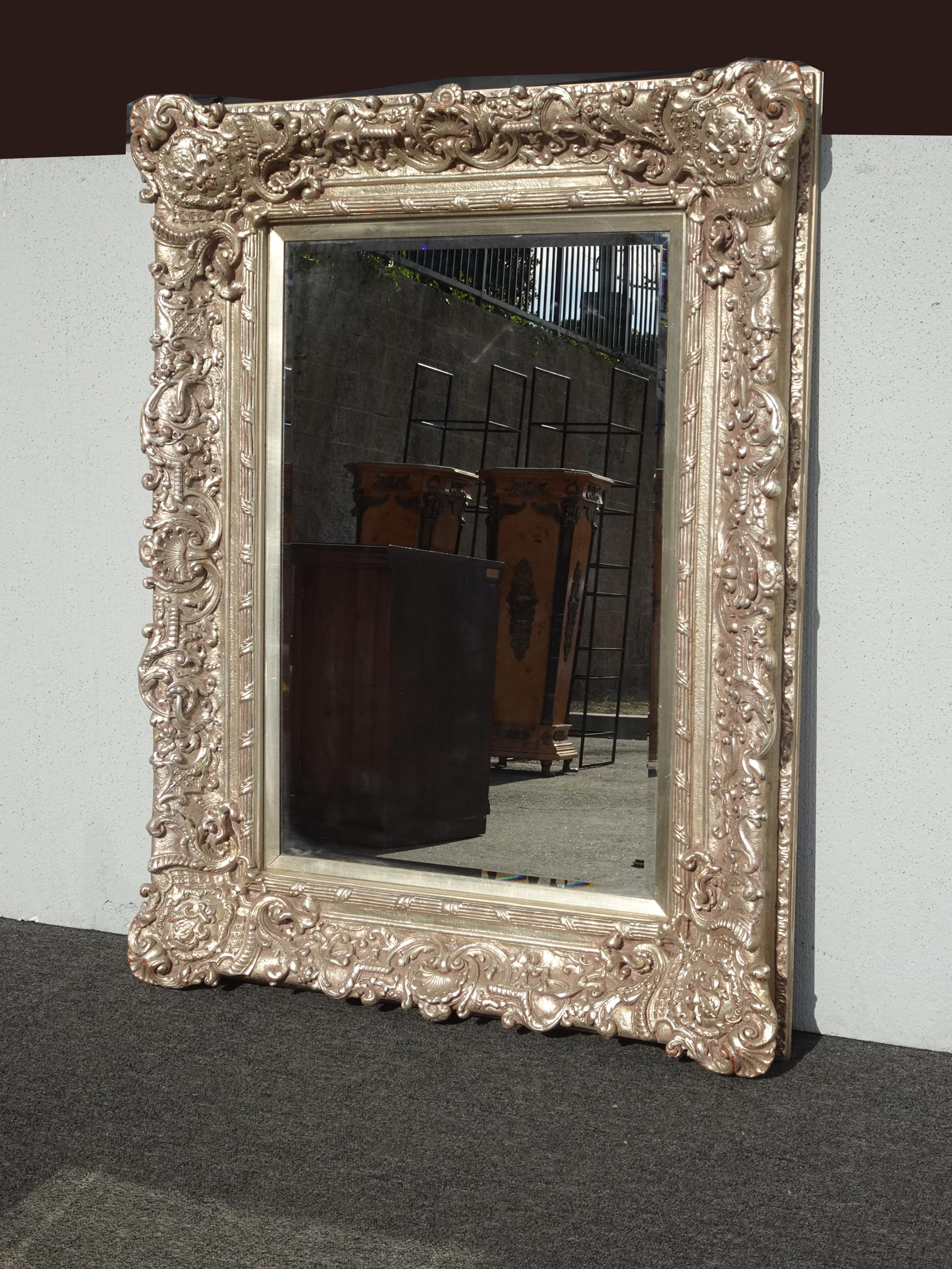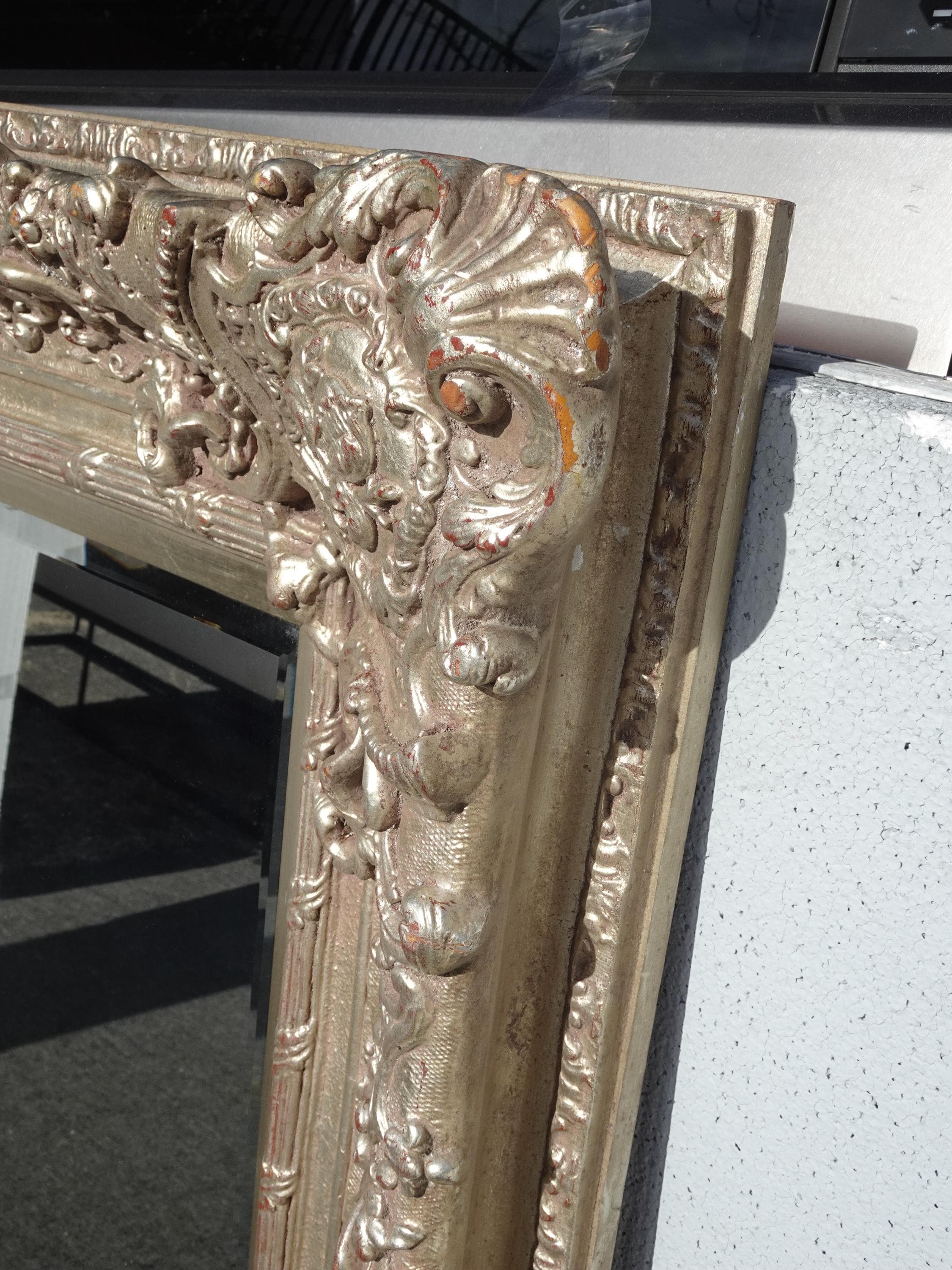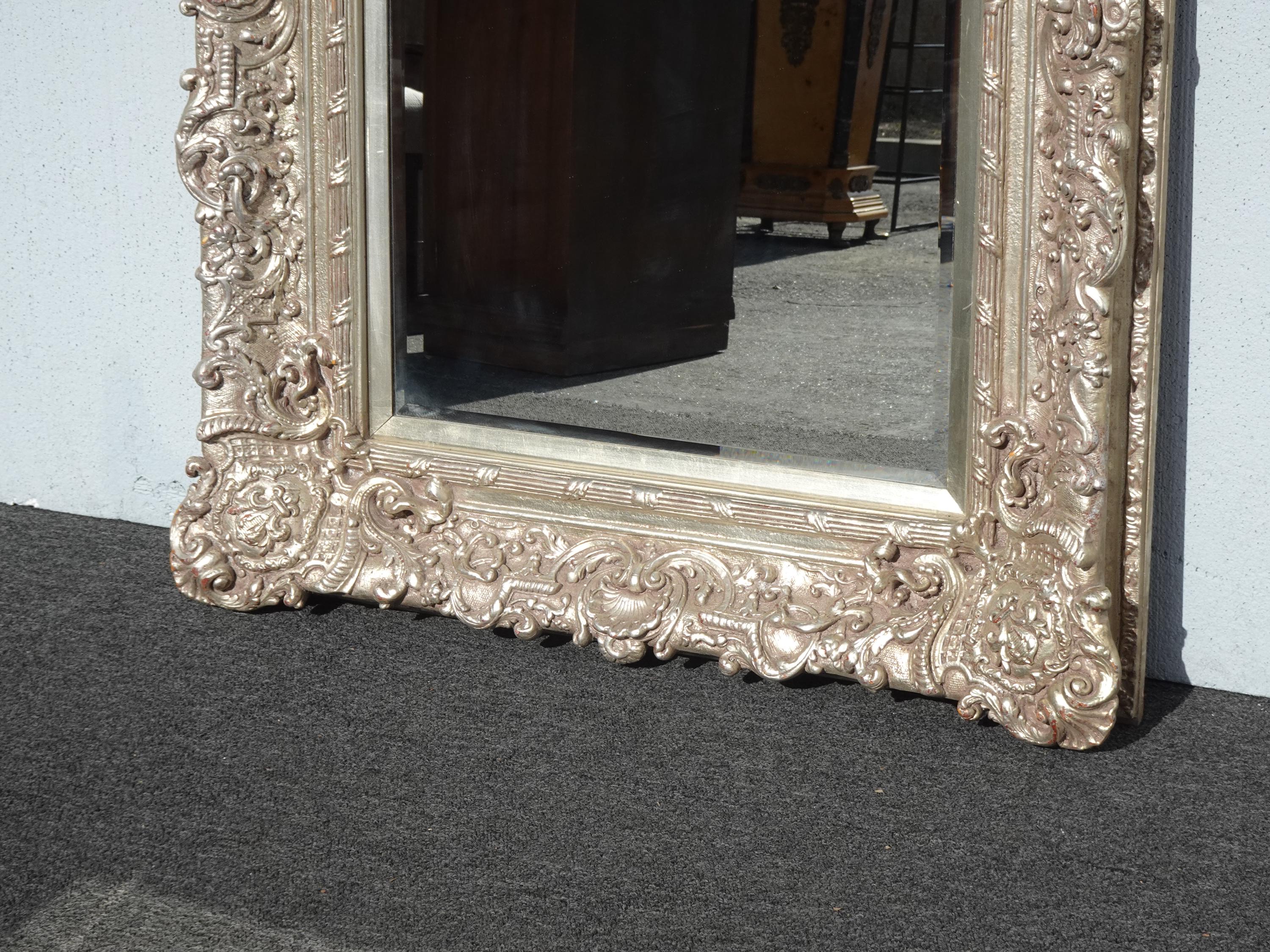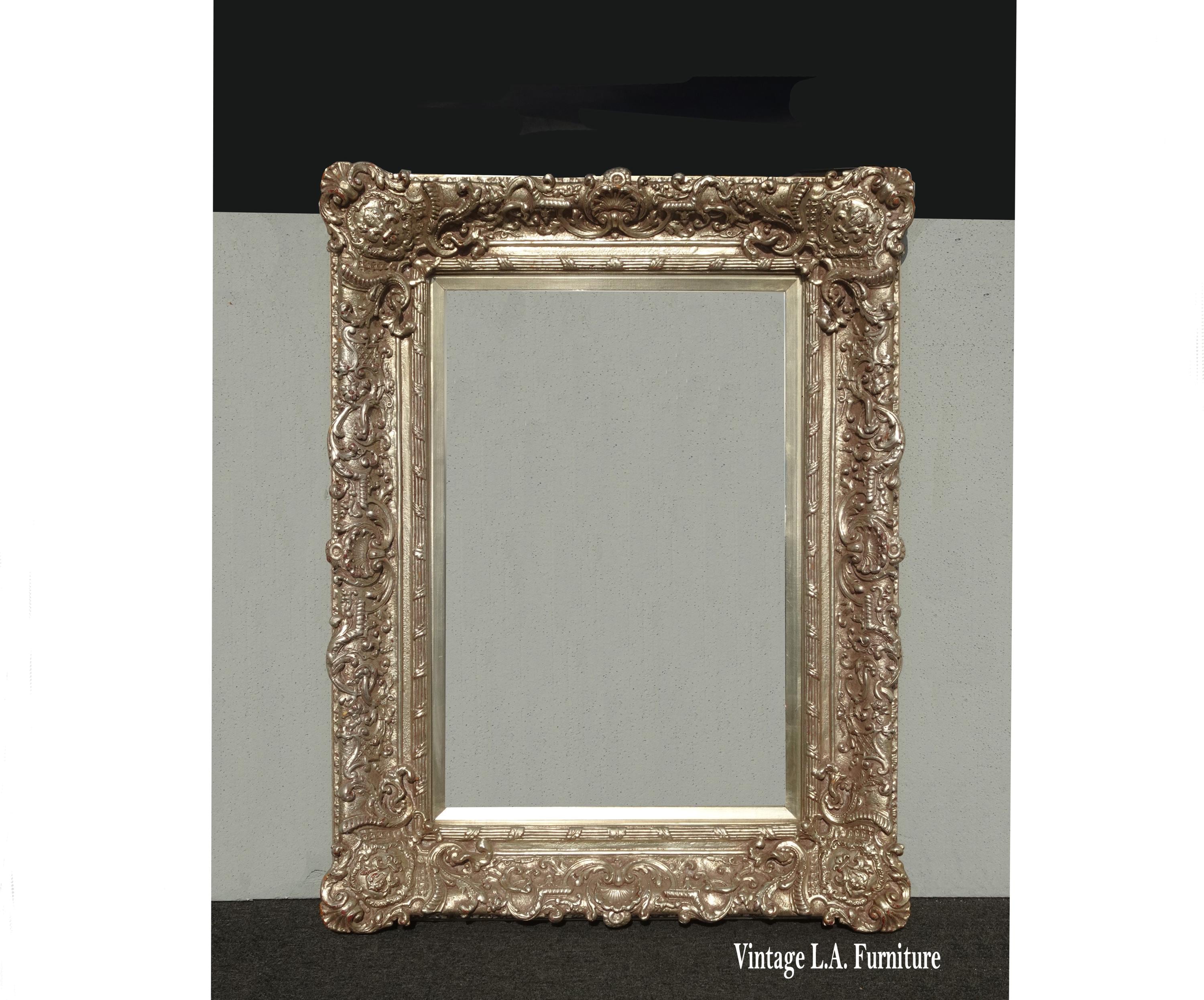 Large 51" Tall Vintage French Baroque Silver Ornate Wall Mantle Picture Frame