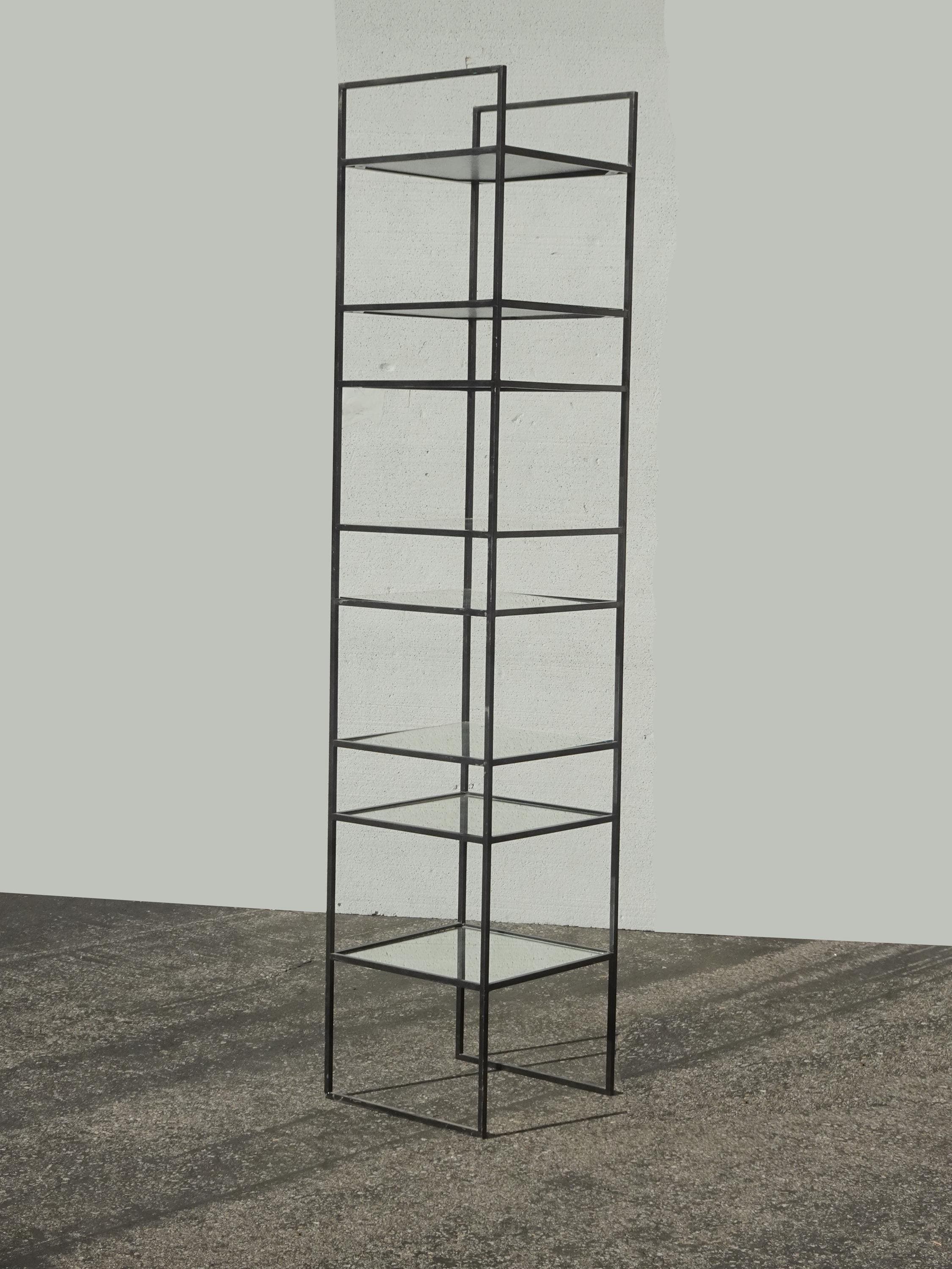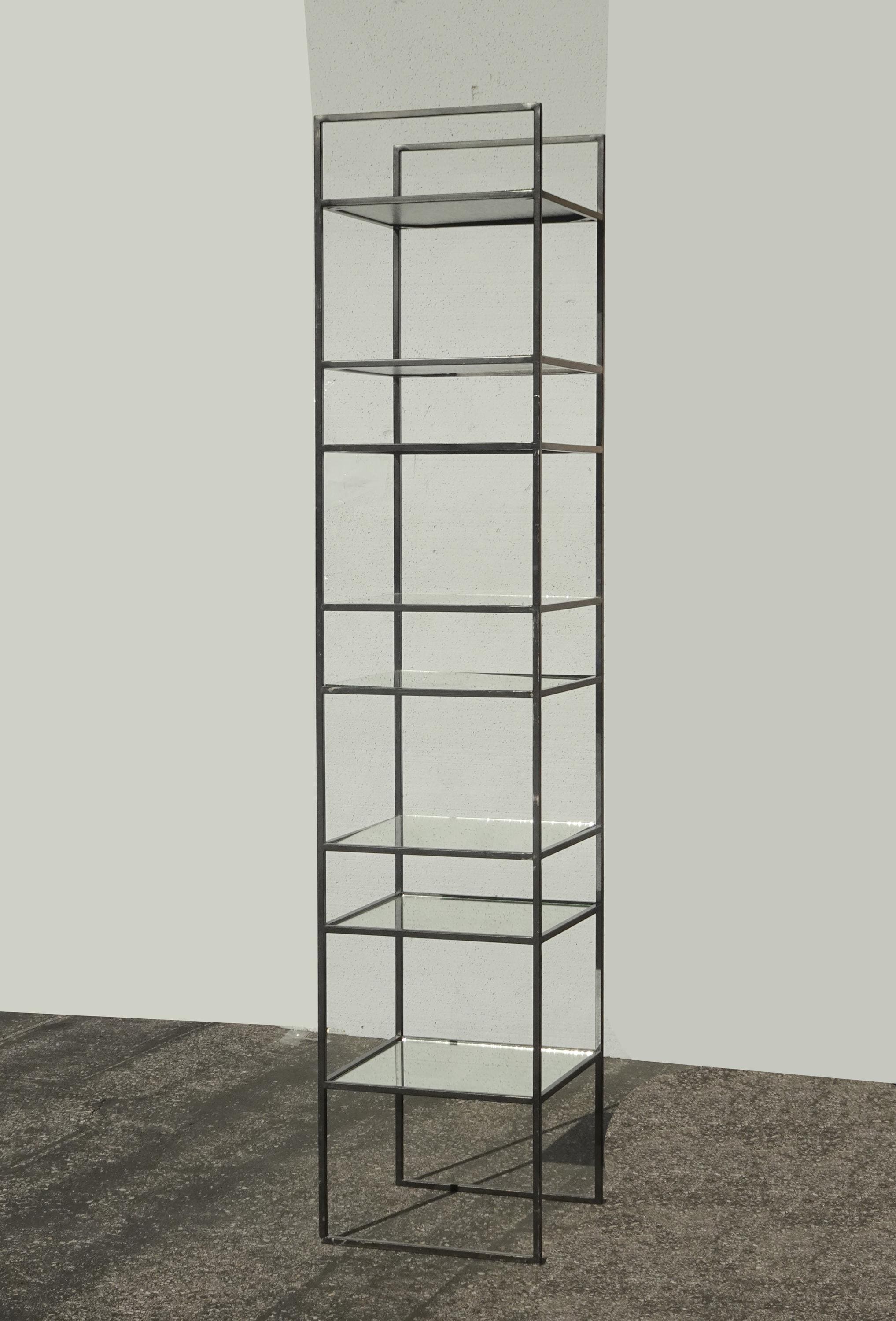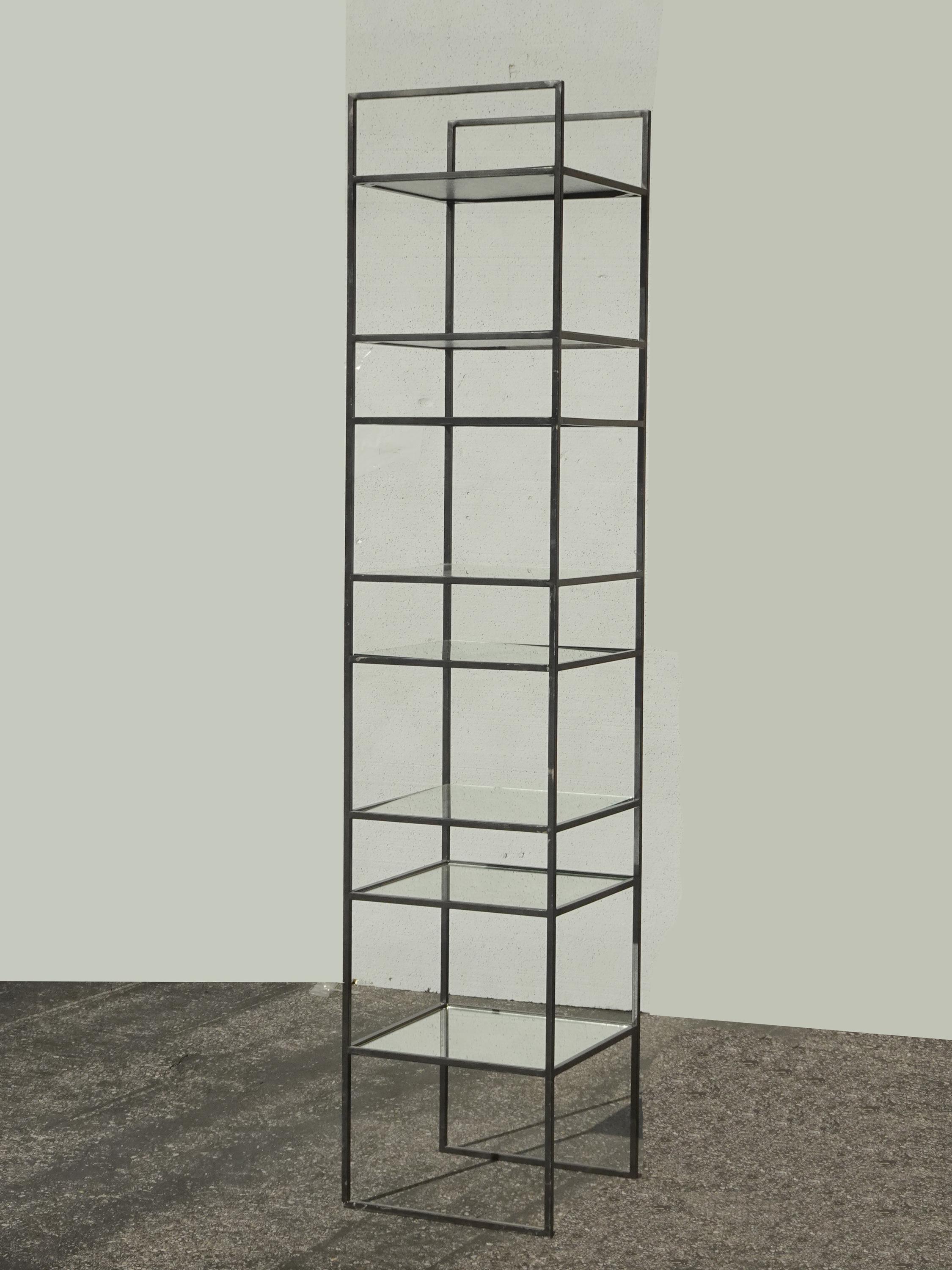 Black Etagere w Eight Mirrored Metal Shelves ~ Narrow Book Shelf Book Case #1