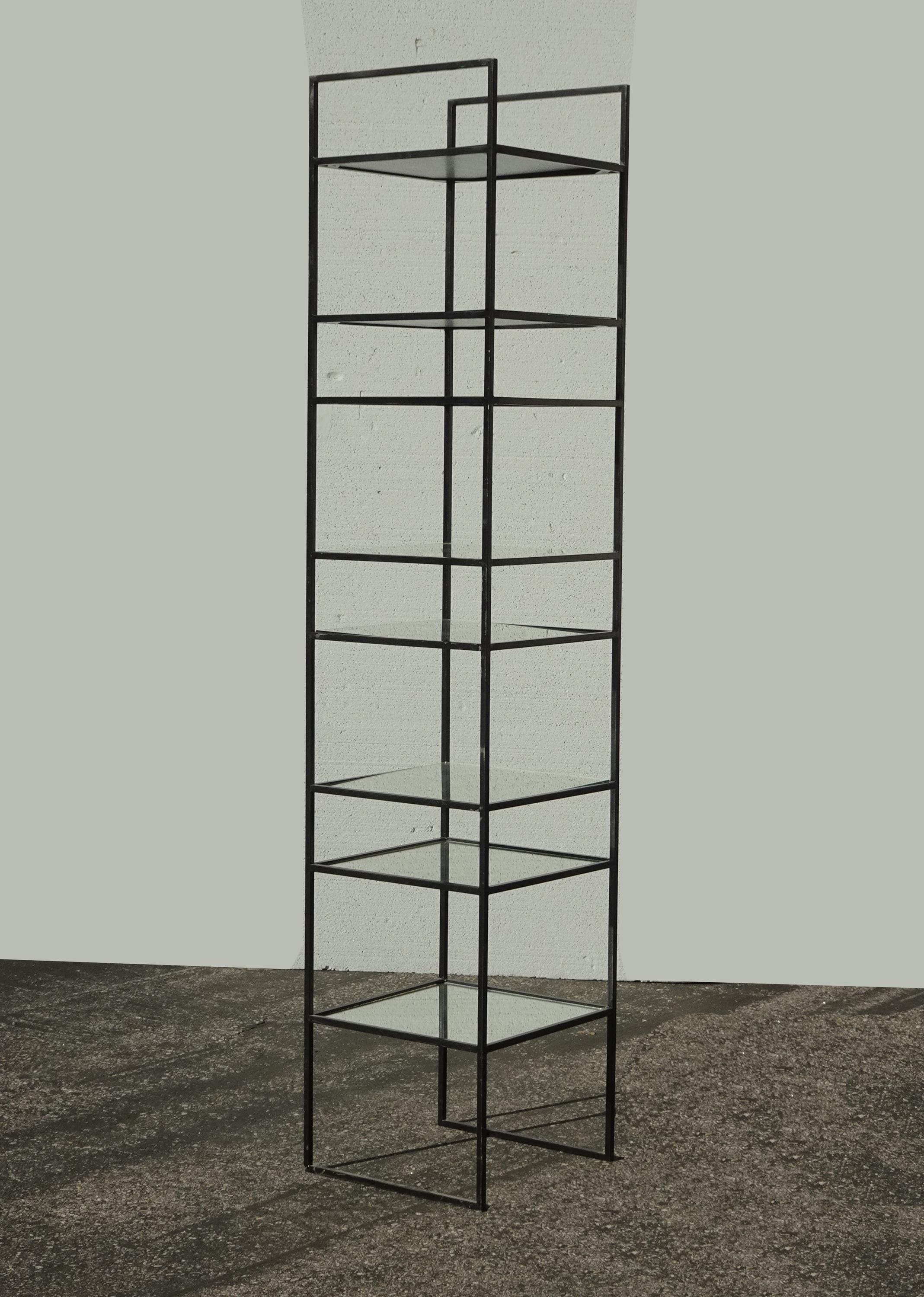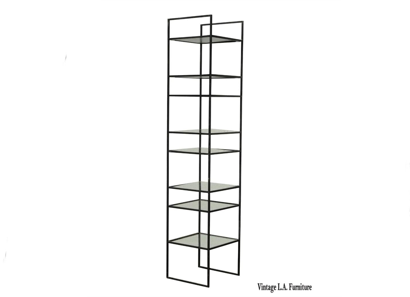 Black Etagere w Eight Mirrored Metal Shelves ~ Narrow Book Shelf Book Case #2