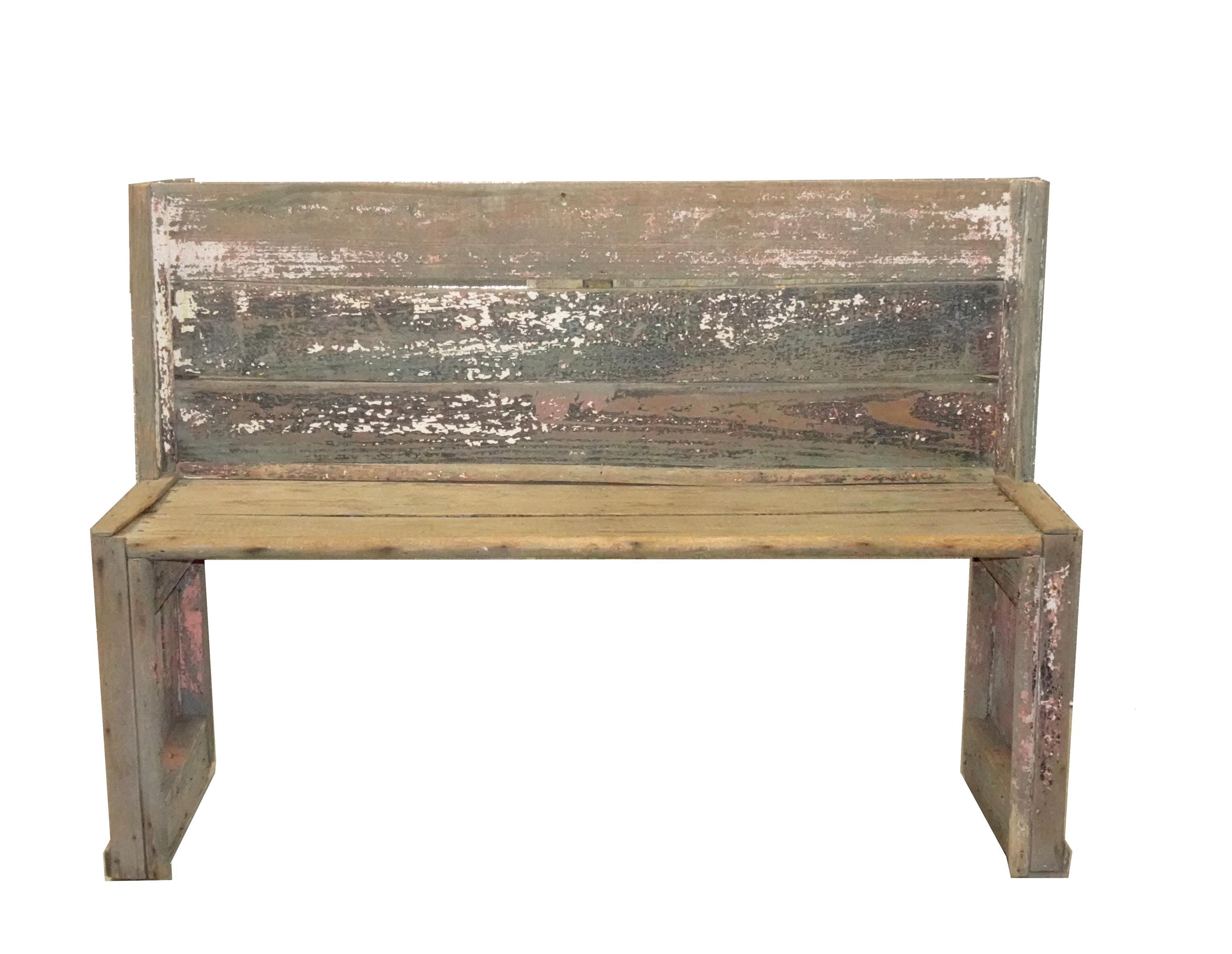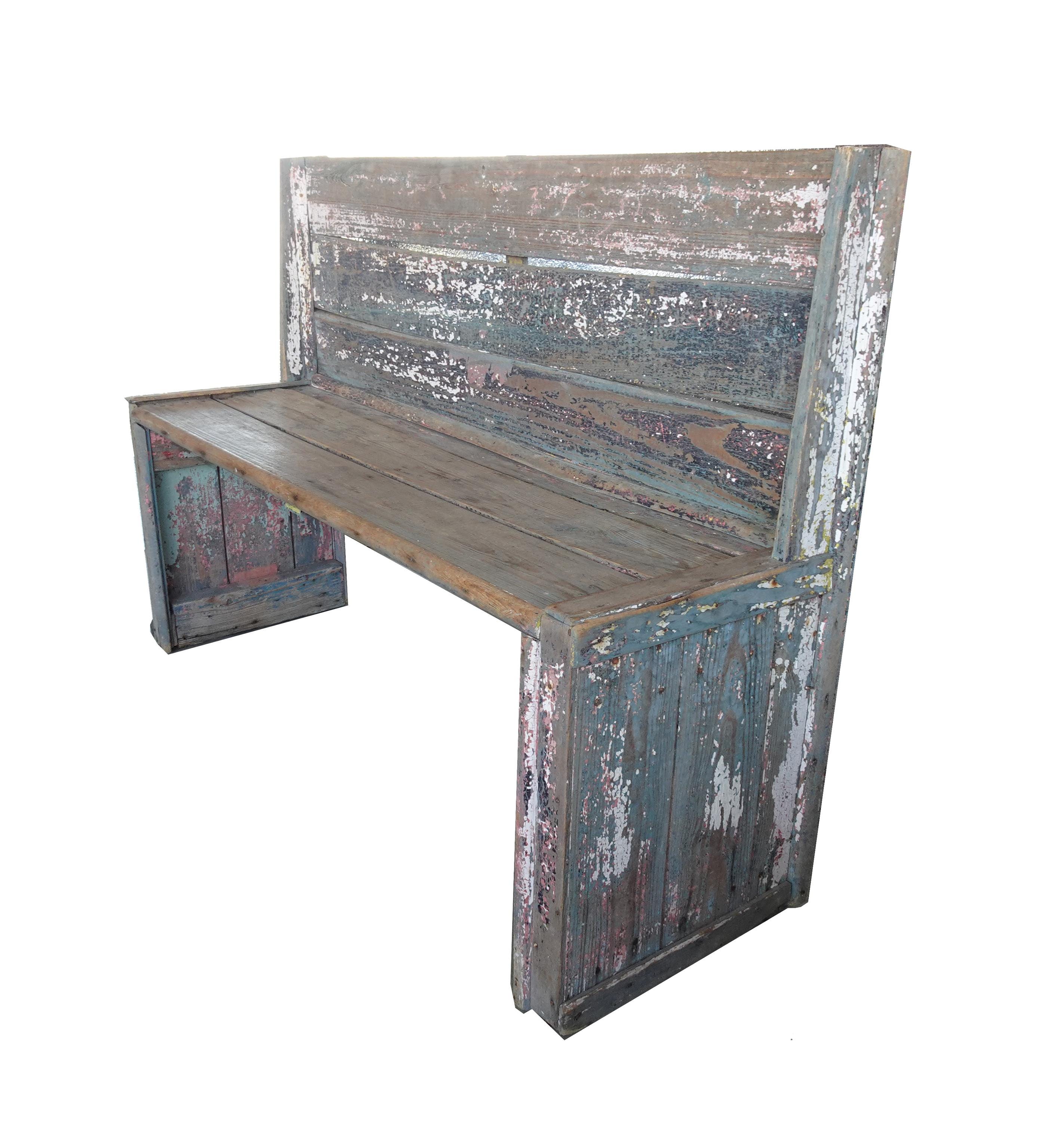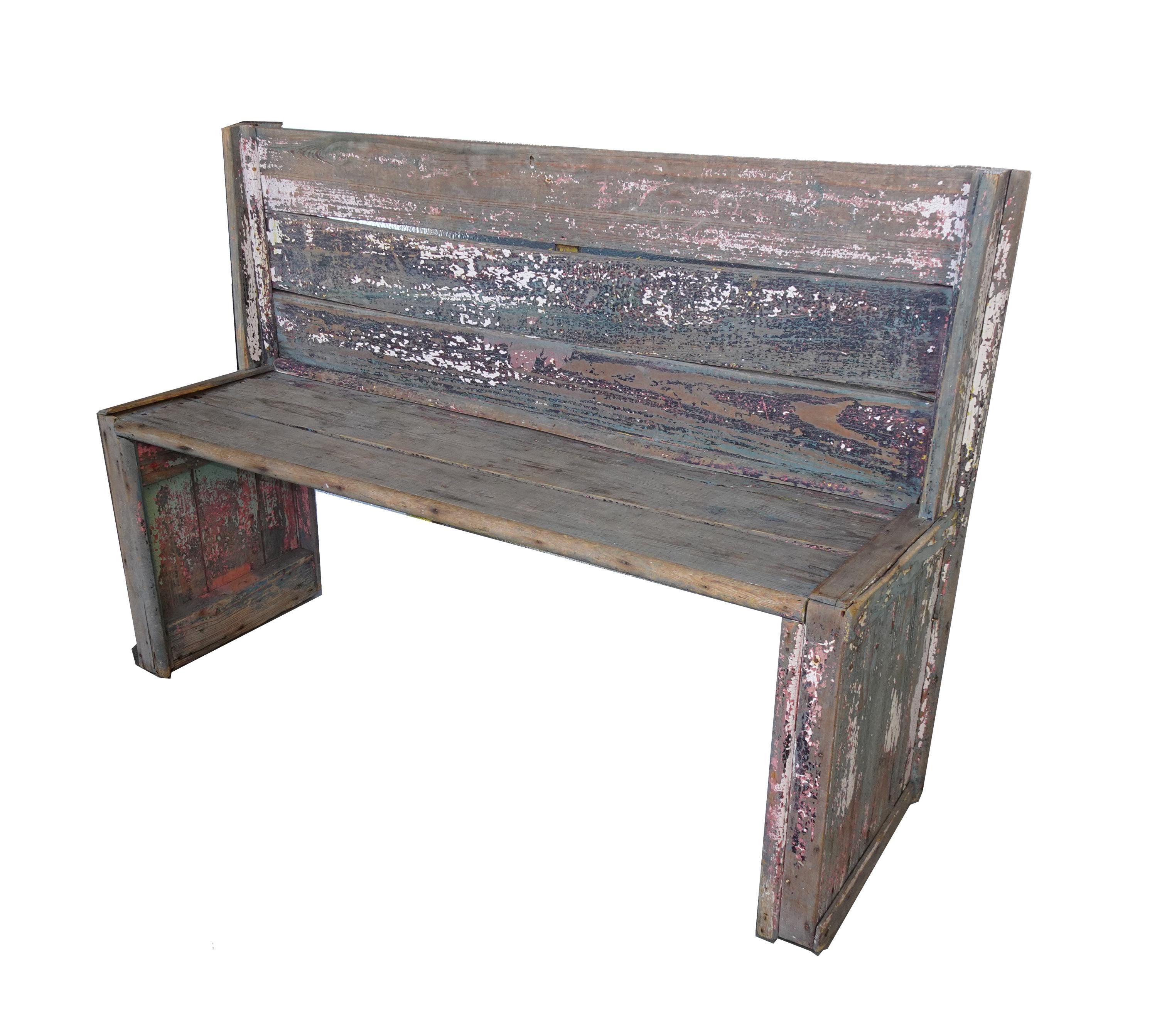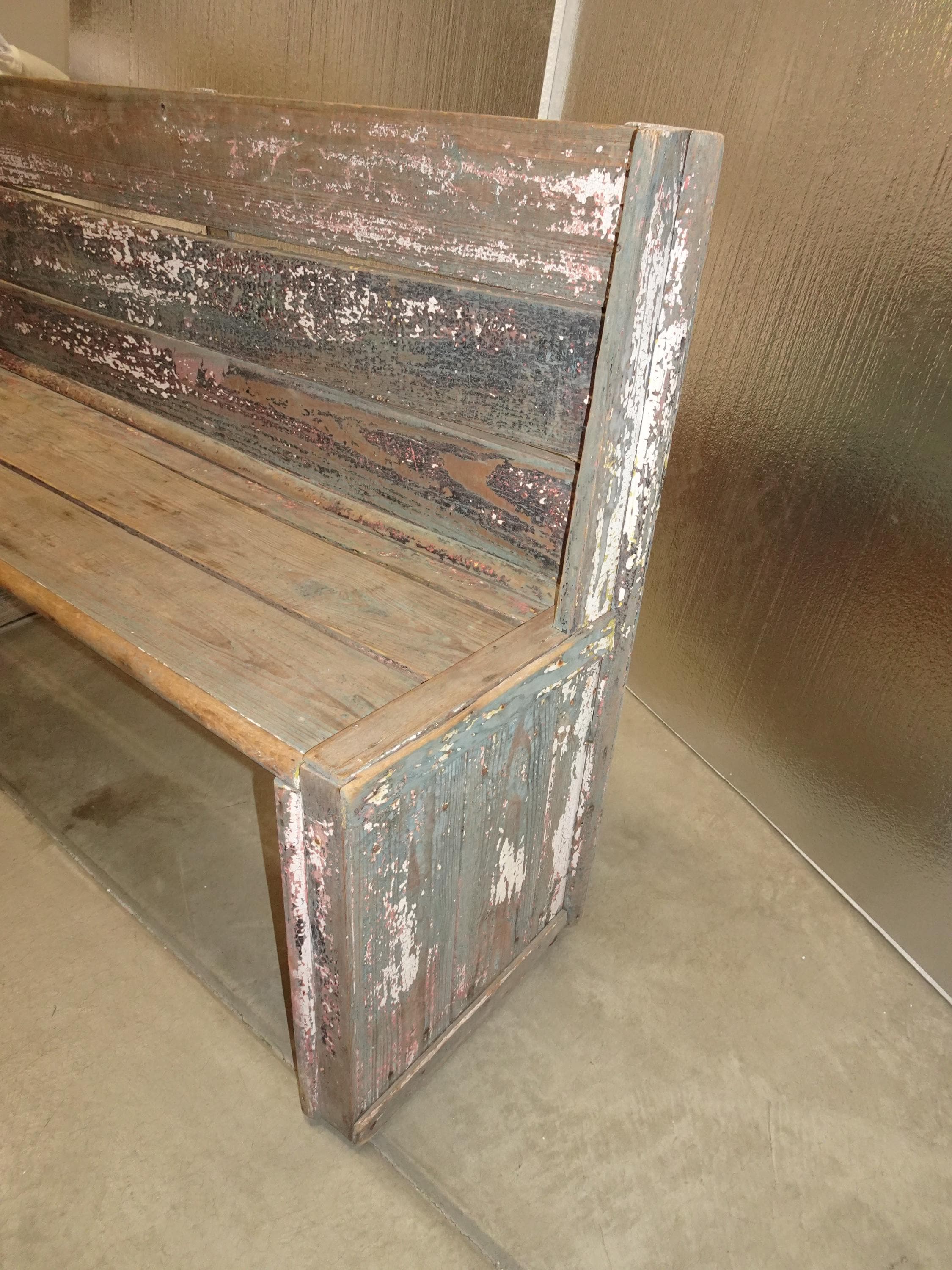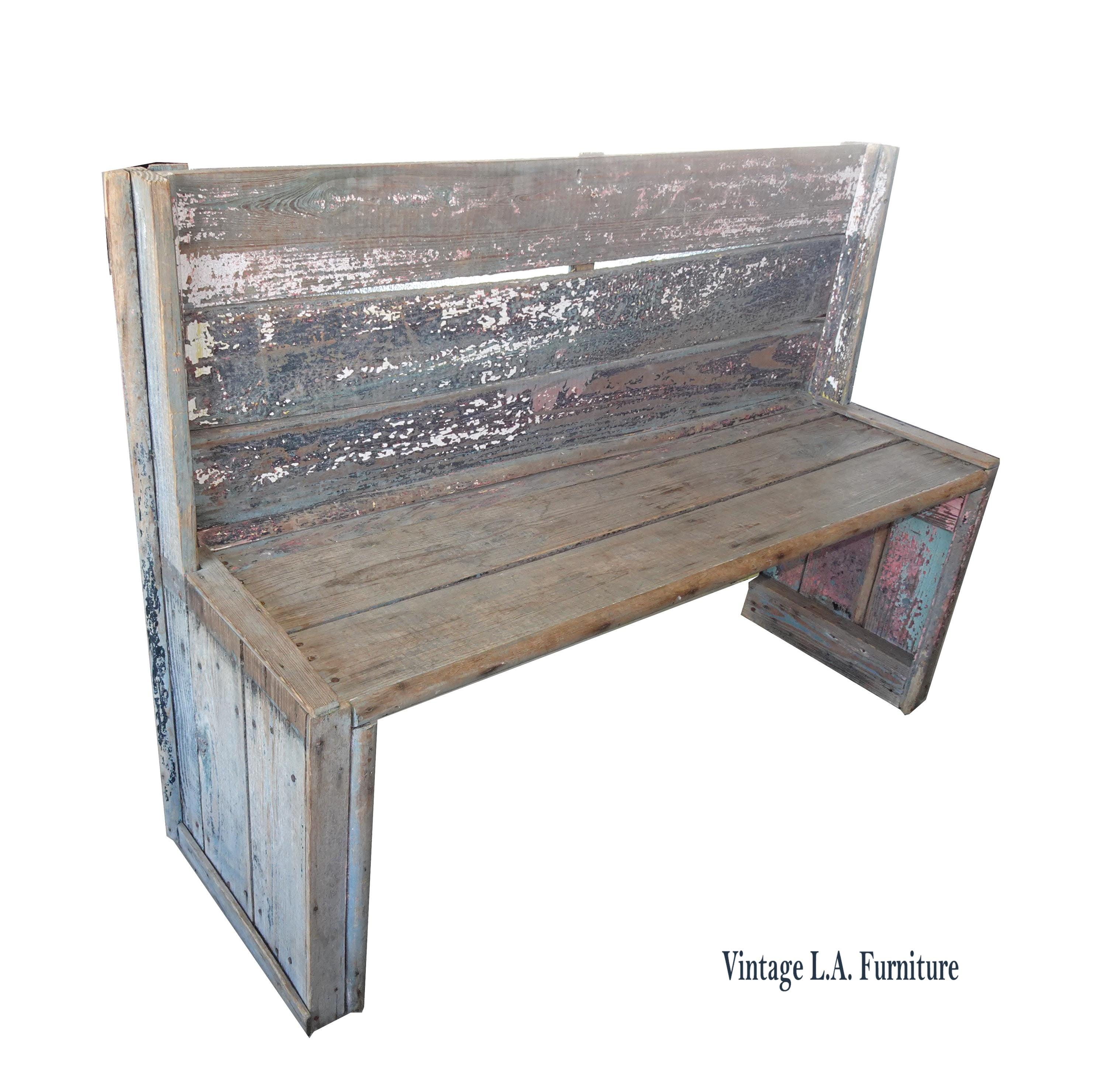 Antique Rustic Beach House Plank Bench w Antiqued Crackled Paint~ French Country