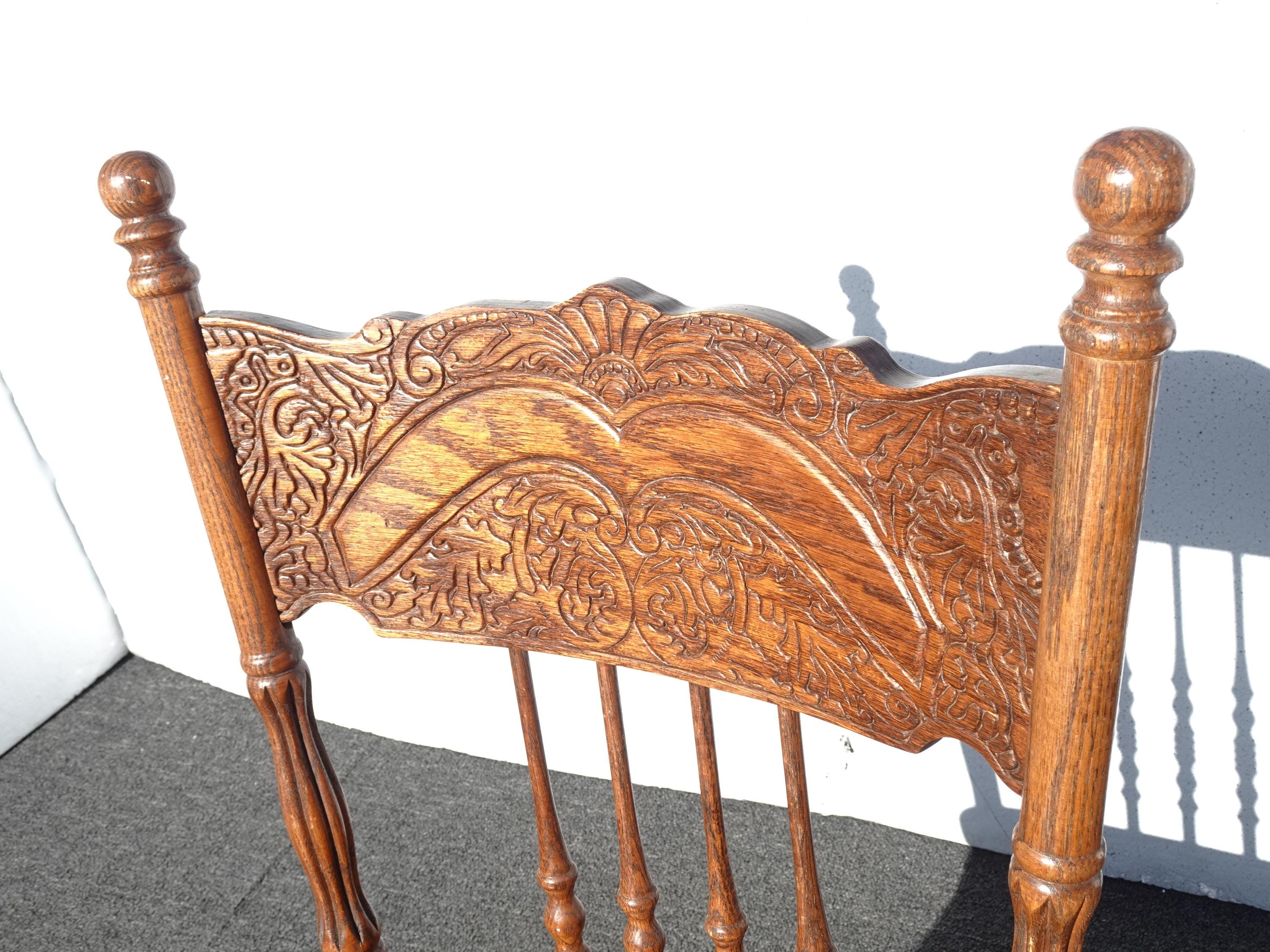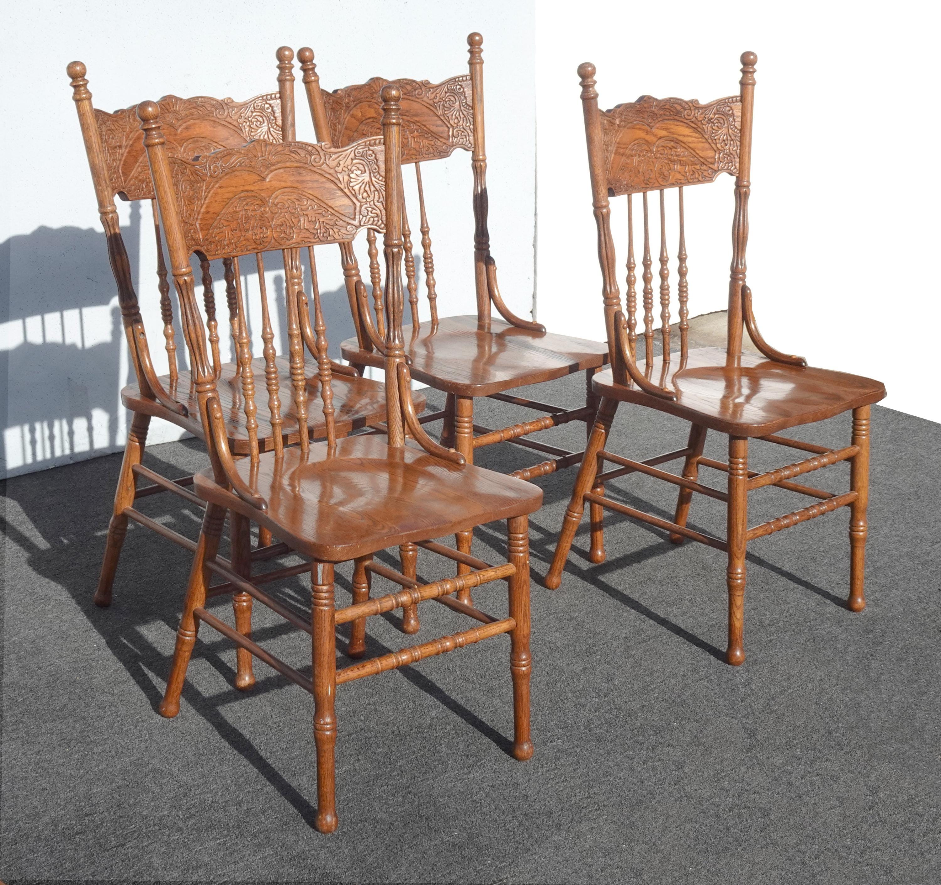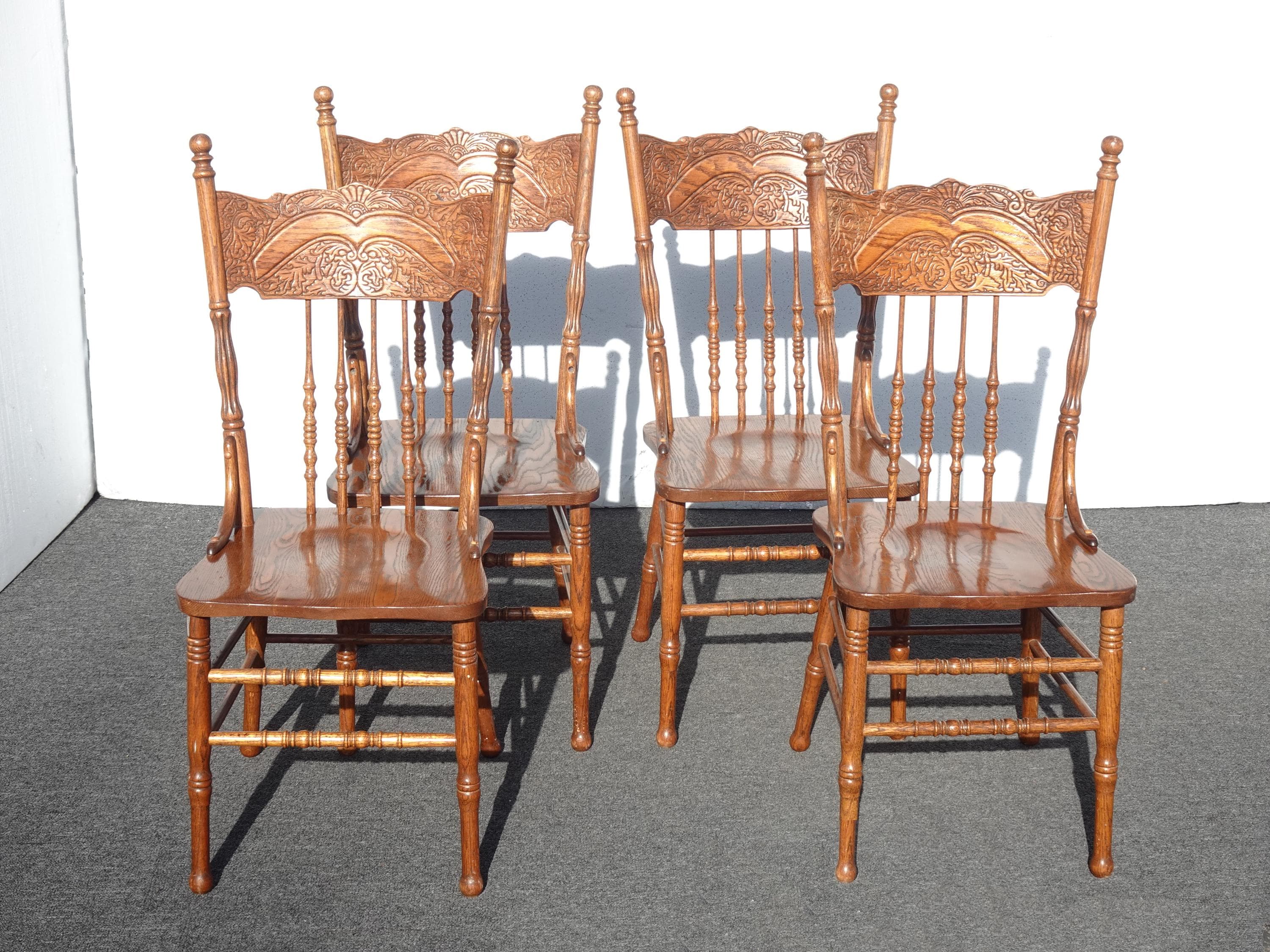 Chairs Pressed Back ~ Set Four Cane Vintage French Country Golden Oak Chairs #2