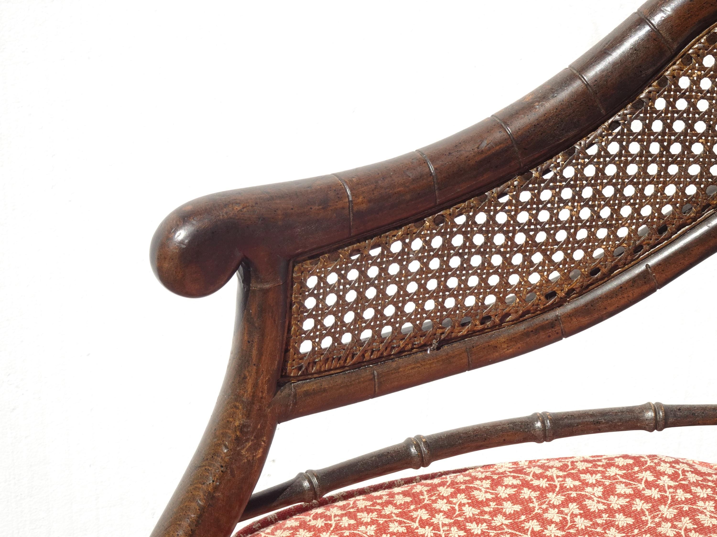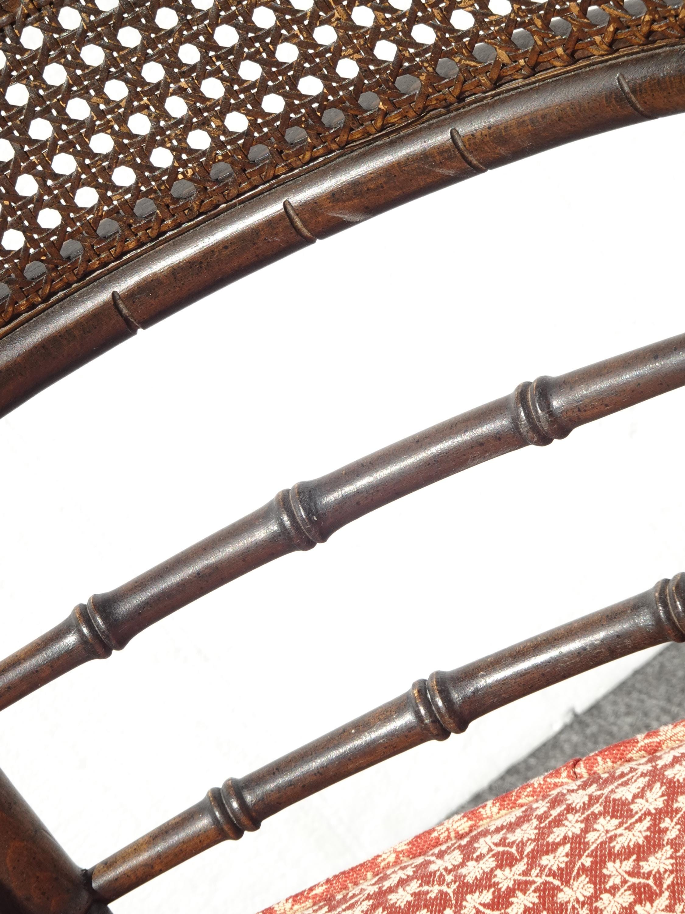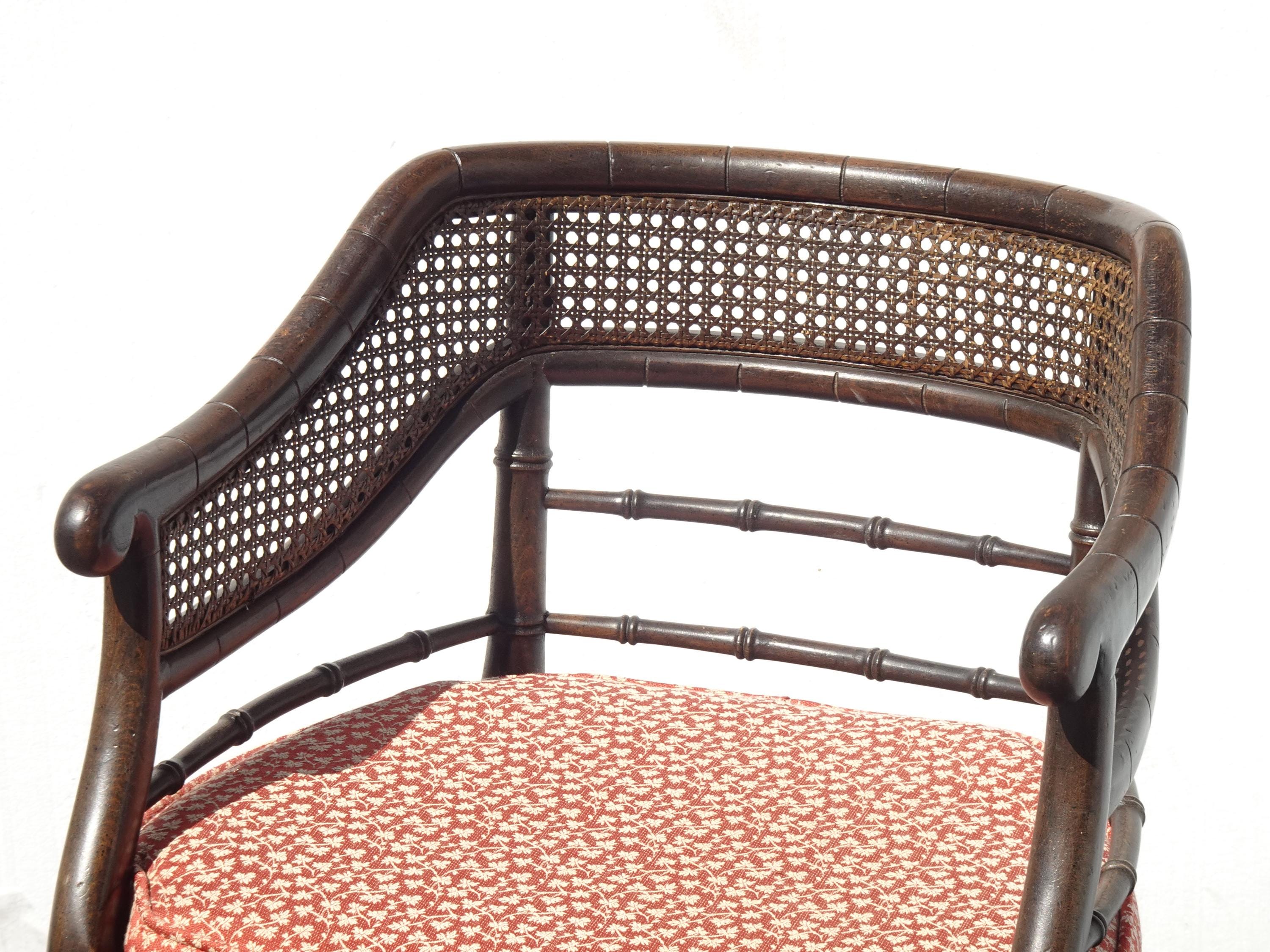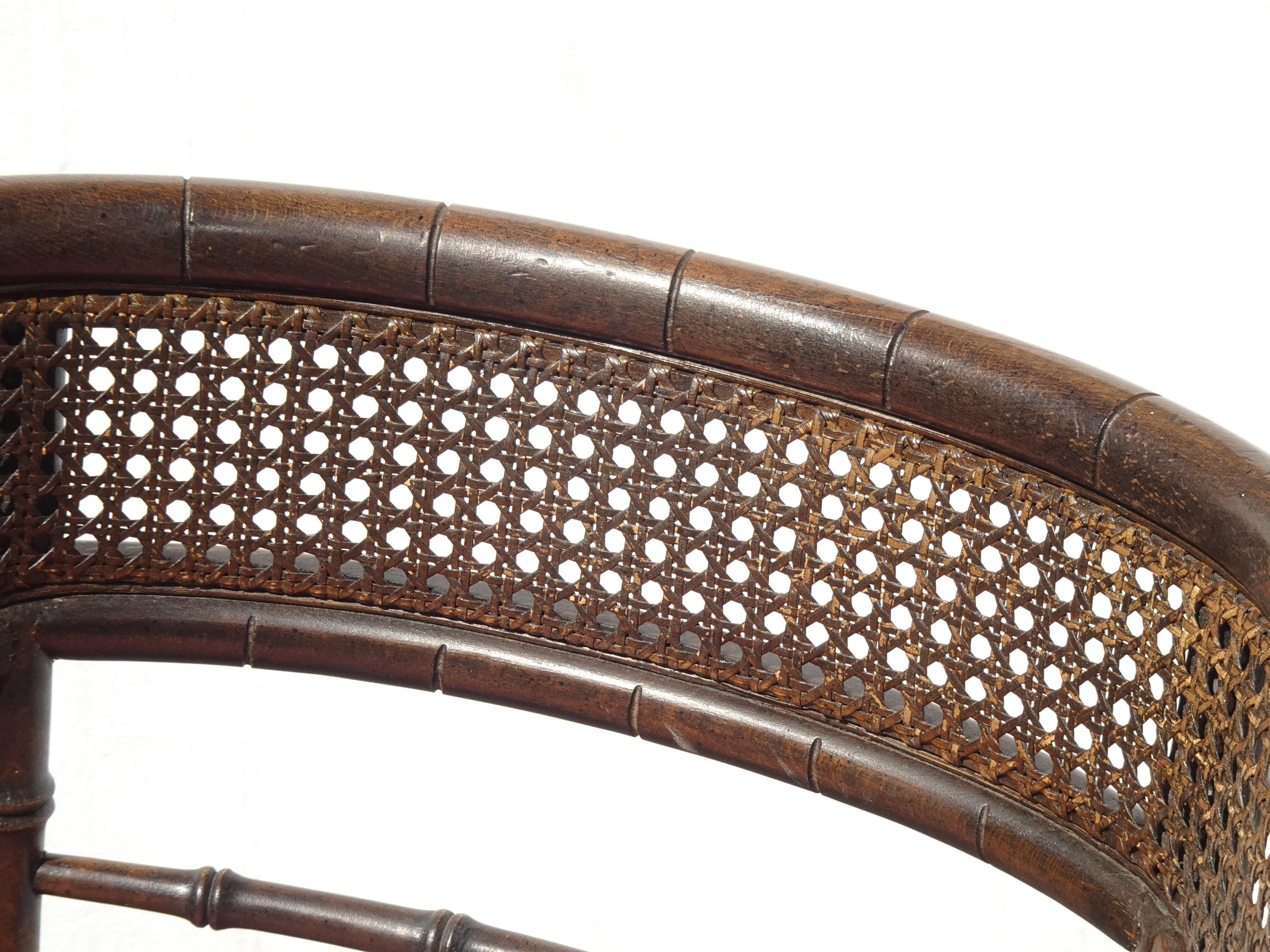 Vintage Polynesian Bamboo Cane Back Barrel Accent Chair w Cane Seat & Cushion