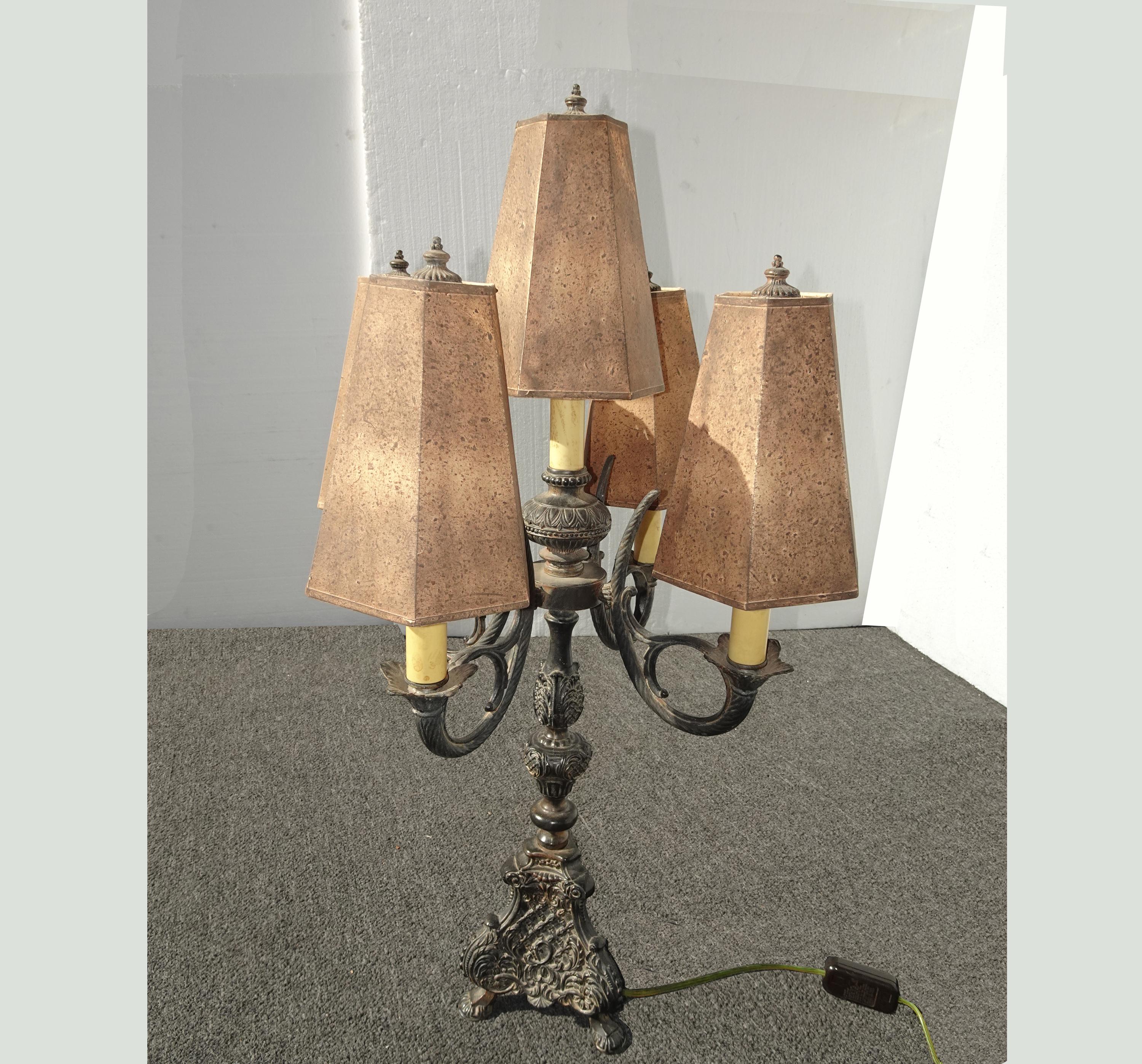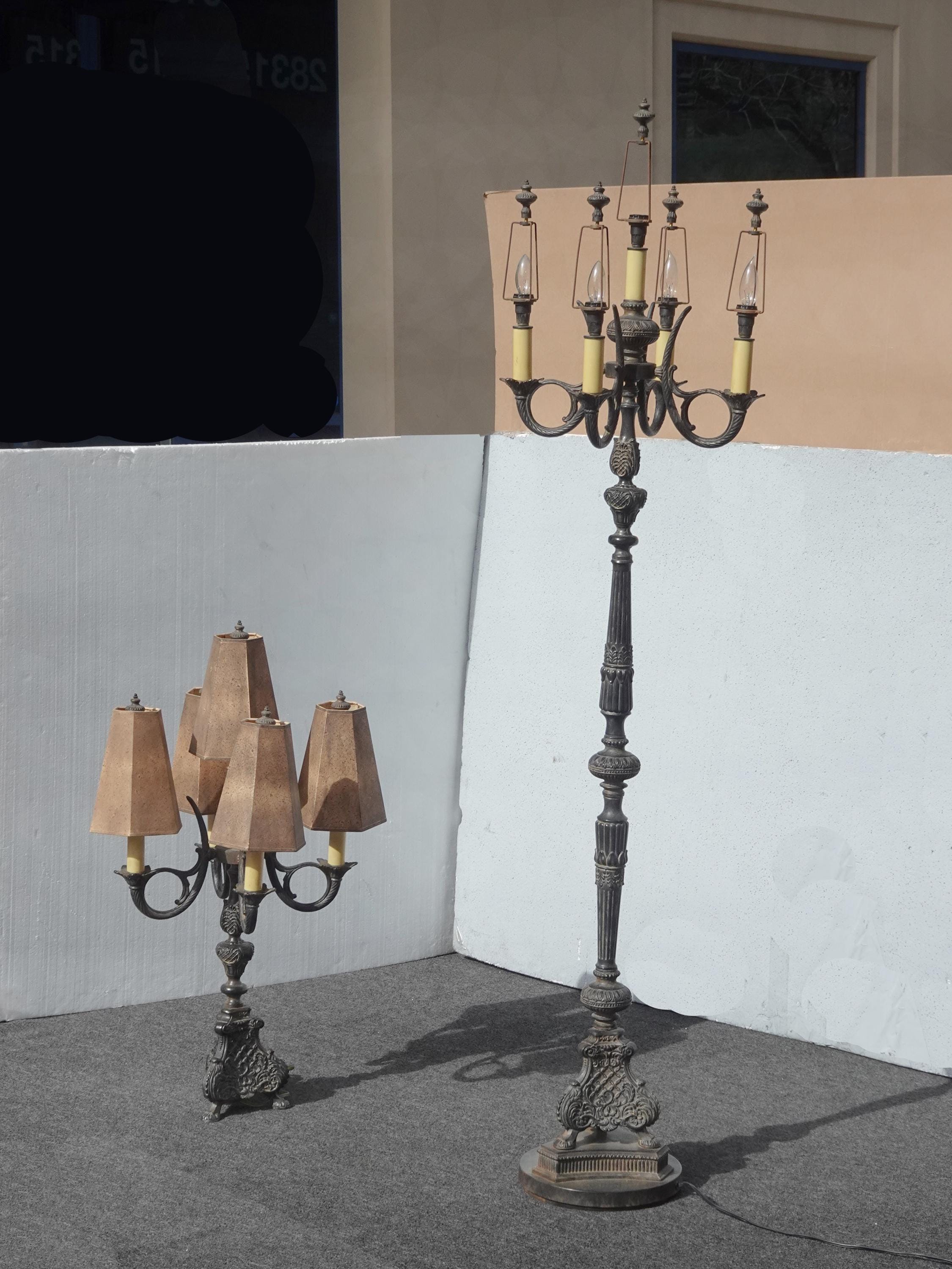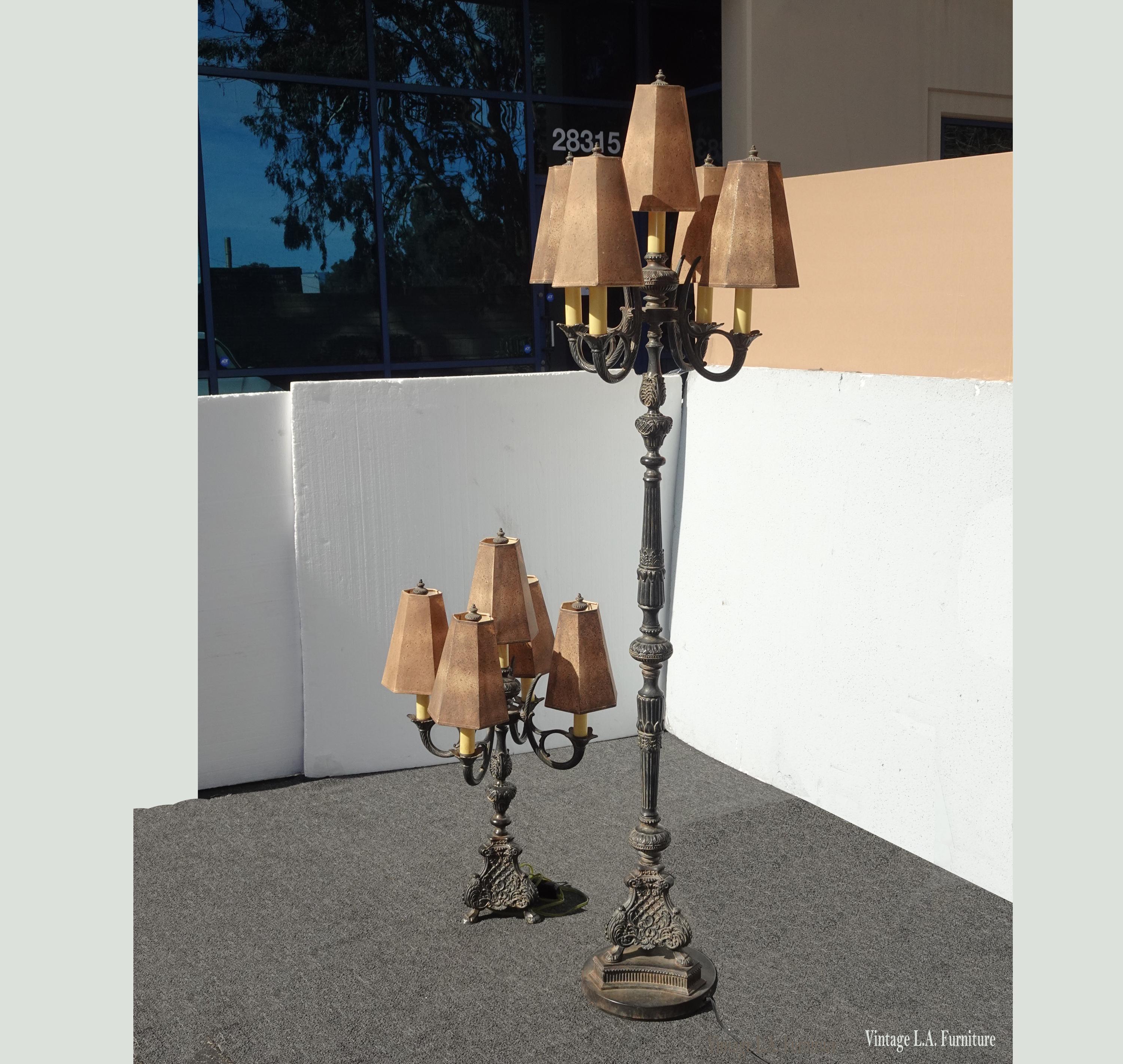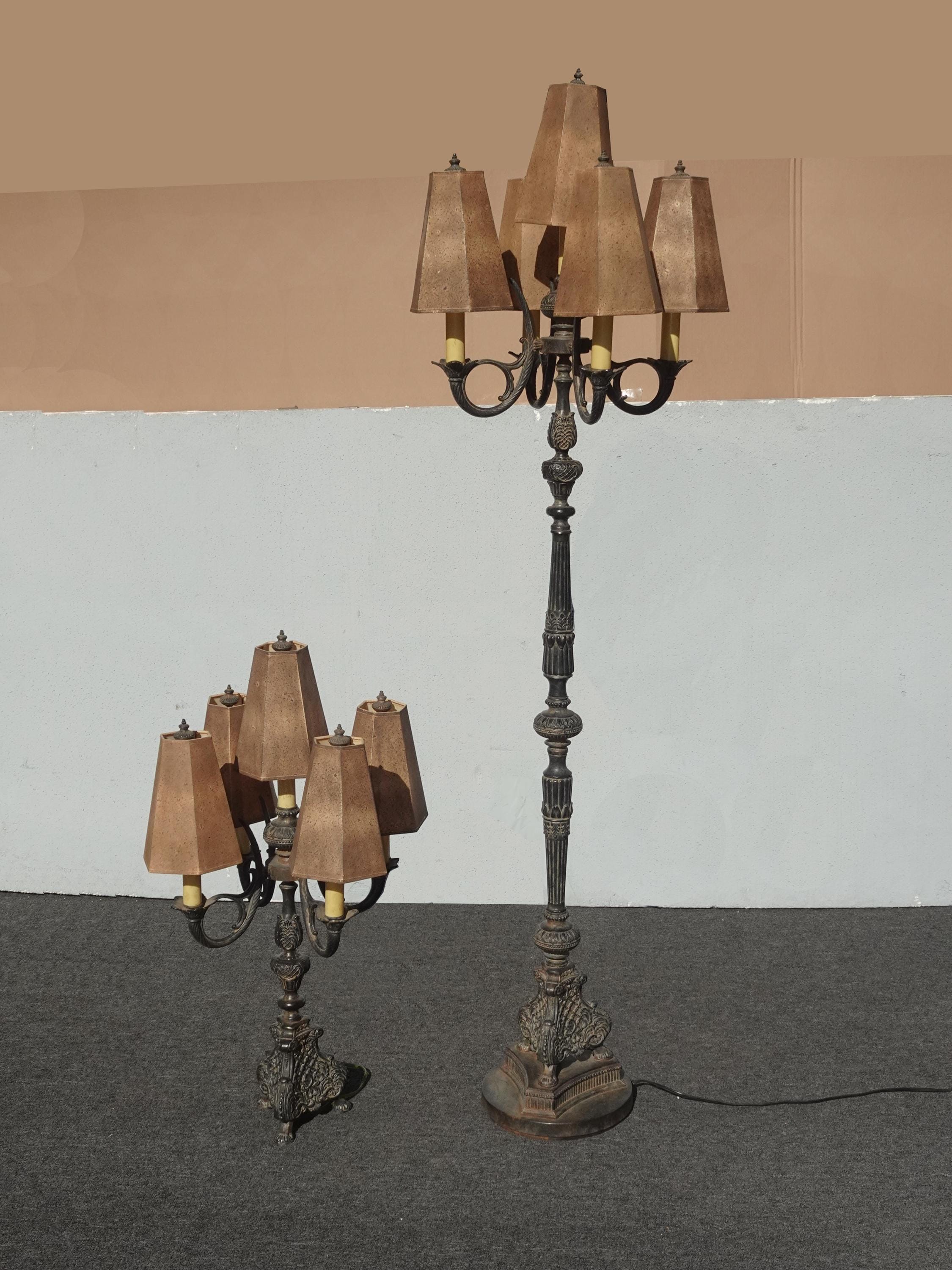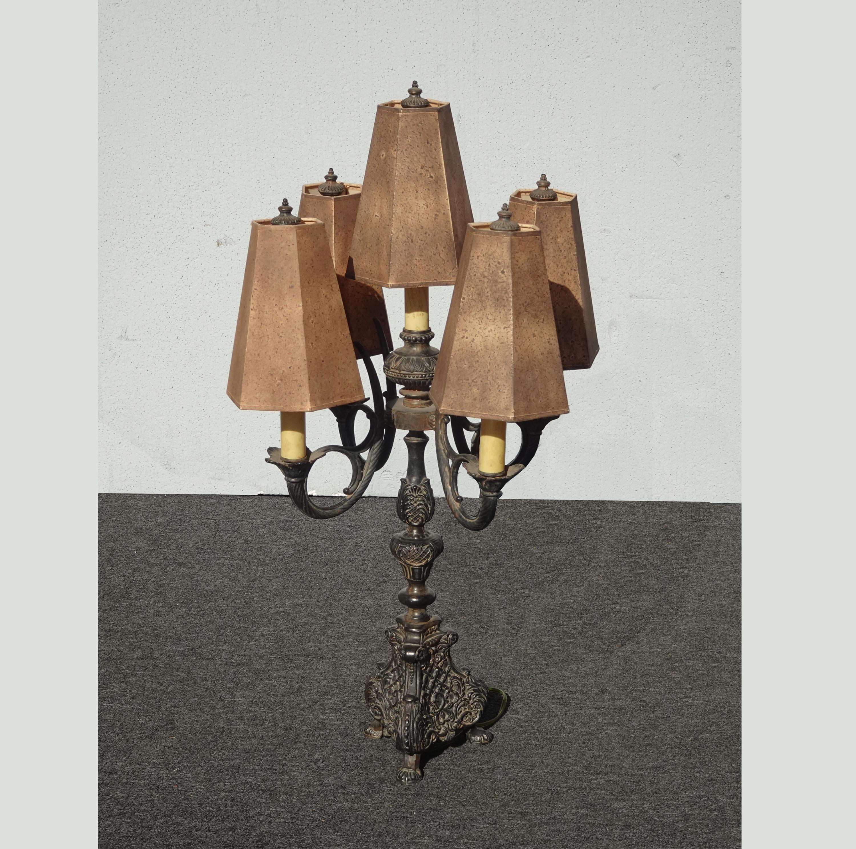 Gothic Floor Lamp & Table Lamps ~ Five Light Candalabra Cast Iron Spanish Style