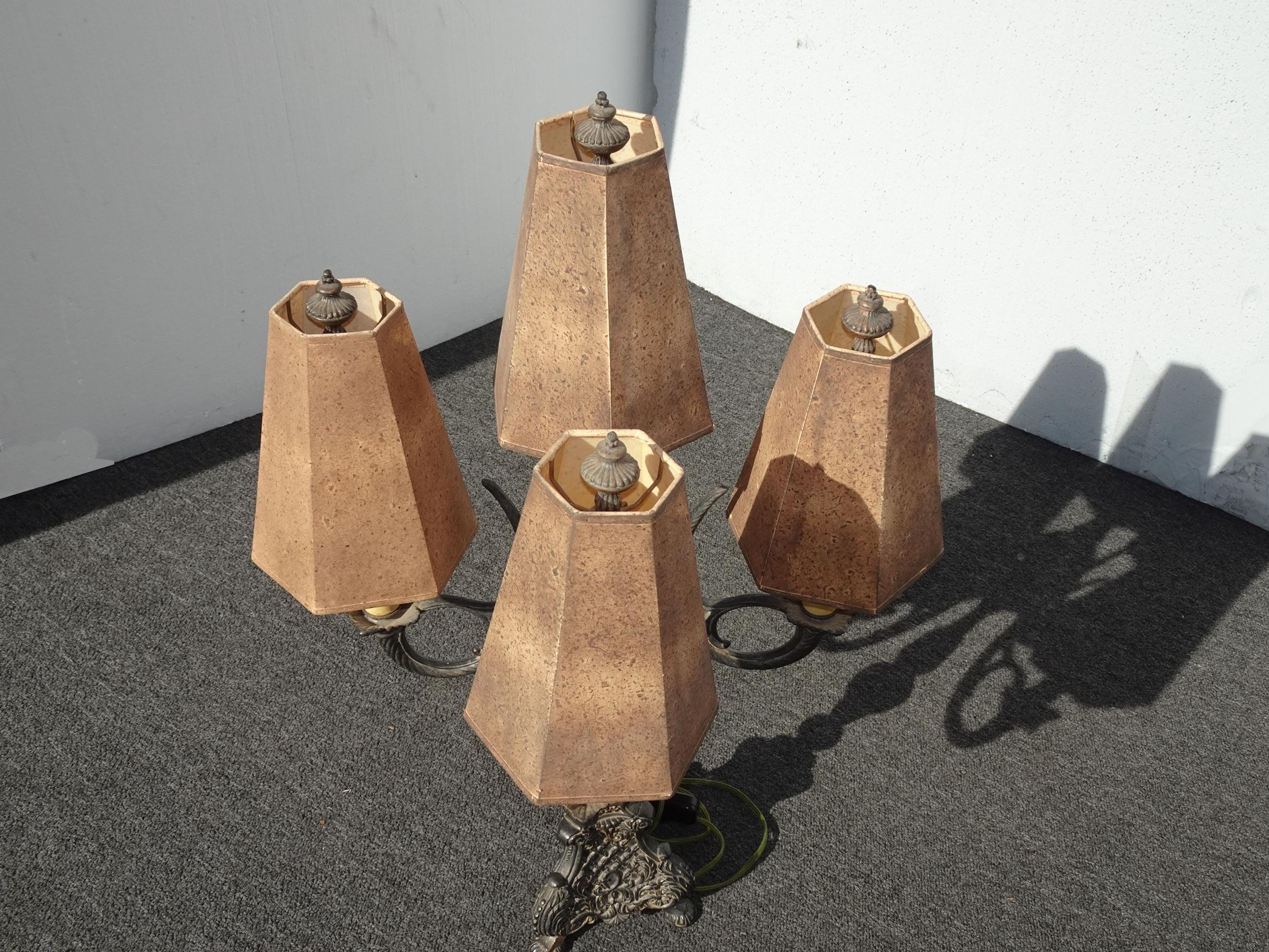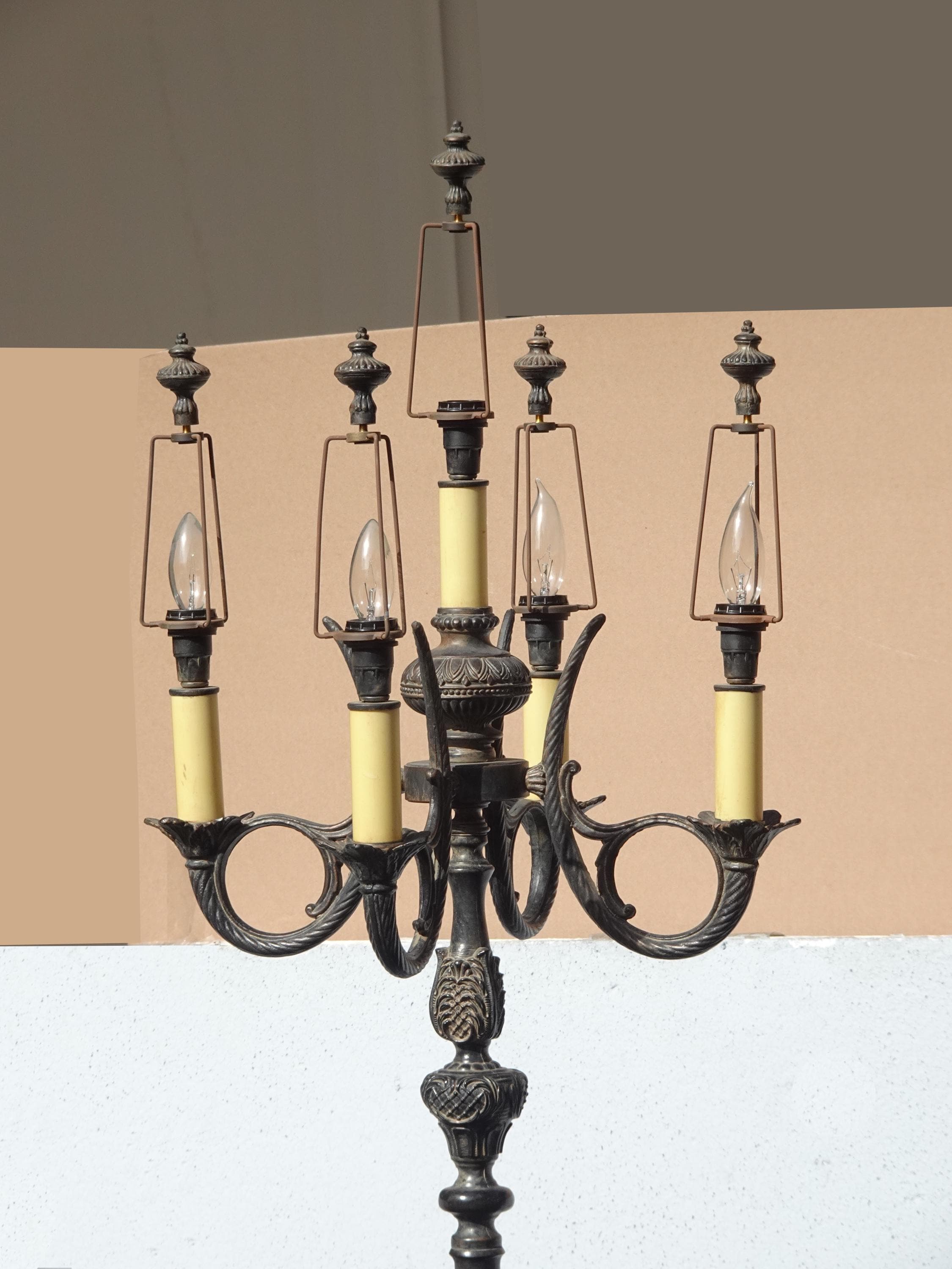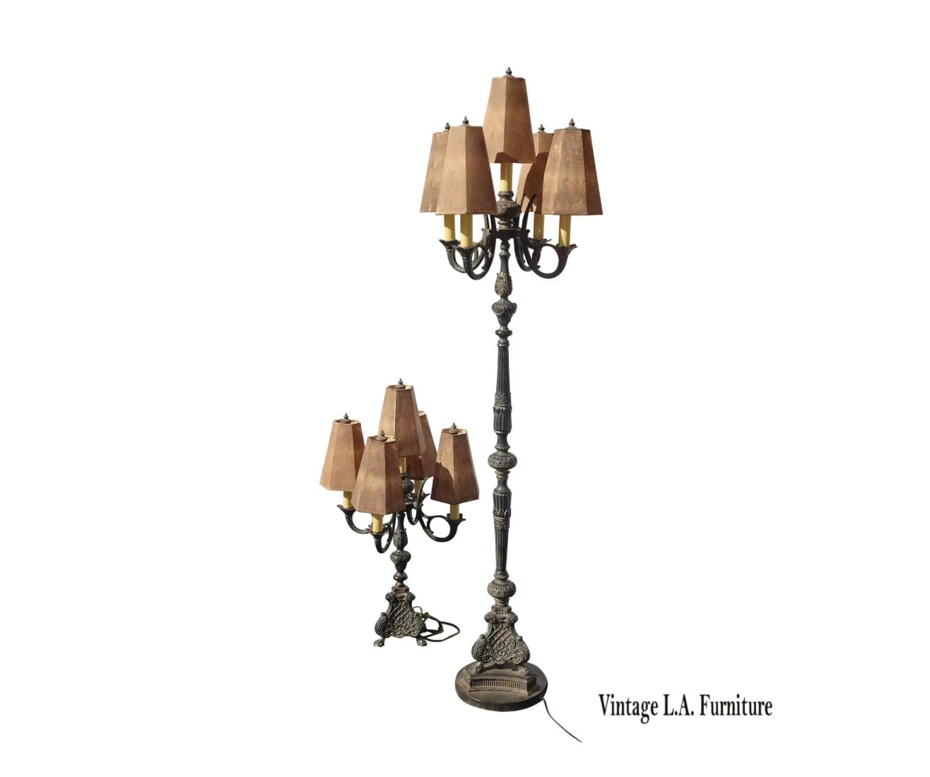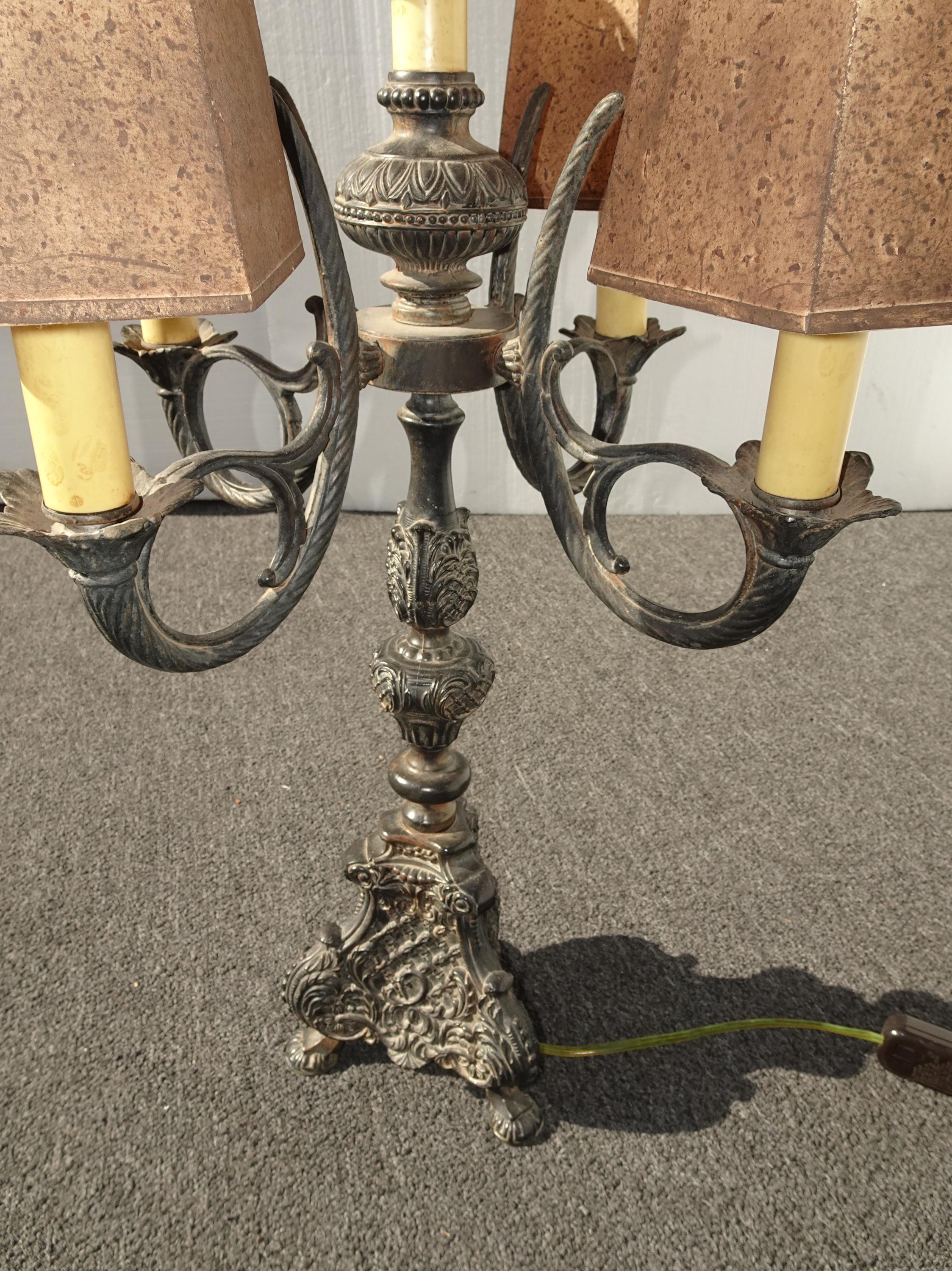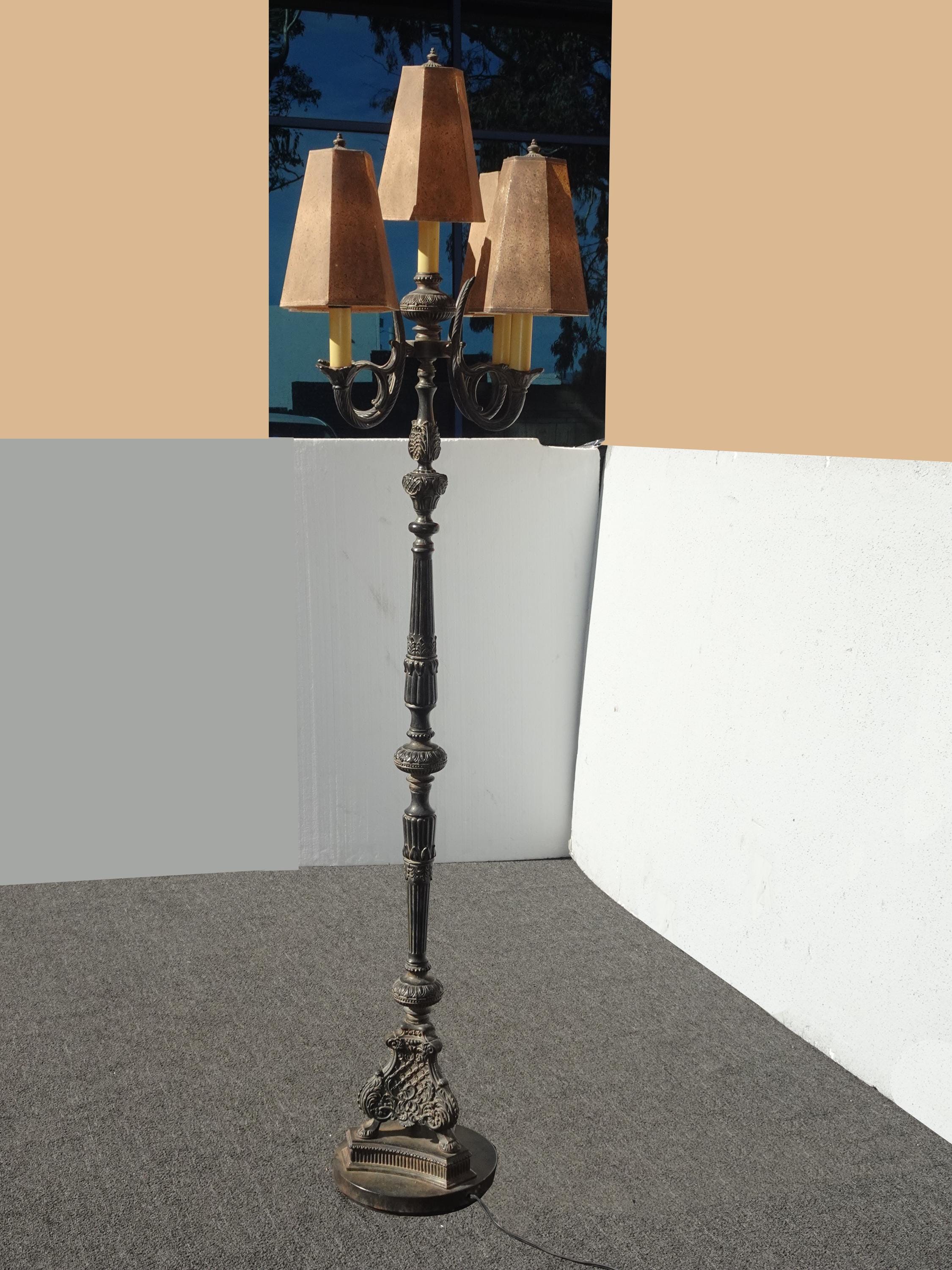 Gothic Floor Lamp & Table Lamps ~ Five Light Candalabra Cast Iron Spanish Style