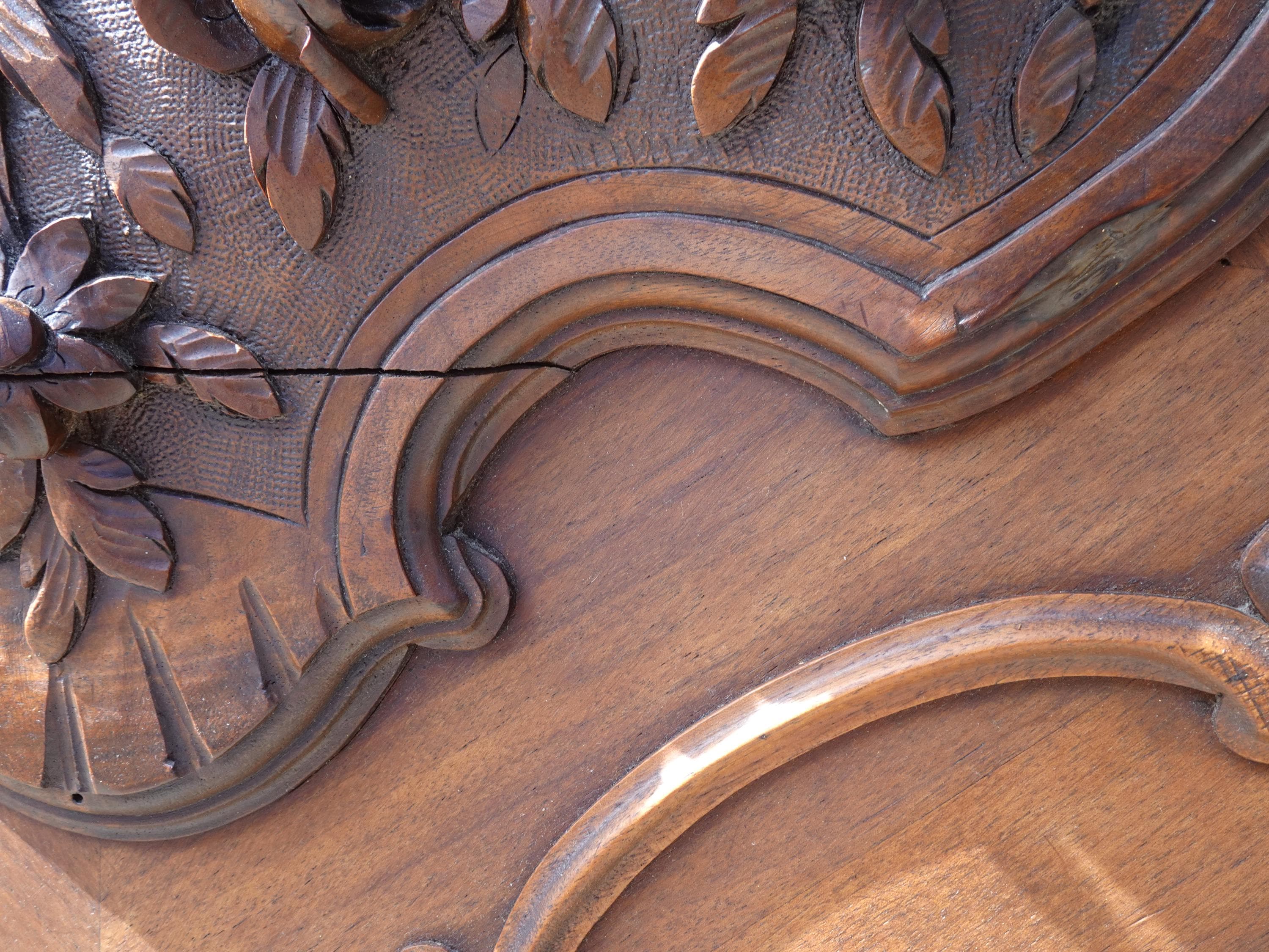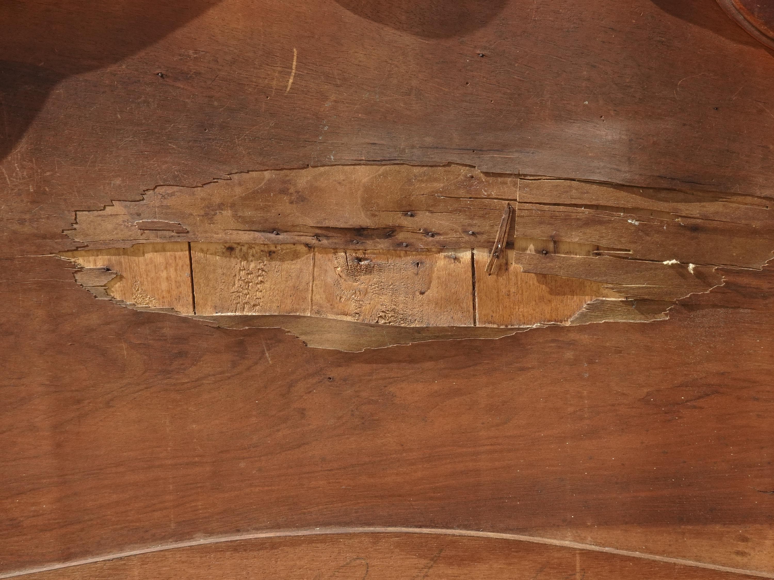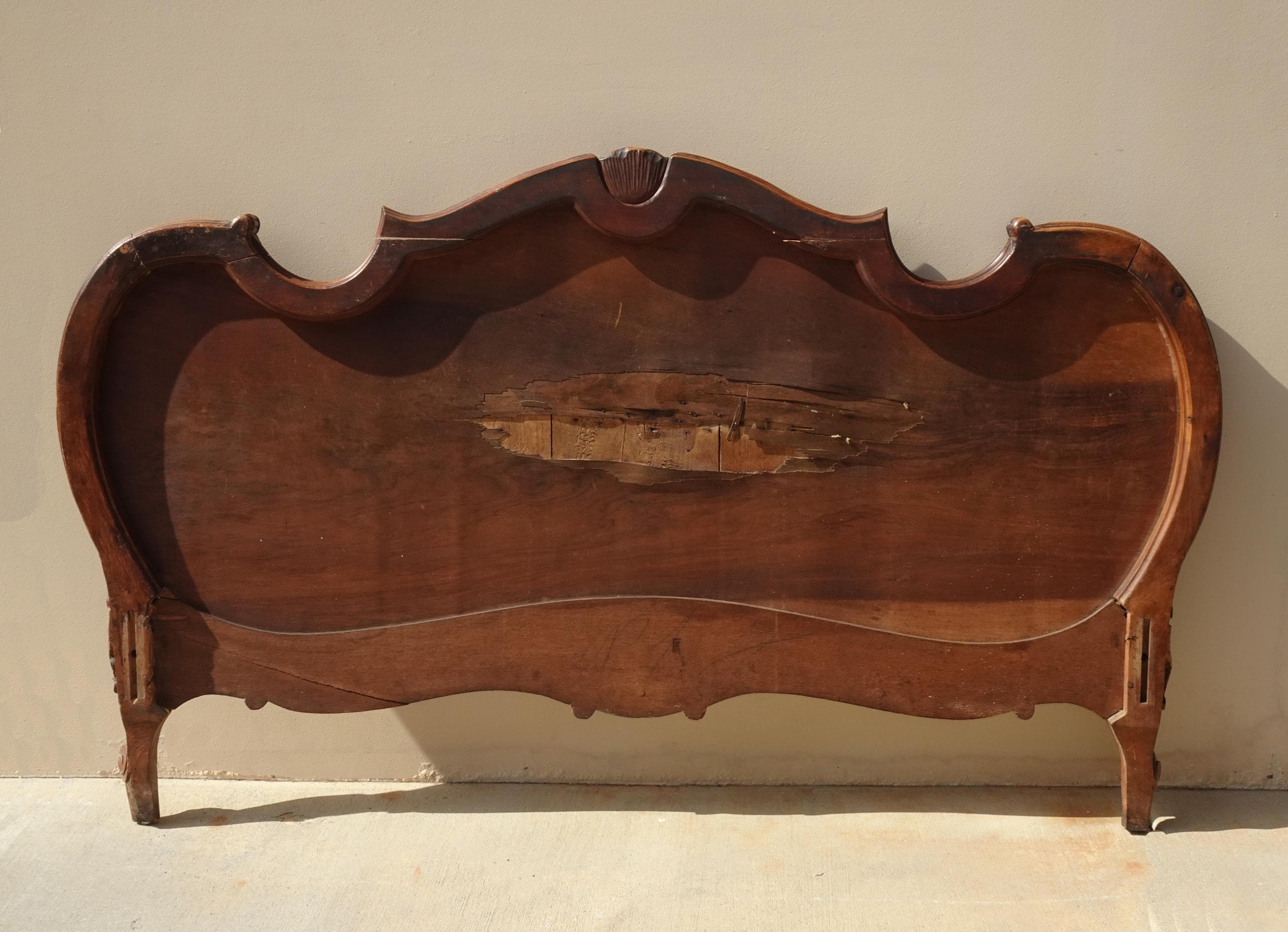 The interior of the footboard has a large area of broken veneer.