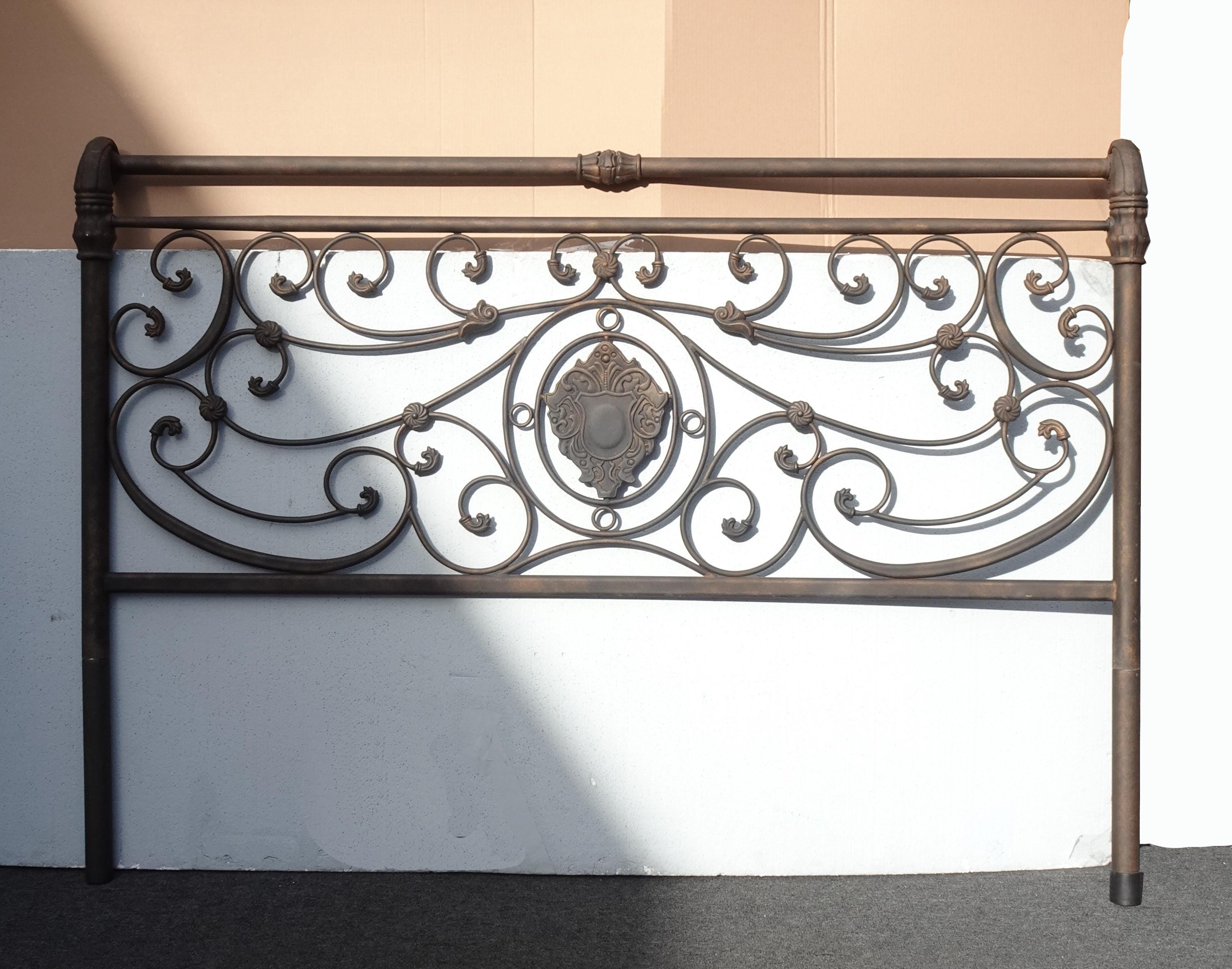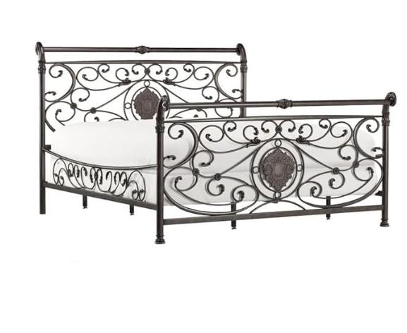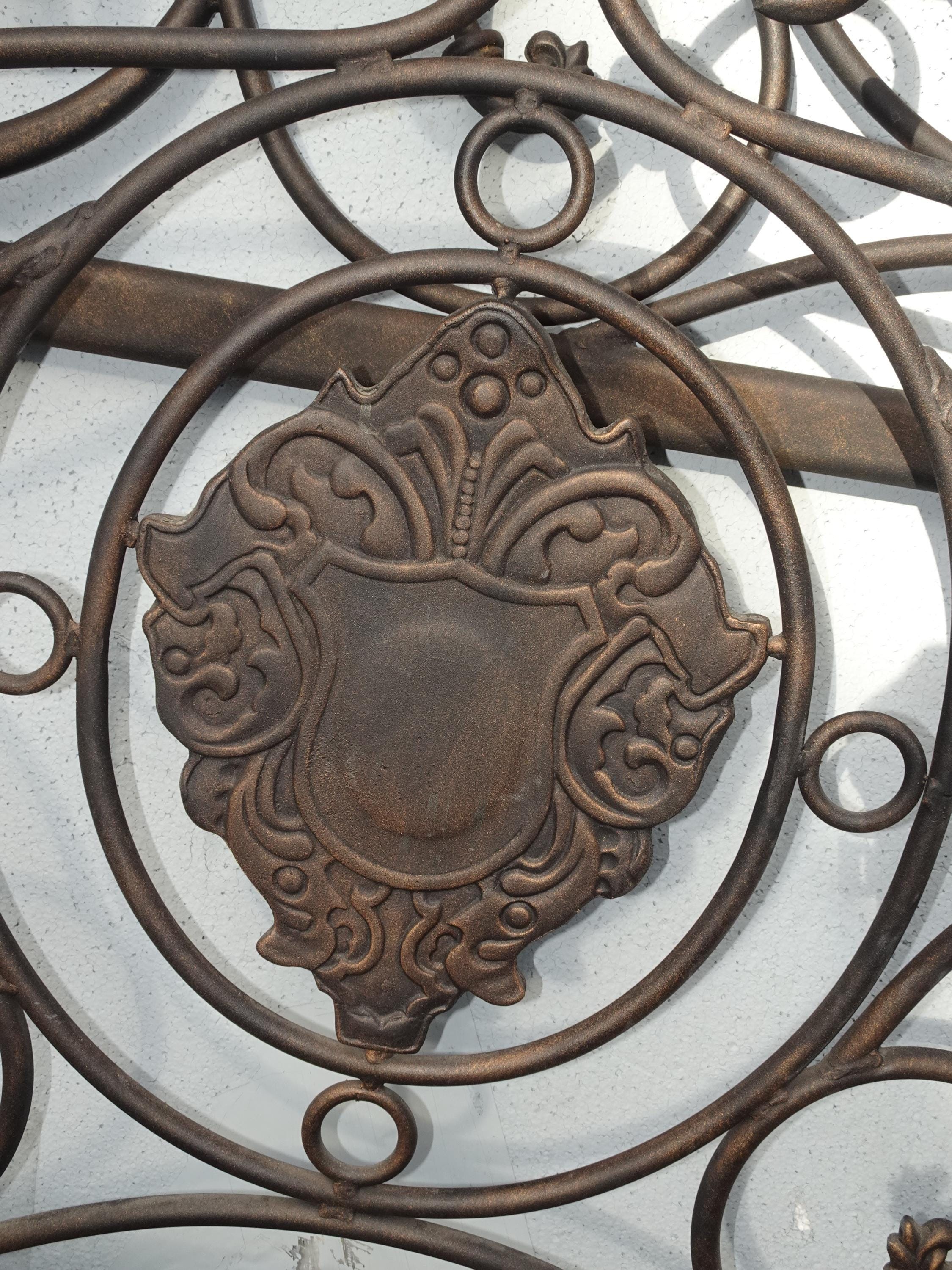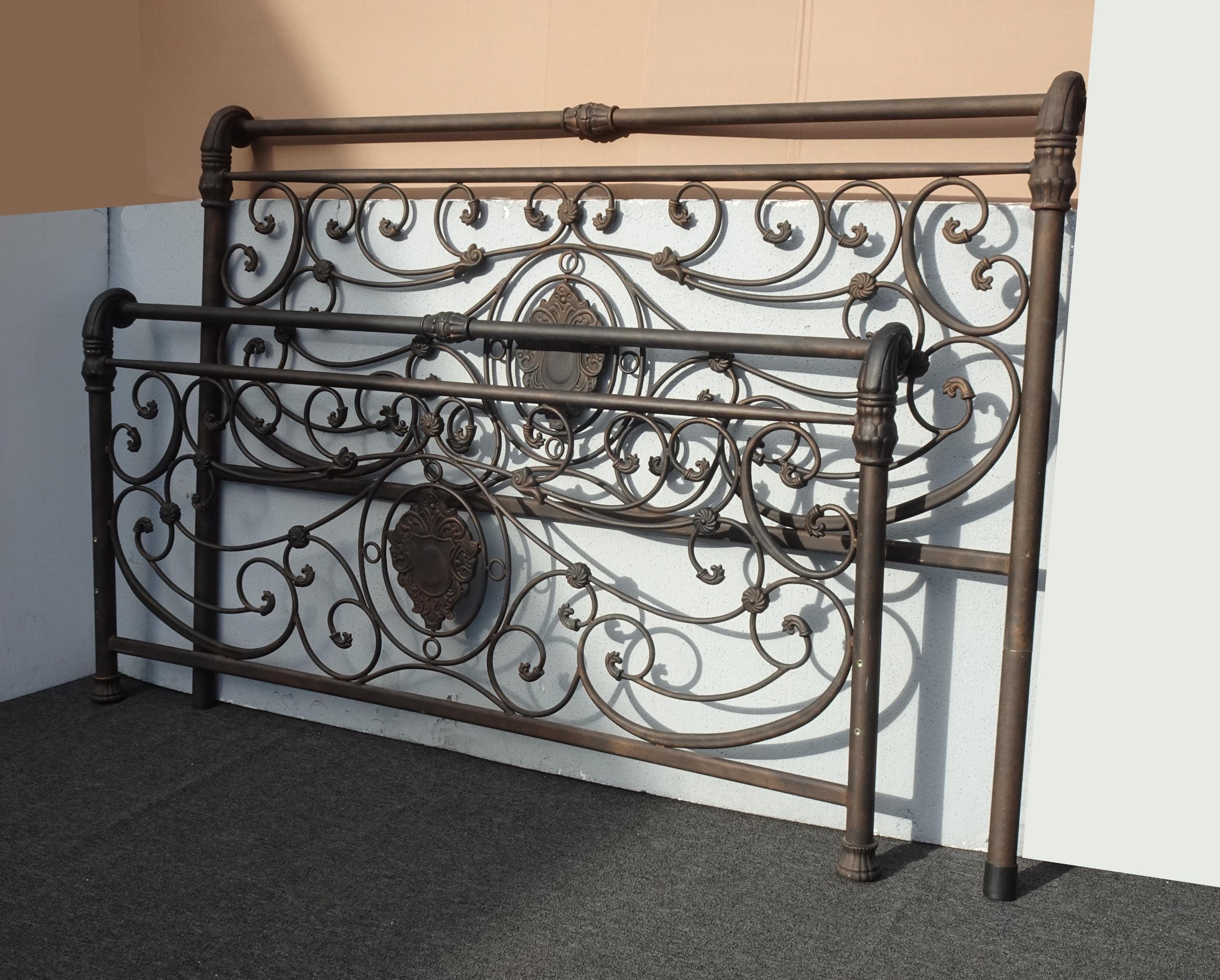 Brown Metal King Sleigh Bed Set Frame Headboard Medalion and Ornate Scrolls