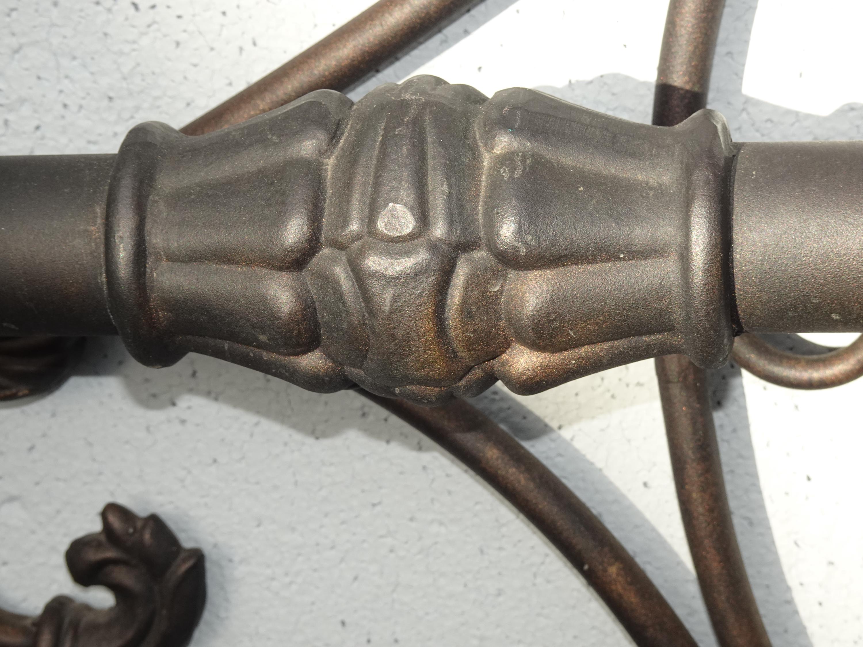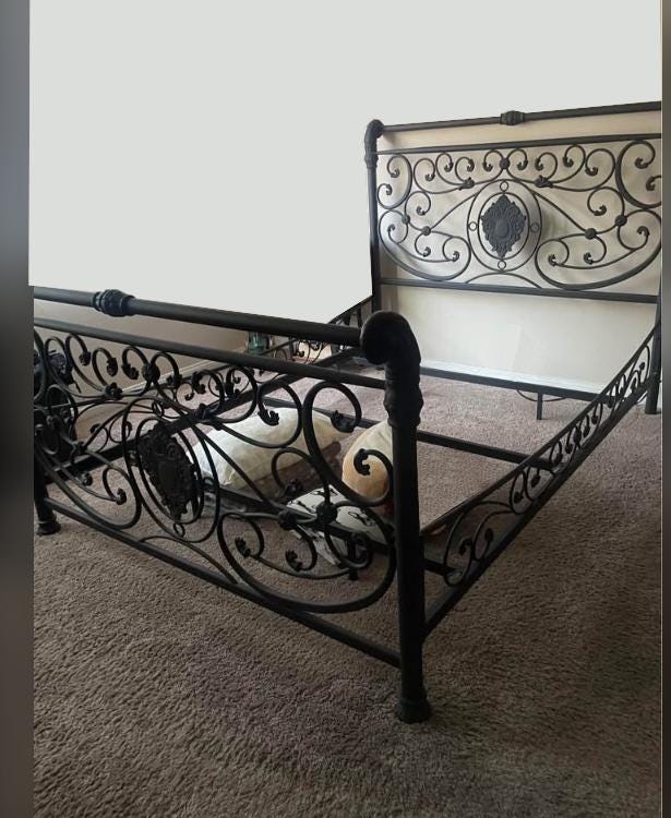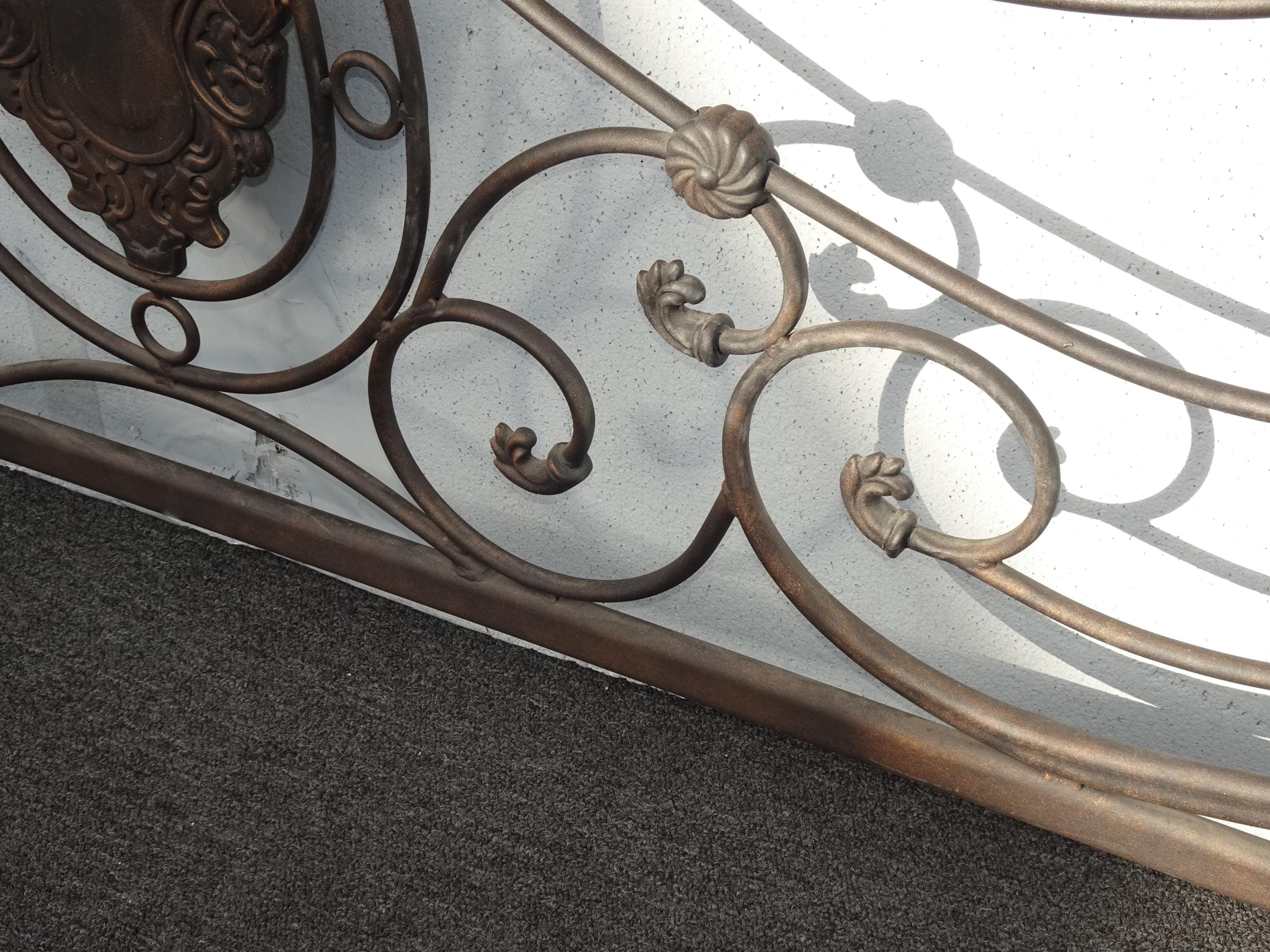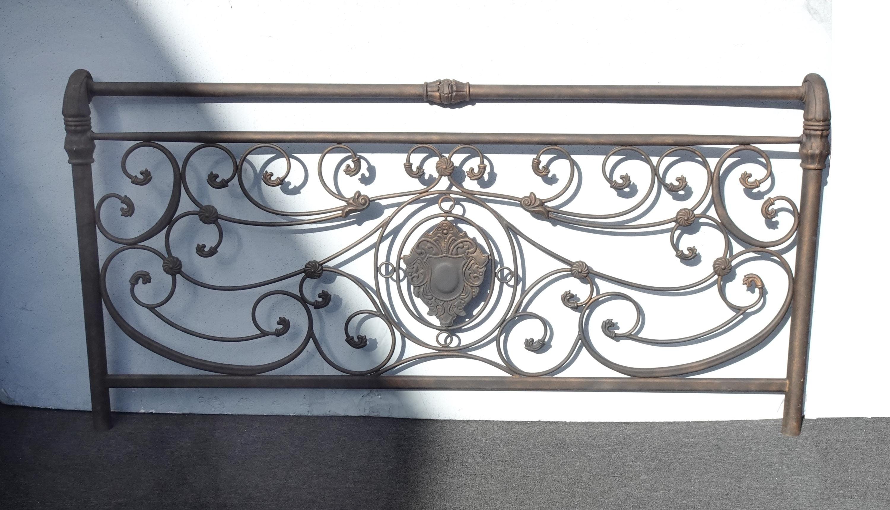 Brown Metal King Sleigh Bed Set Frame Headboard Medalion and Ornate Scrolls