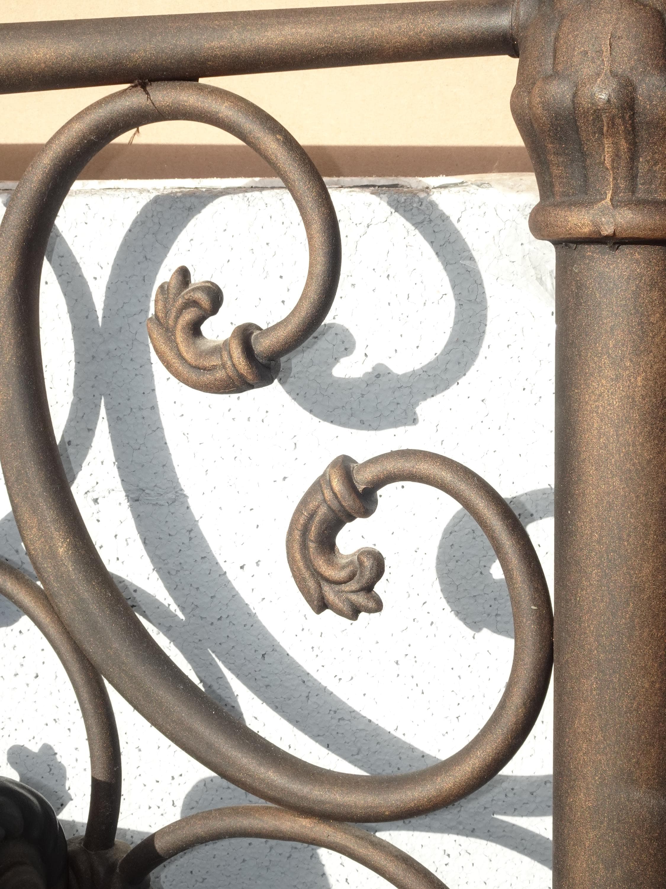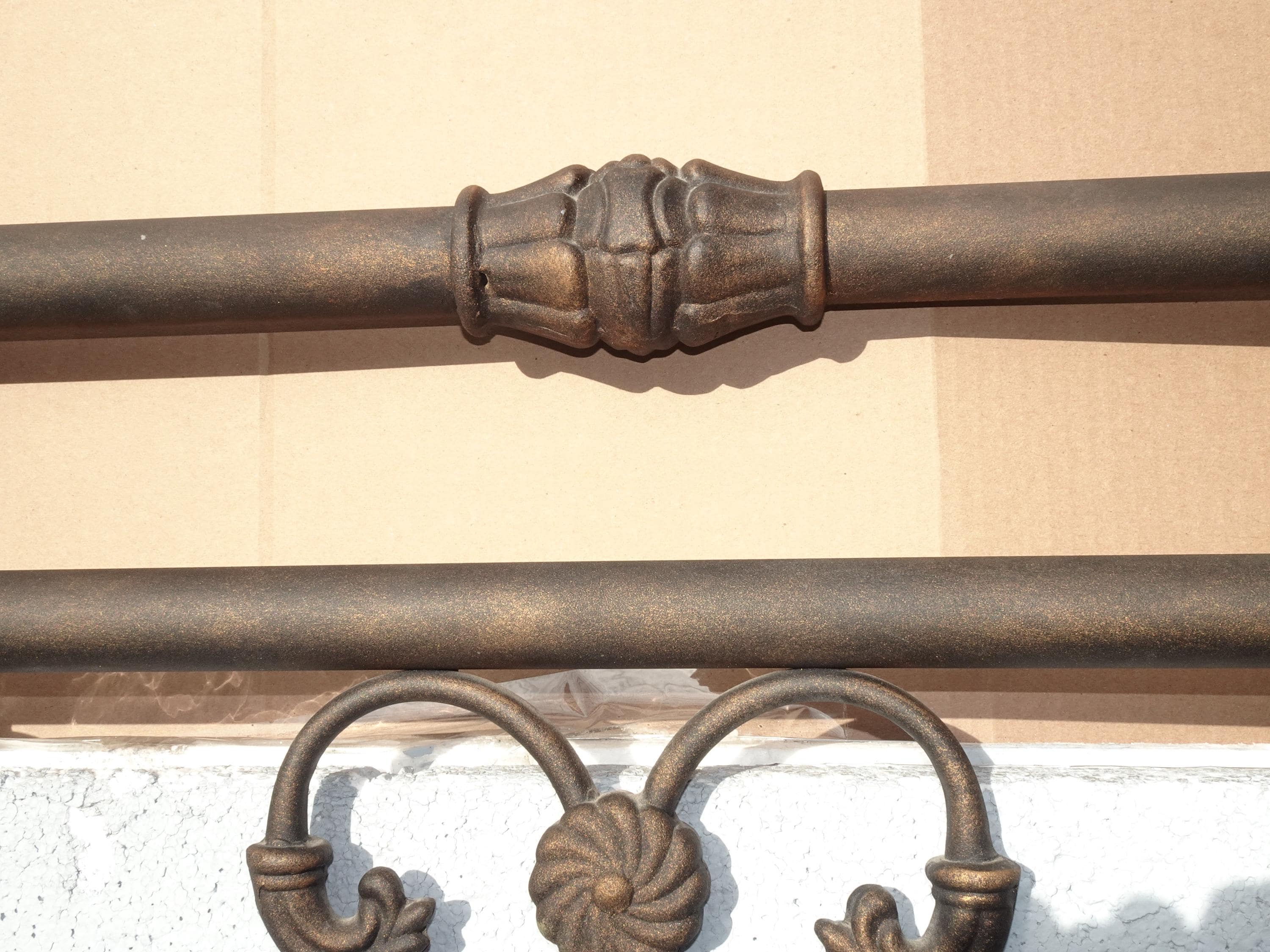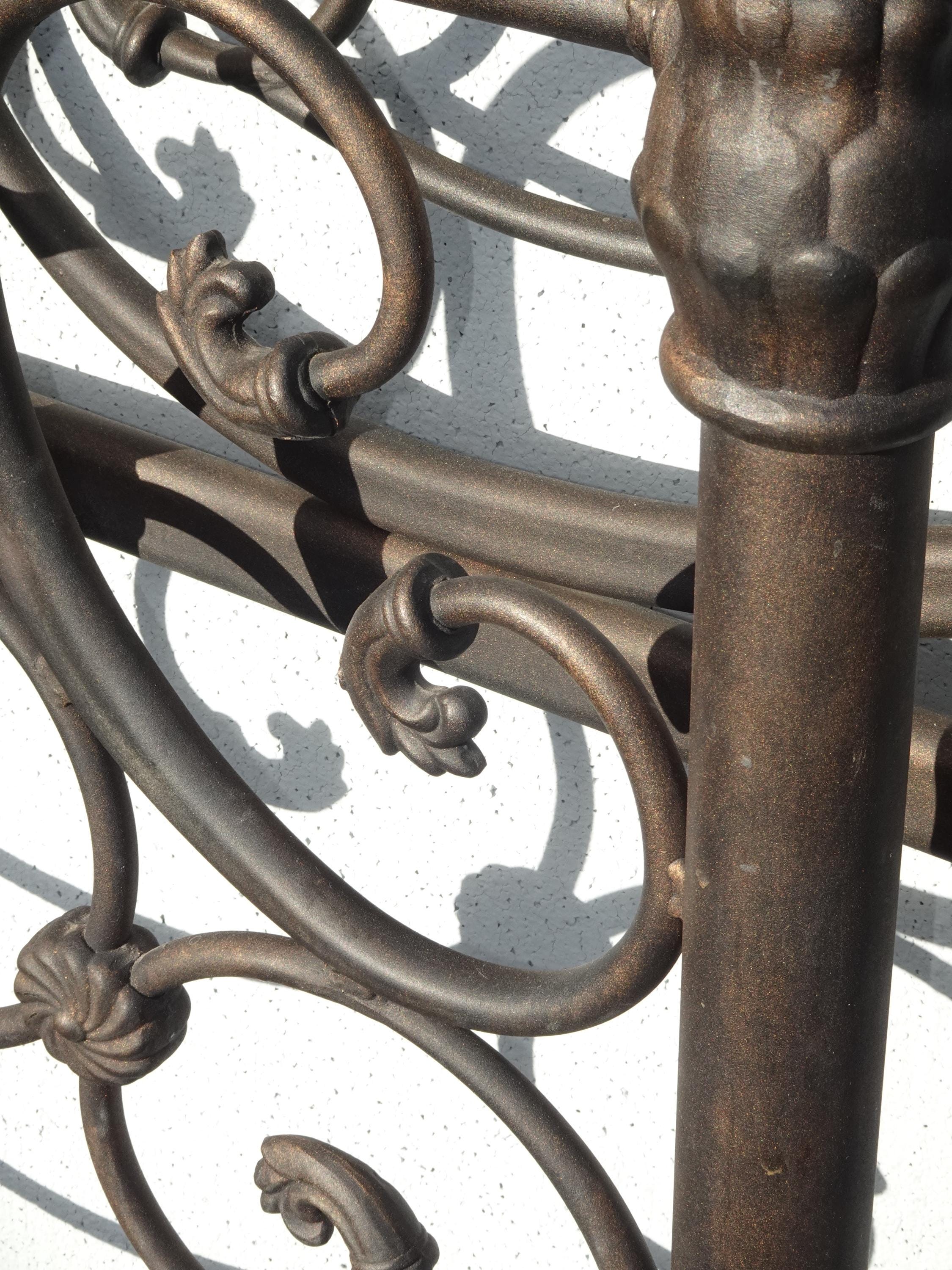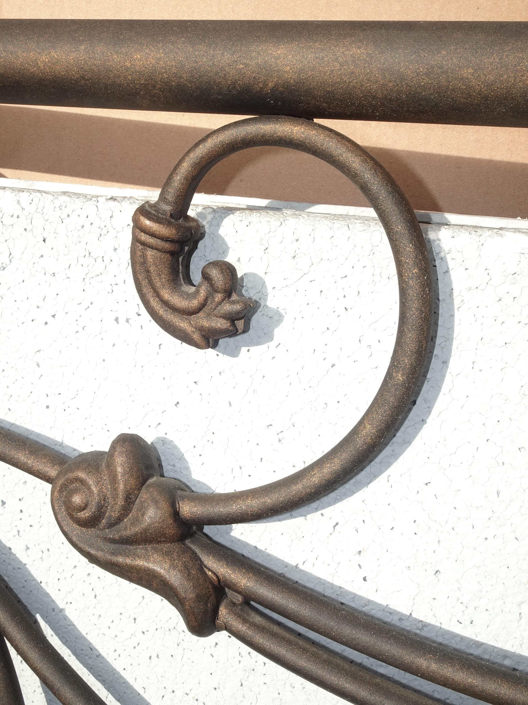 Brown Metal King Sleigh Bed Set Frame Headboard Medalion and Ornate Scrolls