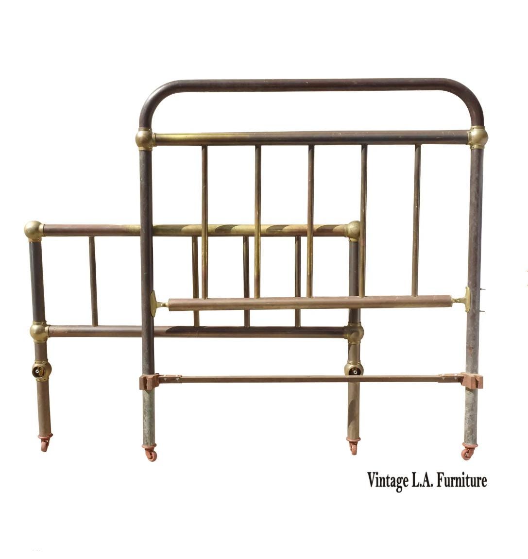 Antique Brass Bed Frame Headboard Footboard & Rails ~ French Country