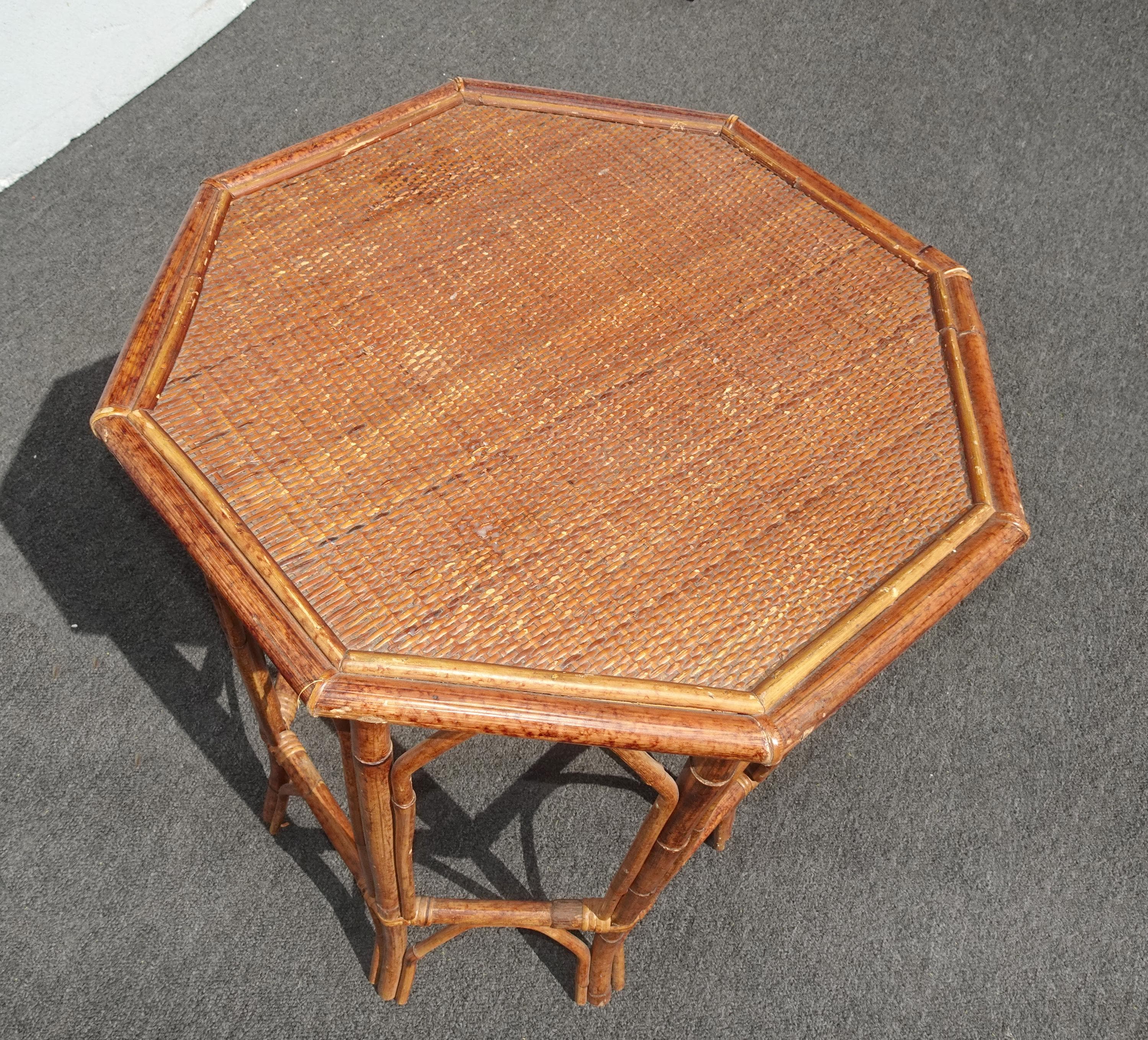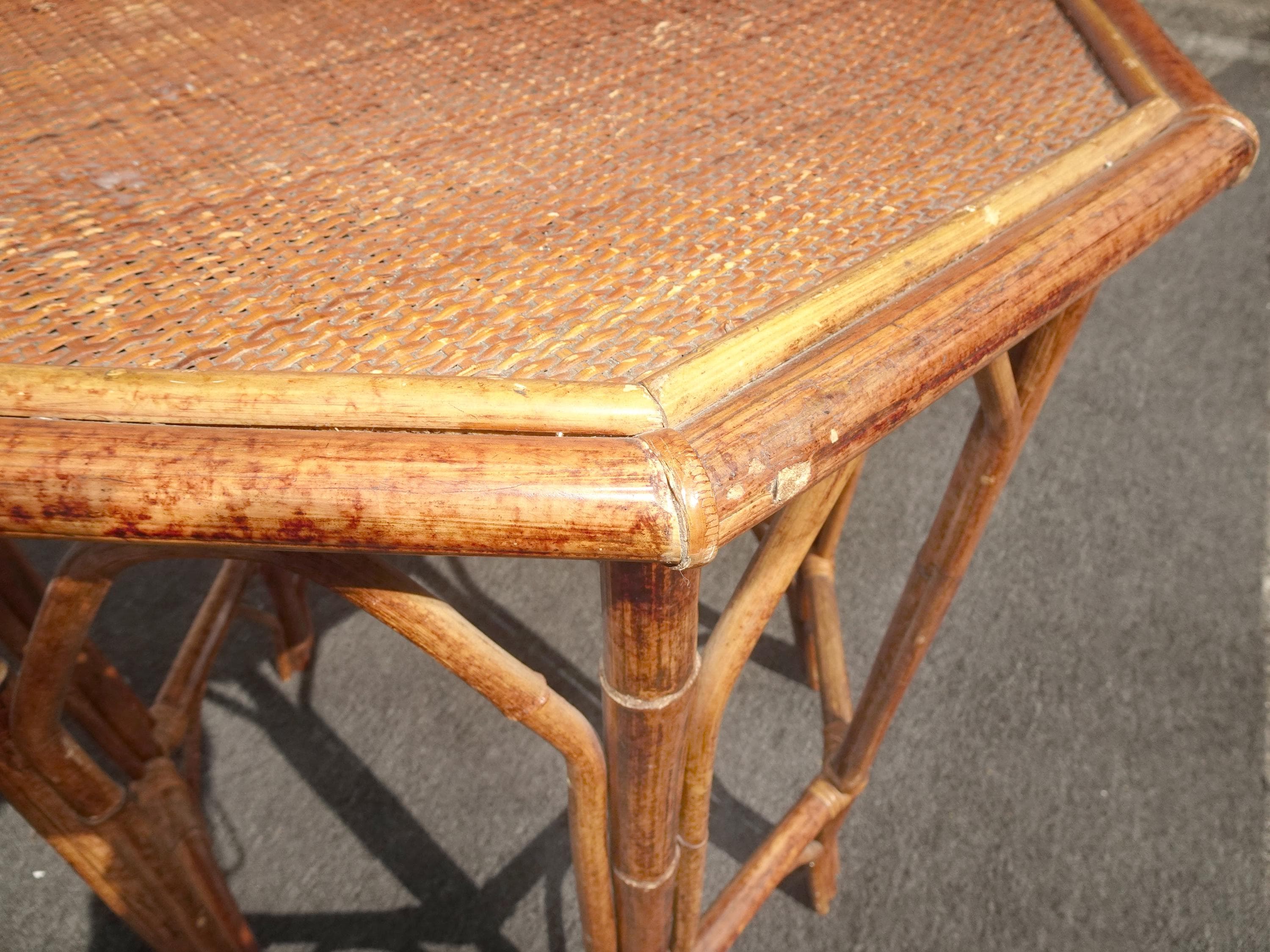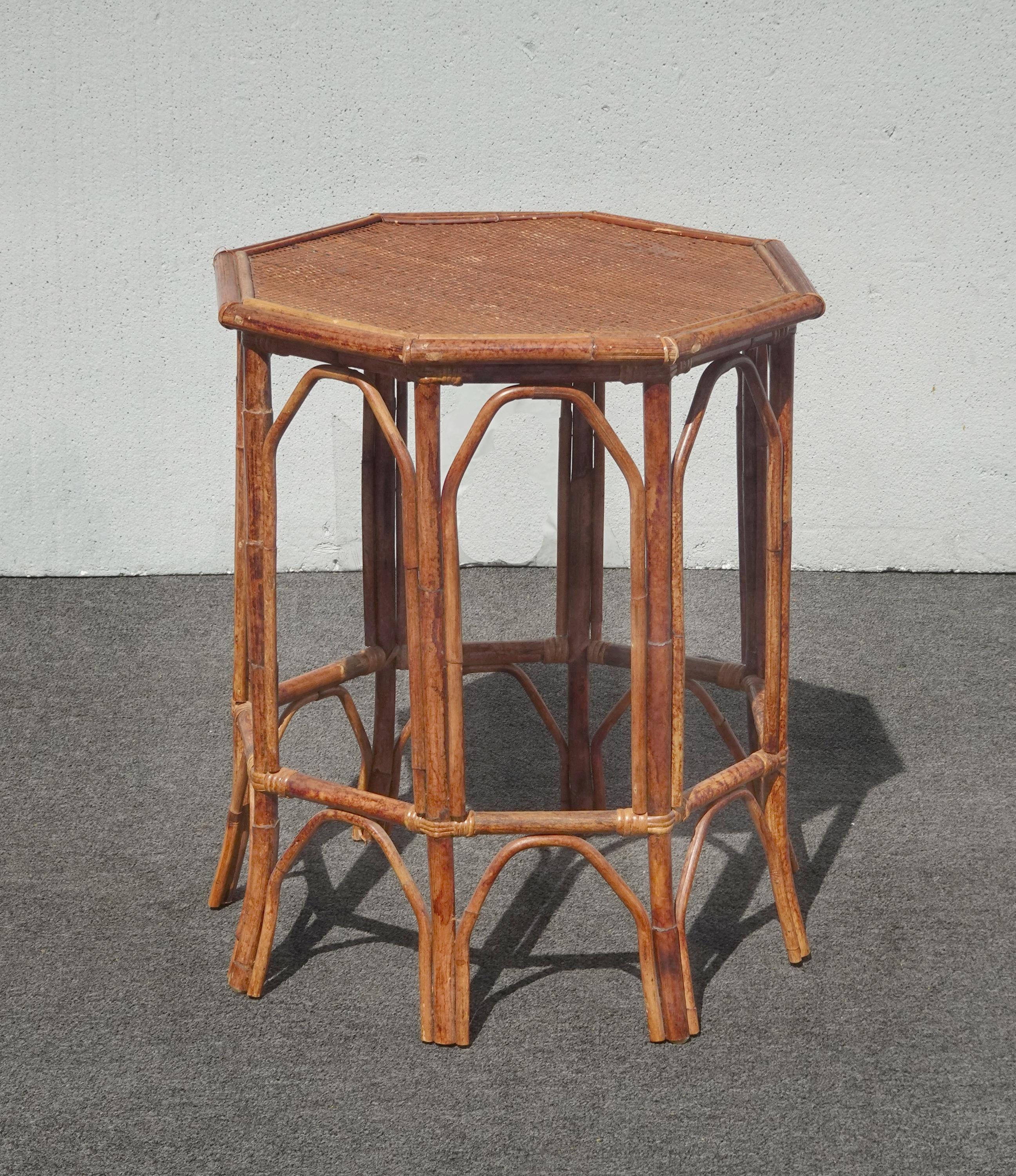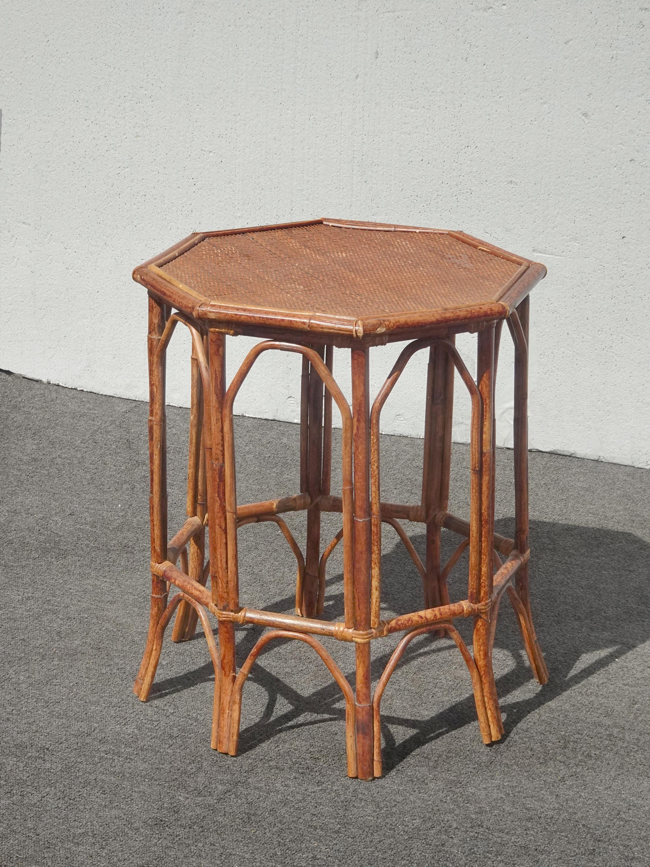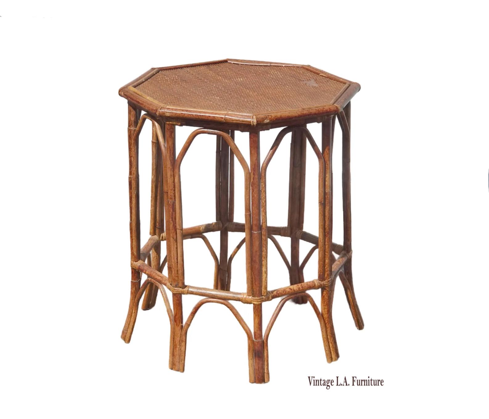 Vintage French Country Brown Bamboo Rattan Side Table ~ End Table
