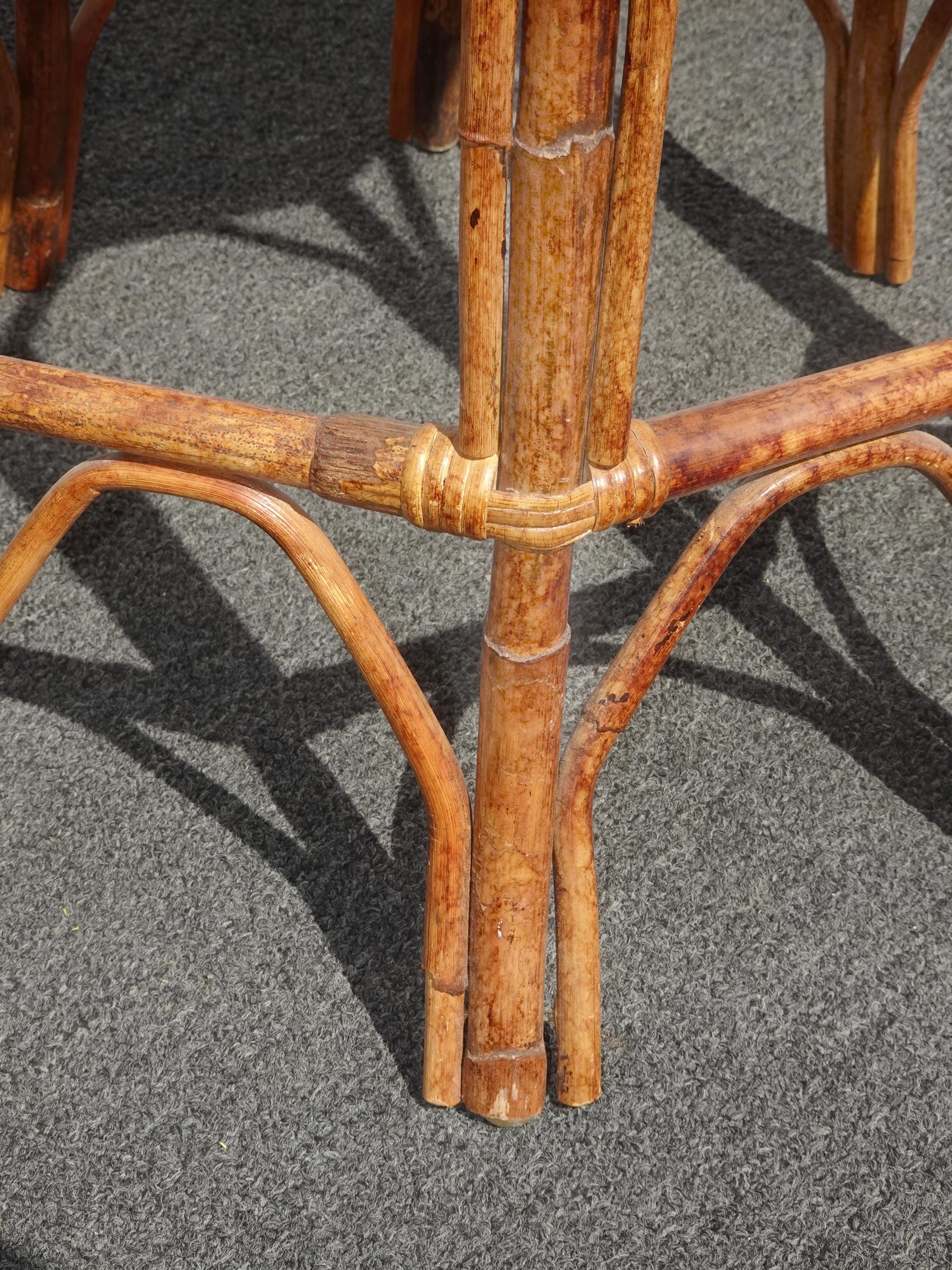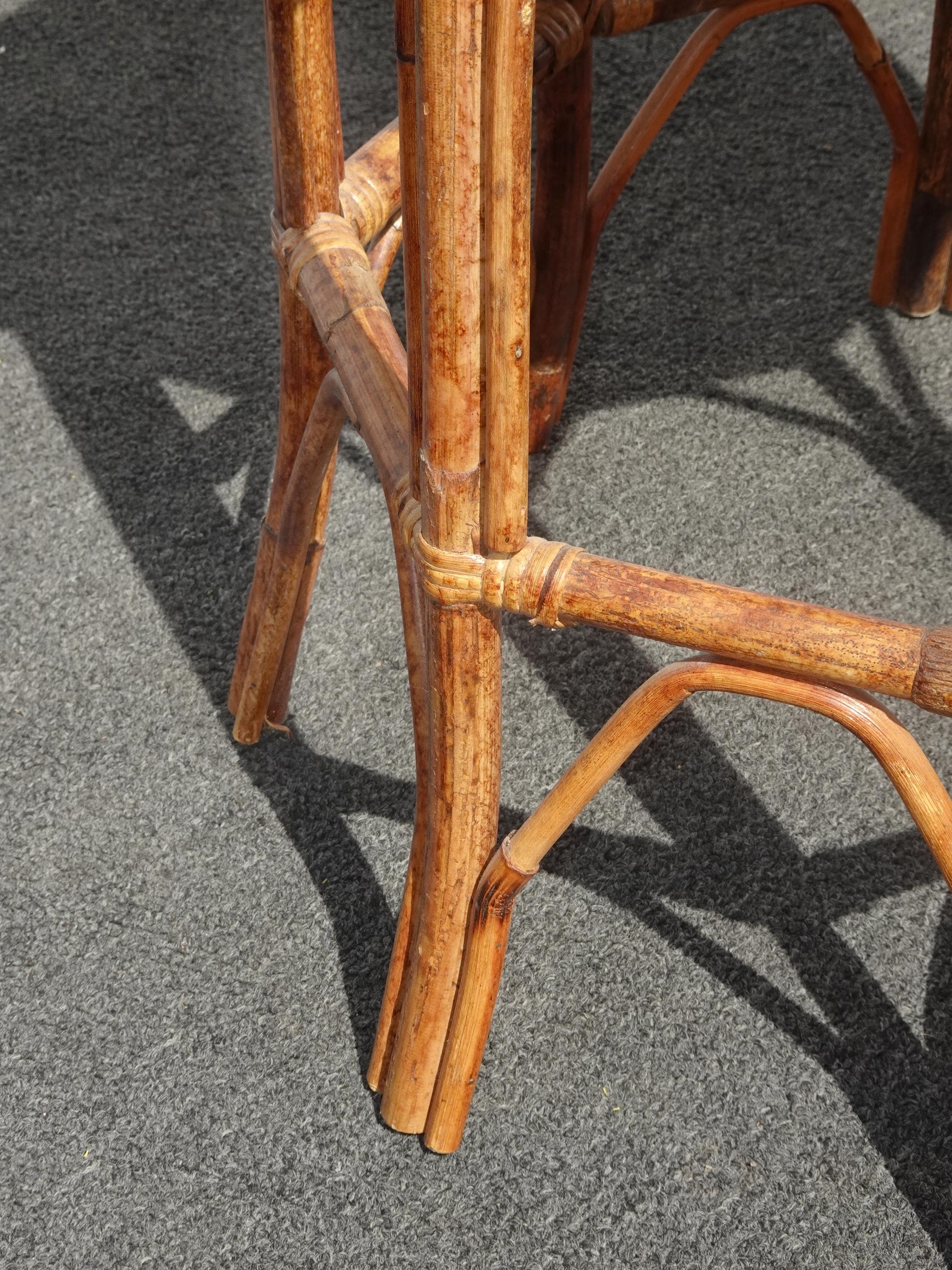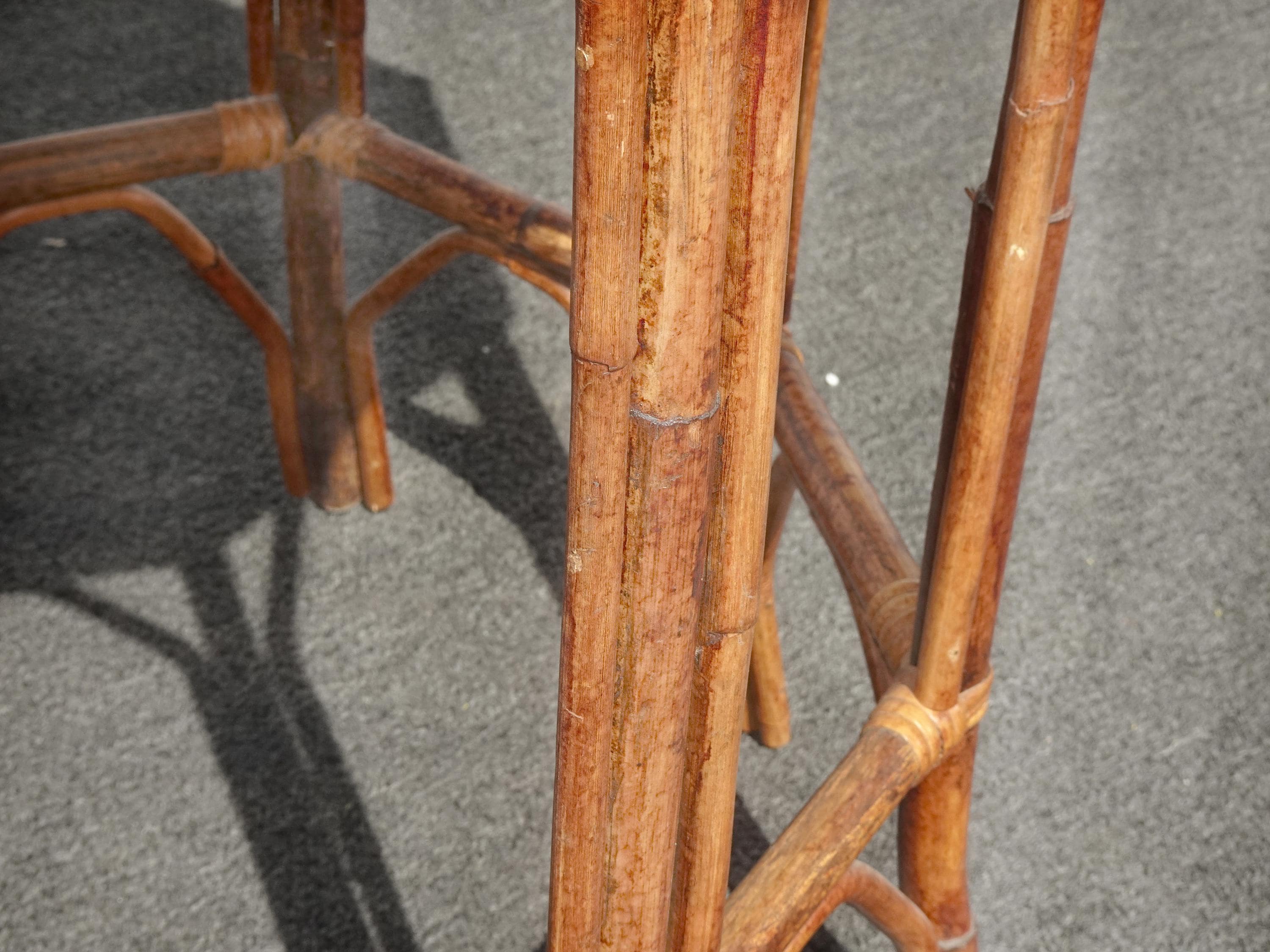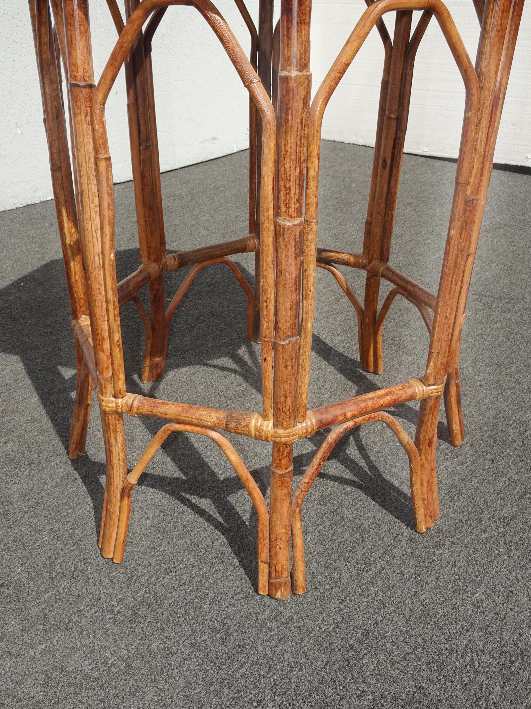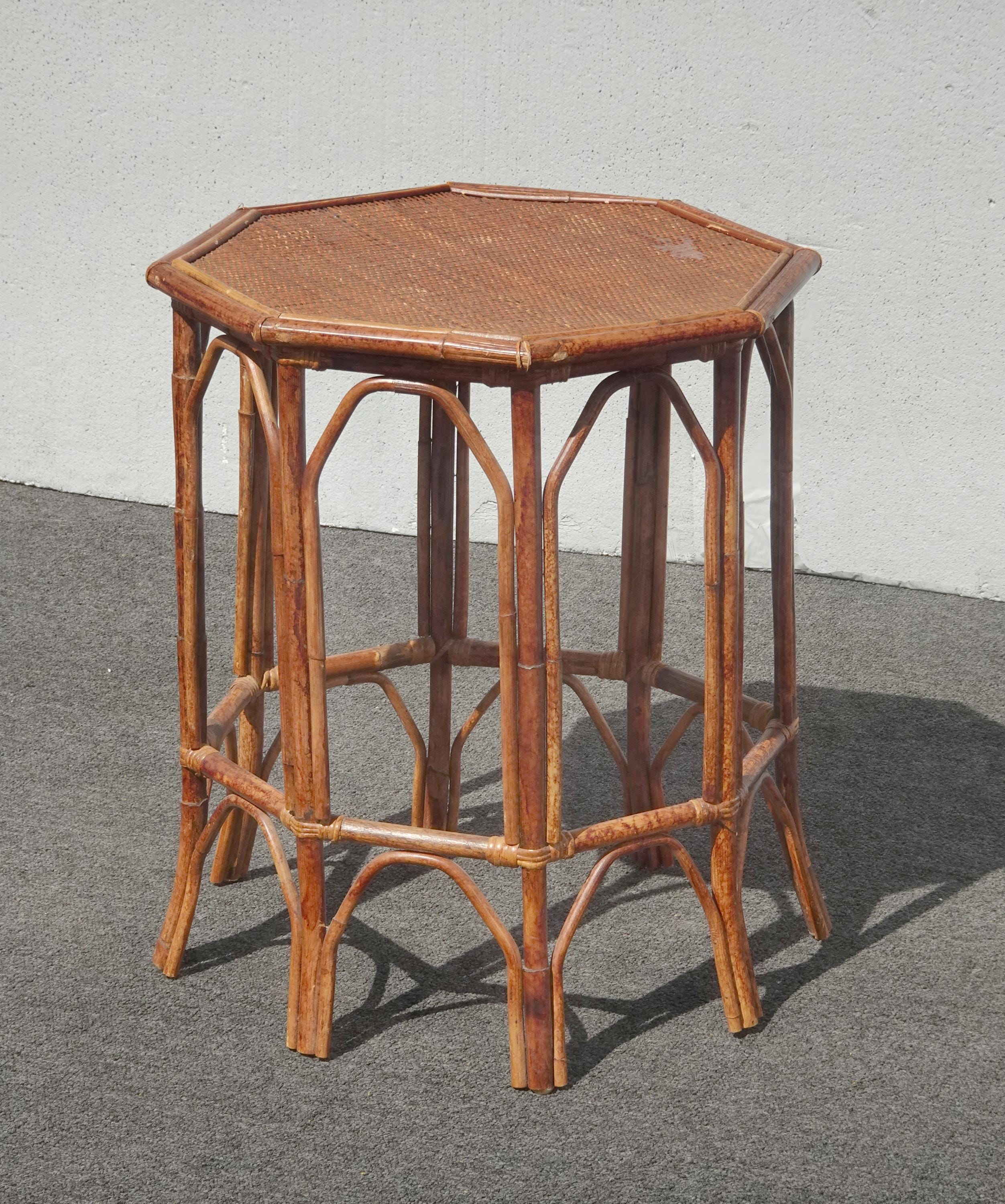 Vintage French Country Brown Bamboo Rattan Side Table ~ End Table
